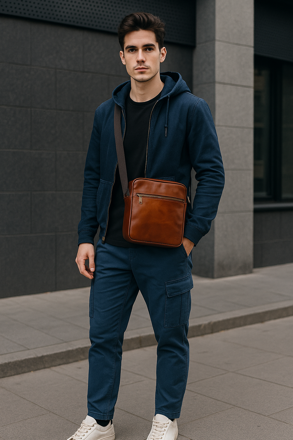 Gabriel – Borsello uomo in vera pelle italiana con tracolla regolabile