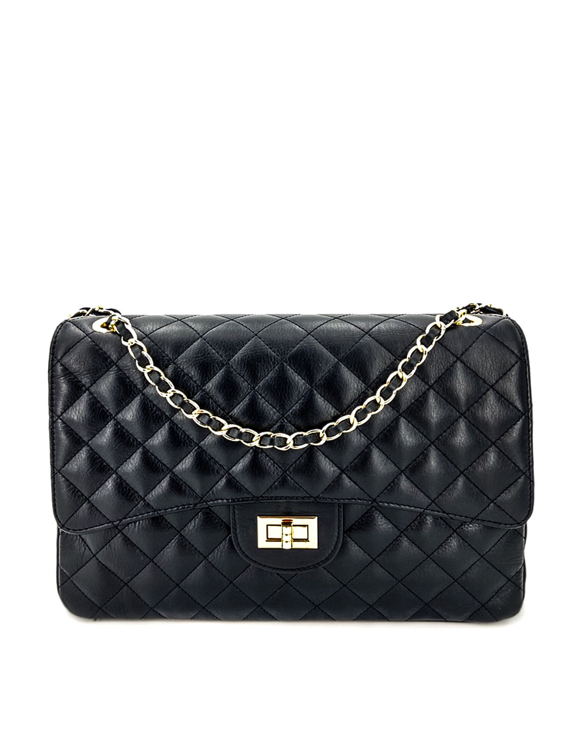 Agathe Grande – Borsa a spalla donna in vera pelle italiana con catena dorata intrecciata