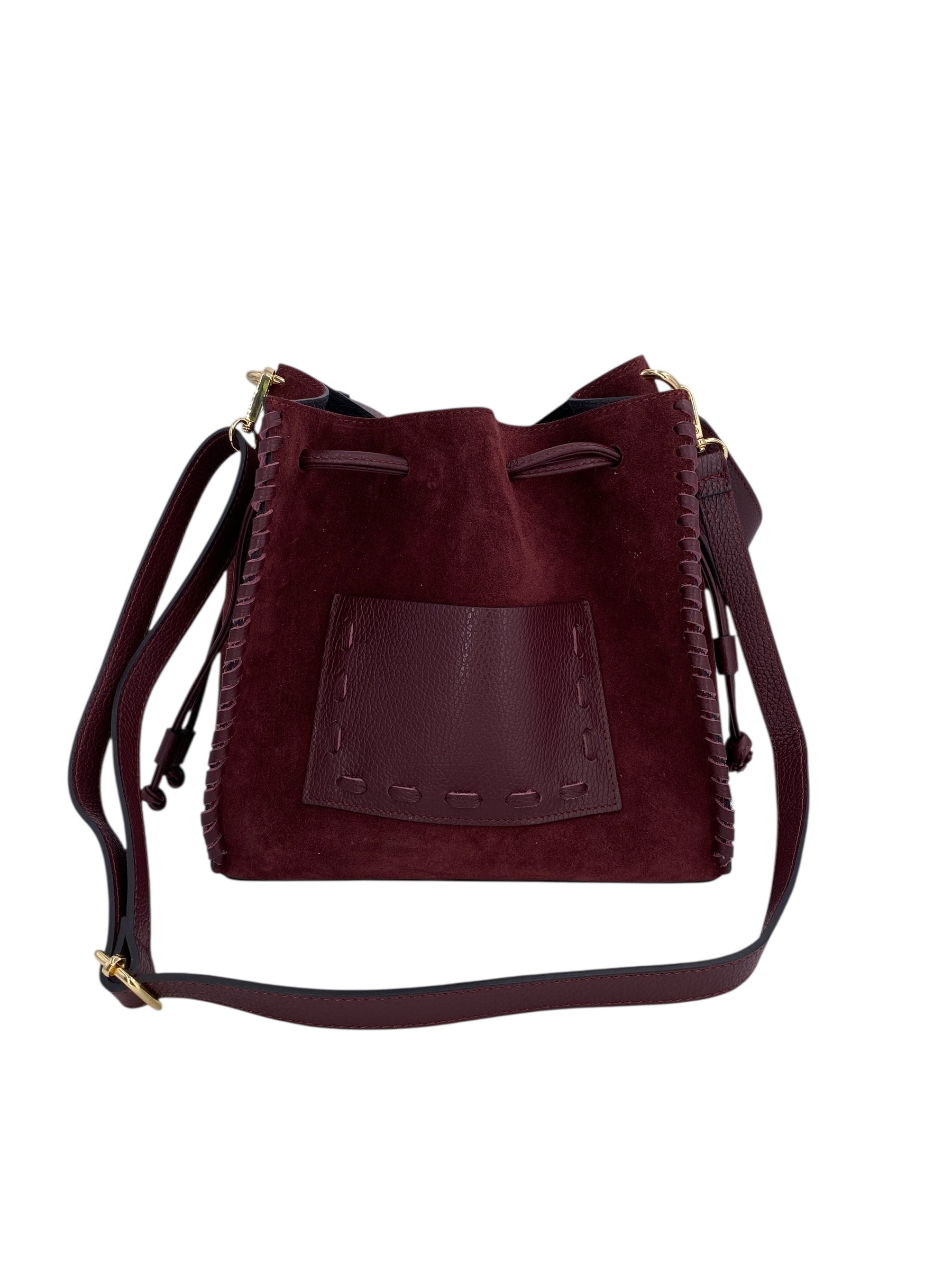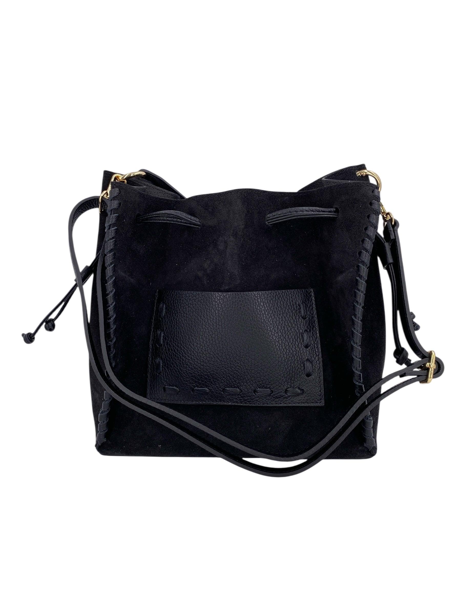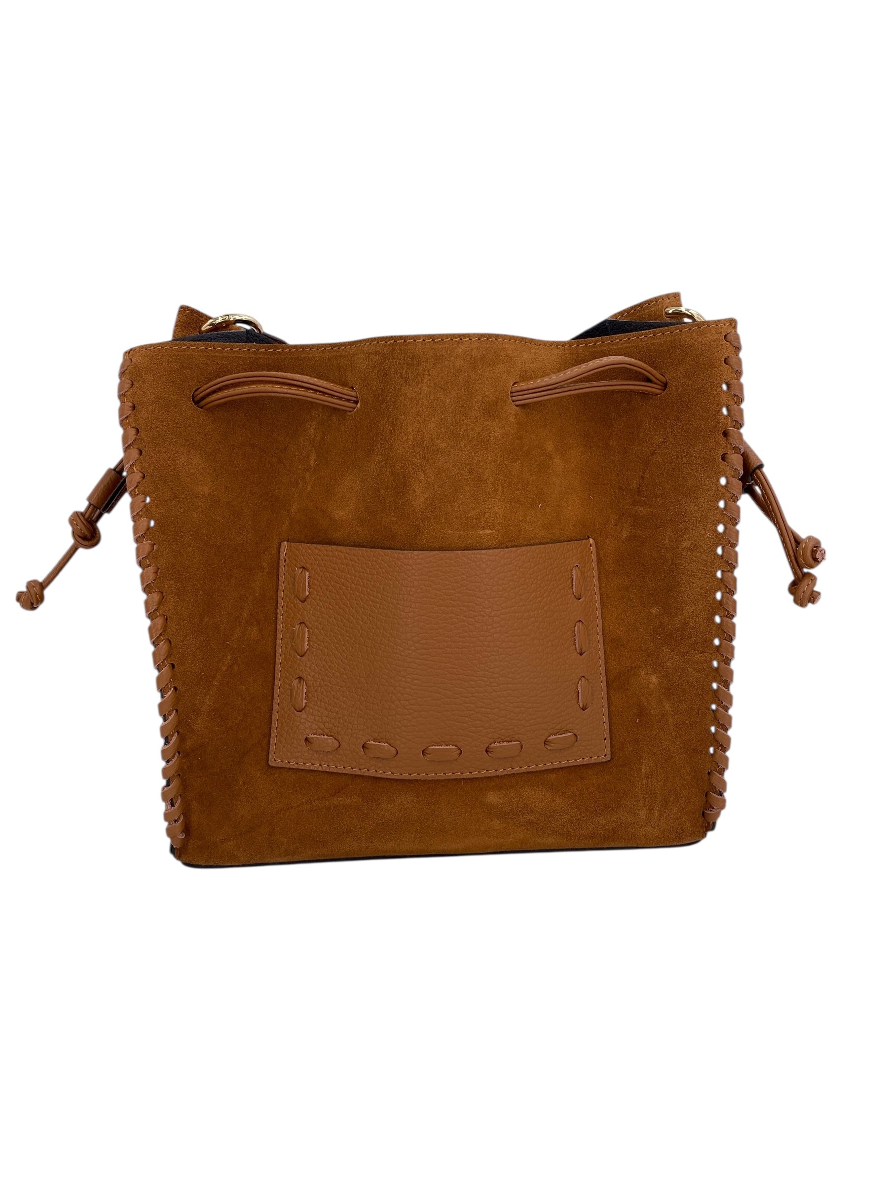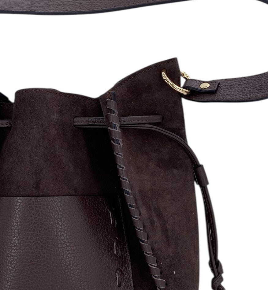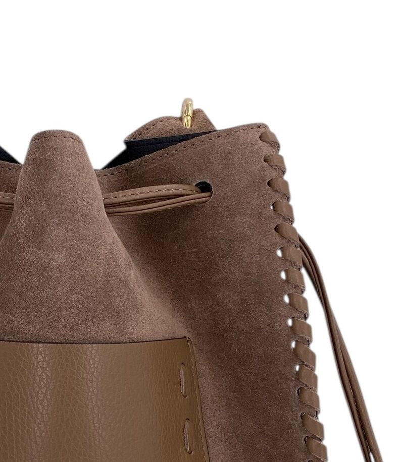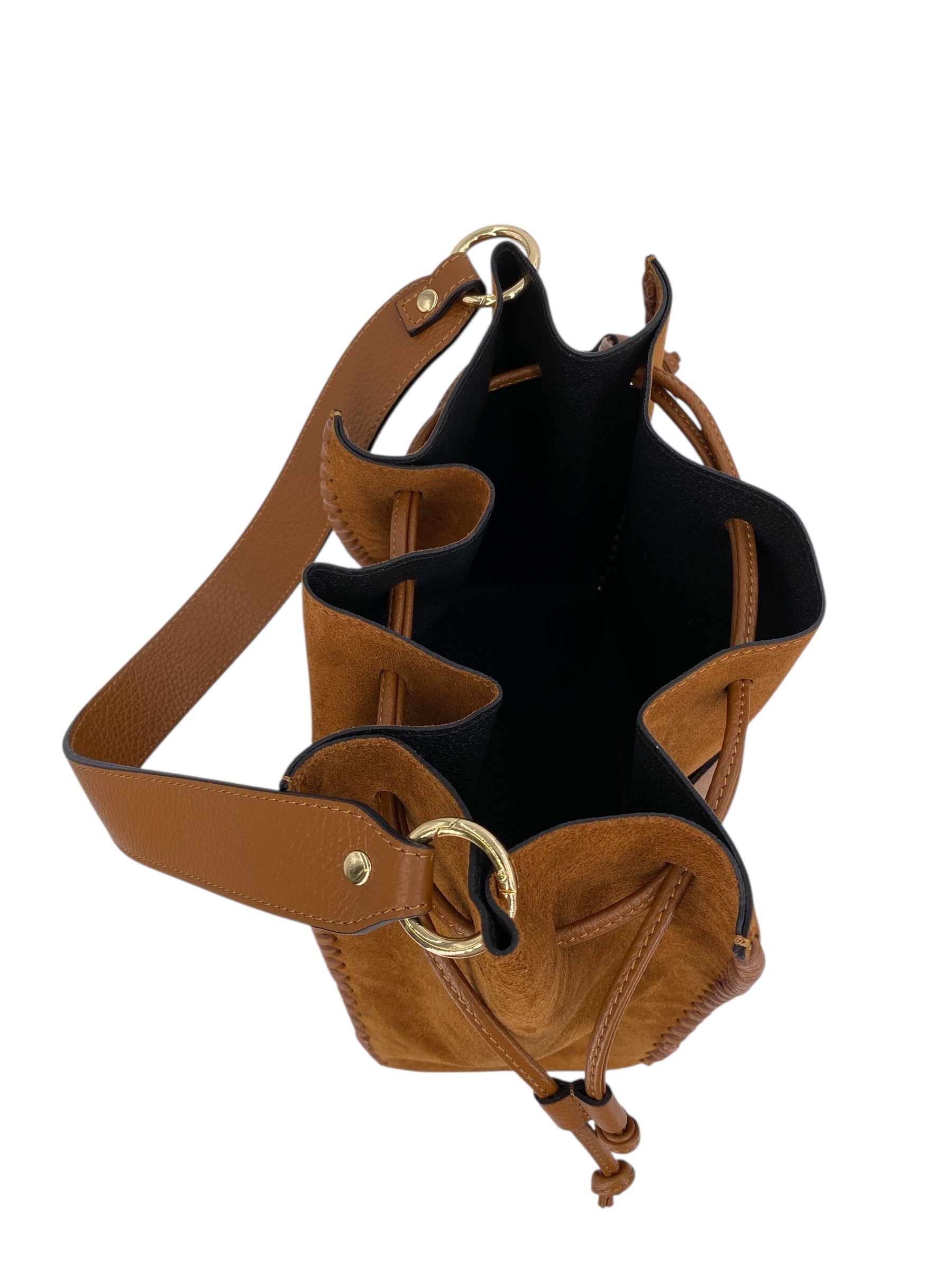 La borsa Alix è un elegante secchiello che unisce tradizione artigianale e design contemporaneo. Realizzata in vera pelle e morbido camoscio, si distingue per le sue linee pulite, i dettagli ricercati e la praticità che la rende perfetta per l’uso quotidiano.