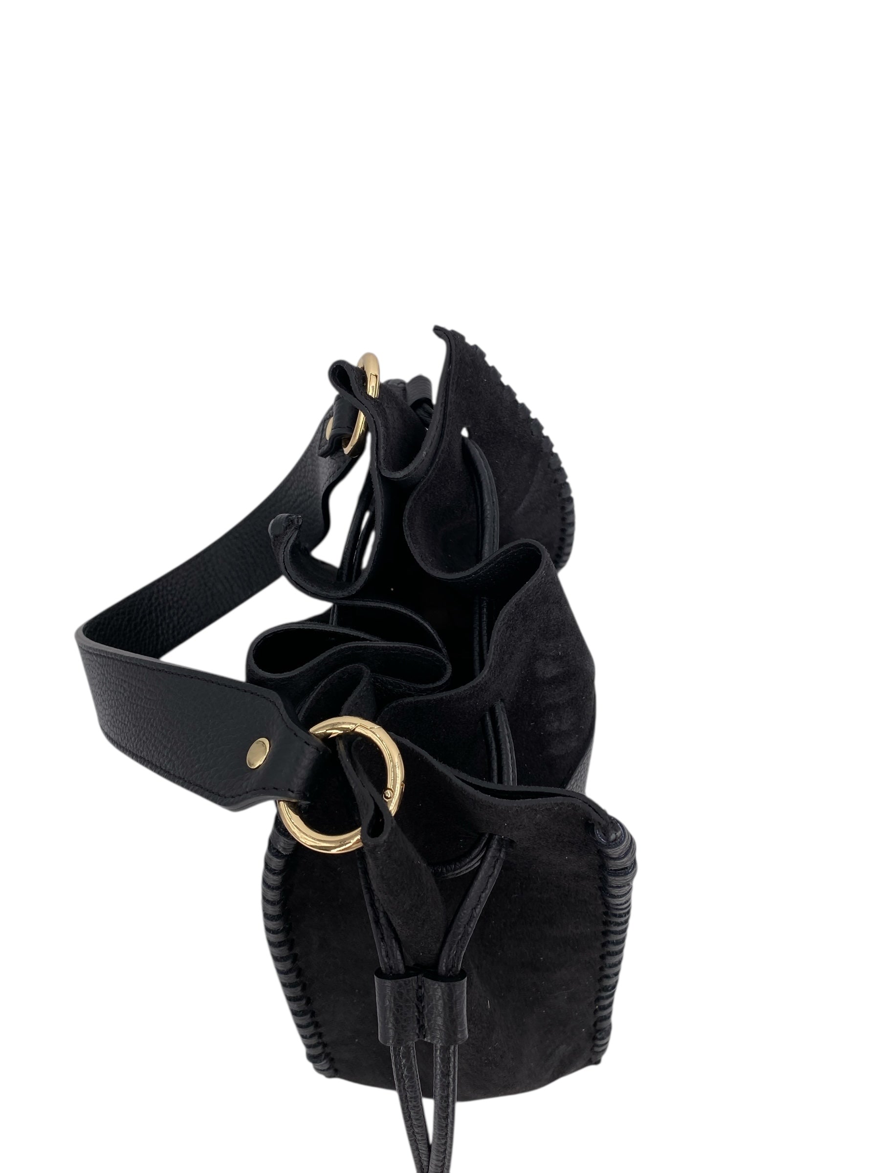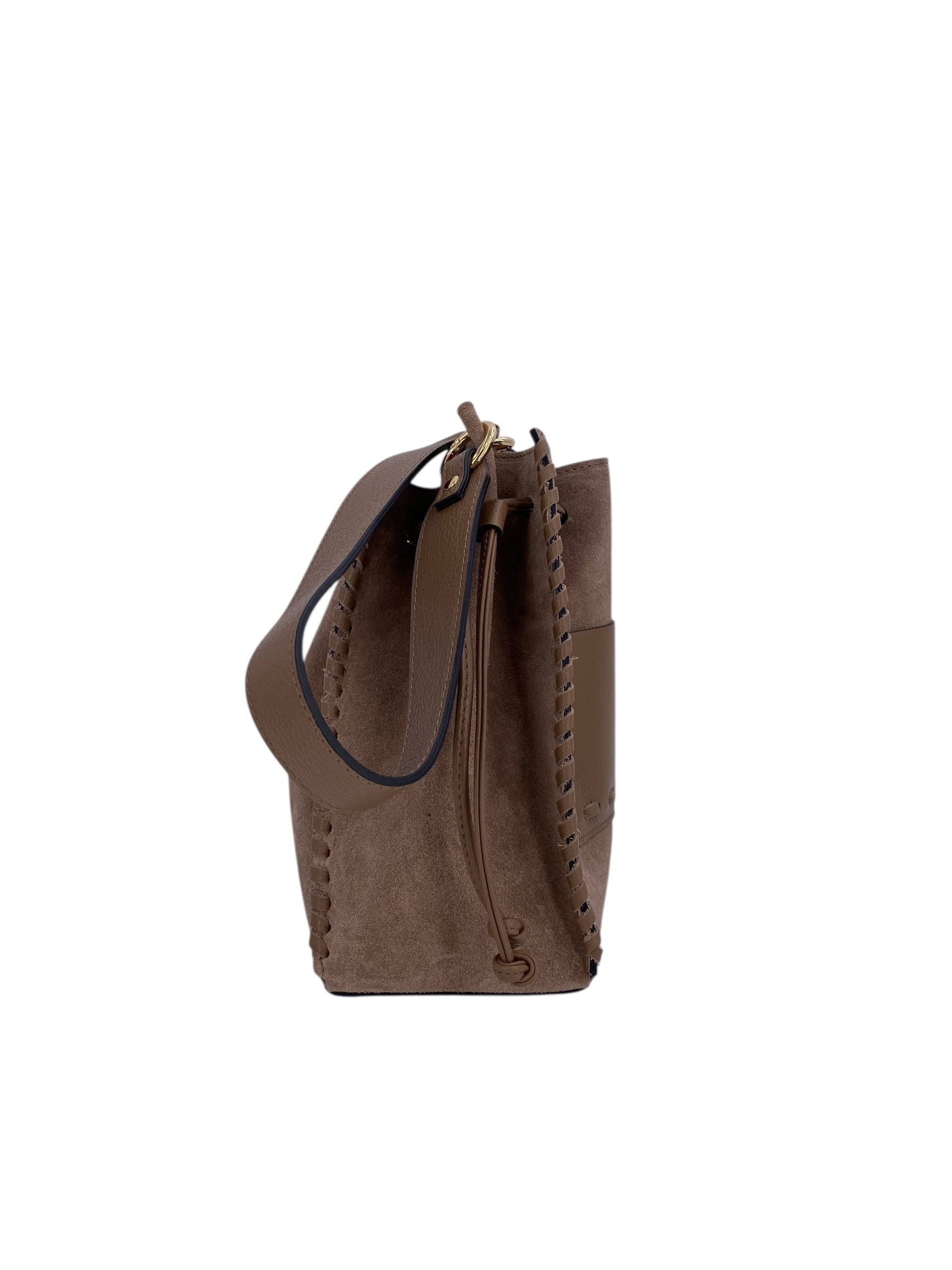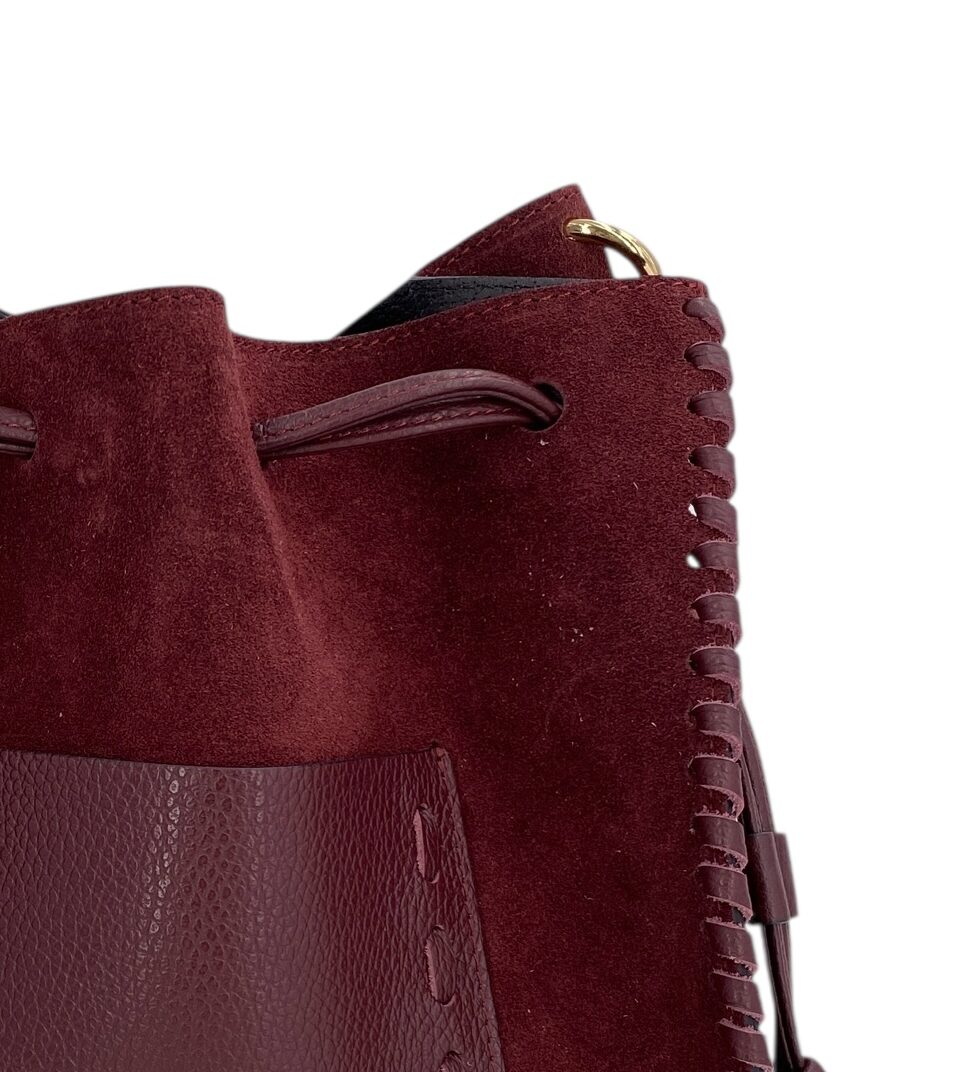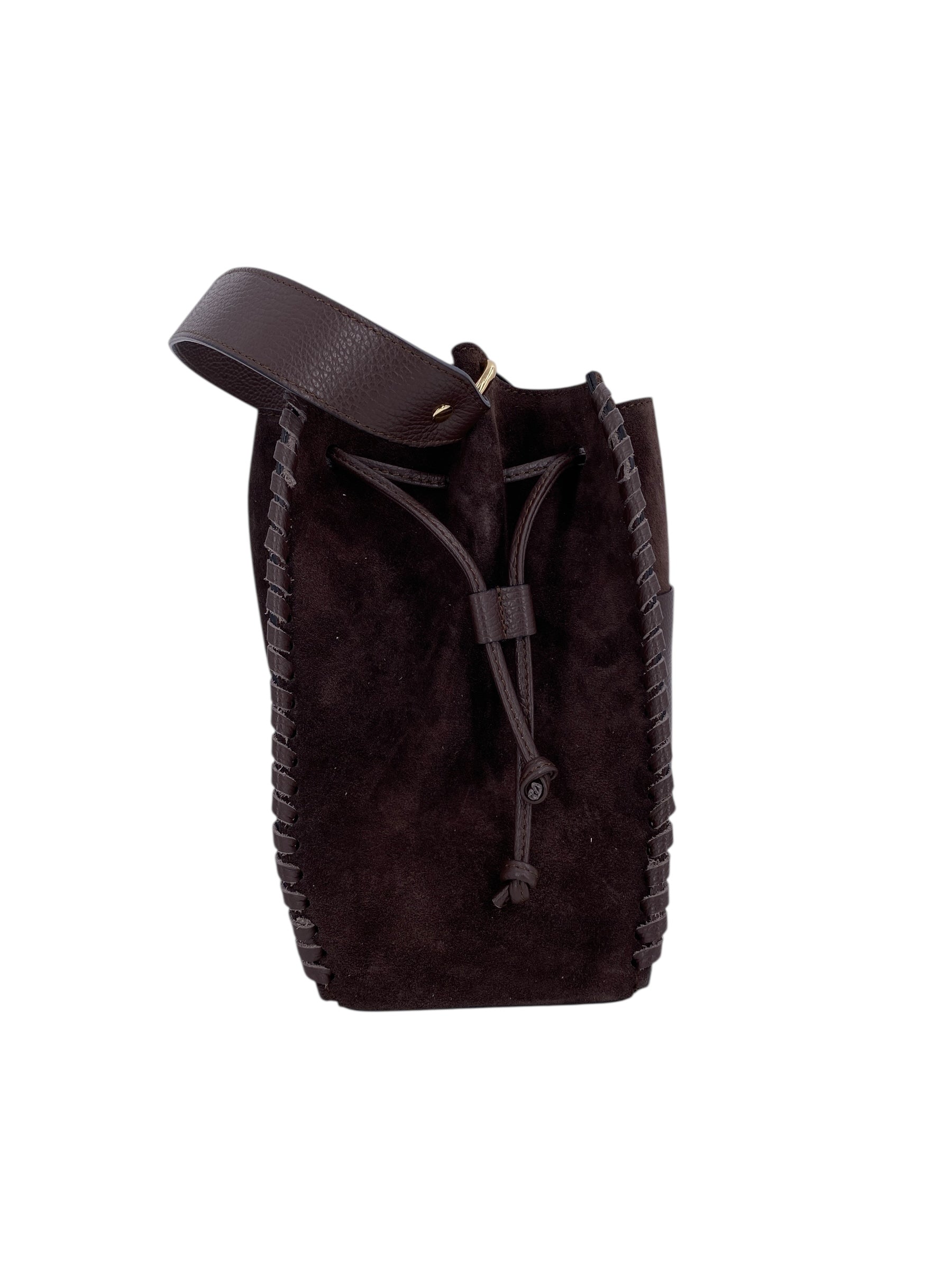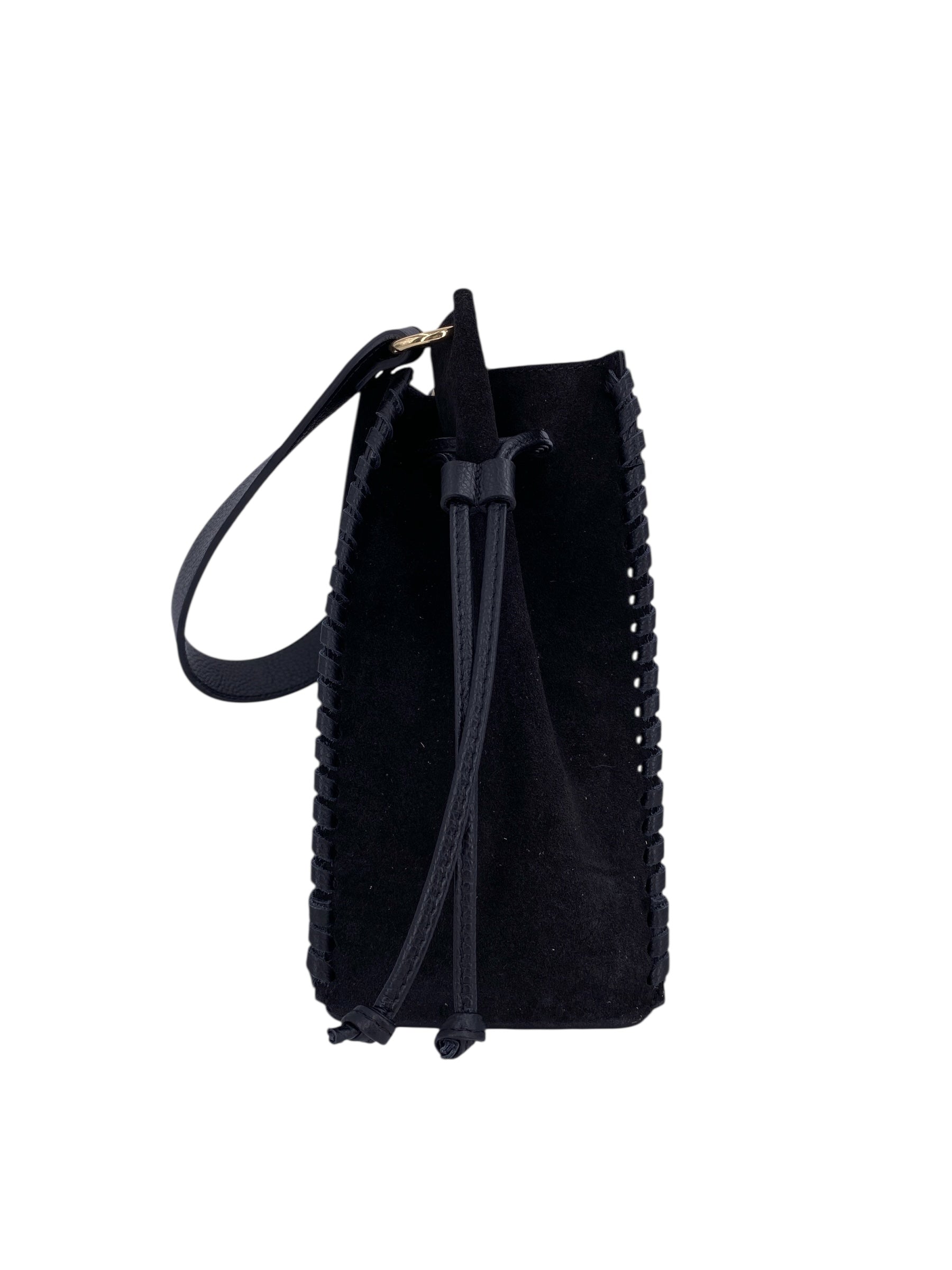 La borsa Alix è un elegante secchiello che unisce tradizione artigianale e design contemporaneo. Realizzata in vera pelle e morbido camoscio, si distingue per le sue linee pulite, i dettagli ricercati e la praticità che la rende perfetta per l’uso quotidiano.
