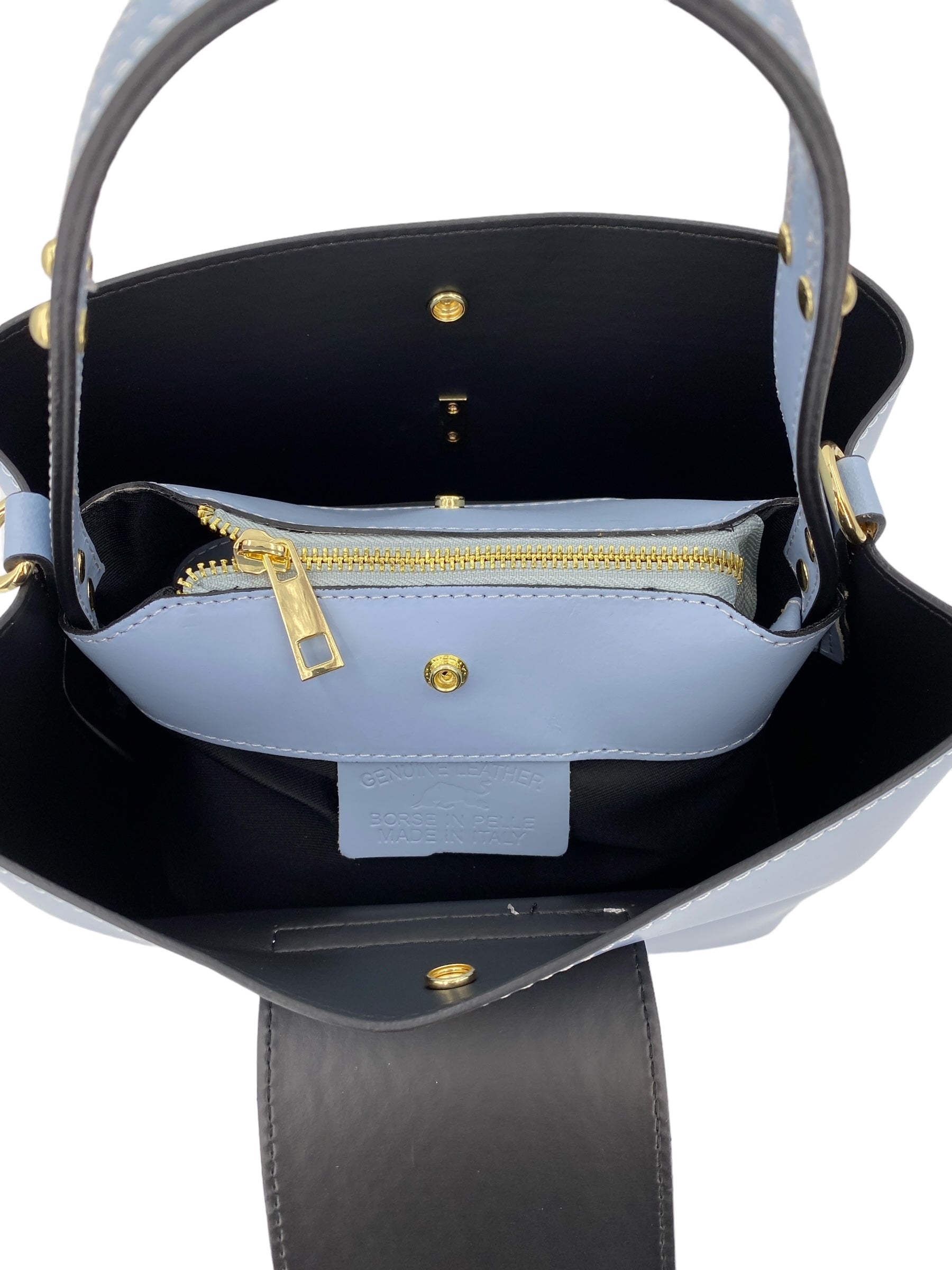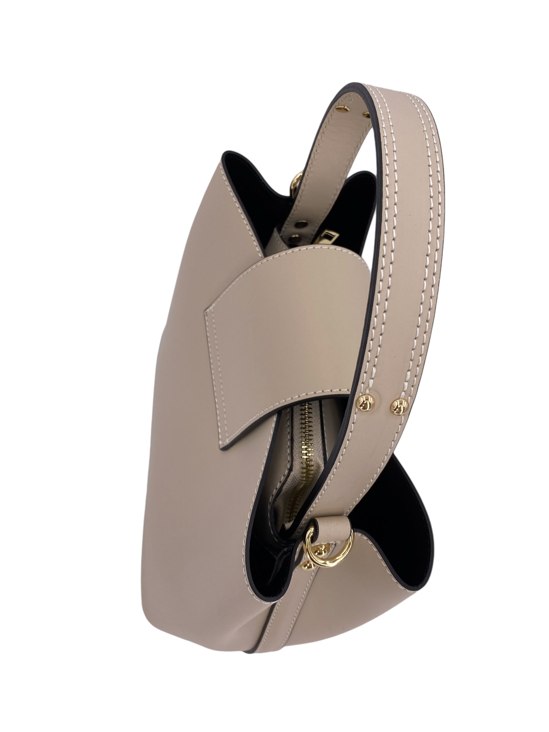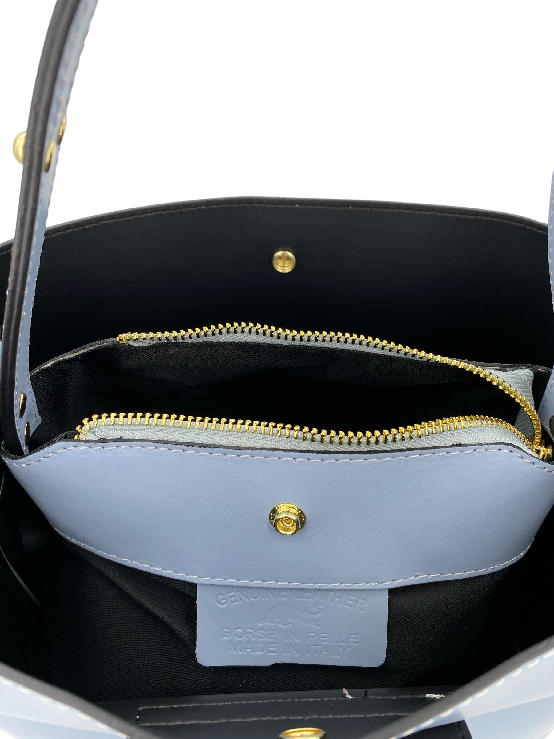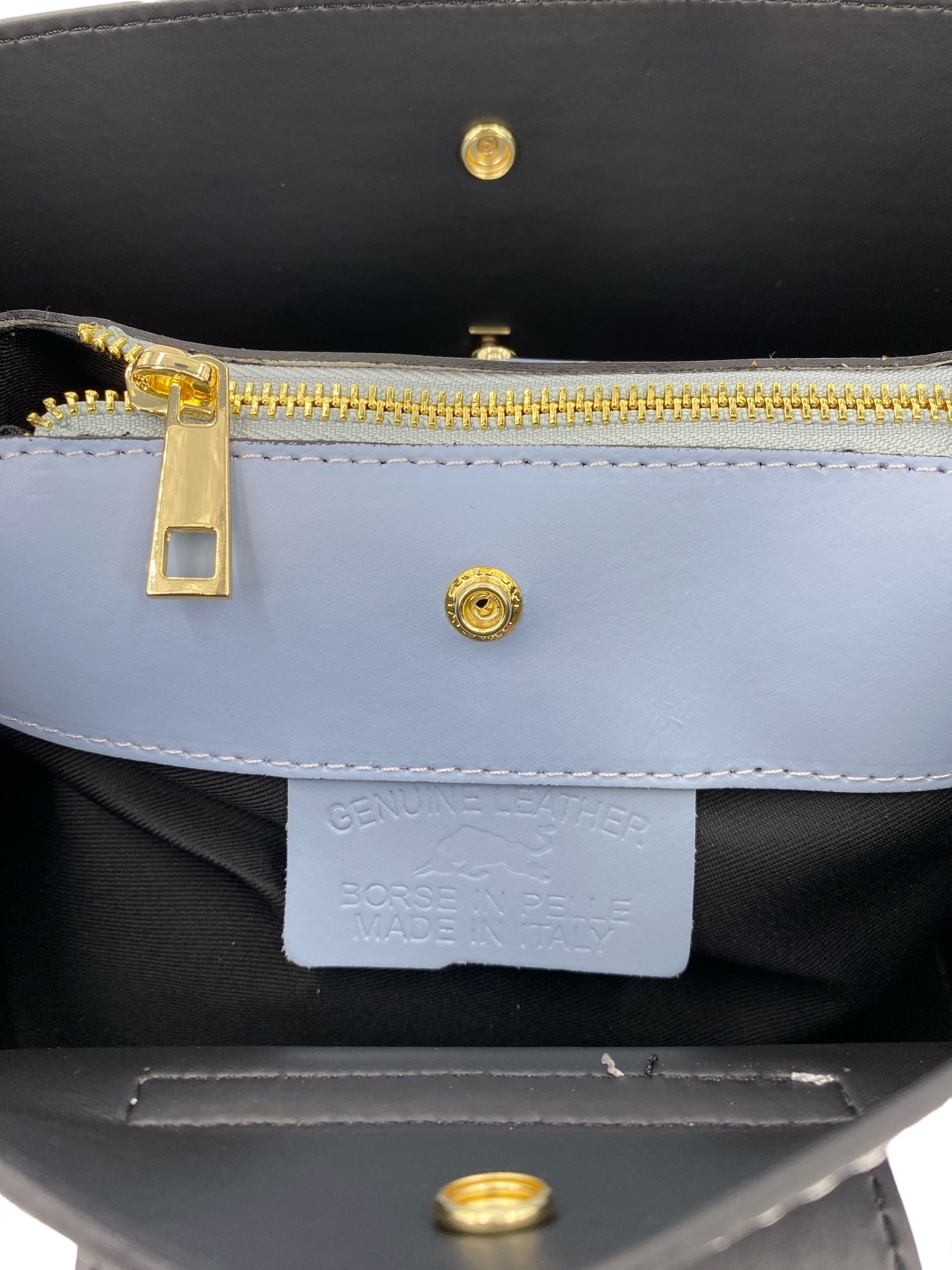 Realizzata in vera pelle italiana liscia con finitura opaca e morbido tatto vellutato.