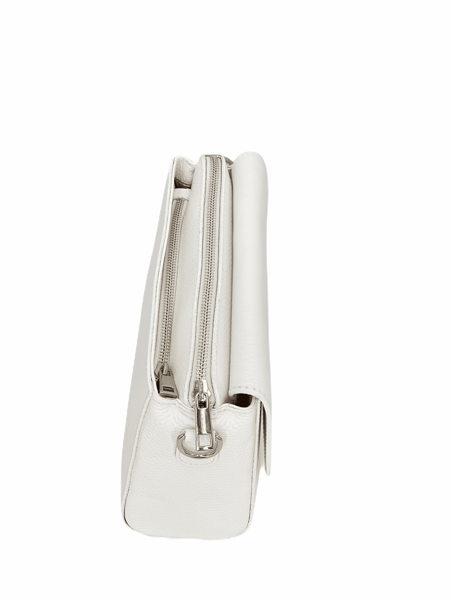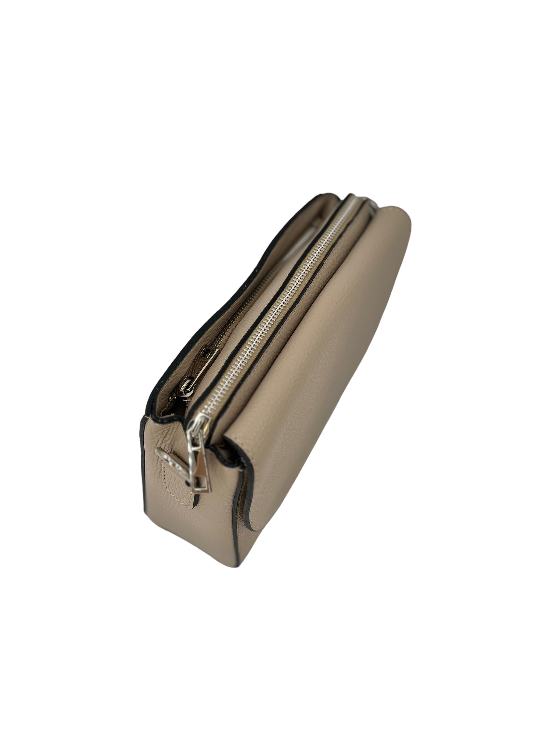 Apolline è sorprendentemente capiente per le sue dimensioni compatte, due scomparti principali con chiusura a zip in metallo silver, scomparto centrale aperto per accesso rapido a smartphone o chiavi. Fodera interna in tessuto, robusta e pulita