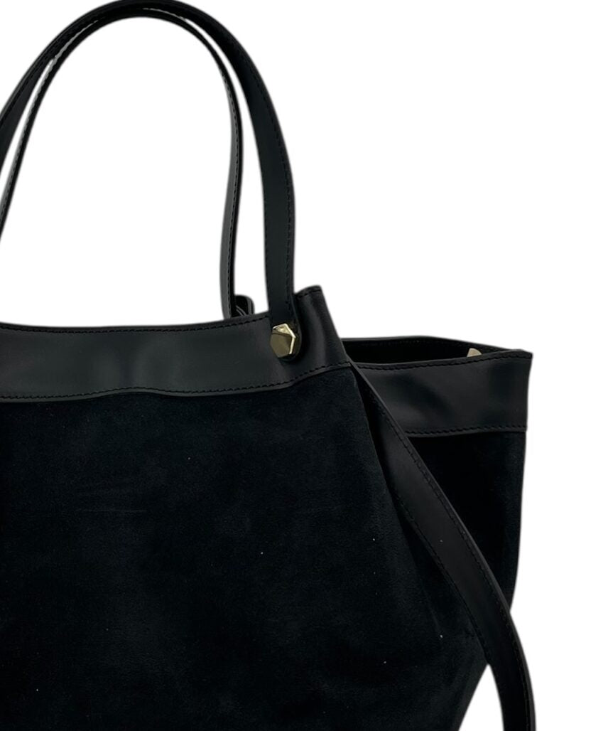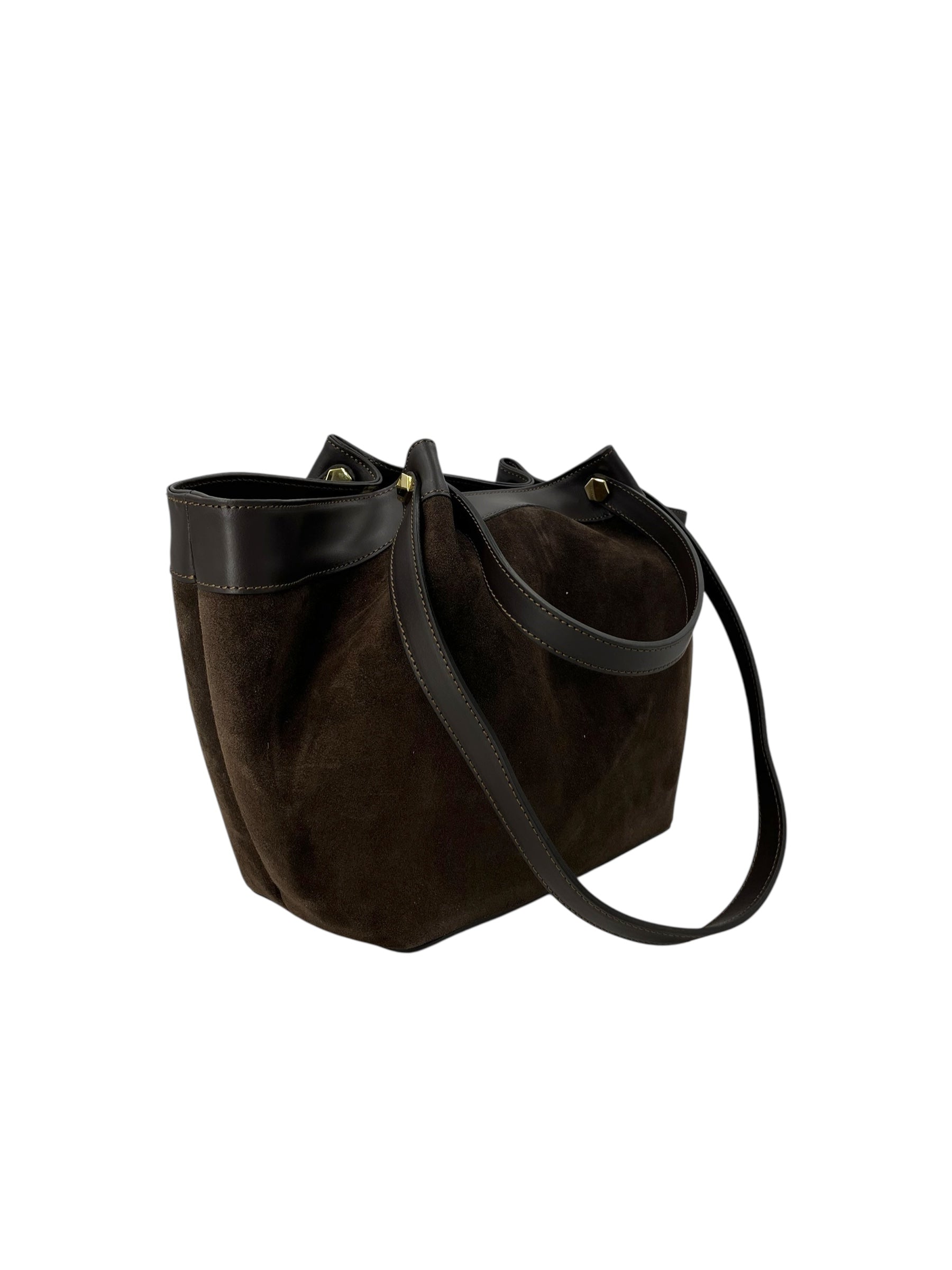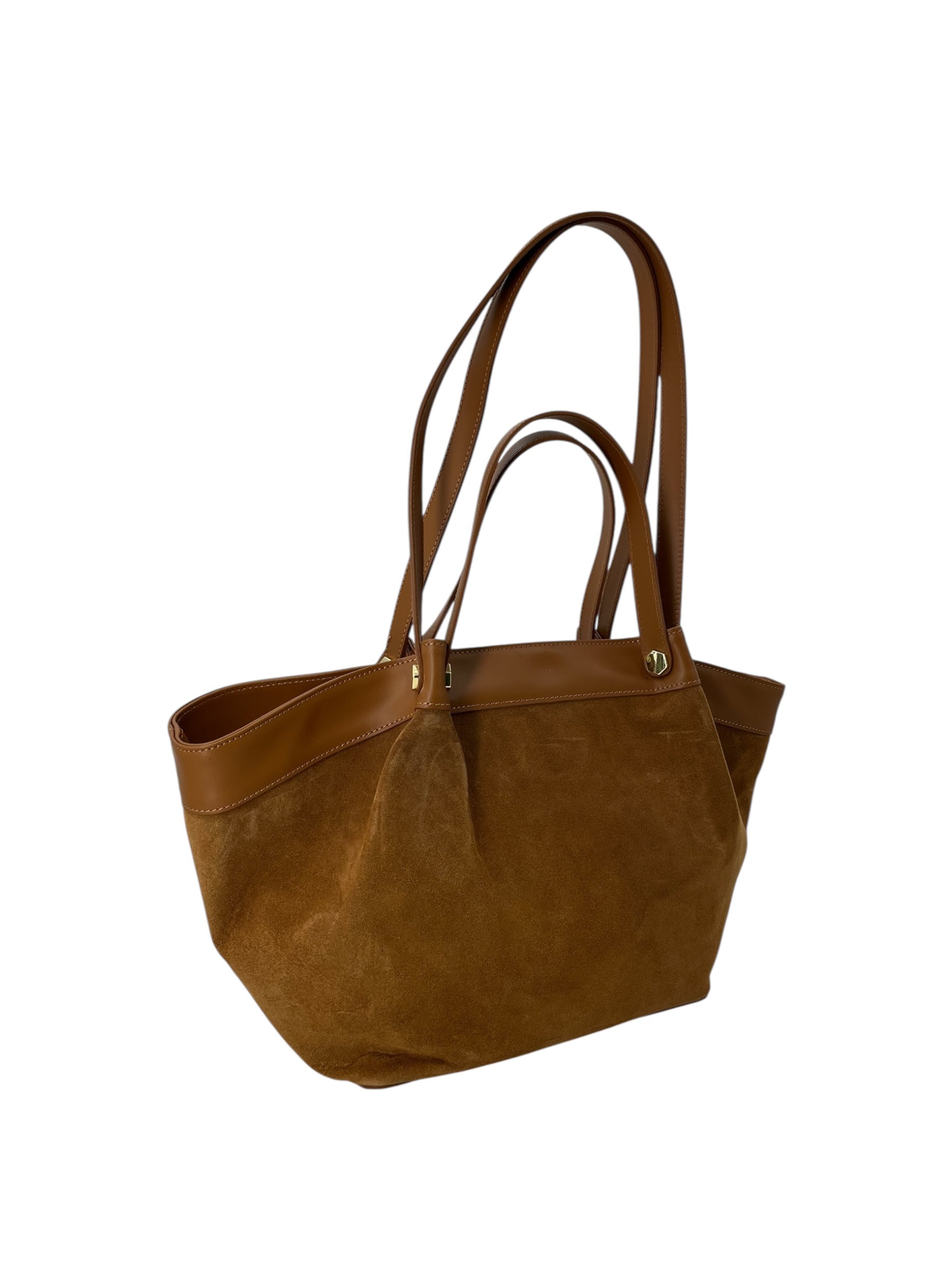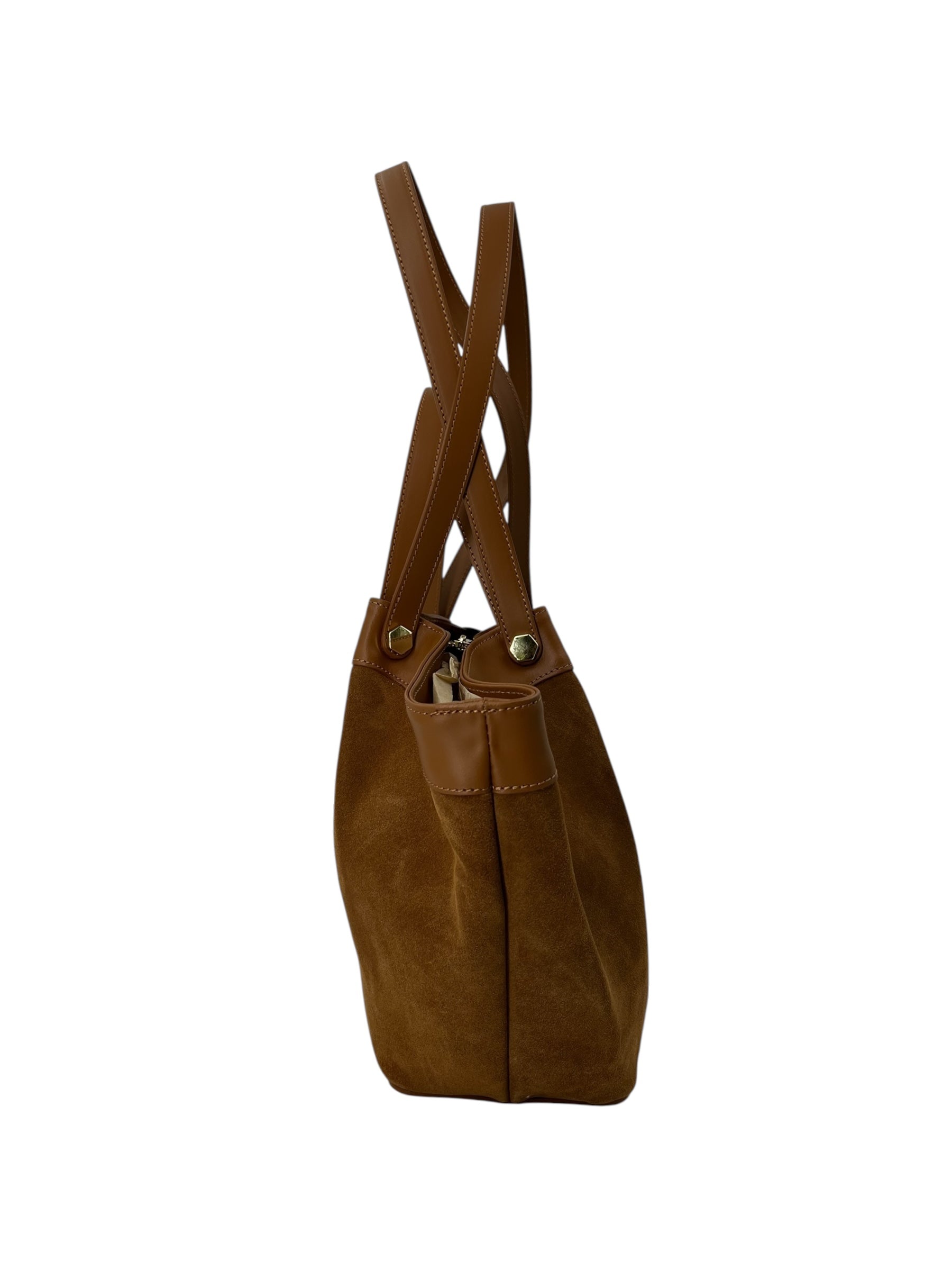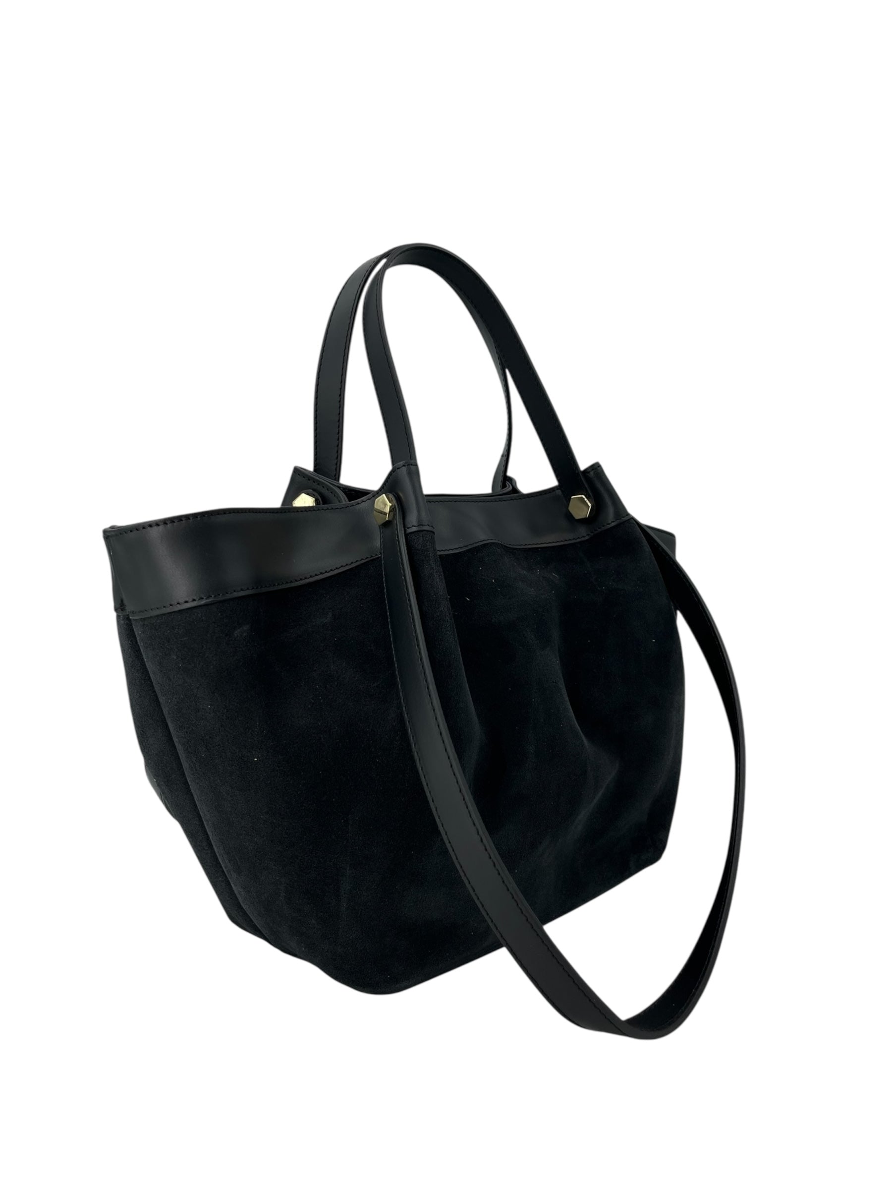 La borsa Arya è un capolavoro di artigianalità italiana che unisce la morbidezza del camoscio alla struttura elegante della pelle liscia, dando vita a un accessorio intramontabile, raffinato e pratico.