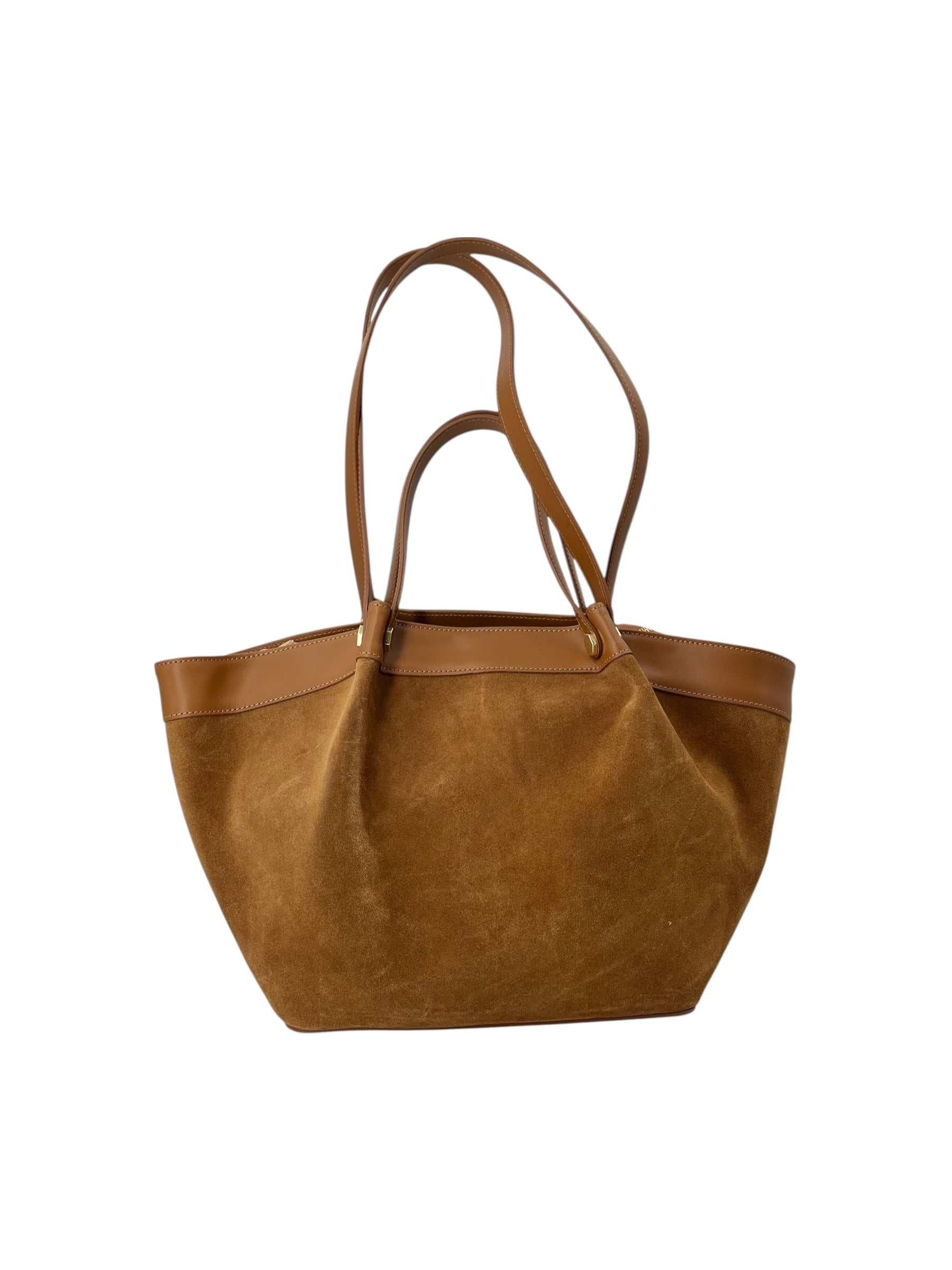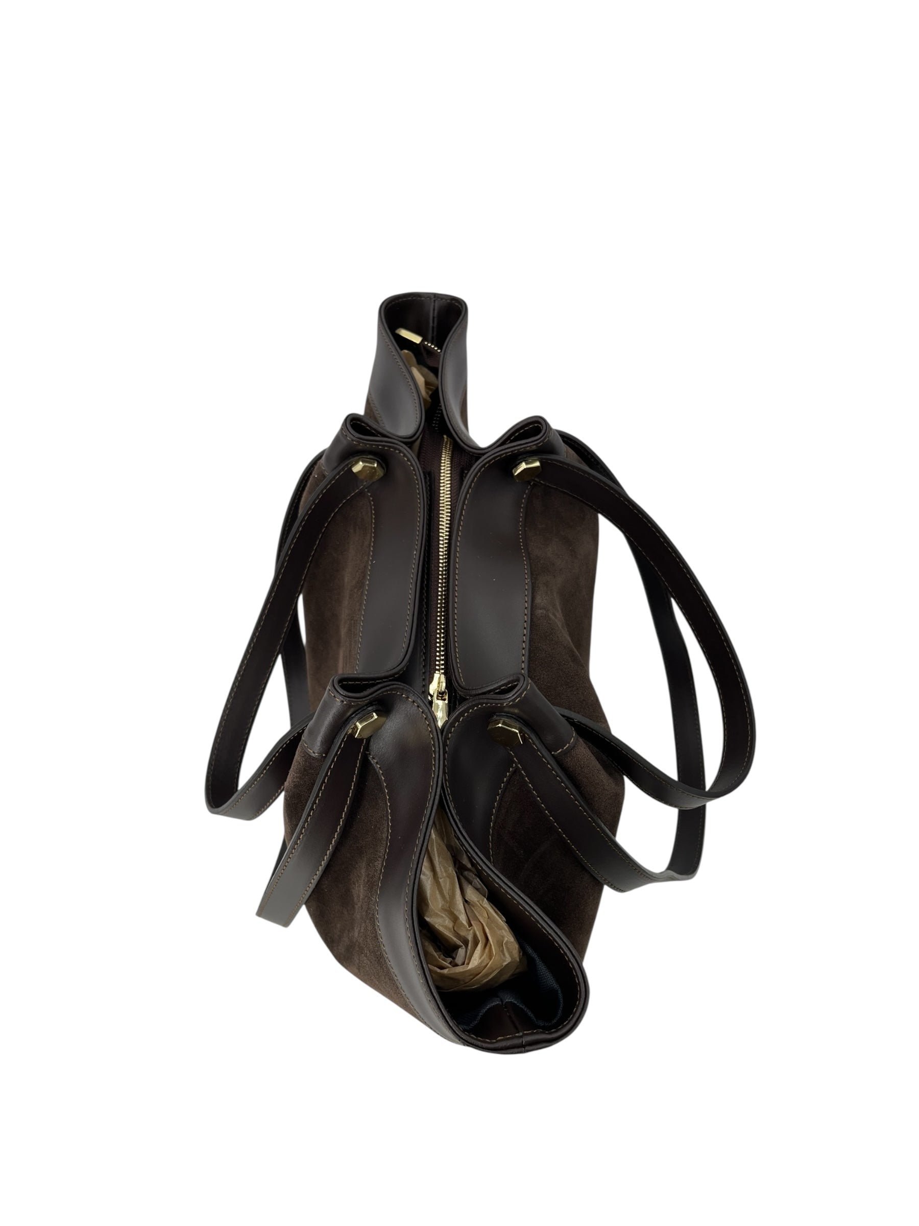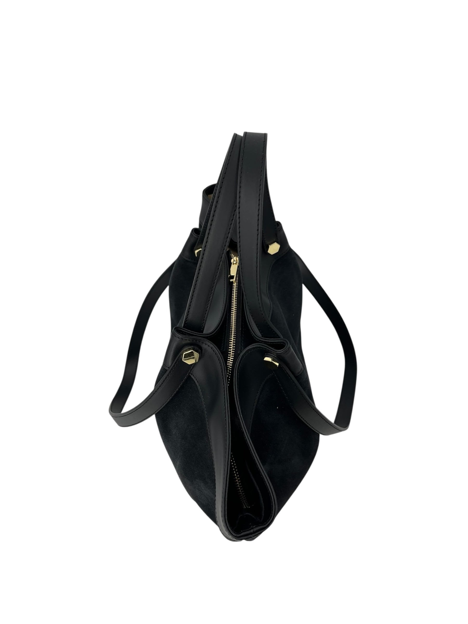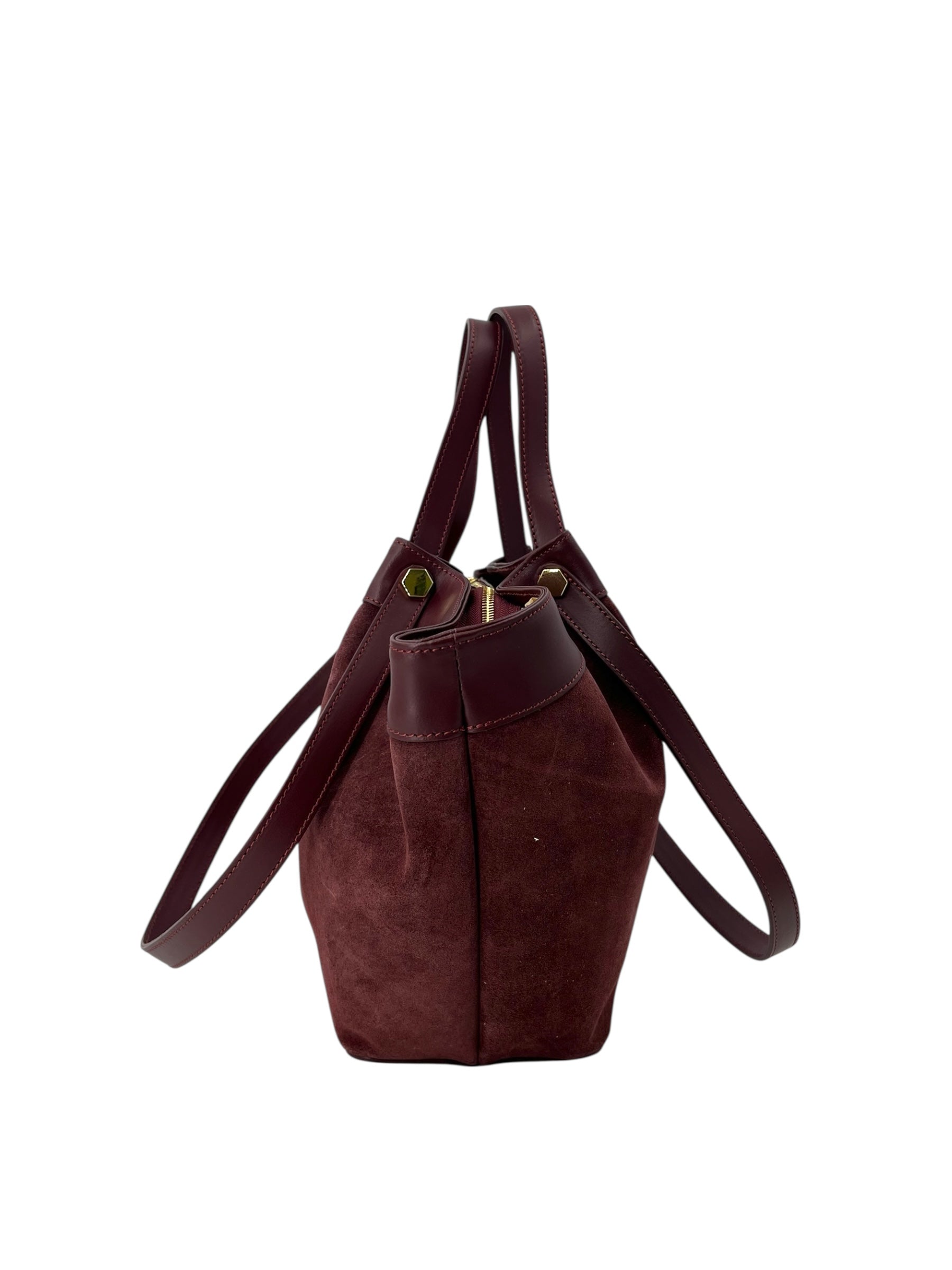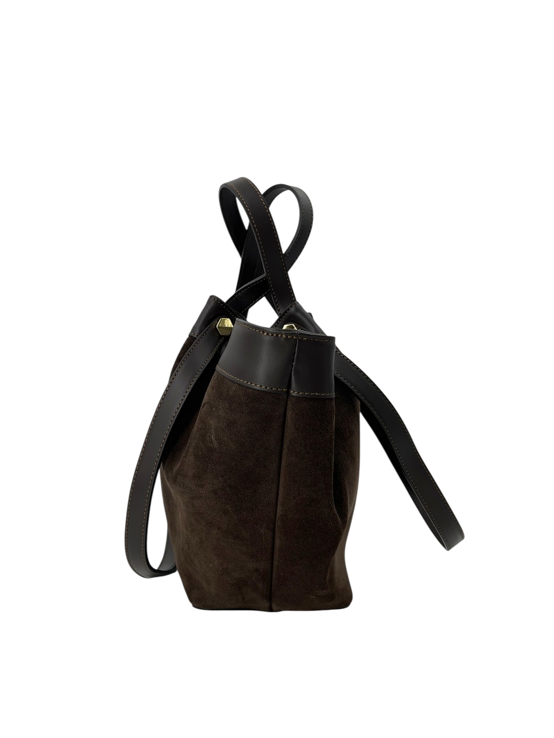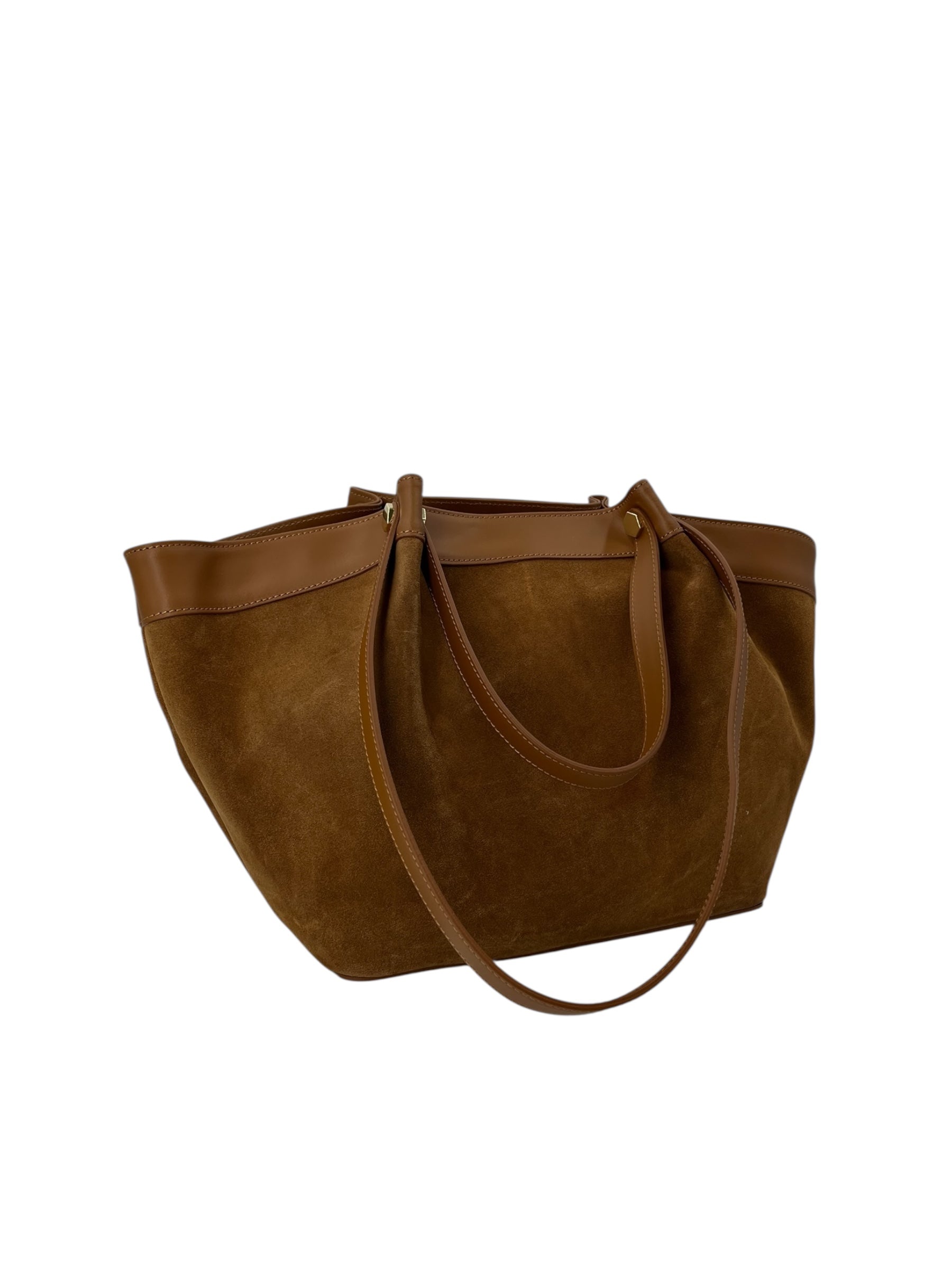 La borsa Arya è un capolavoro di artigianalità italiana che unisce la morbidezza del camoscio alla struttura elegante della pelle liscia, dando vita a un accessorio intramontabile, raffinato e pratico.