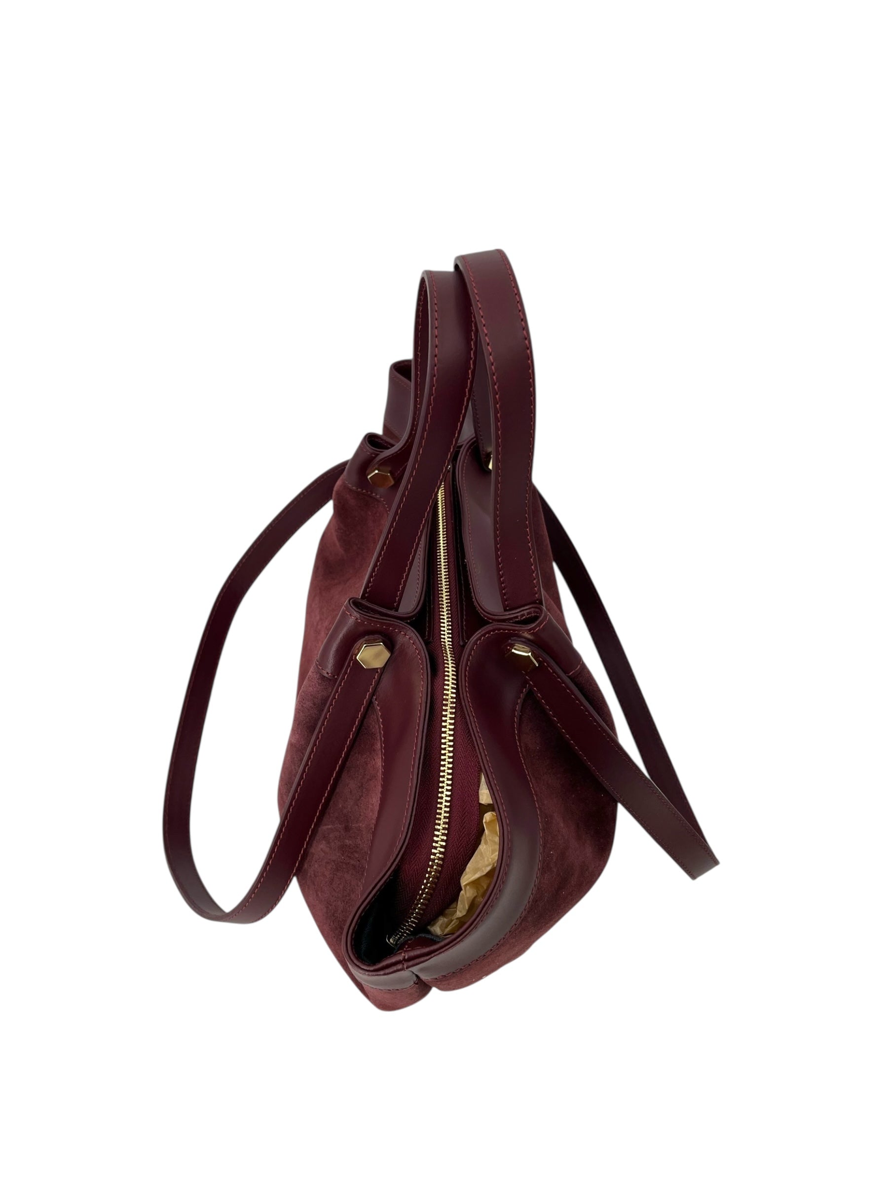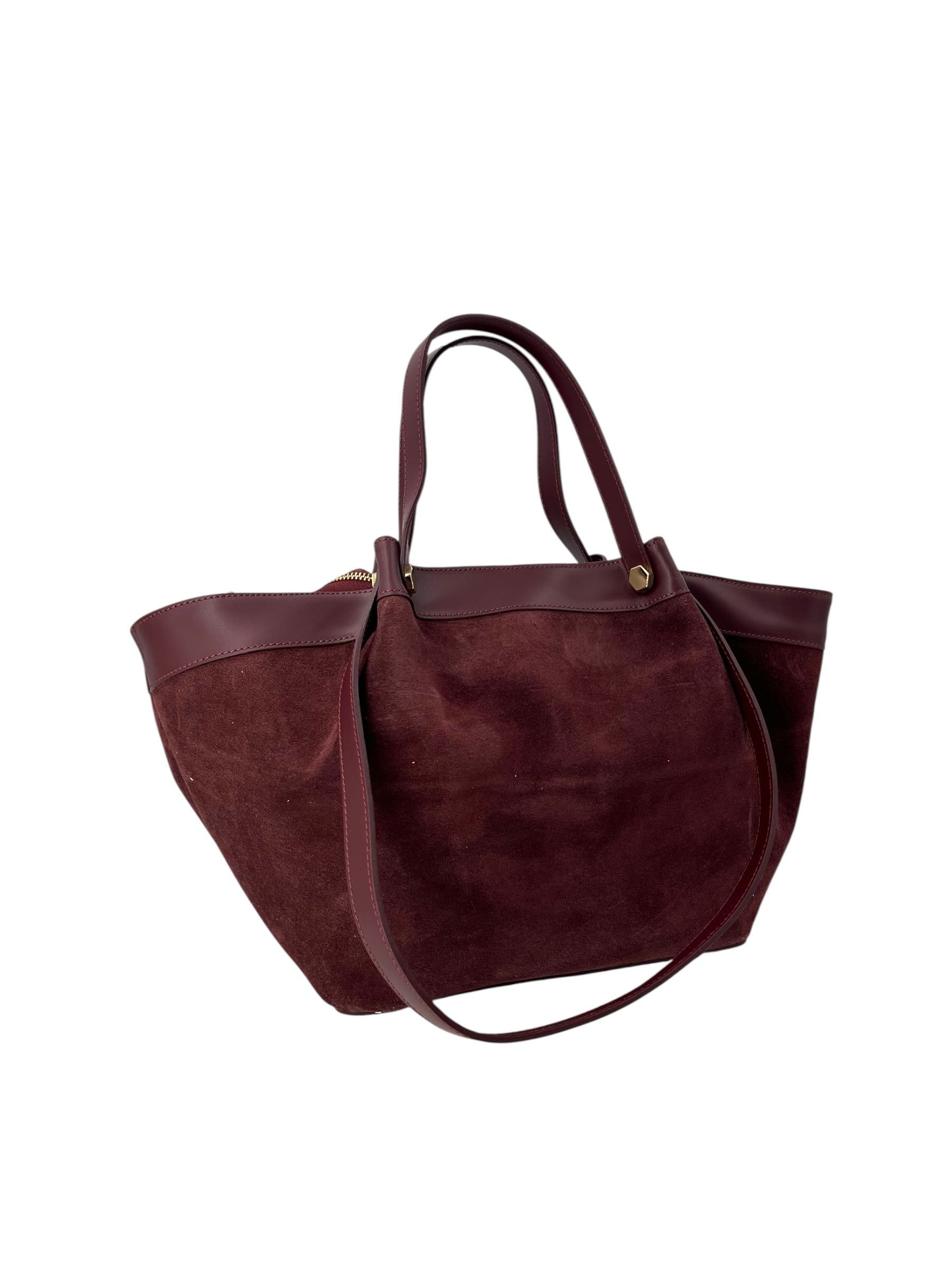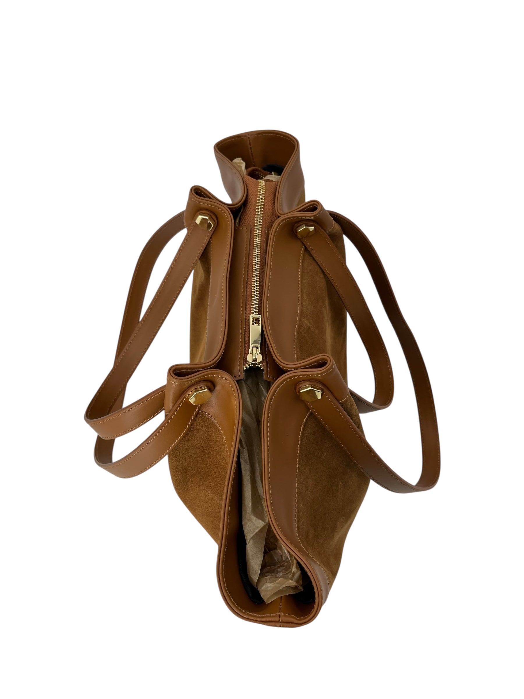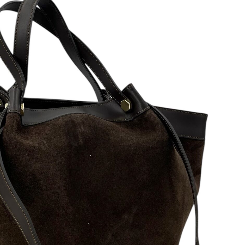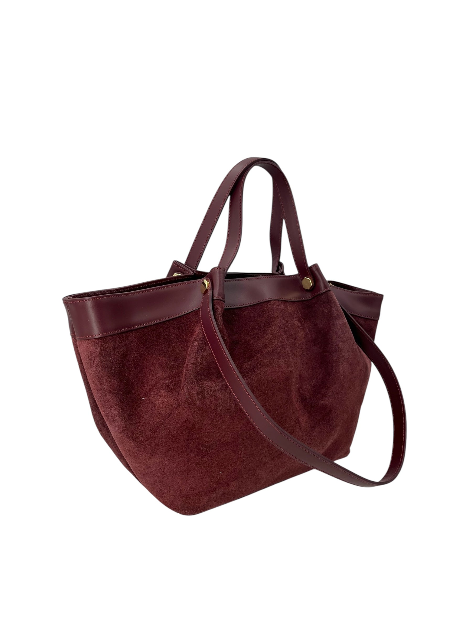 La borsa Arya è un capolavoro di artigianalità italiana che unisce la morbidezza del camoscio alla struttura elegante della pelle liscia, dando vita a un accessorio intramontabile, raffinato e pratico.