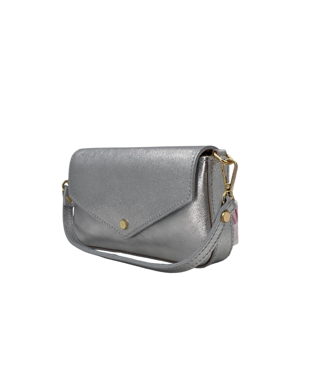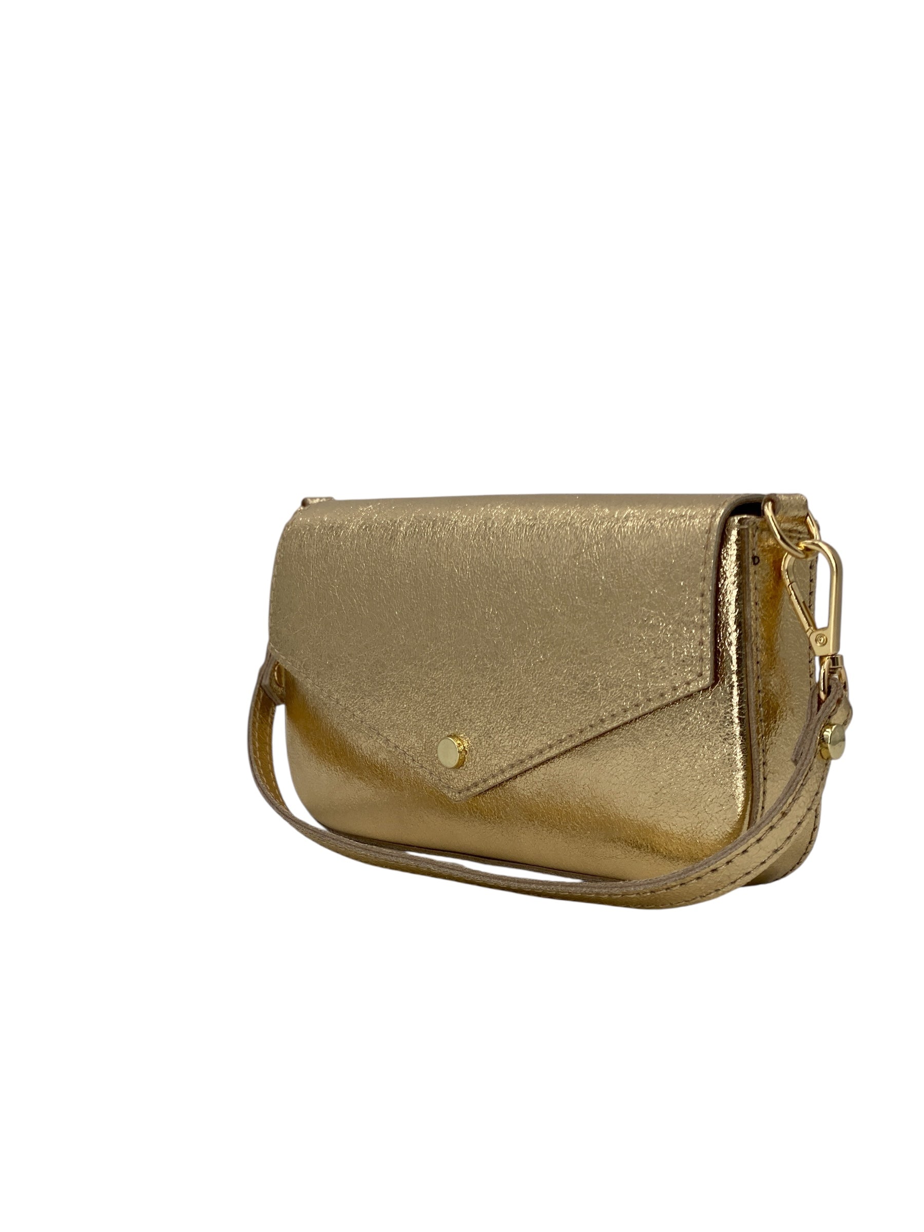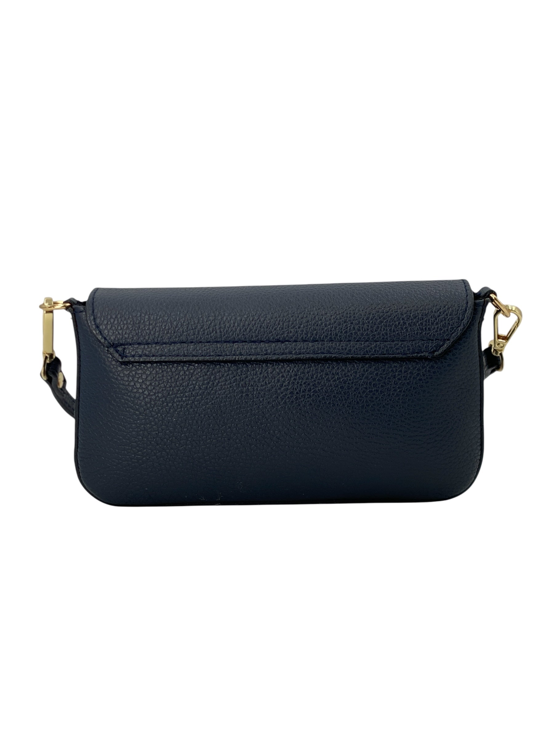 Il manico corto amovibile e la tracolla a catena dorata anch'essa removibile e inclusa permettono di indossarla sia a mano che a spalla, adattandosi con naturalezza dal giorno alla sera. L’interno foderato offre lo spazio giusto per smartphone, chiavi e piccoli oggetti indispensabili.