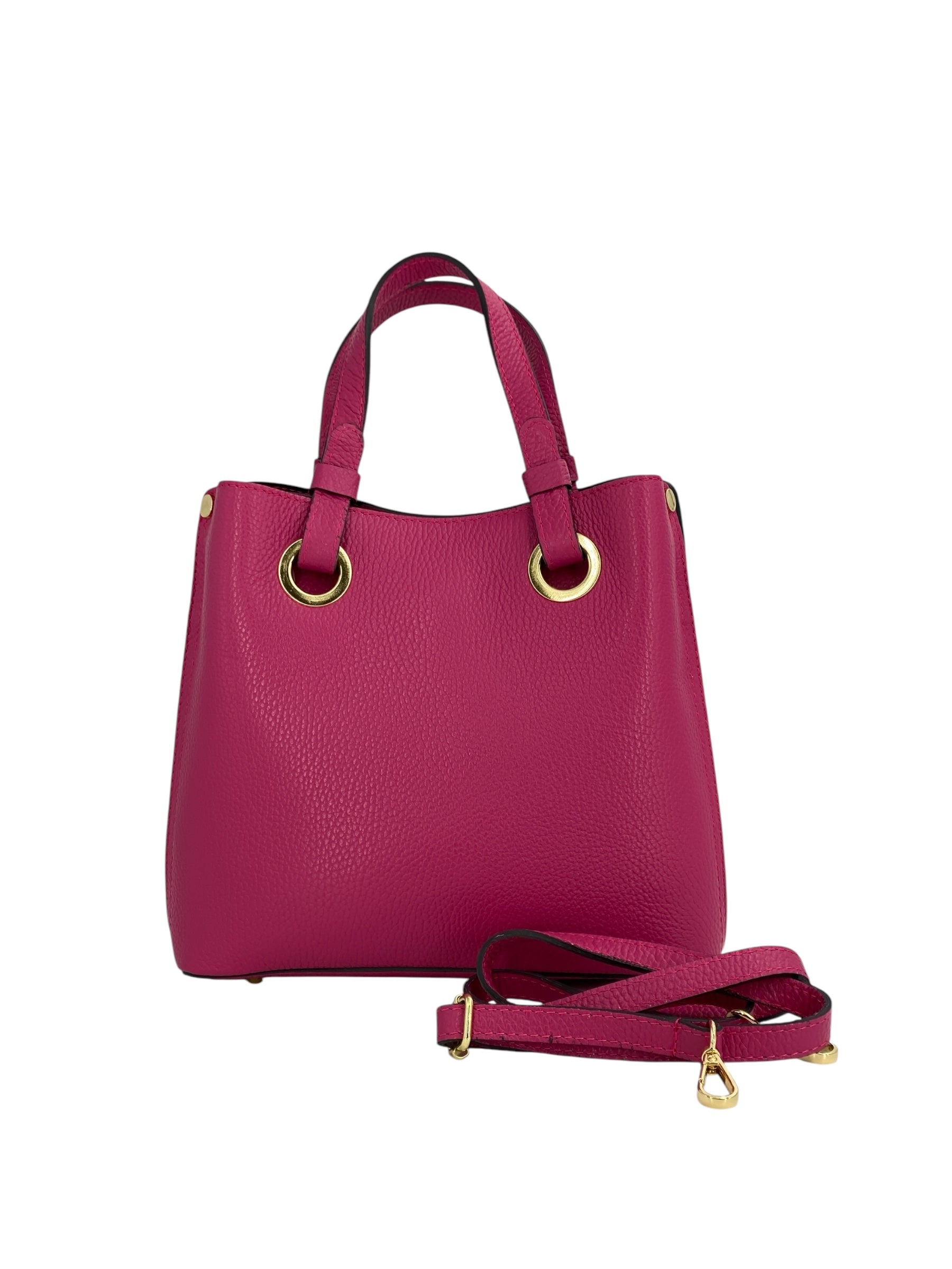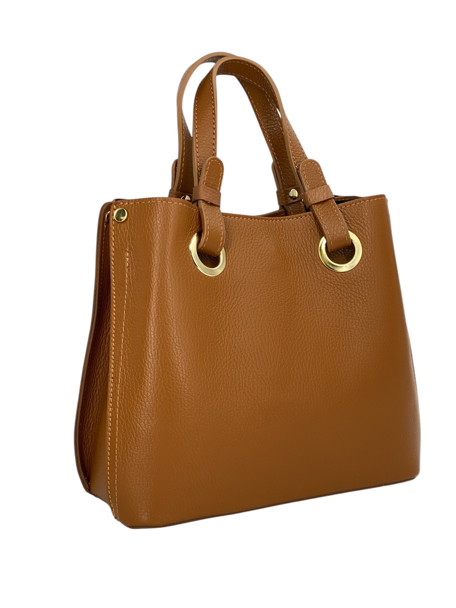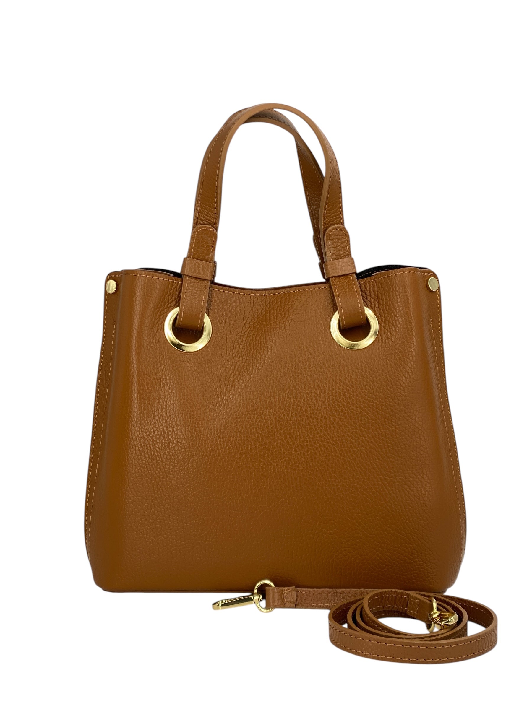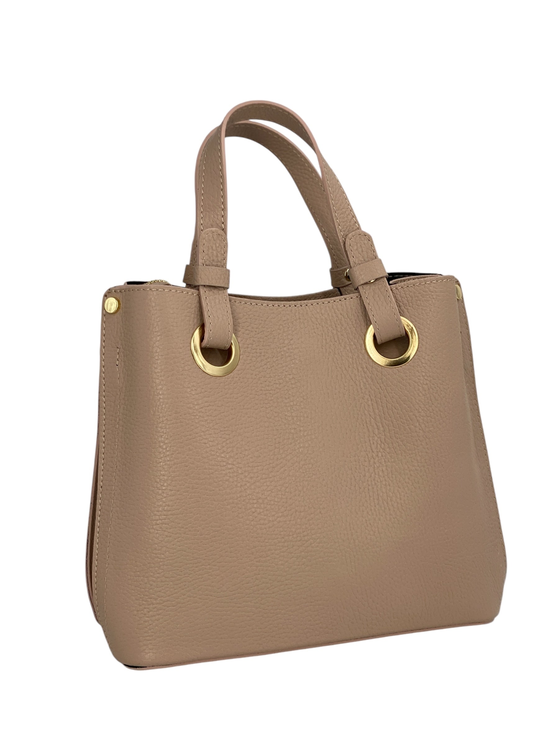 Delphine – Borsa a spalla e a mano donna in vera pelle italiana con doppi manici corti rinforzati e tracolla regolabile removibile