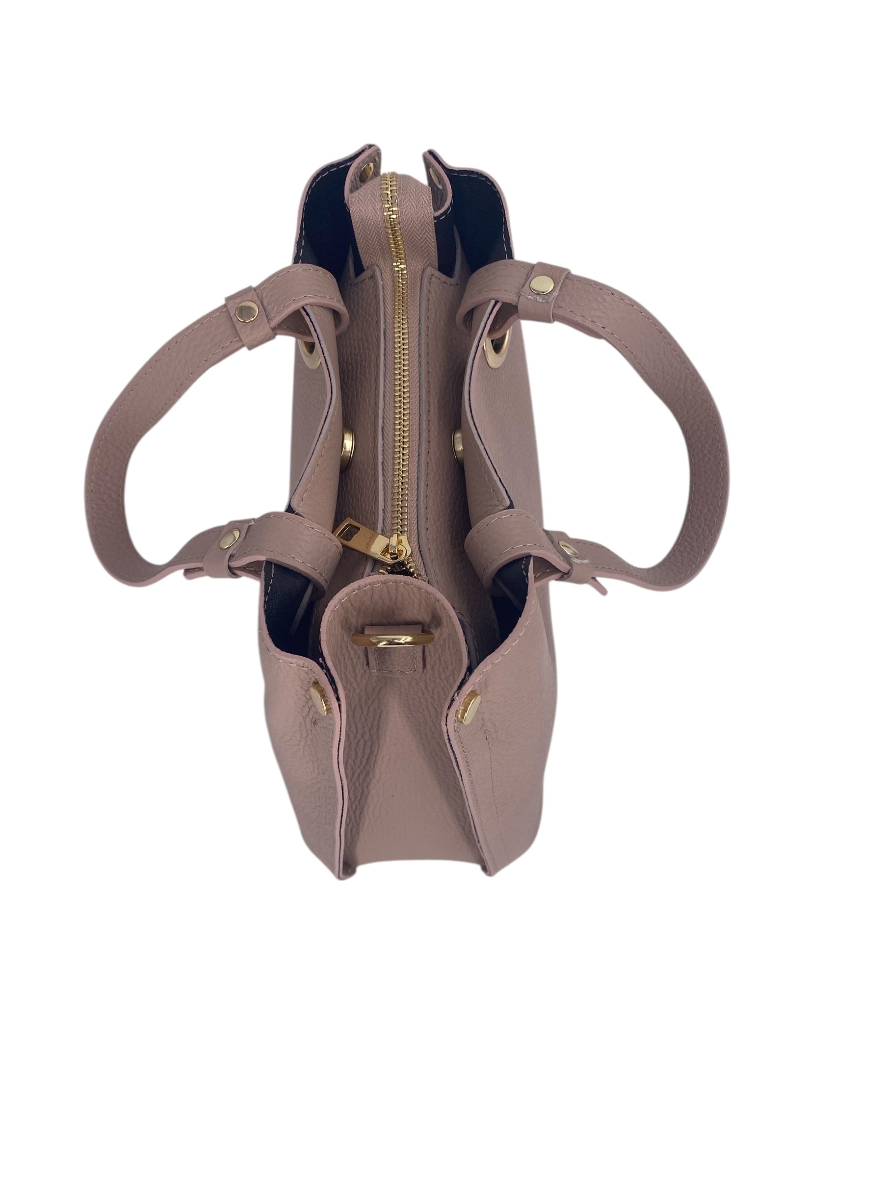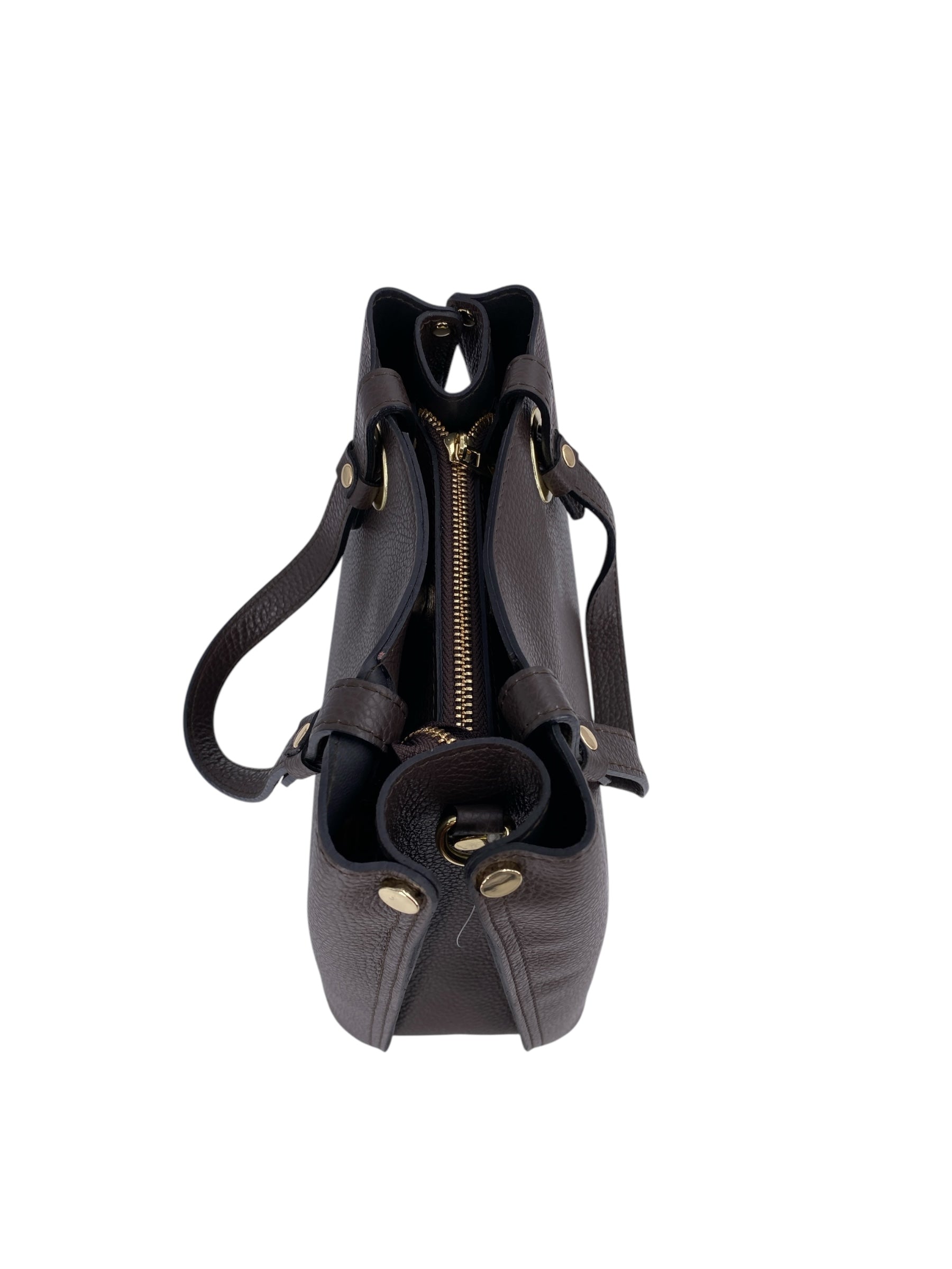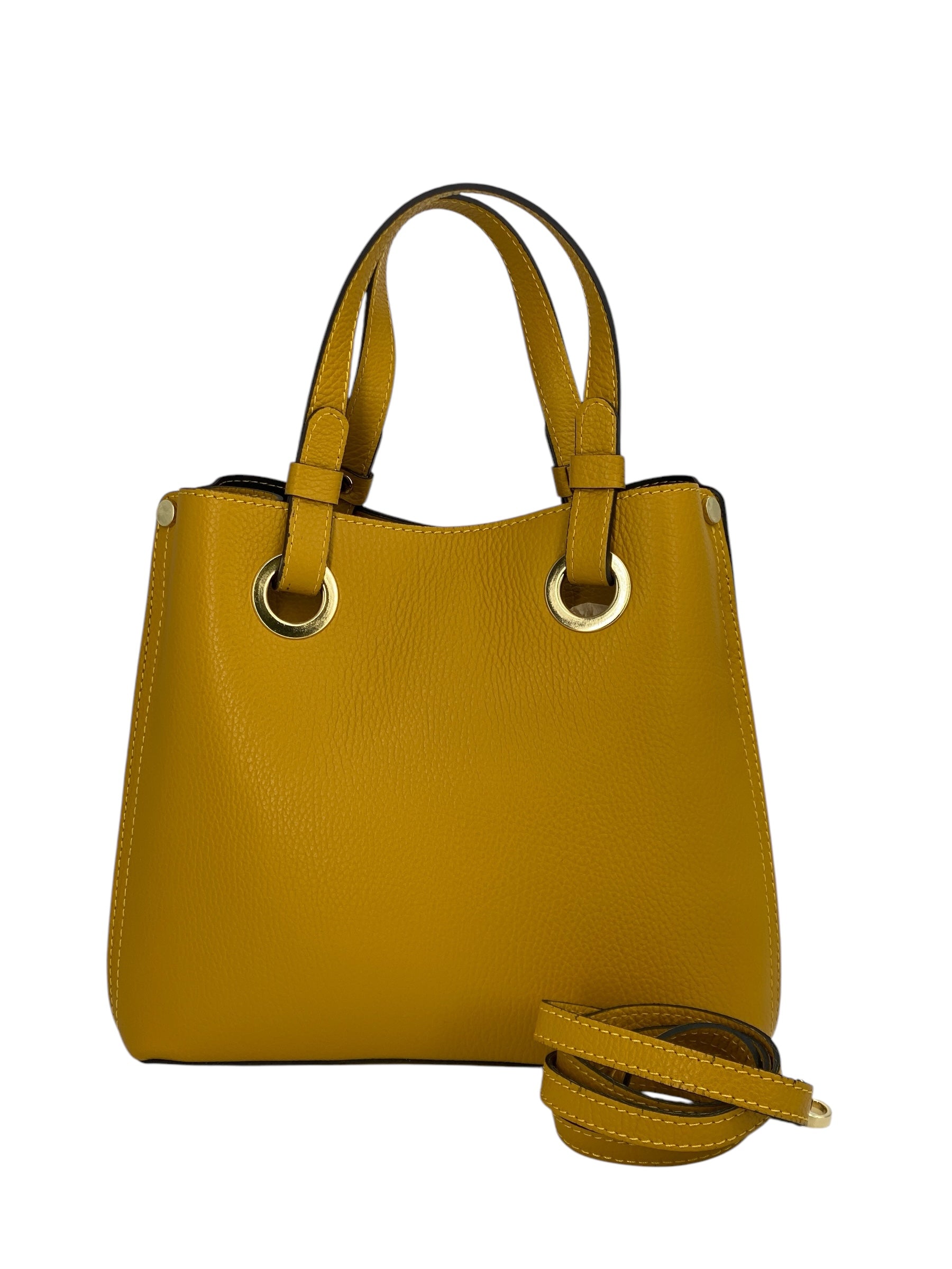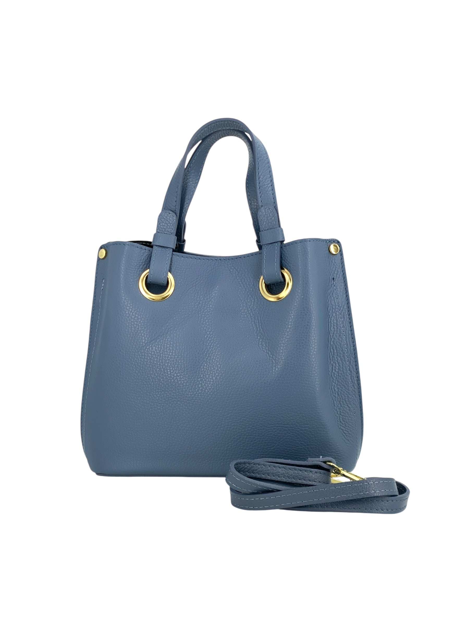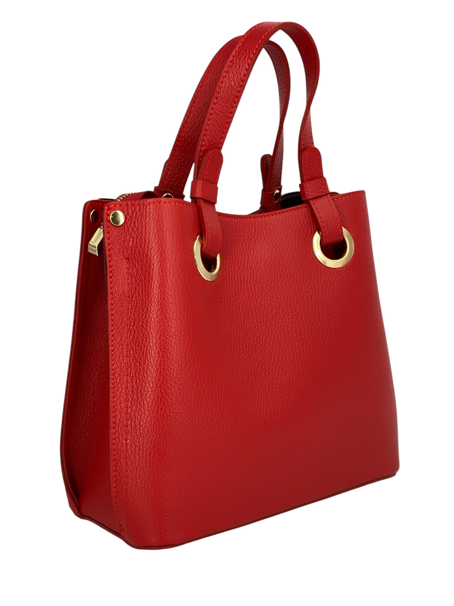 Delphine – Borsa a spalla e a mano donna in vera pelle italiana con doppi manici corti rinforzati e tracolla regolabile removibile