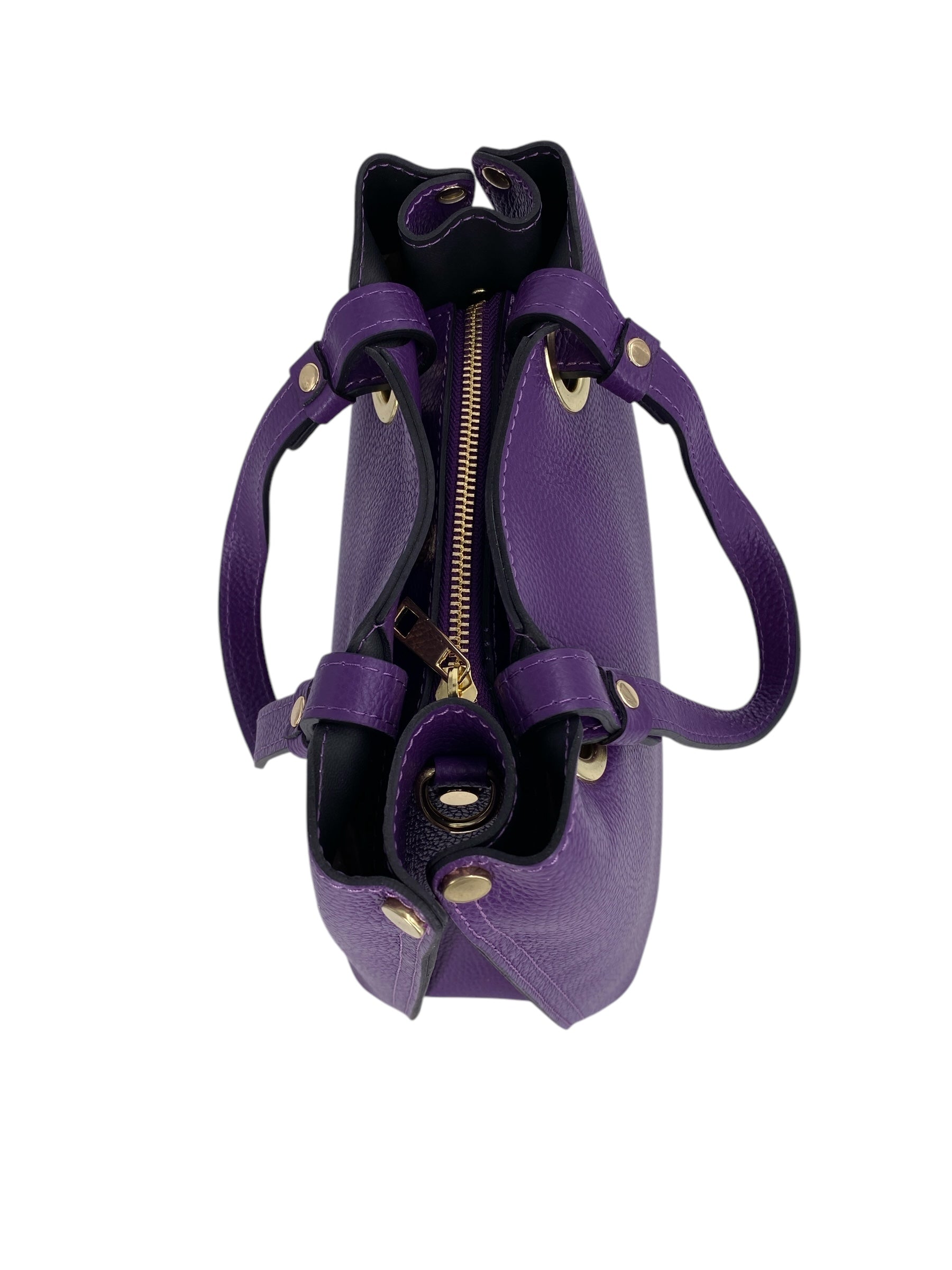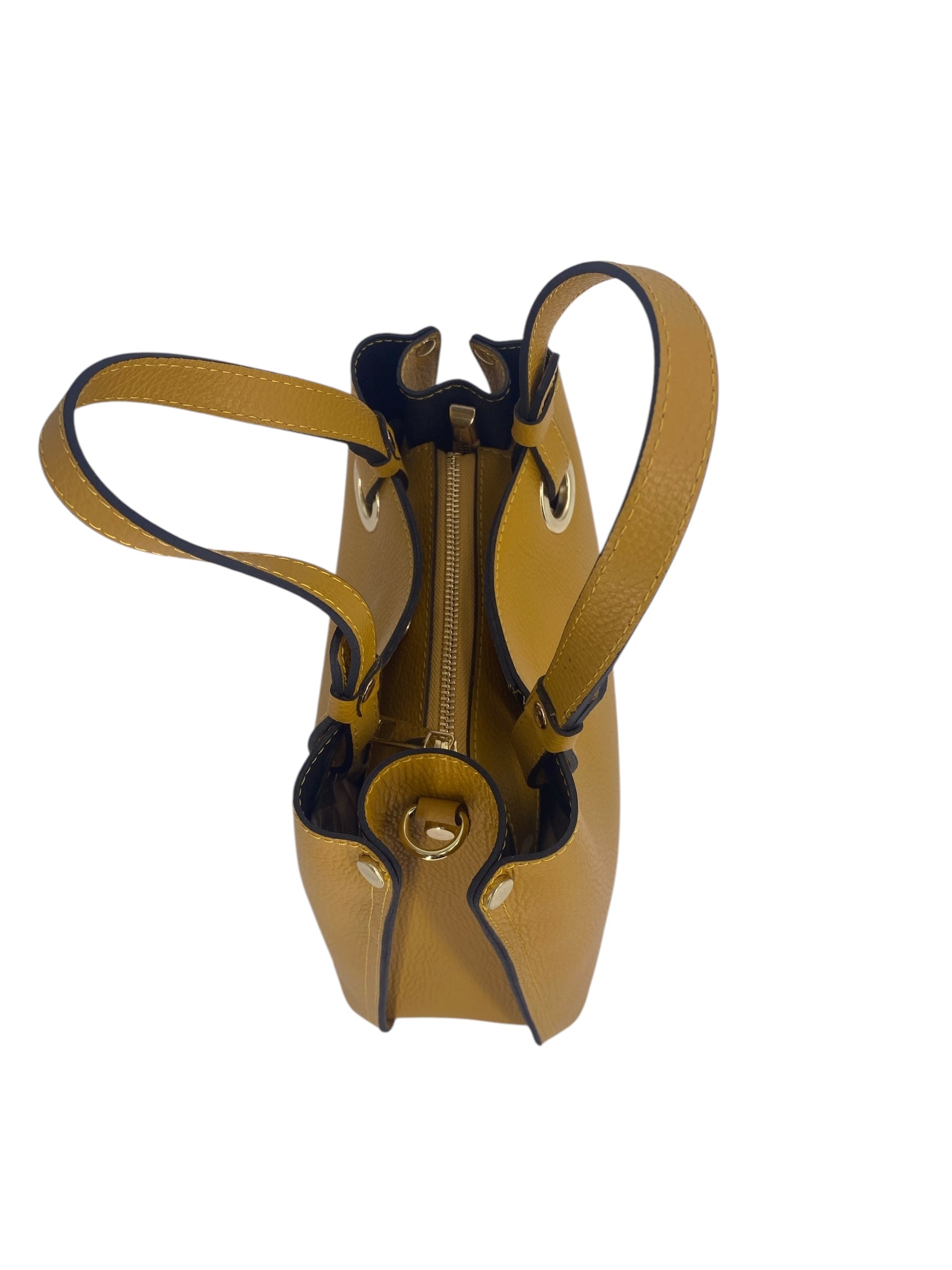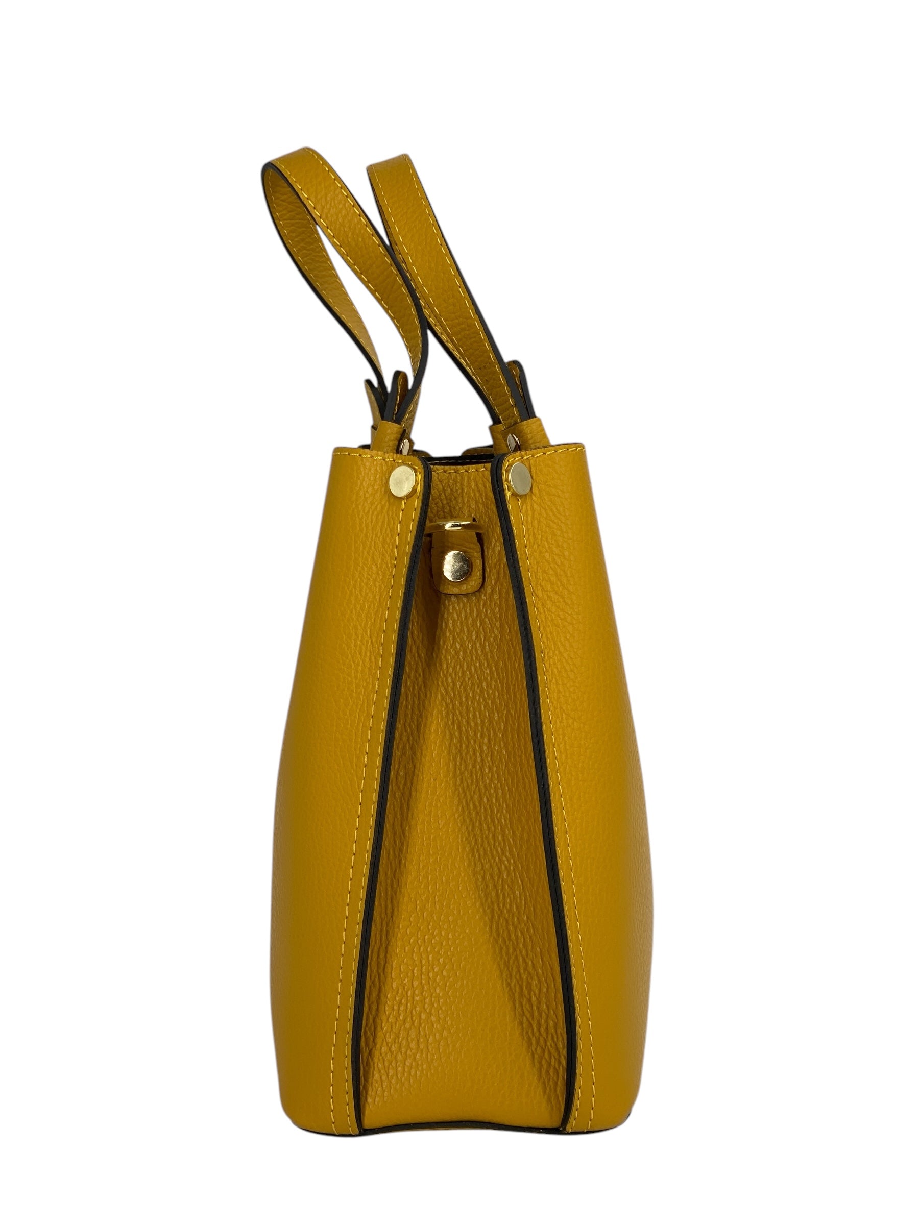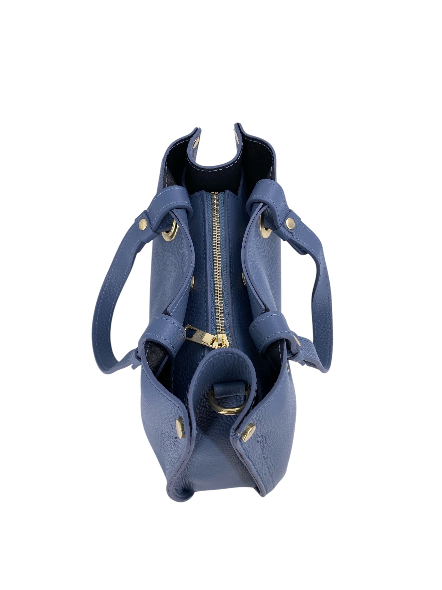 Delphine – Borsa a spalla e a mano donna in vera pelle italiana con doppi manici corti rinforzati e tracolla regolabile removibile