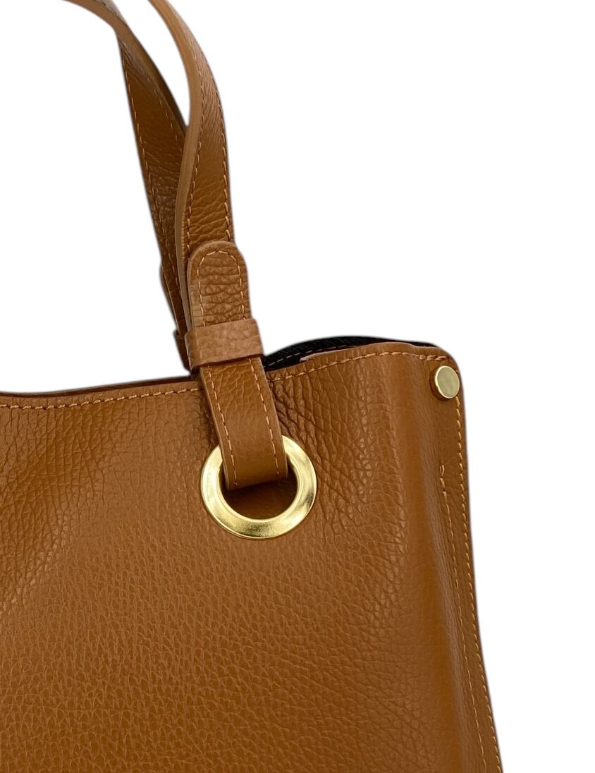 Inoltre unisce la raffinatezza della pelle italiana alla praticità di una shopper capiente, diventando l’alleata perfetta in ogni momento della giornata.