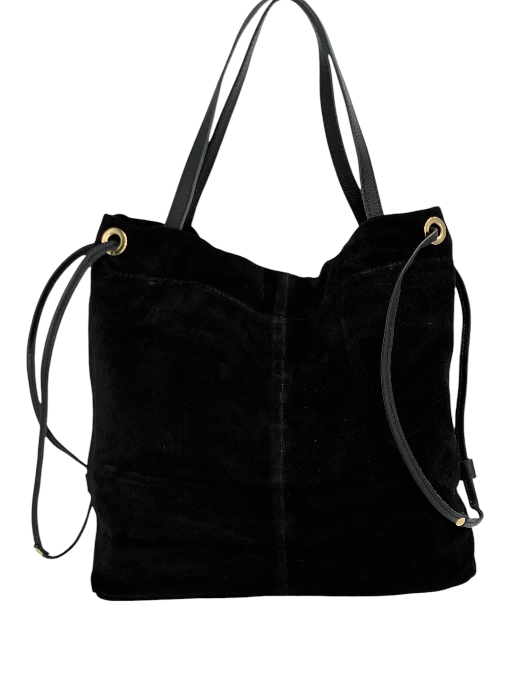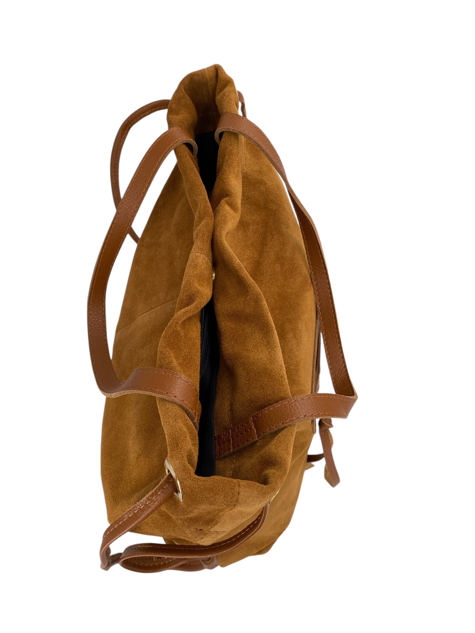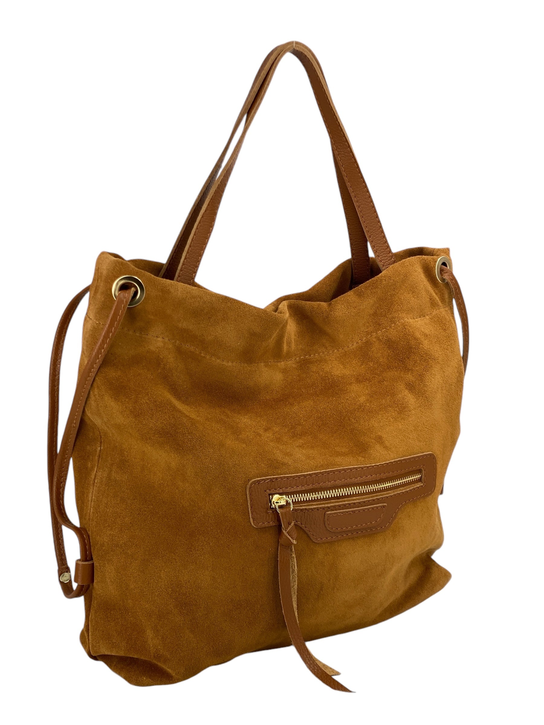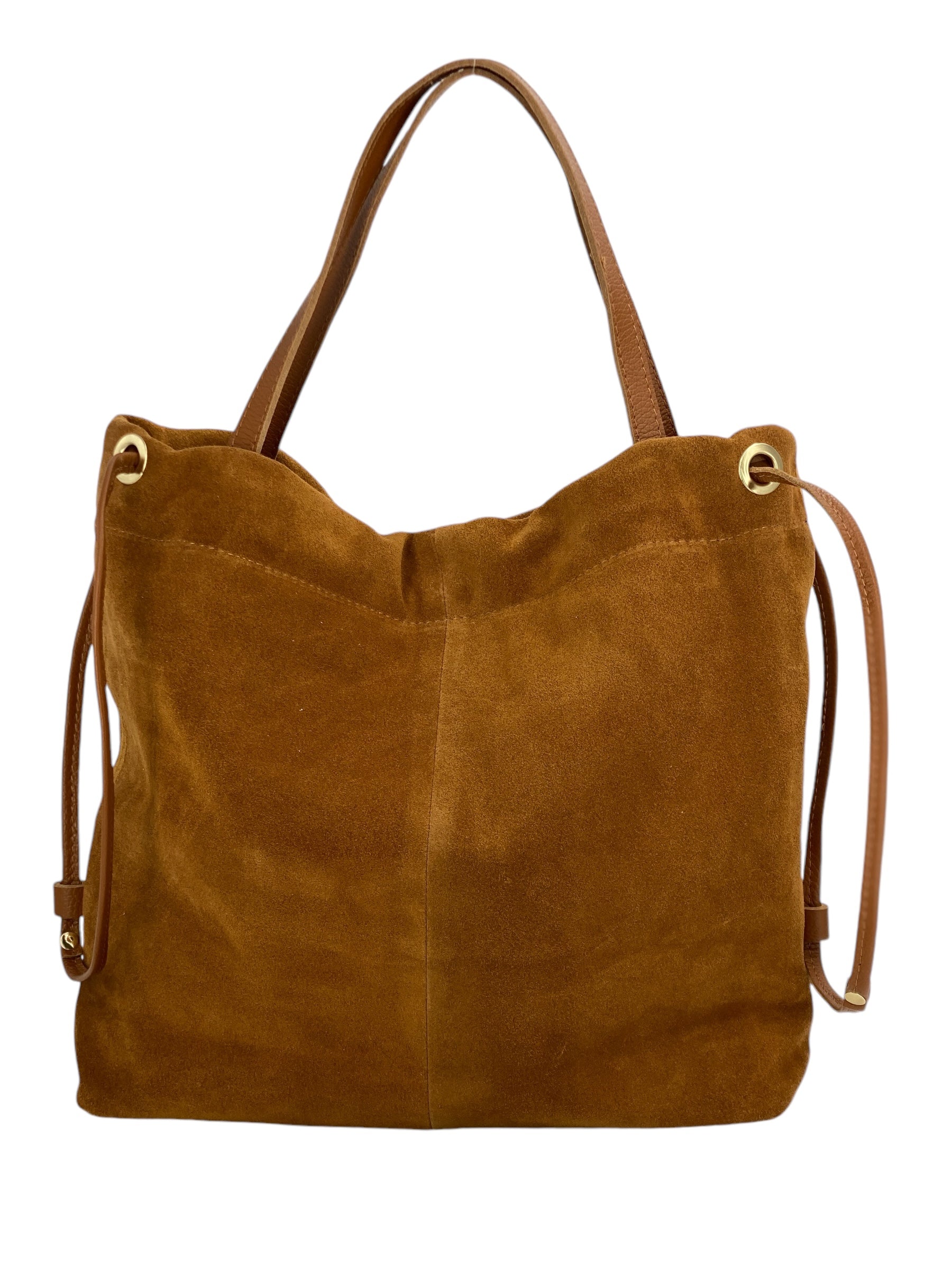 Materiali premium: vera pelle e camoscio di altissima qualità per una borsa che dura nel tempo.