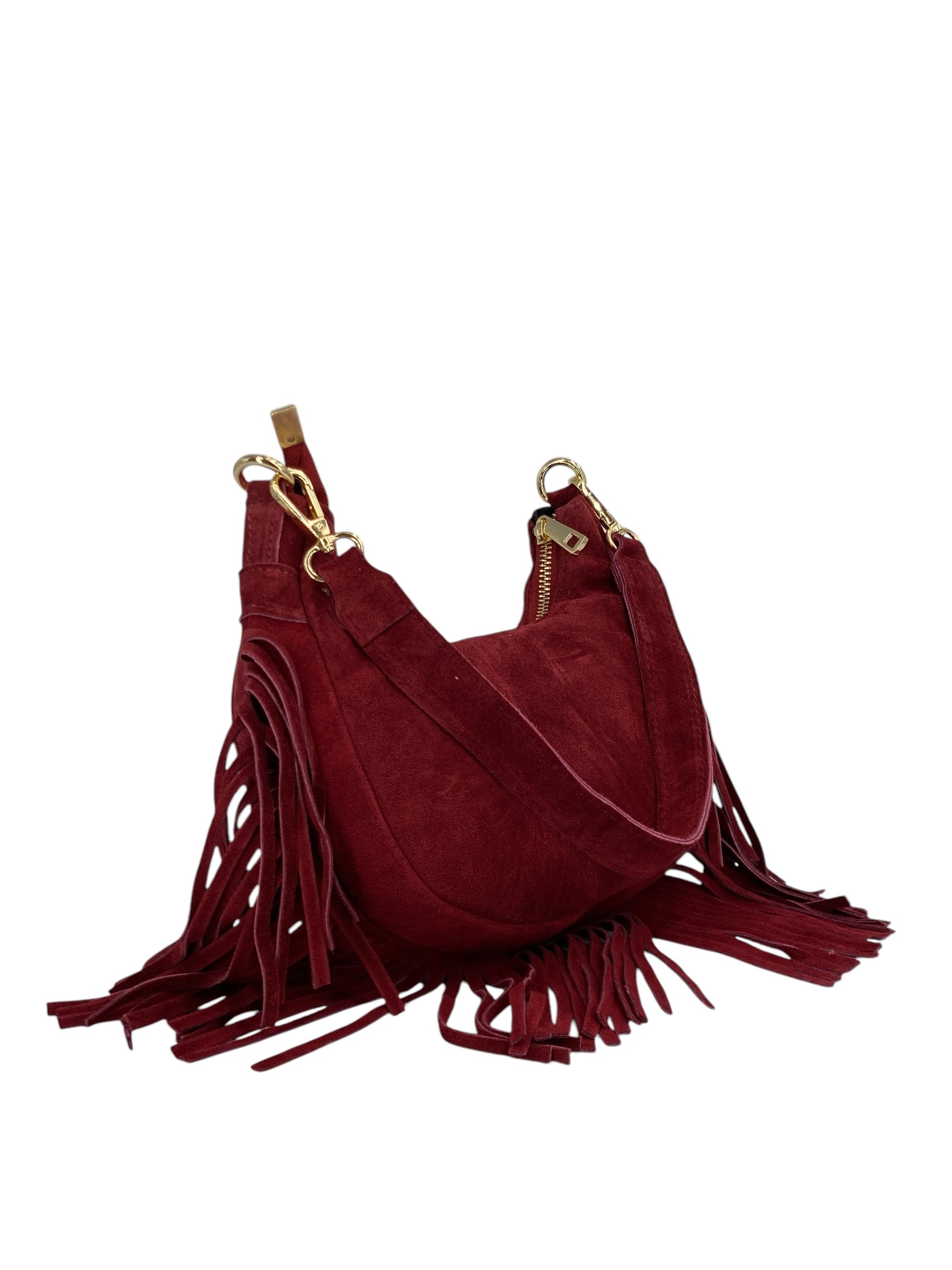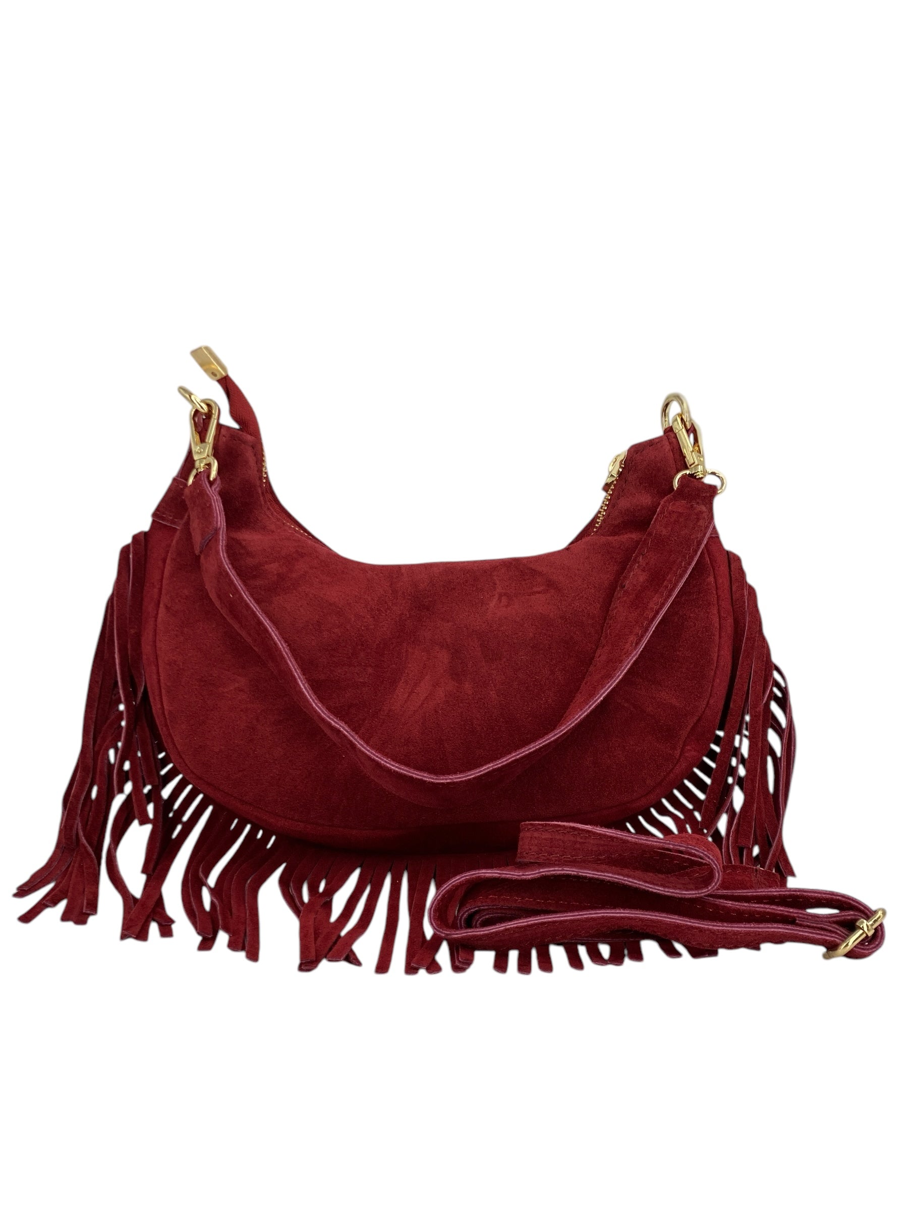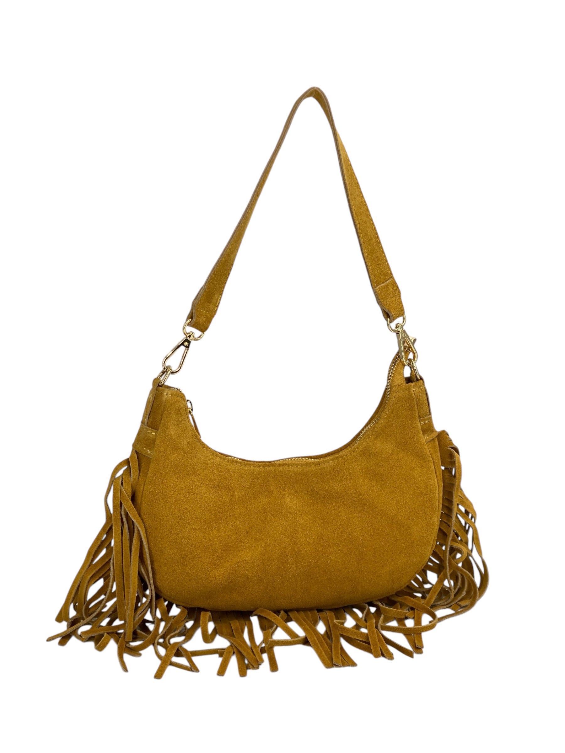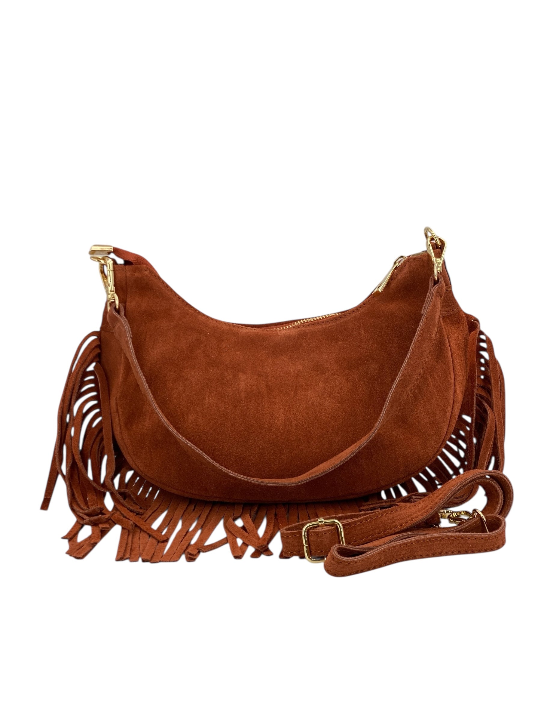 Carine è la borsa perfetta per completare outfit casual chic, urban style e look da giorno. Le frange in pelle aggiungono un tocco dinamico e trendy, rendendola adatta sia a un uso quotidiano che per occasioni informali.