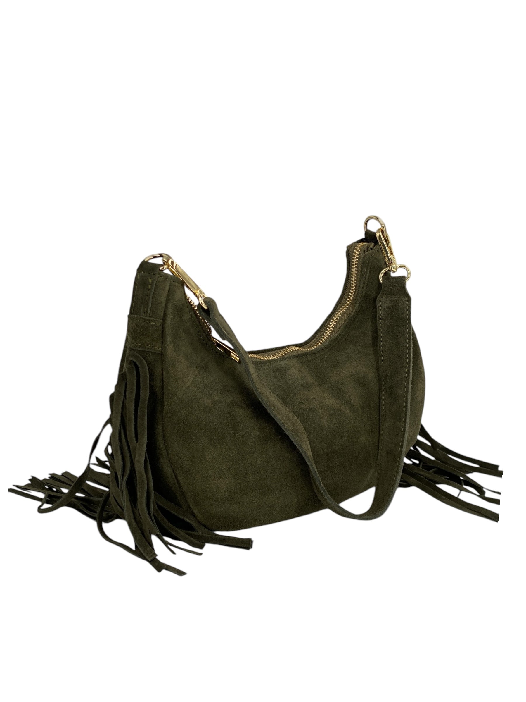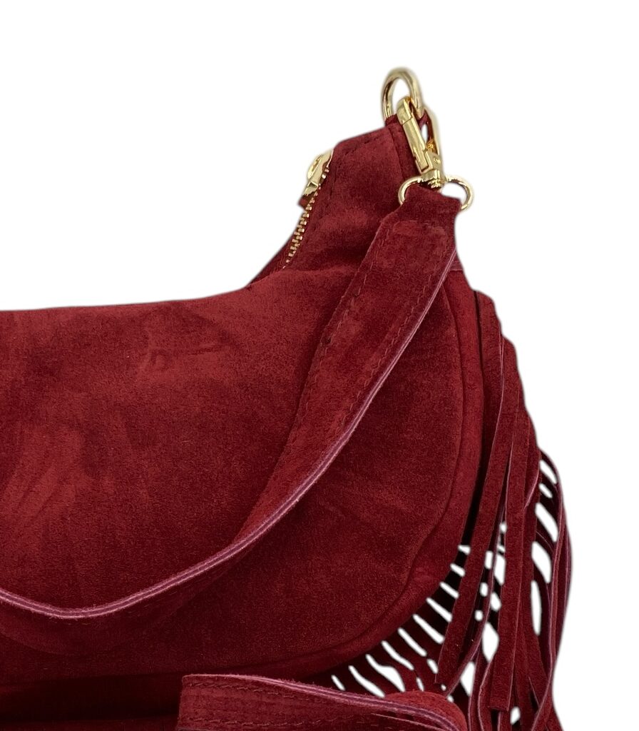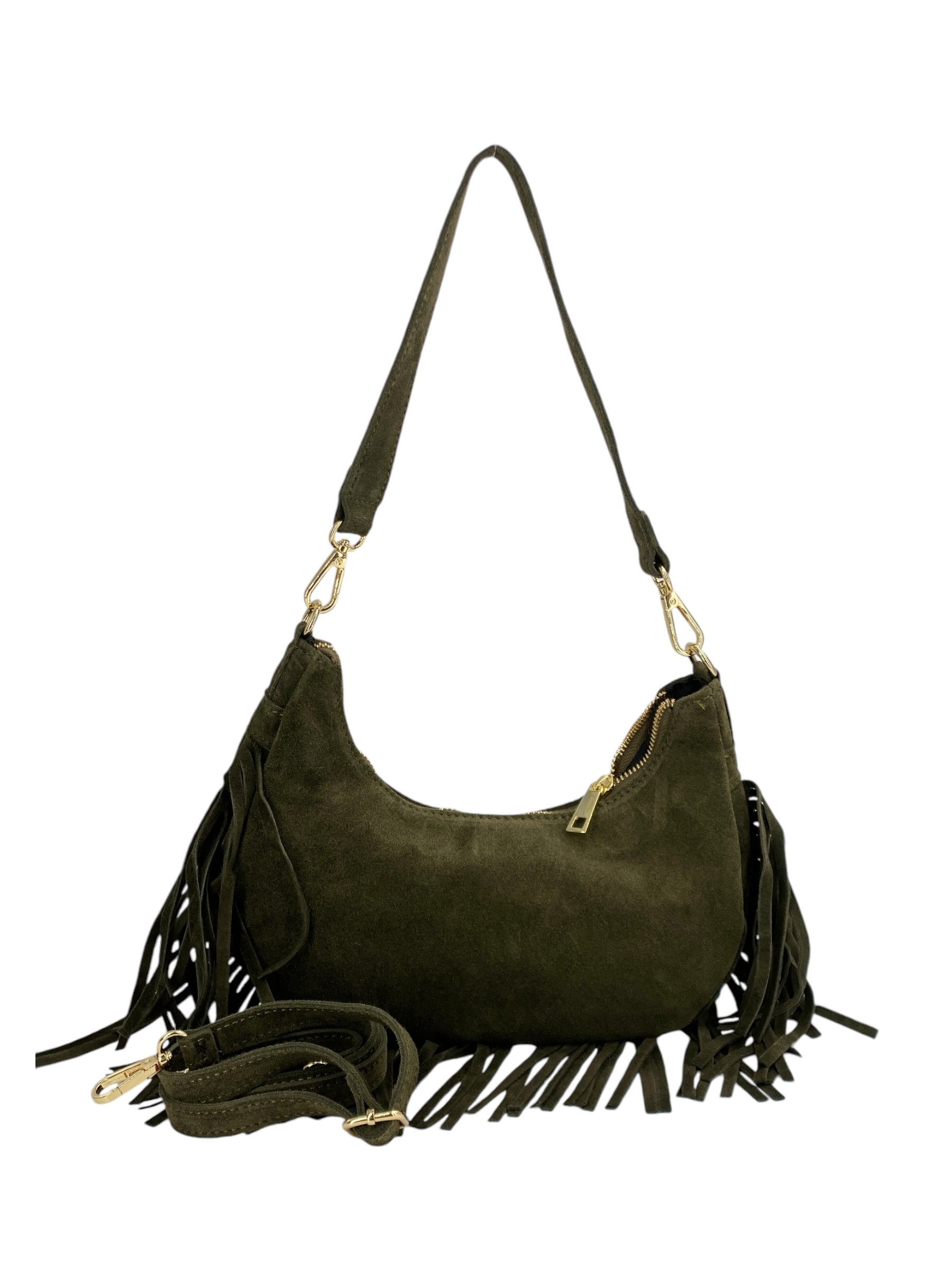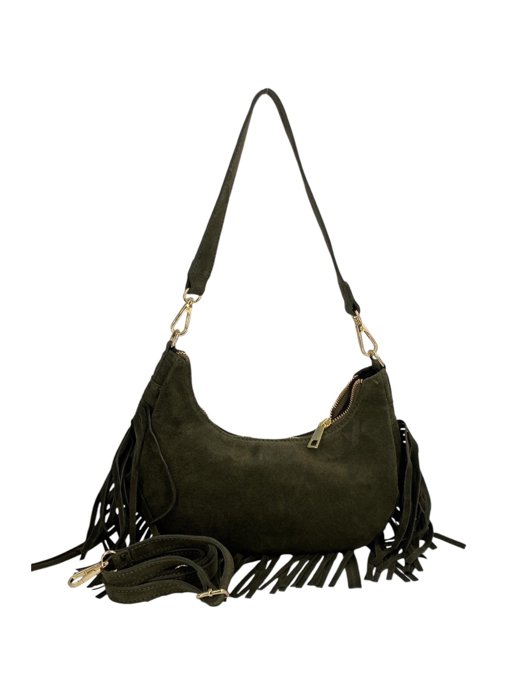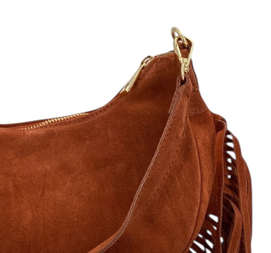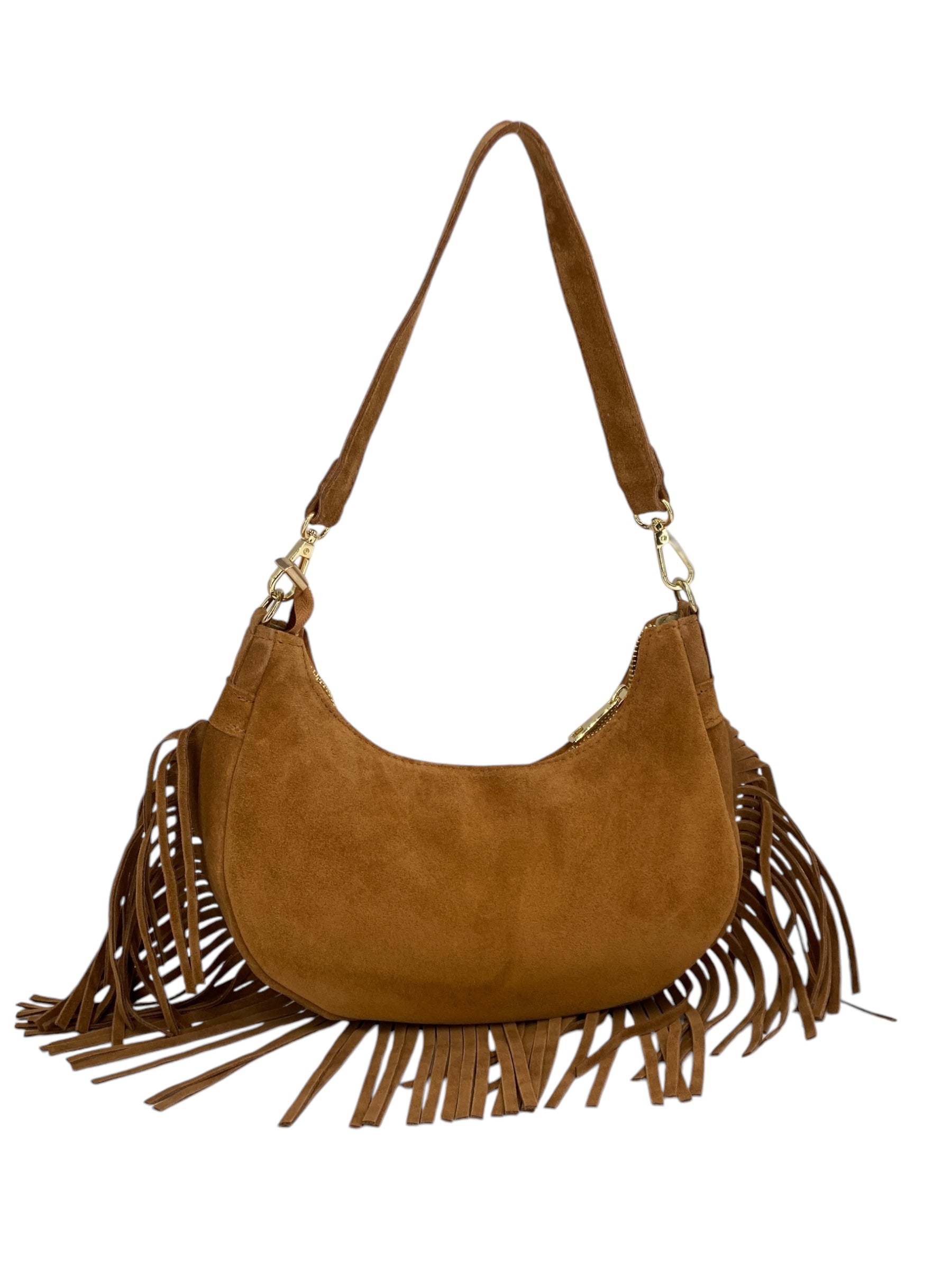 Carine è la borsa perfetta per completare outfit casual chic, urban style e look da giorno. Le frange in pelle aggiungono un tocco dinamico e trendy, rendendola adatta sia a un uso quotidiano che per occasioni informali.