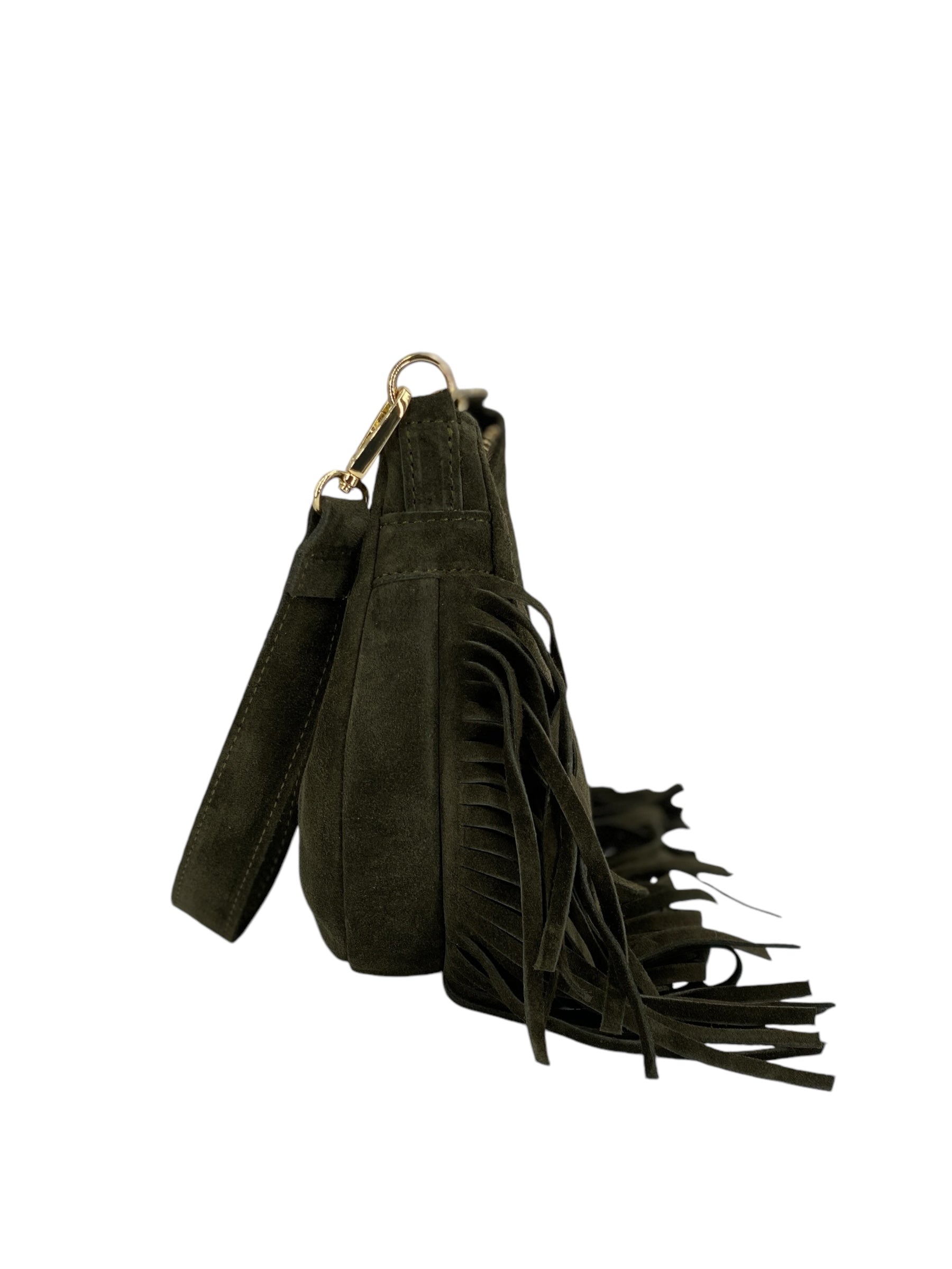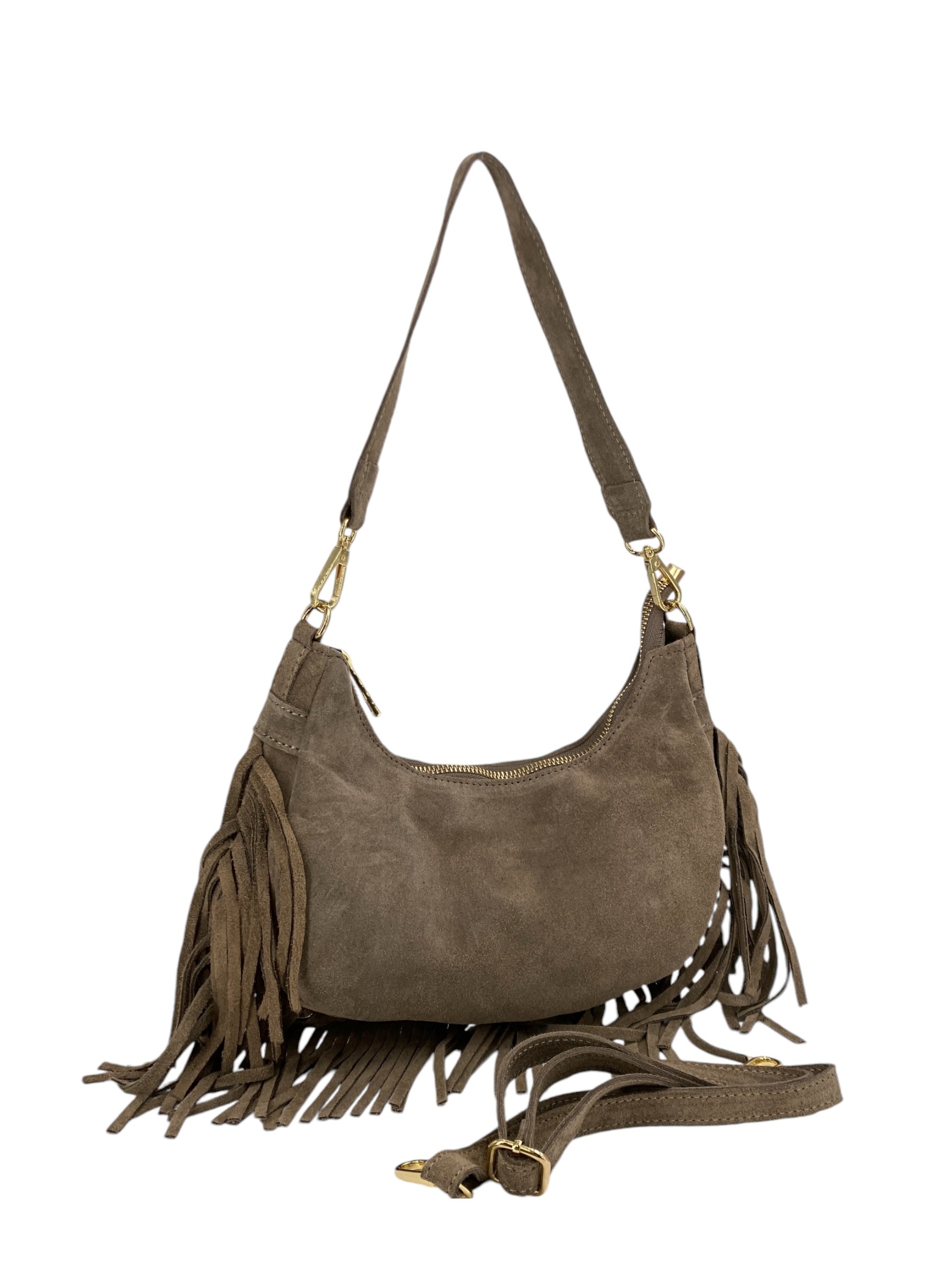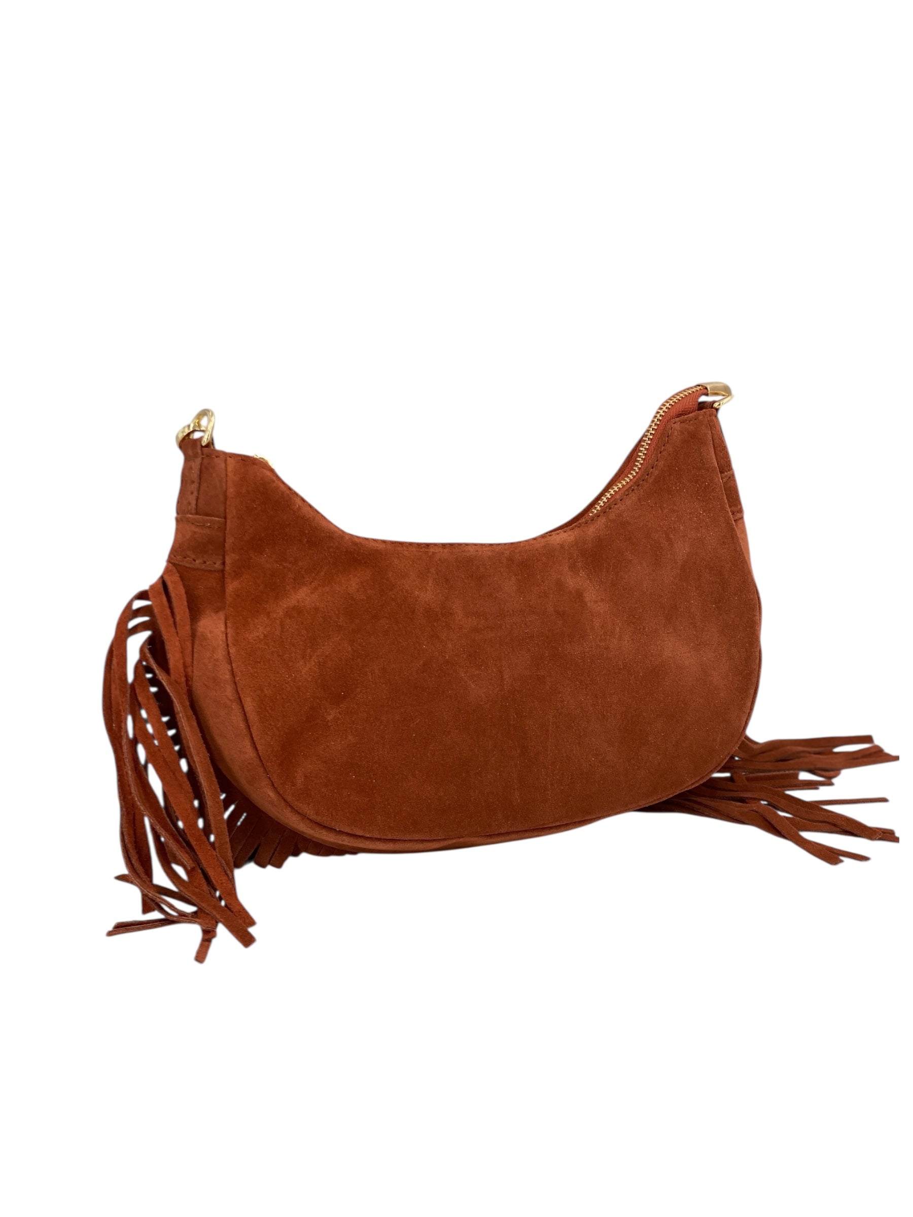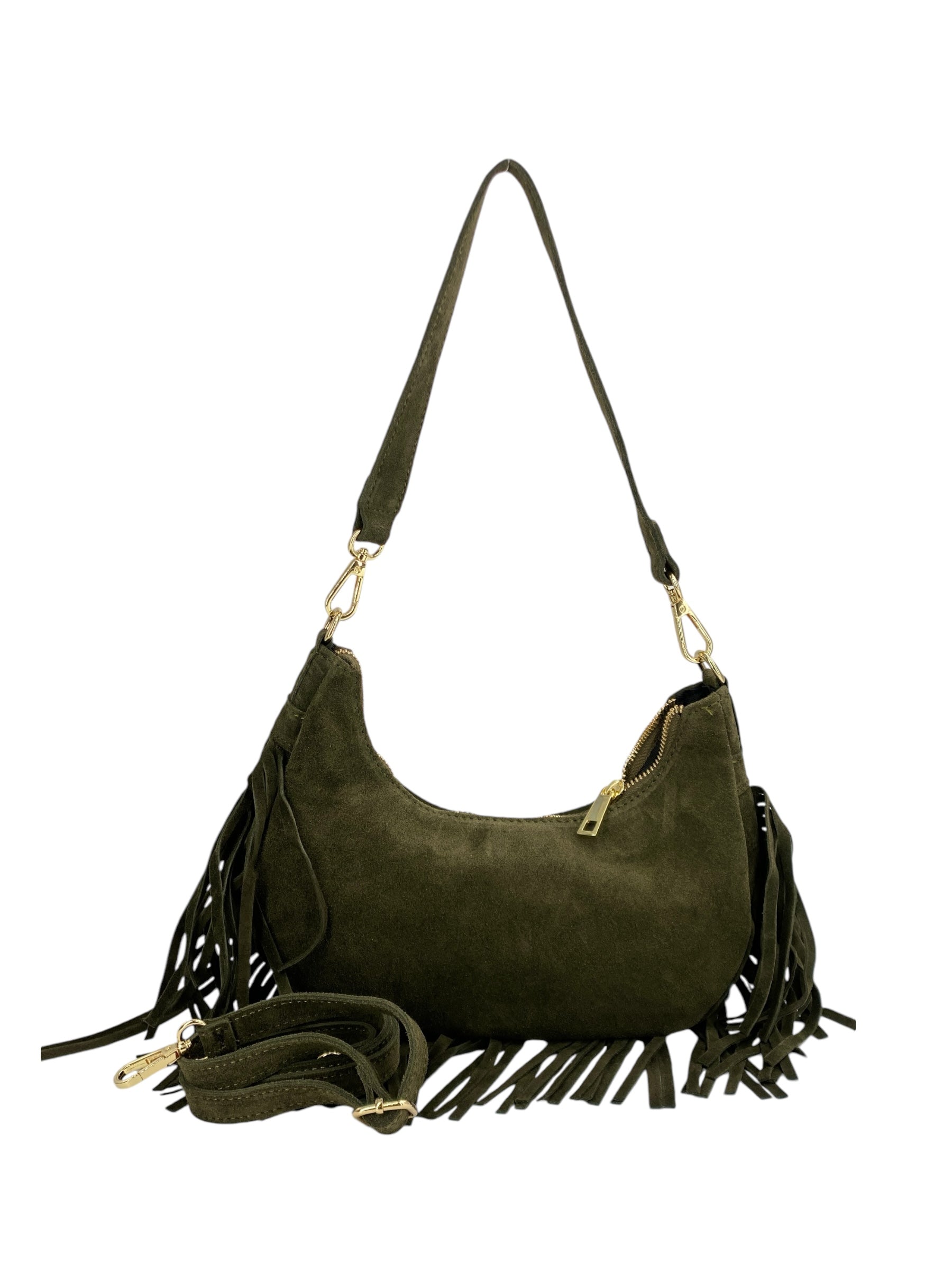Carine è la borsa perfetta per completare outfit casual chic, urban style e look da giorno. Le frange in pelle aggiungono un tocco dinamico e trendy, rendendola adatta sia a un uso quotidiano che per occasioni informali.