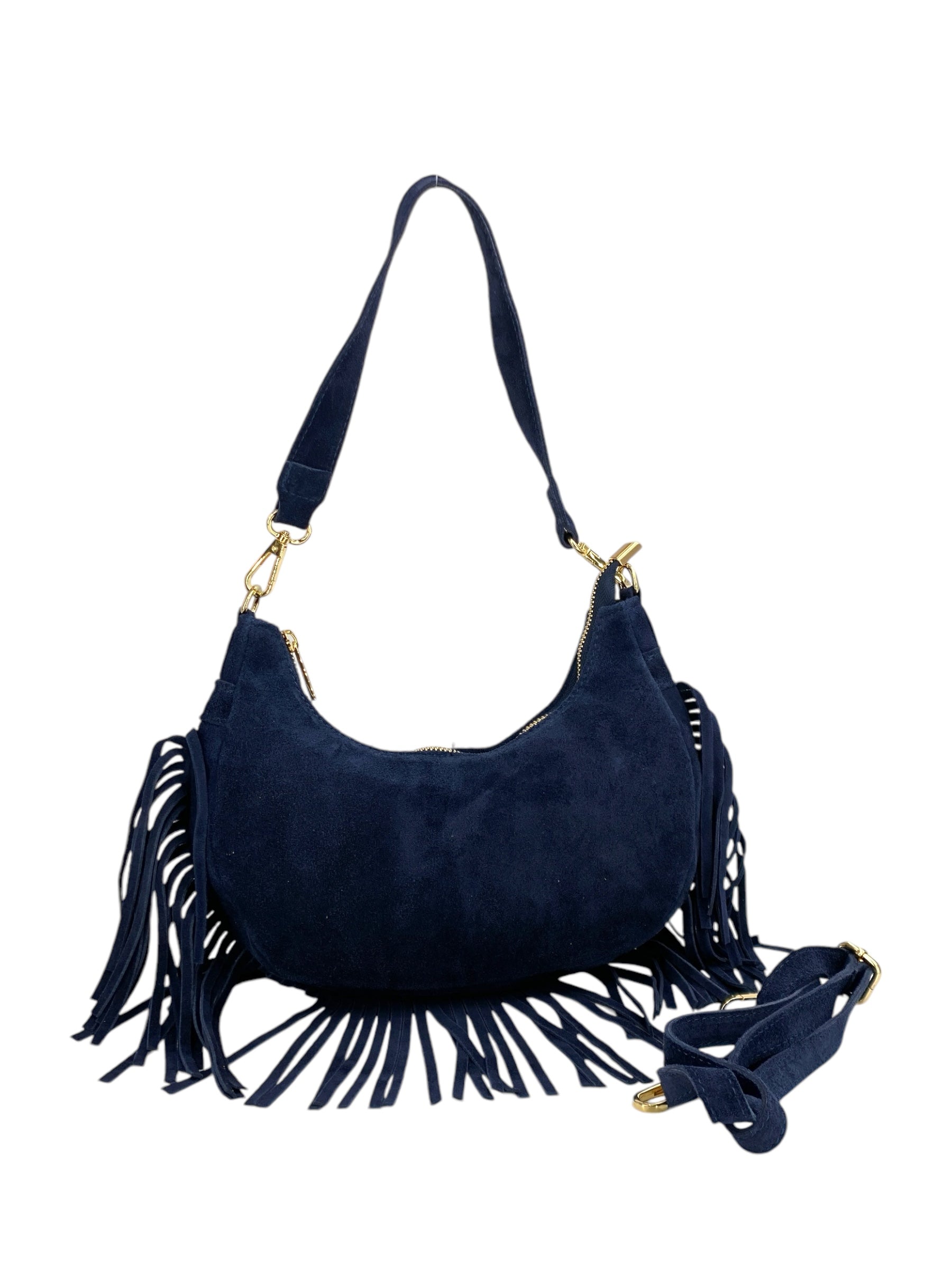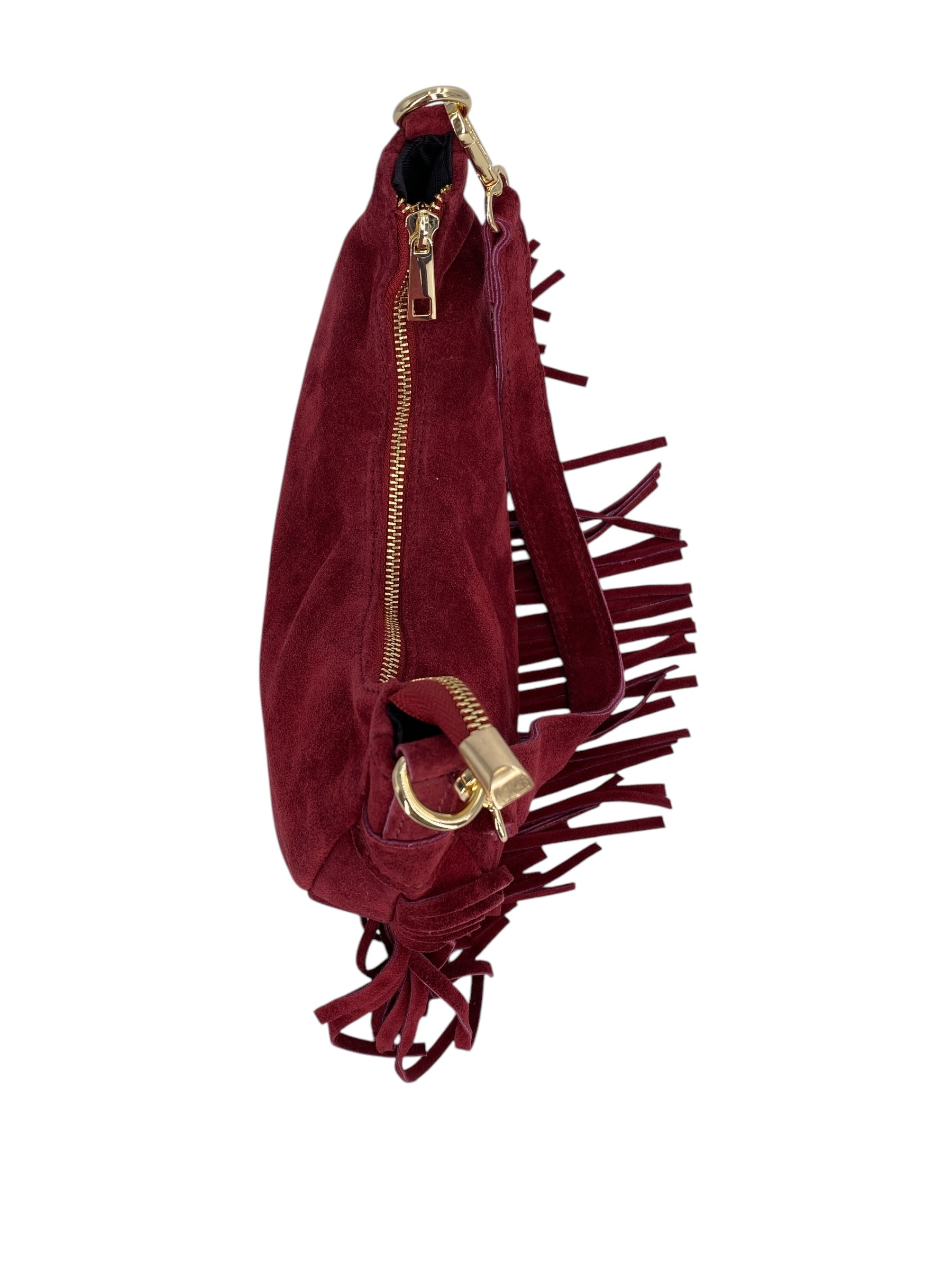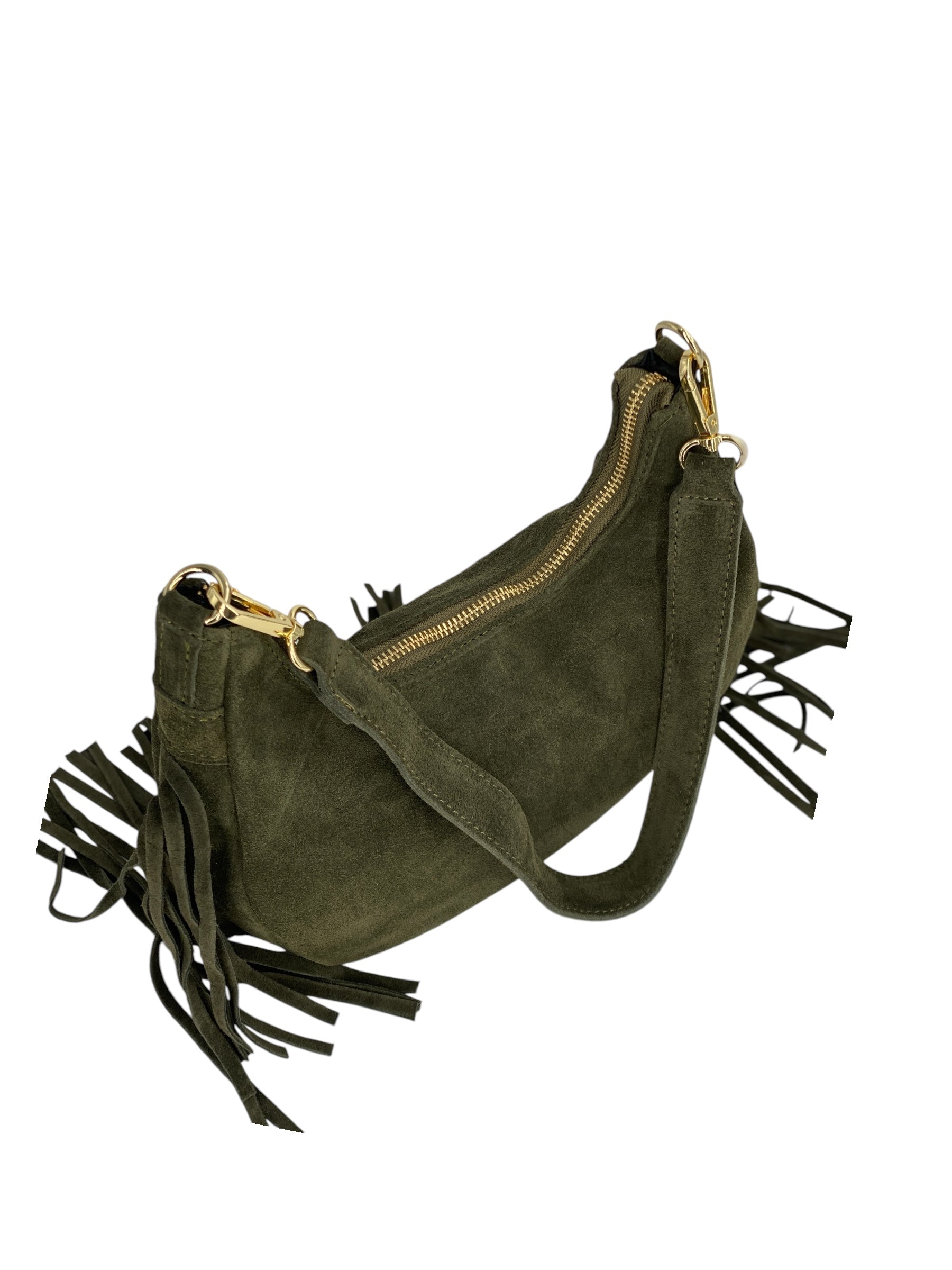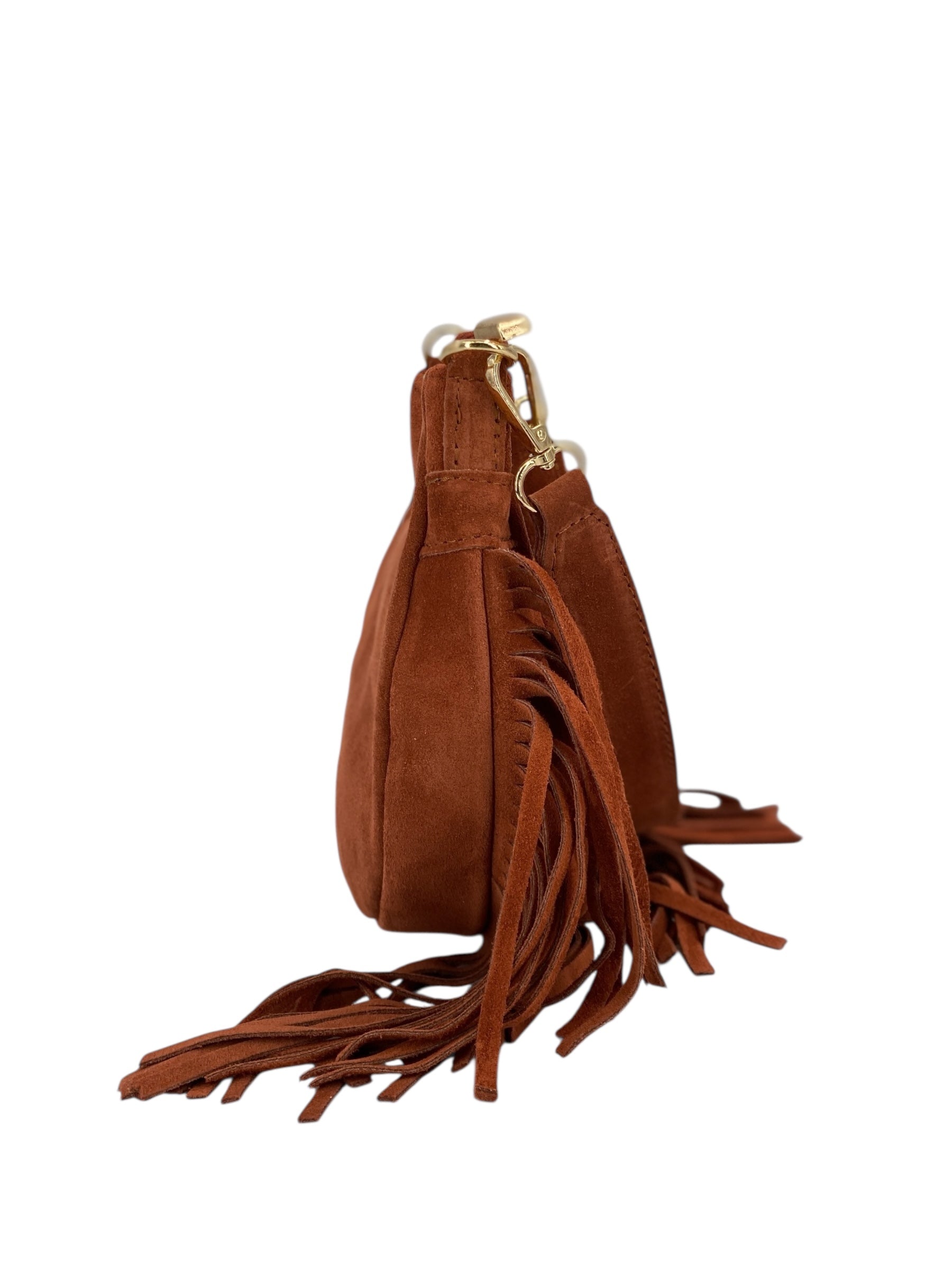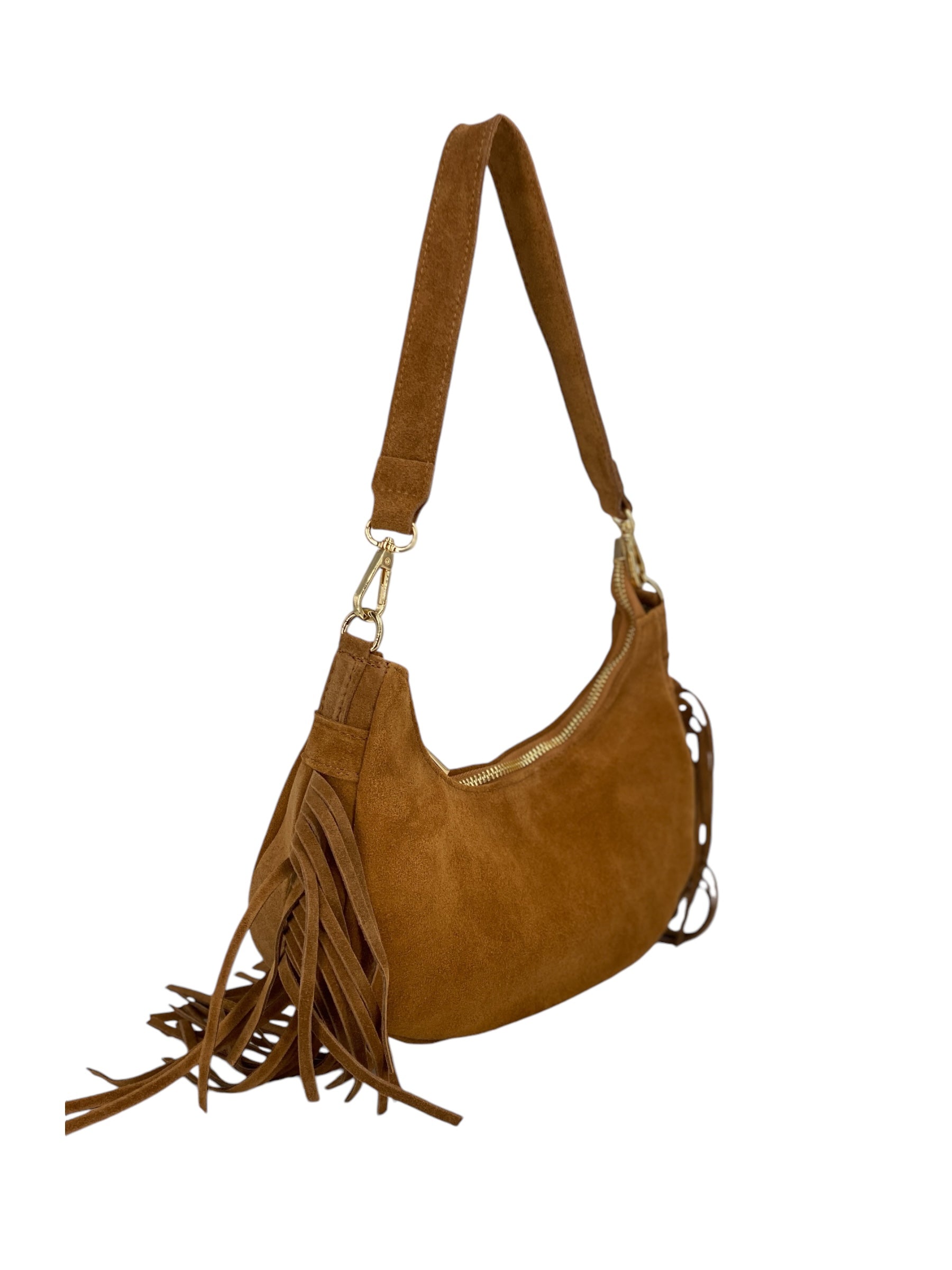 Carine è la borsa perfetta per completare outfit casual chic, urban style e look da giorno. Le frange in pelle aggiungono un tocco dinamico e trendy, rendendola adatta sia a un uso quotidiano che per occasioni informali.