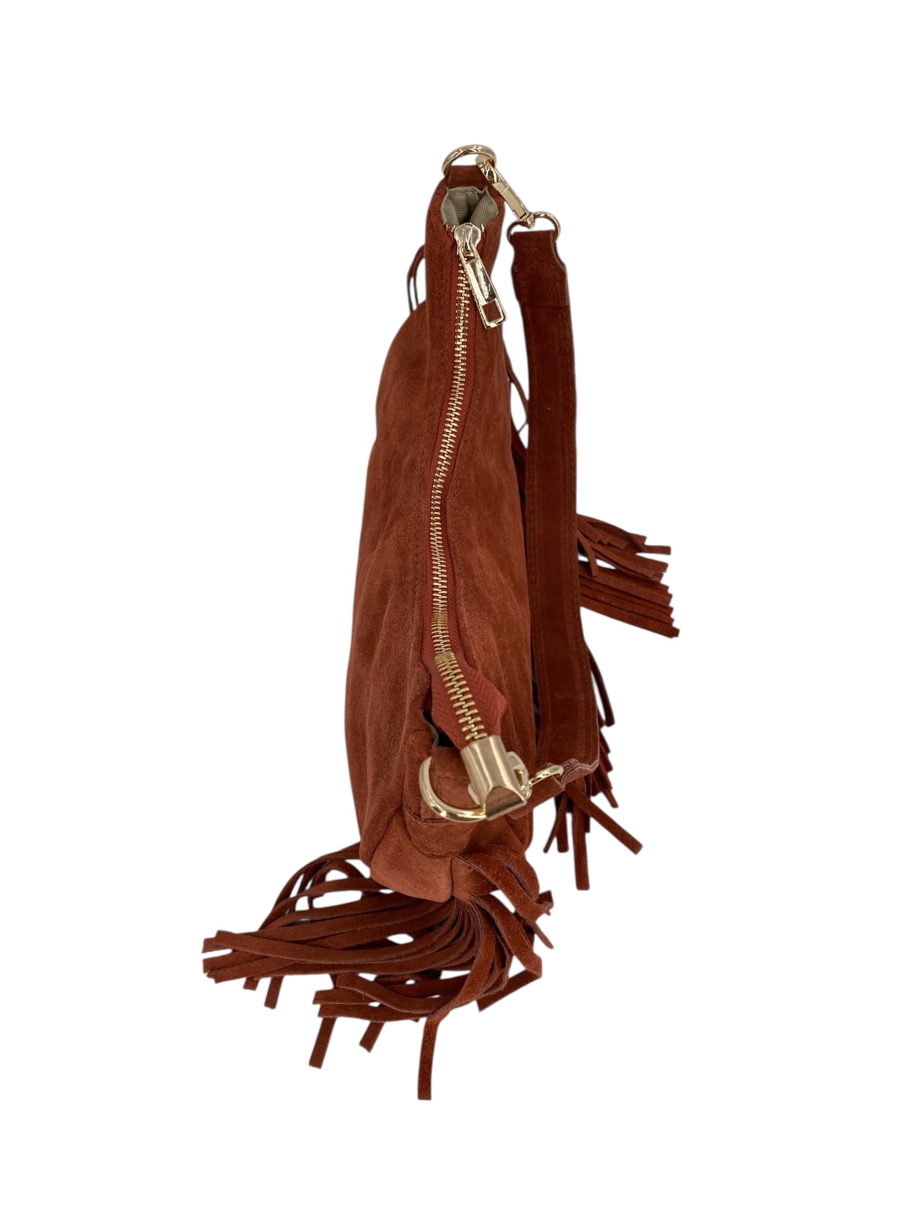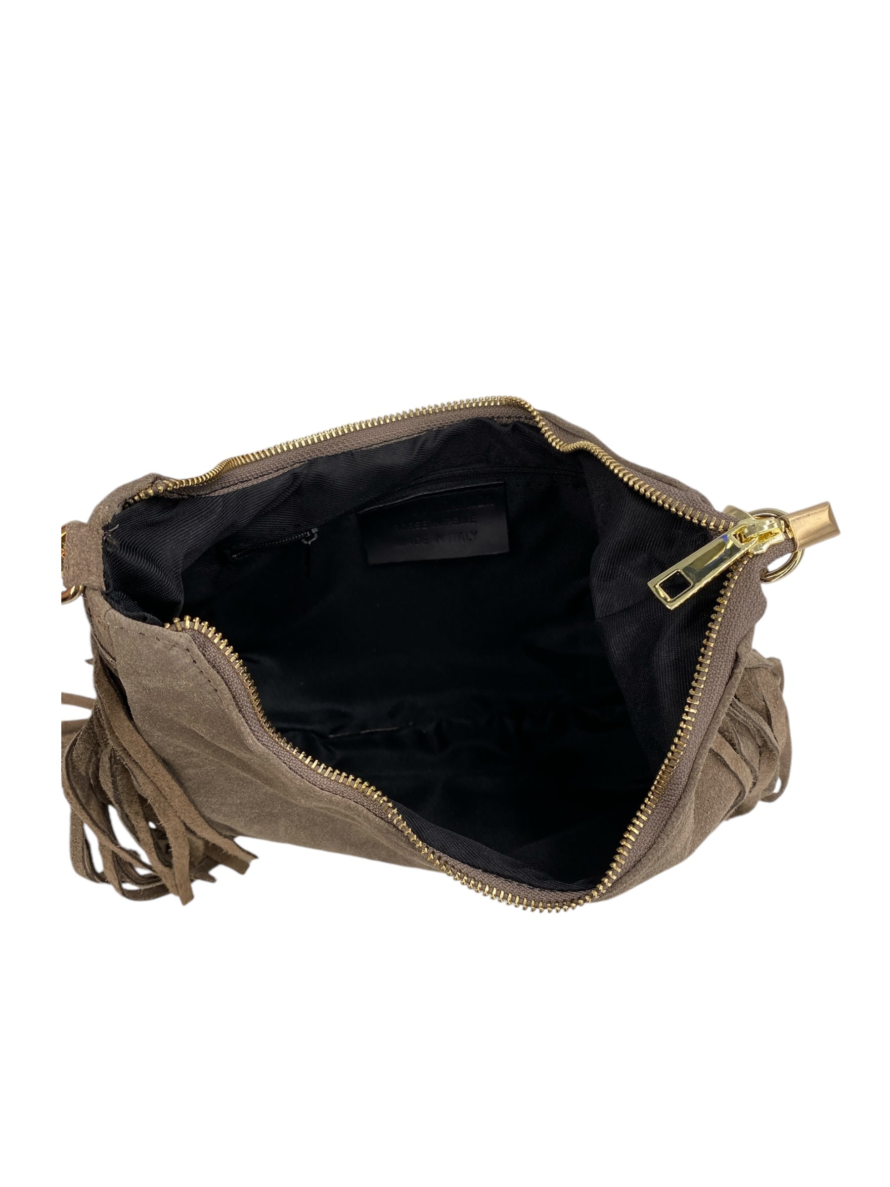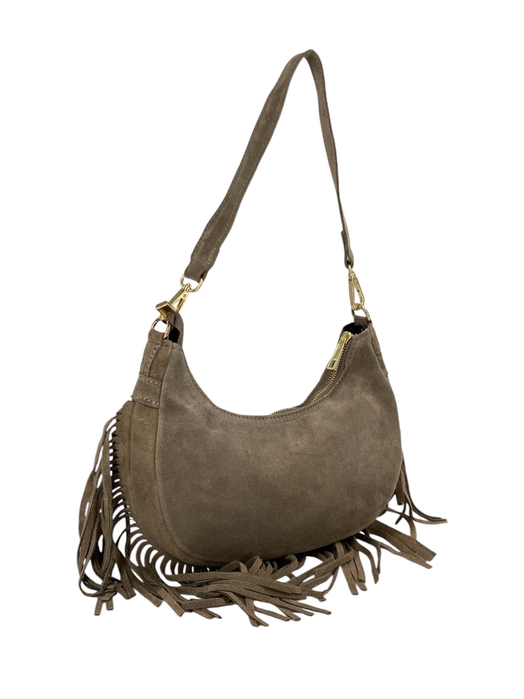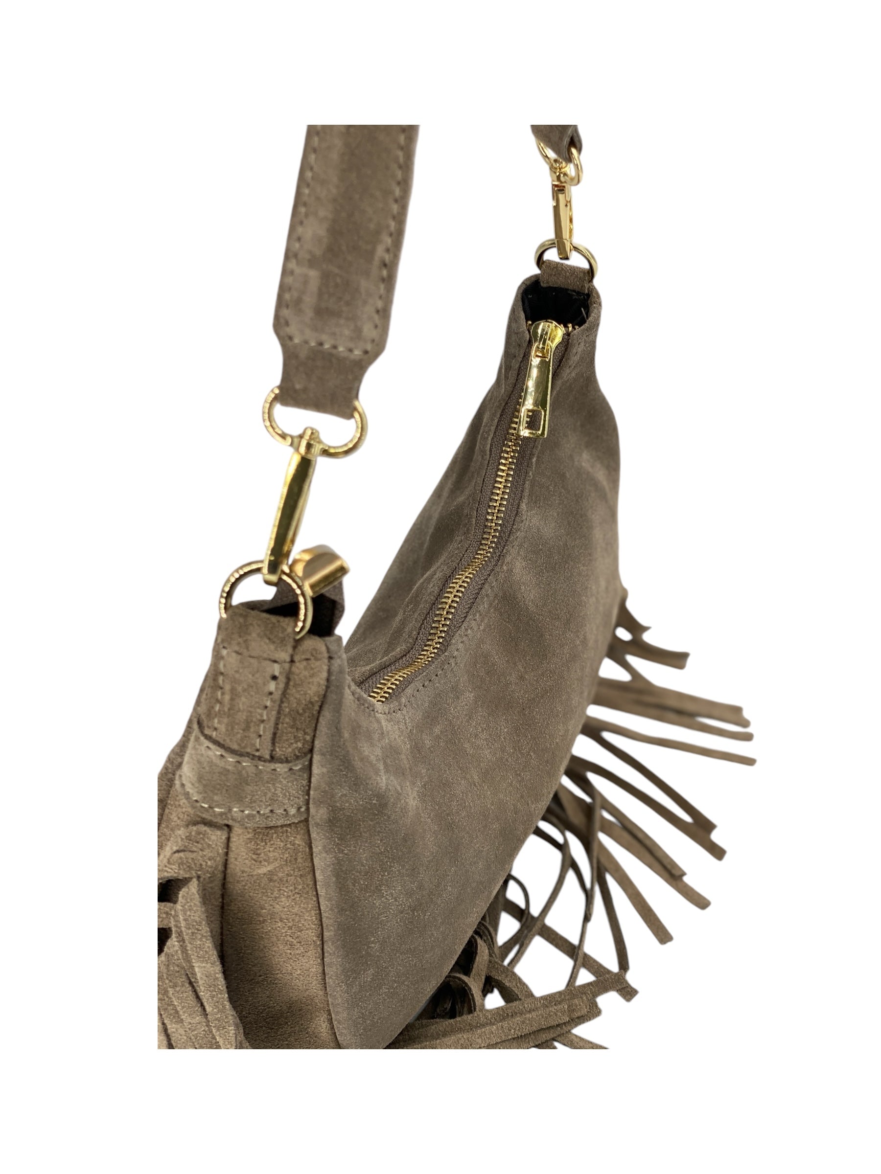 Carine è la borsa perfetta per completare outfit casual chic, urban style e look da giorno. Le frange in pelle aggiungono un tocco dinamico e trendy, rendendola adatta sia a un uso quotidiano che per occasioni informali.