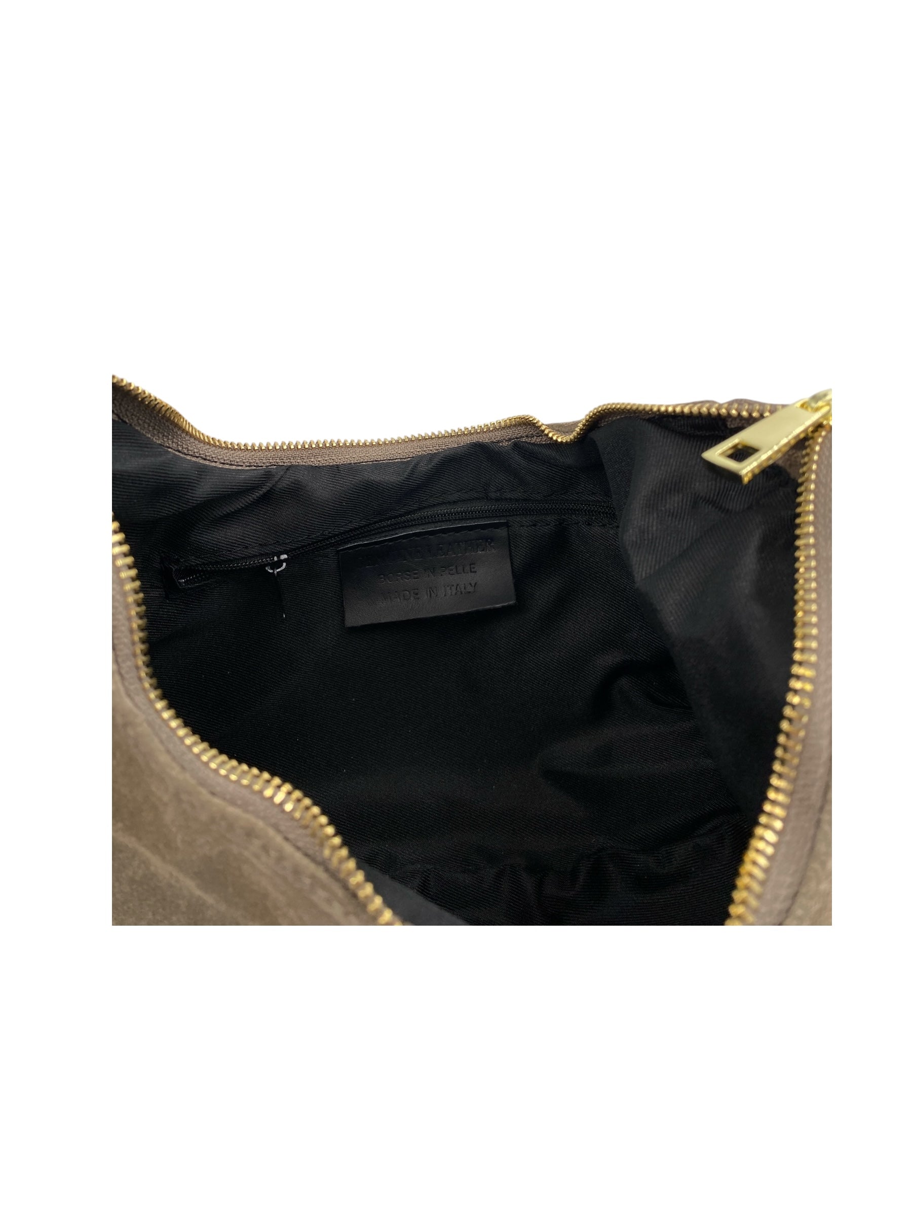 Interno: Foderato in tessuto nero con tasca interna con zip per piccoli oggetti.