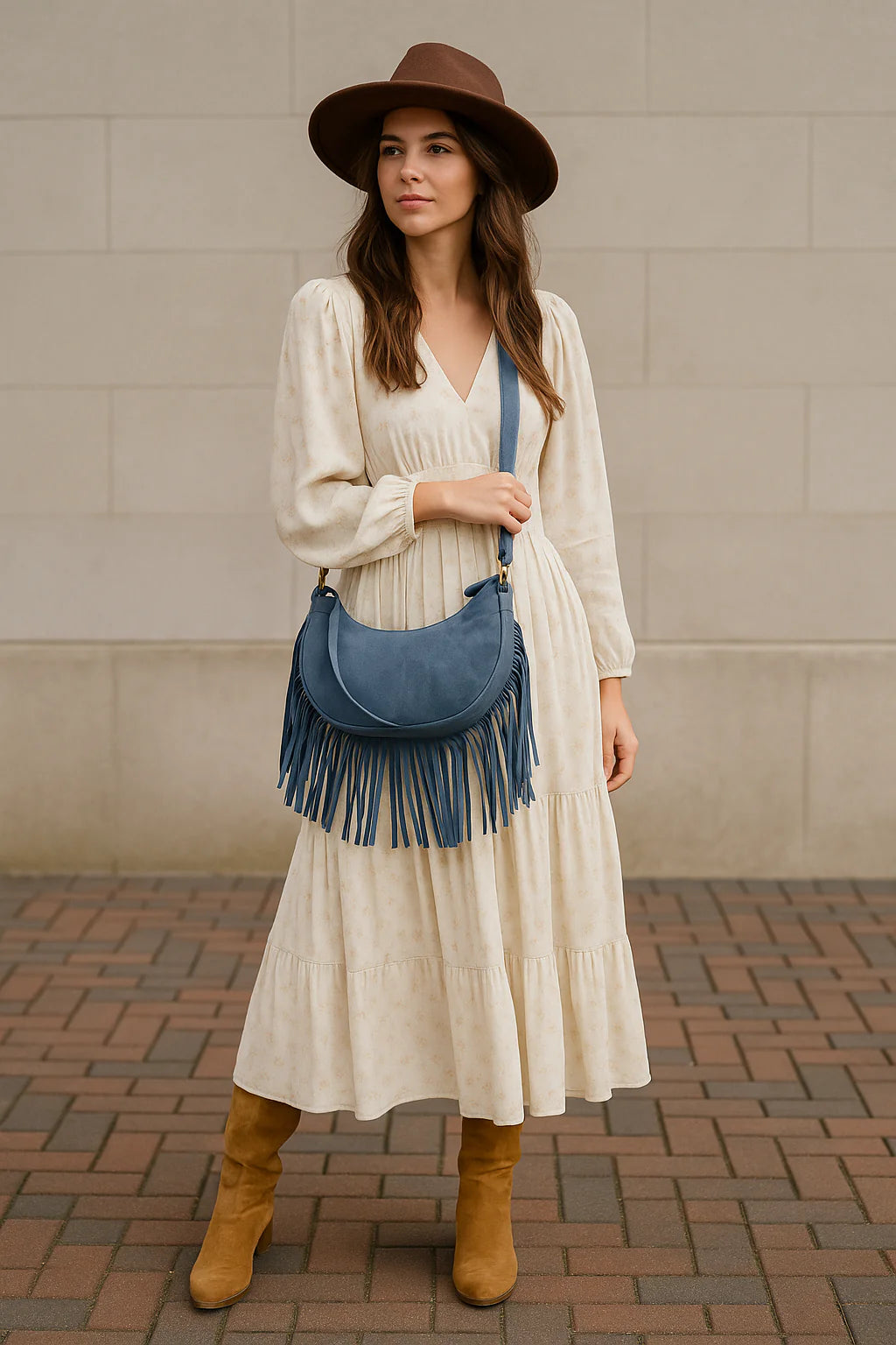 Dettagli: Frange laterali decorative che donano movimento e personalità.