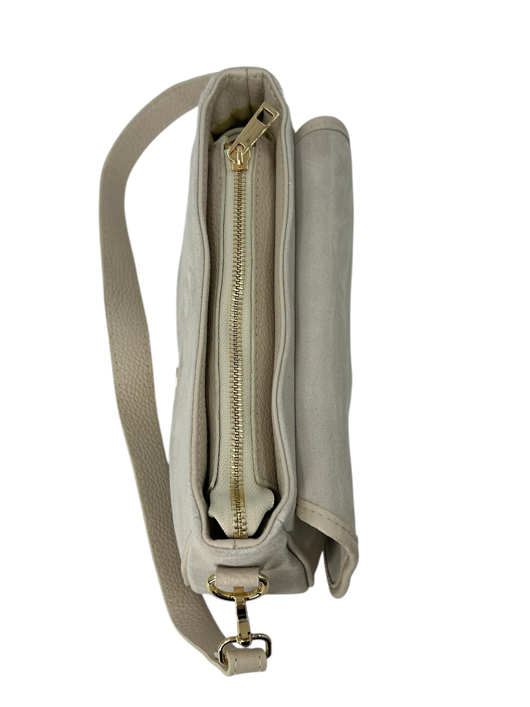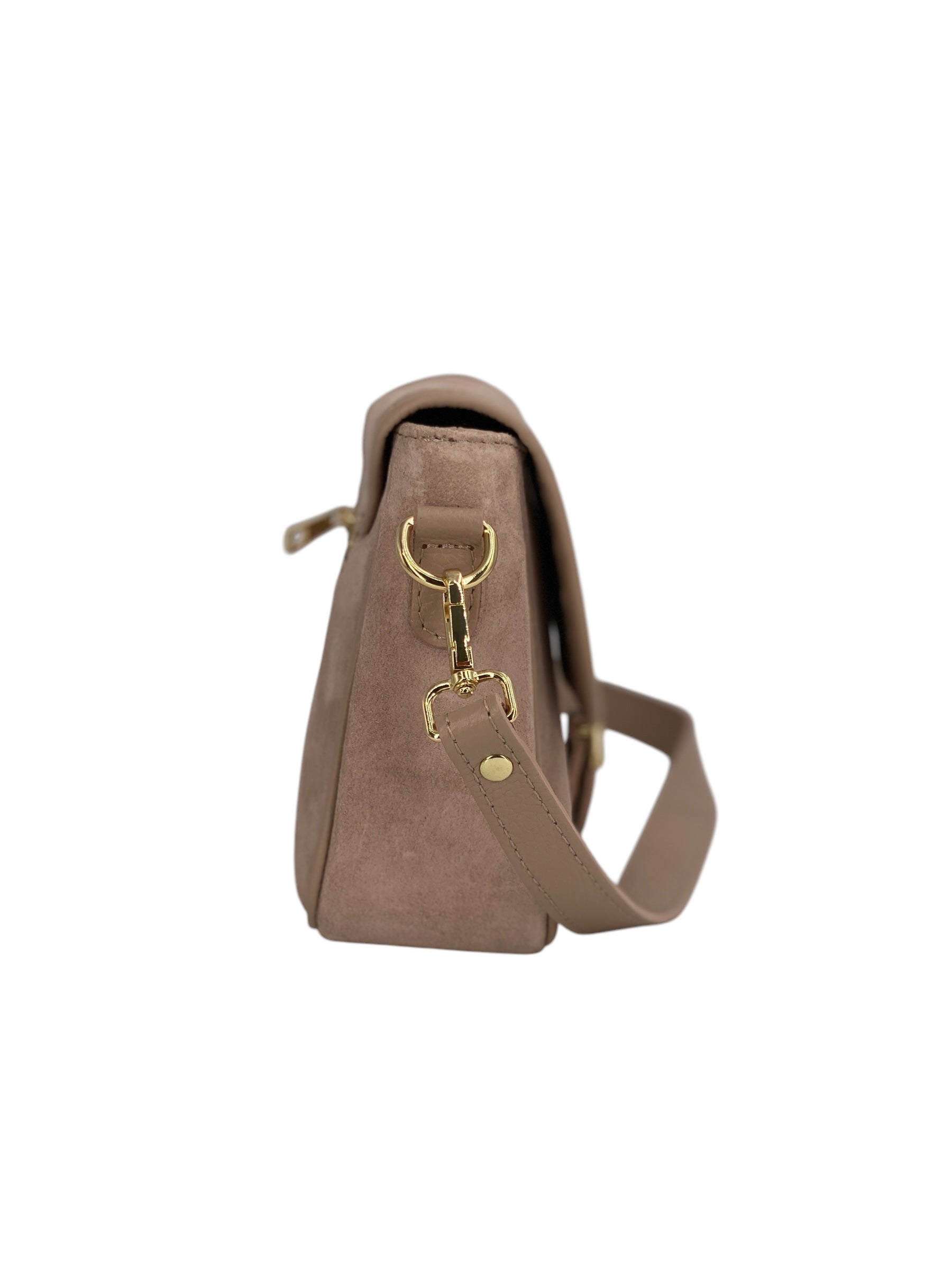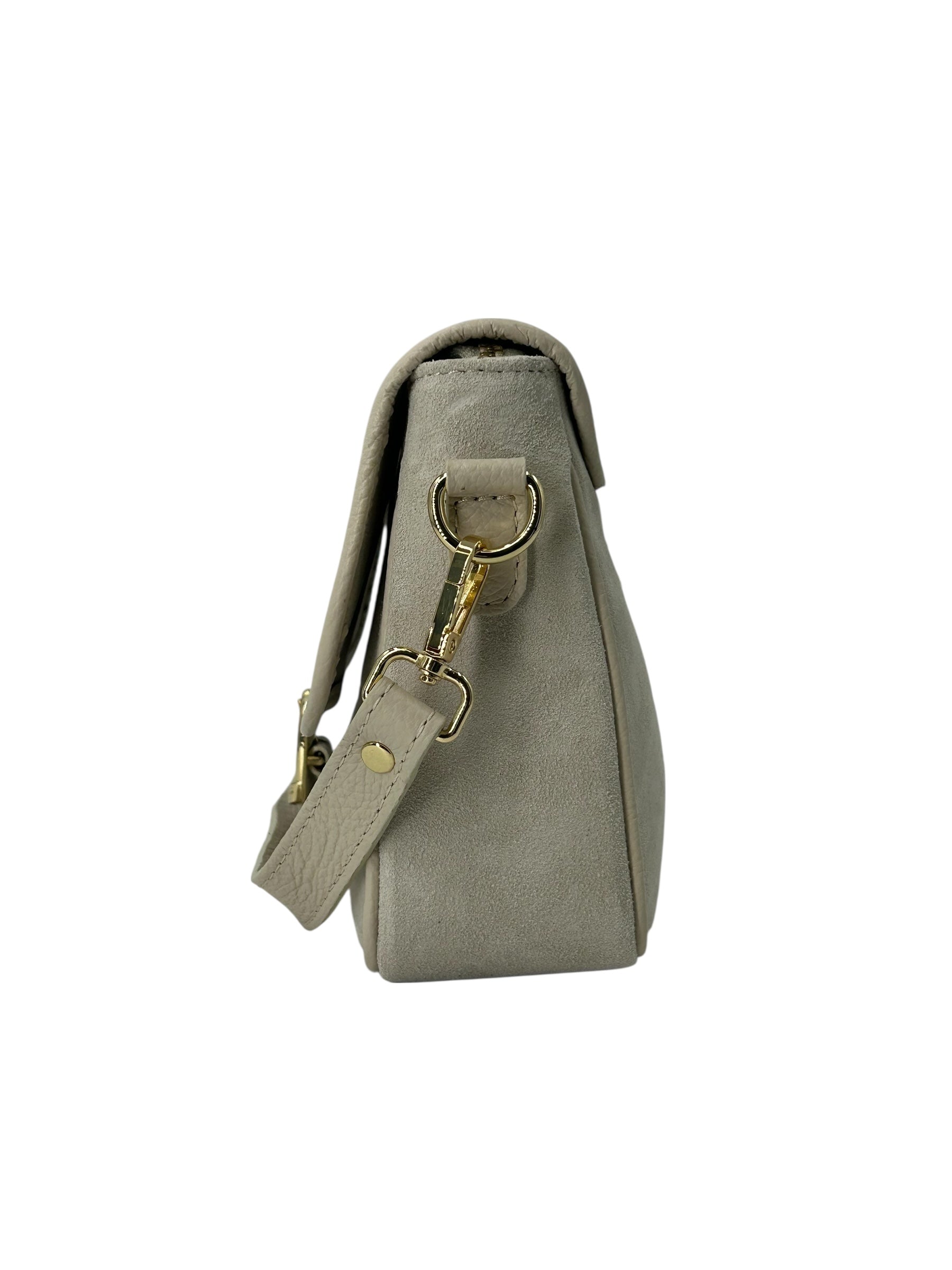 Marielle è una borsa in morbido vitello di alta qualità con dettagli in vera pelle liscia e finiture in metallo dorato, pensata per chi ama lo stile senza tempo. Il suo design rettangolare compatto è arricchito da una patta frontale con cinturino decorativo e fibbia dorata, che dona personalità senza rinunciare alla praticità.