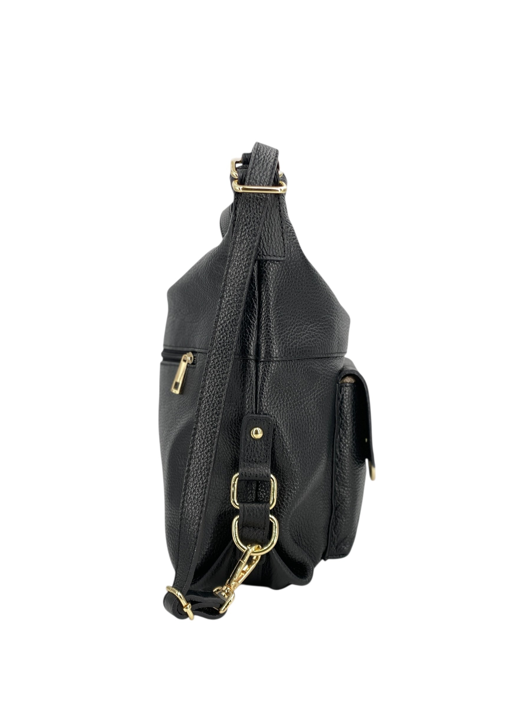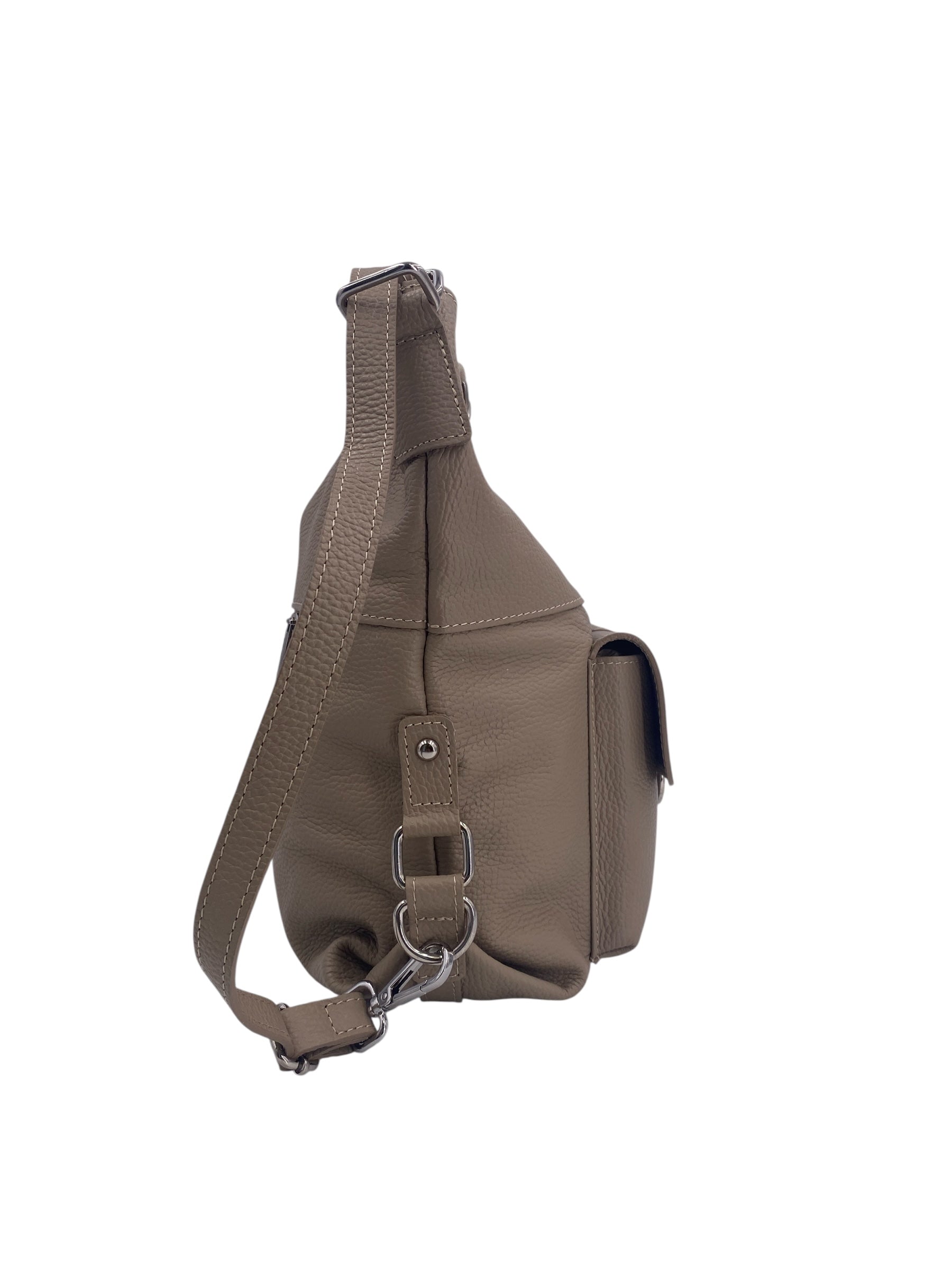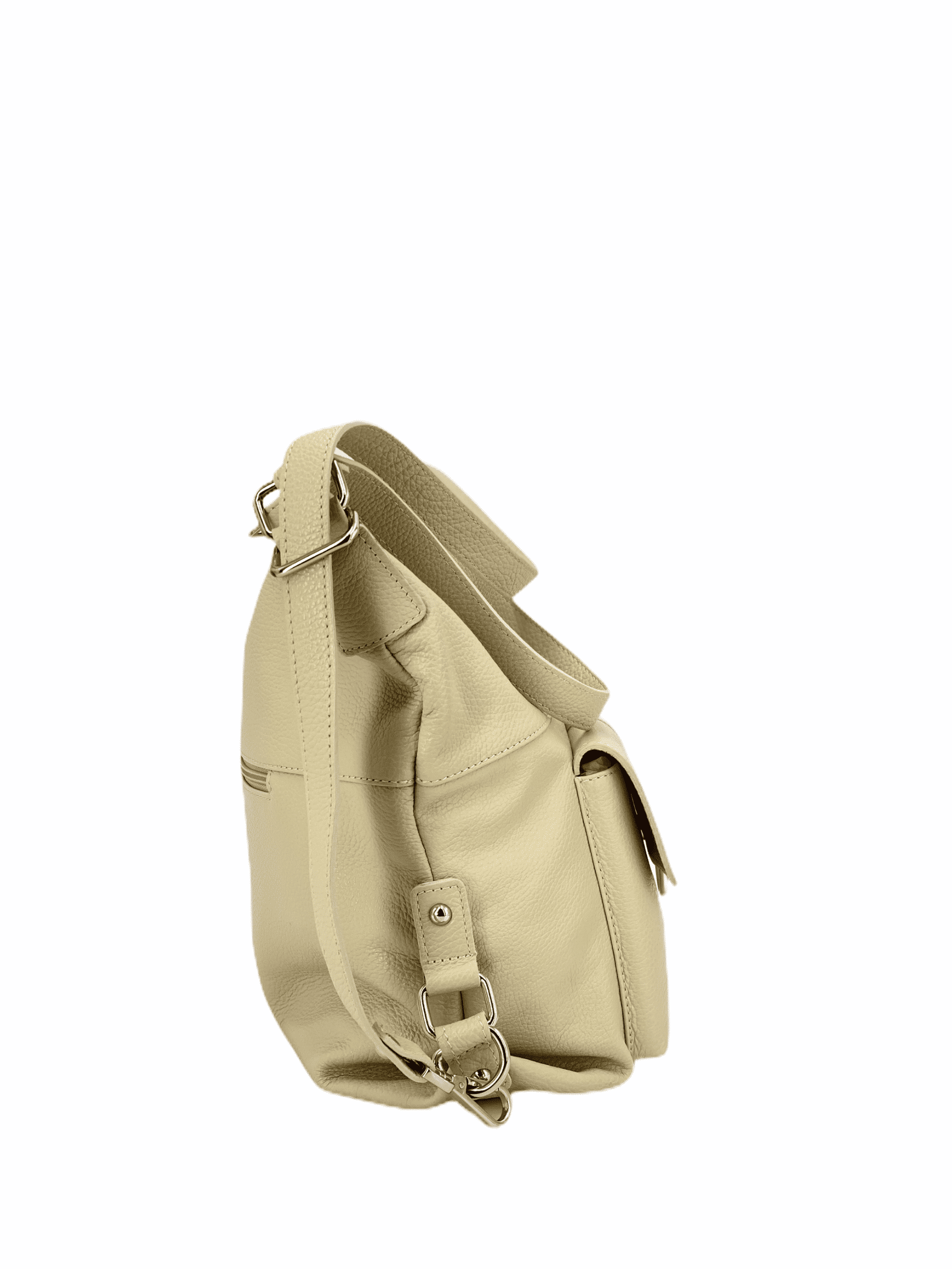 Romy è un modello versatile e contemporaneo, pensato per chi cerca stile, praticità e comfort in un unico accessorio. Realizzata in vera pelle di vitello di alta qualità, combina linee morbide e funzionalità intelligente, adattandosi a diverse occasioni d’uso: da borsa a spalla a zaino, con un semplice gesto.