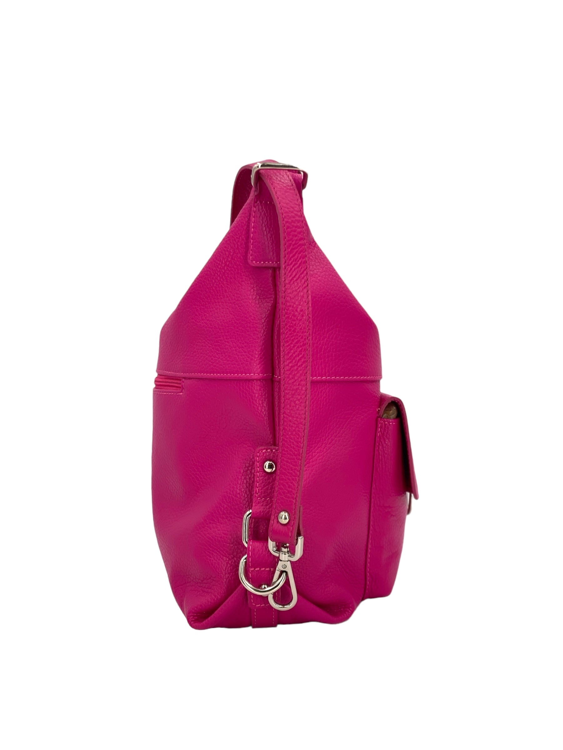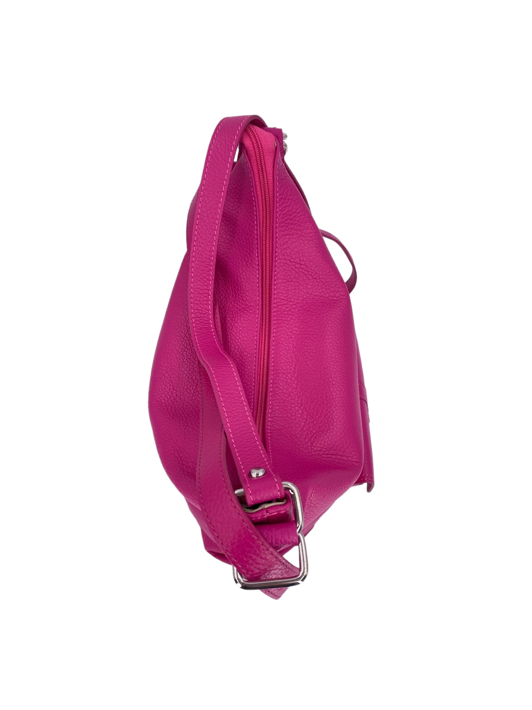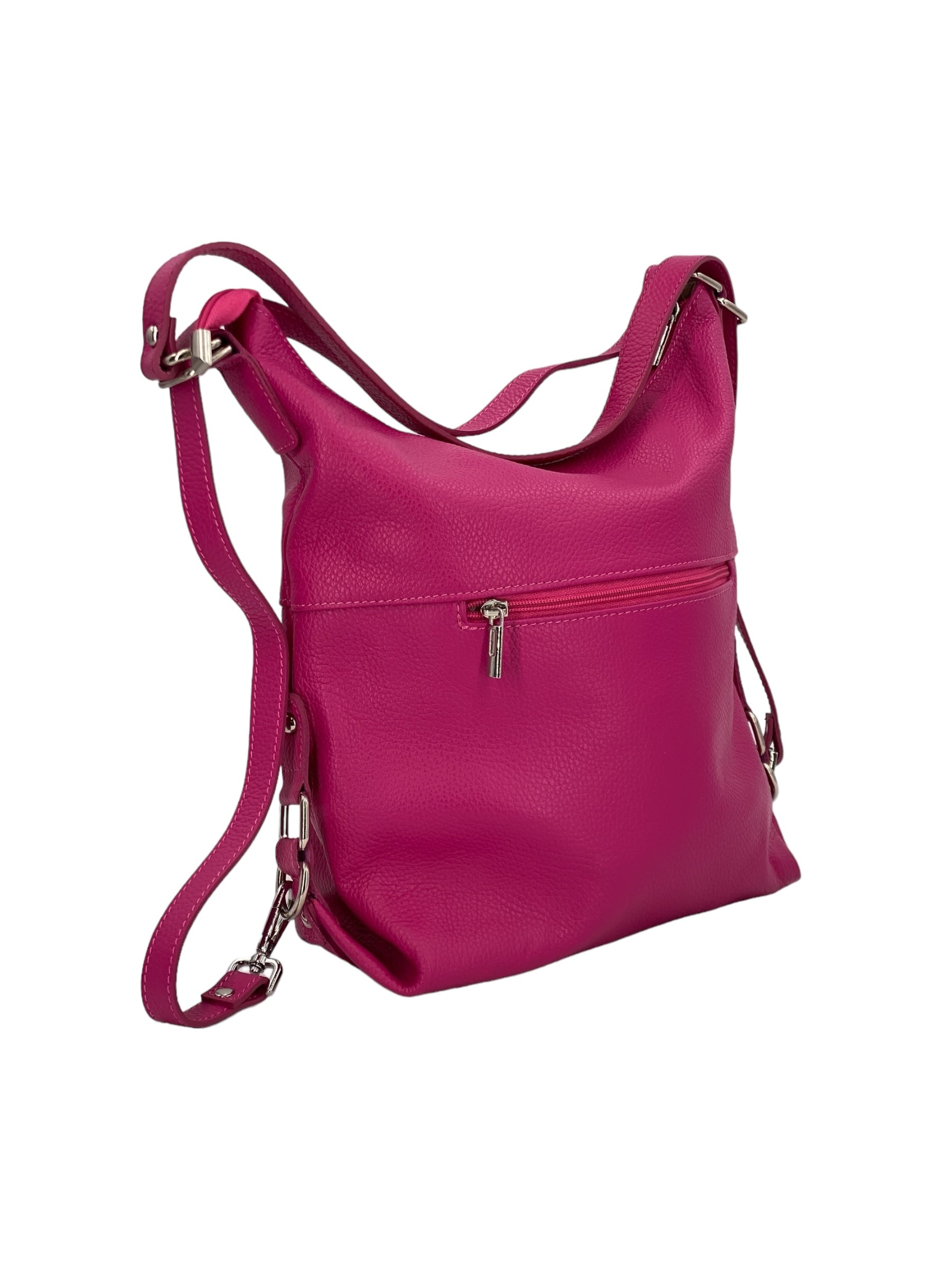 La Romy è la borsa ideale per chi vuole un accessorio multifunzione: perfetta come borsa da città per l’uso quotidiano, ma anche come zaino pratico per viaggi o giornate dinamiche. La combinazione di pelle morbida, colori vivaci e dettagli raffinati la rende adatta sia a look casual che a outfit più ricercati.