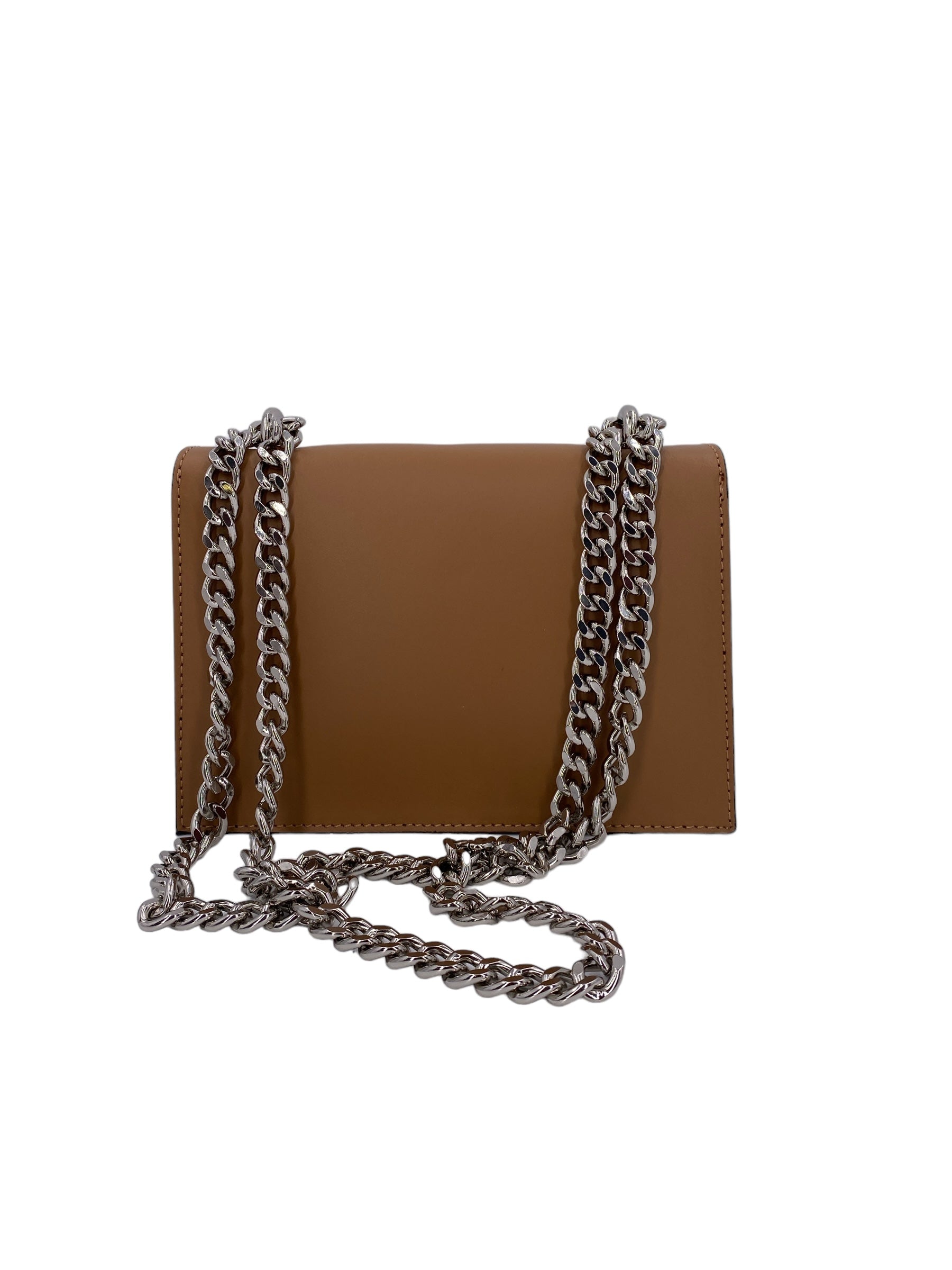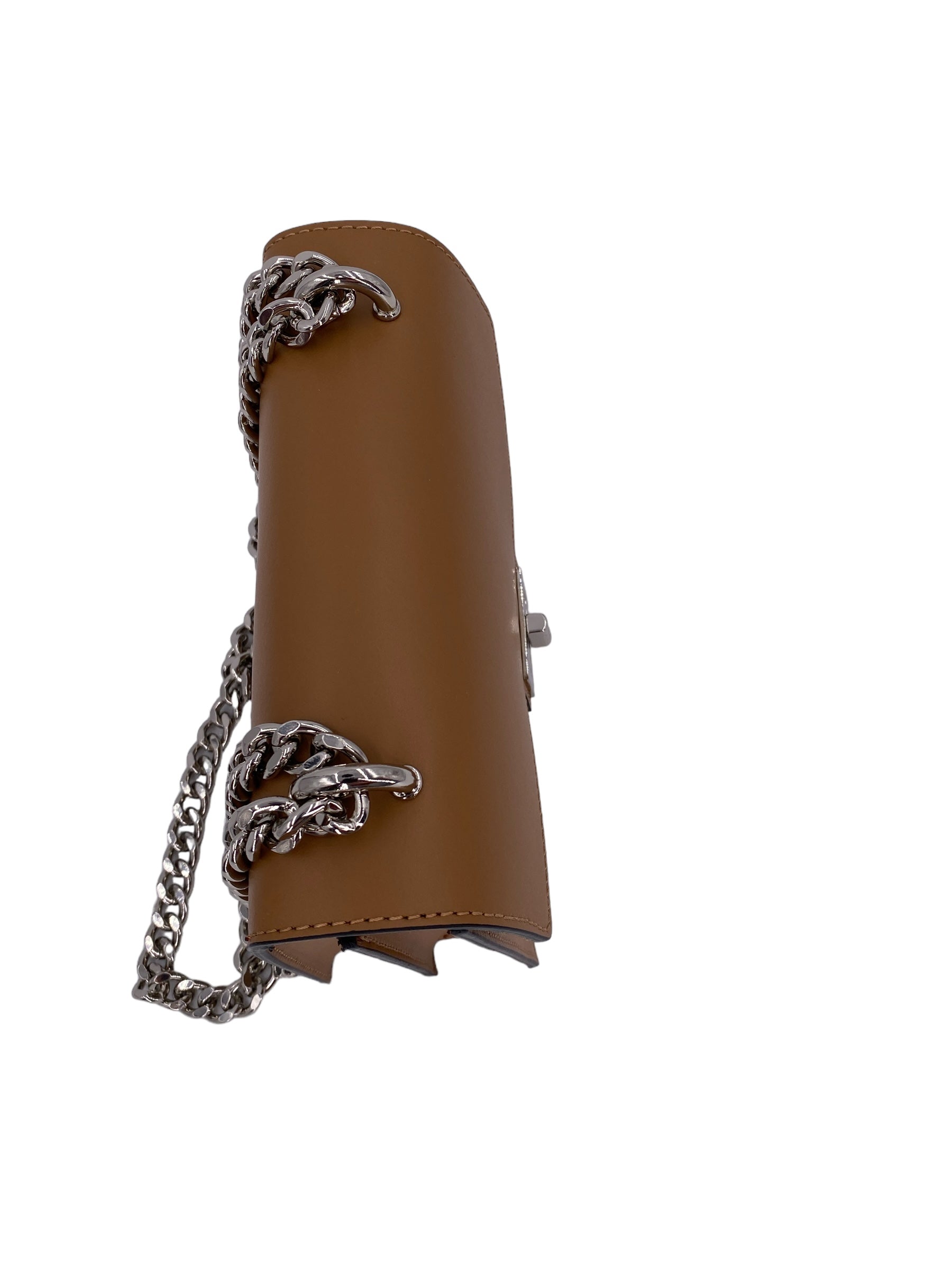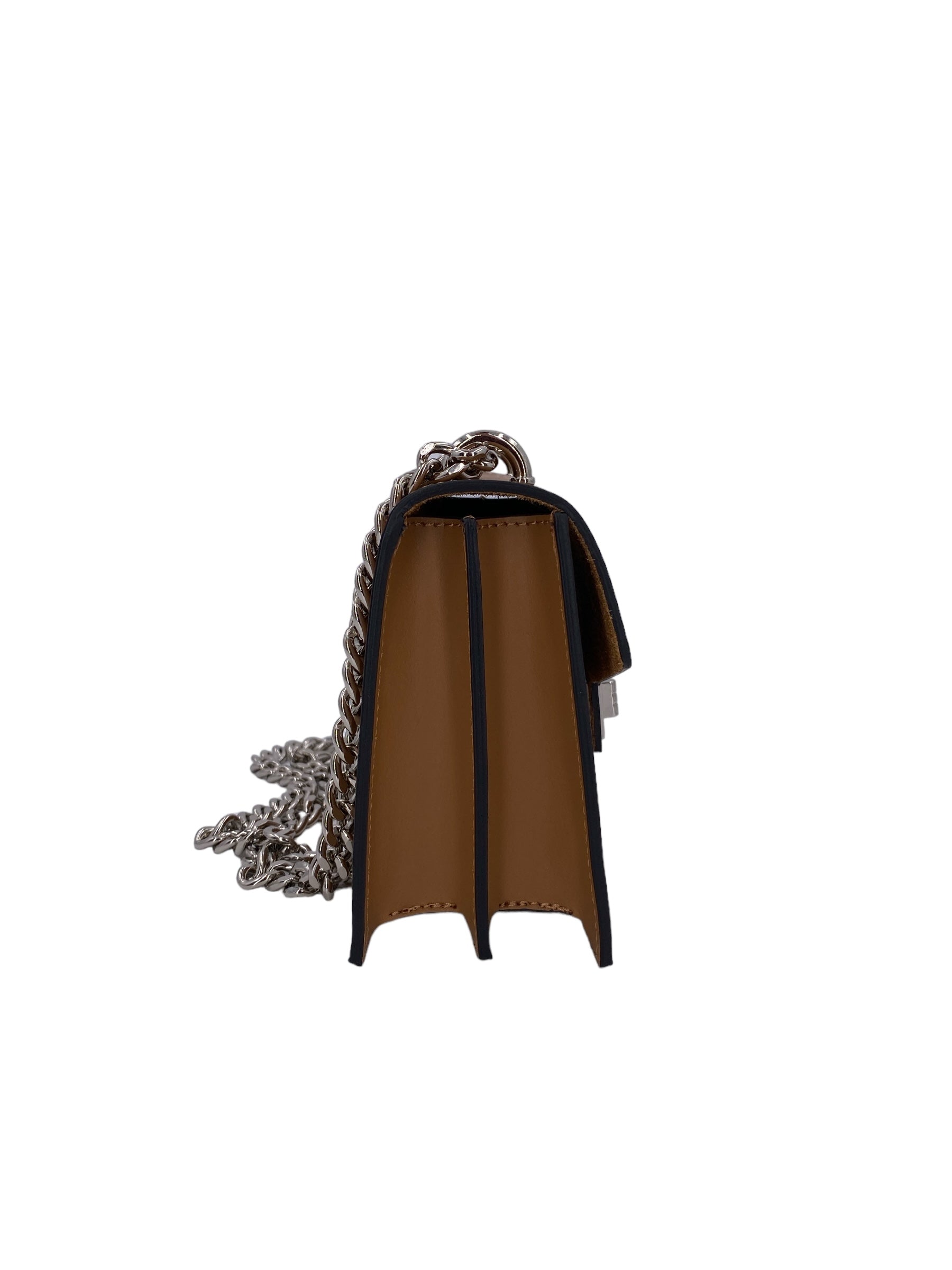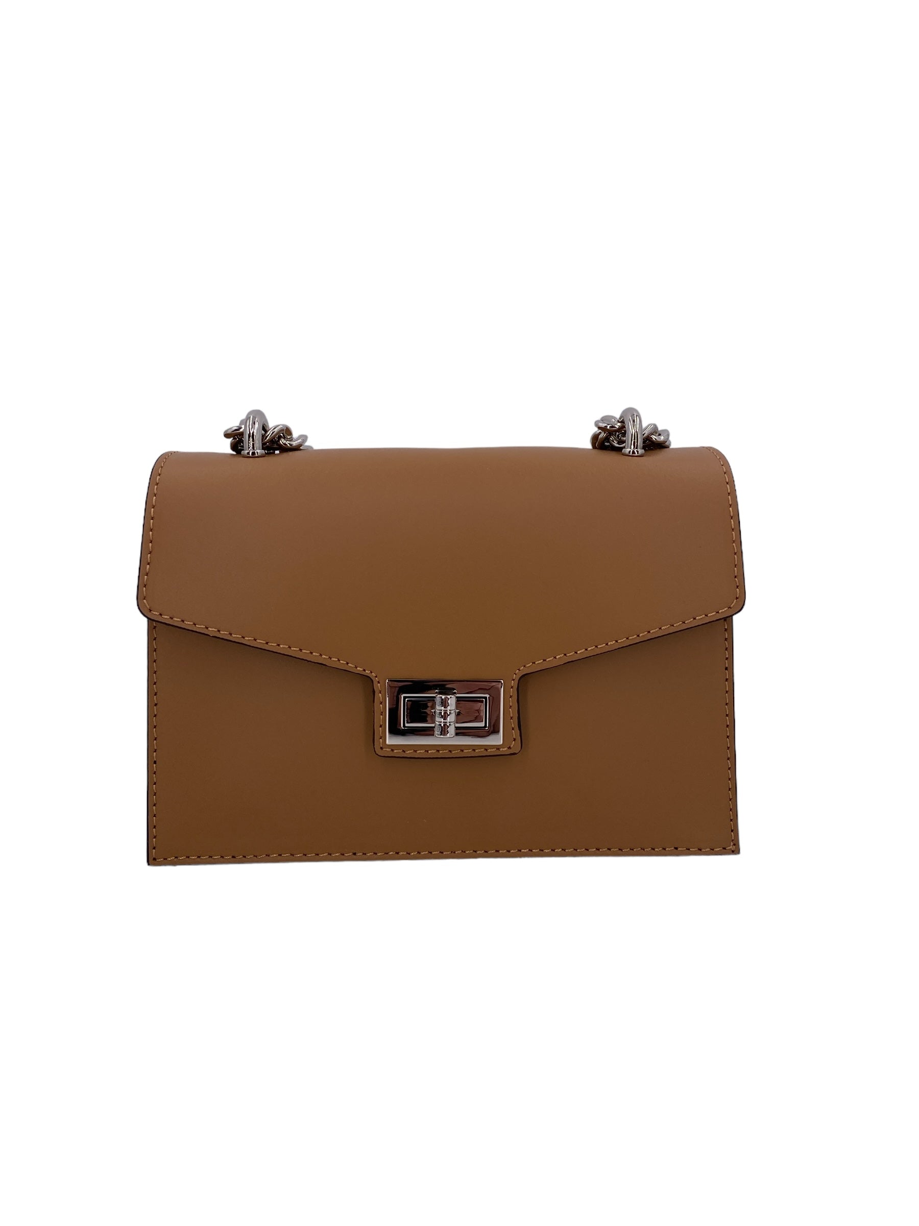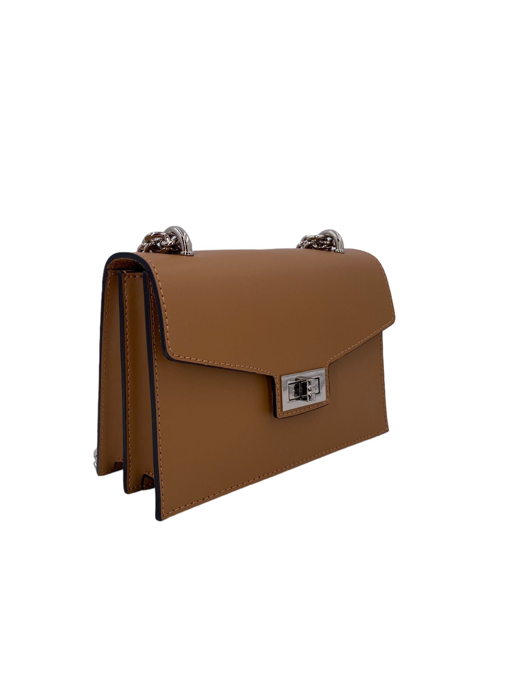 Gilberte è una borsa a tracolla di piccole dimensioni ma dall’impatto deciso. Il design strutturato e compatto, abbinato alla catena in metallo lucido e al colore cuoio caldo e versatile, la rendono un accessorio perfetto per ogni donna che ama distinguersi con discrezione, senza rinunciare alla funzionalità.