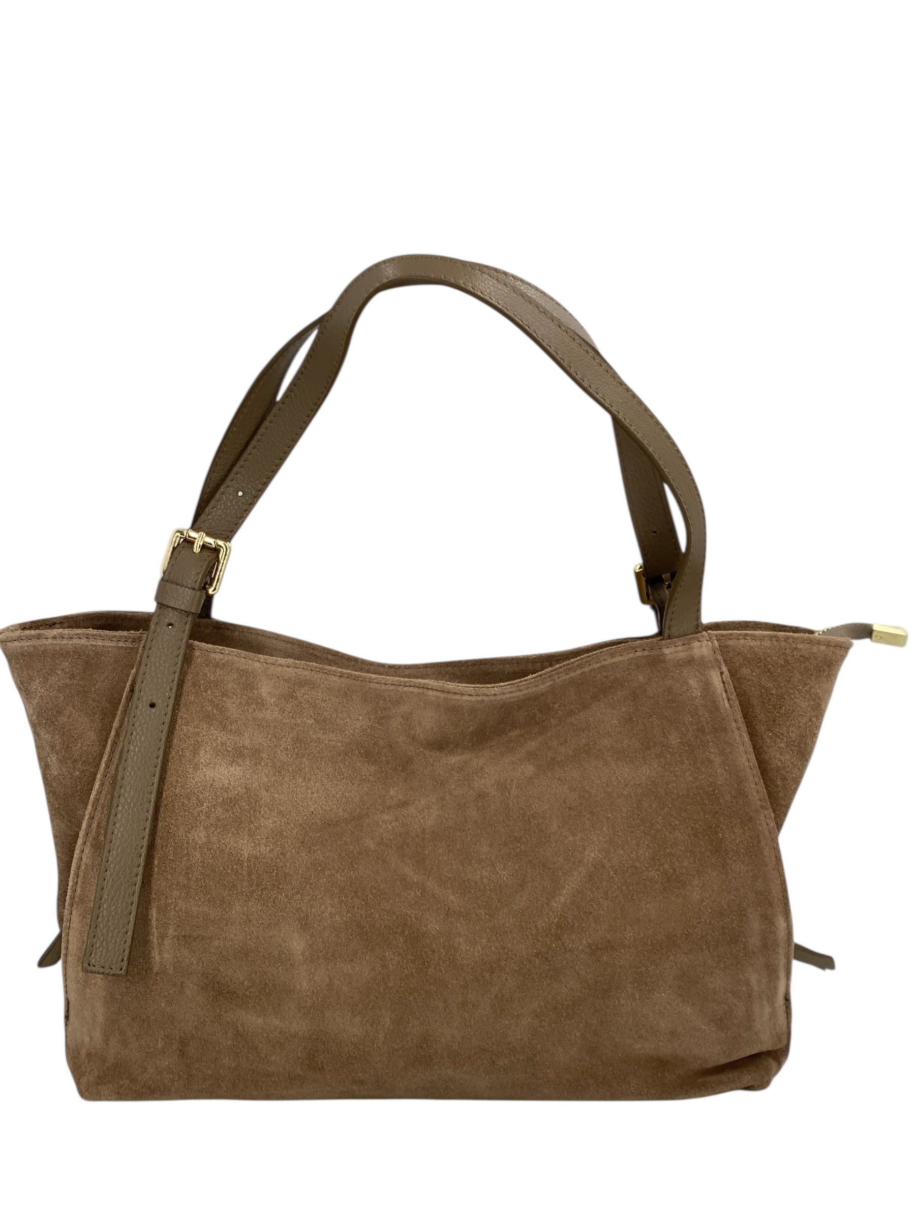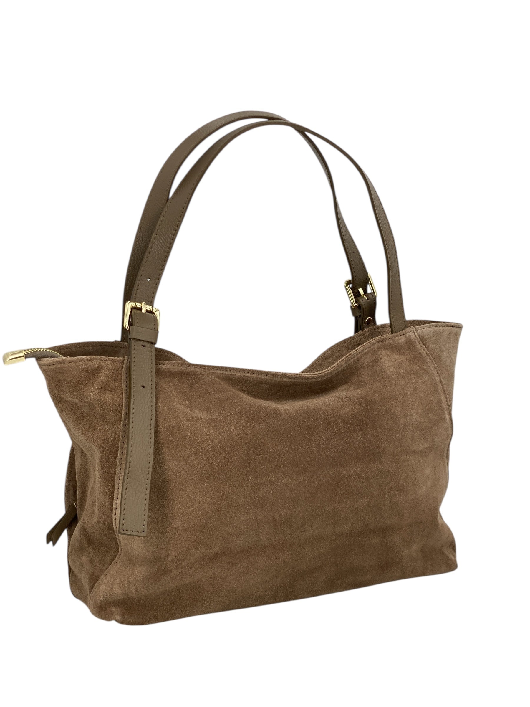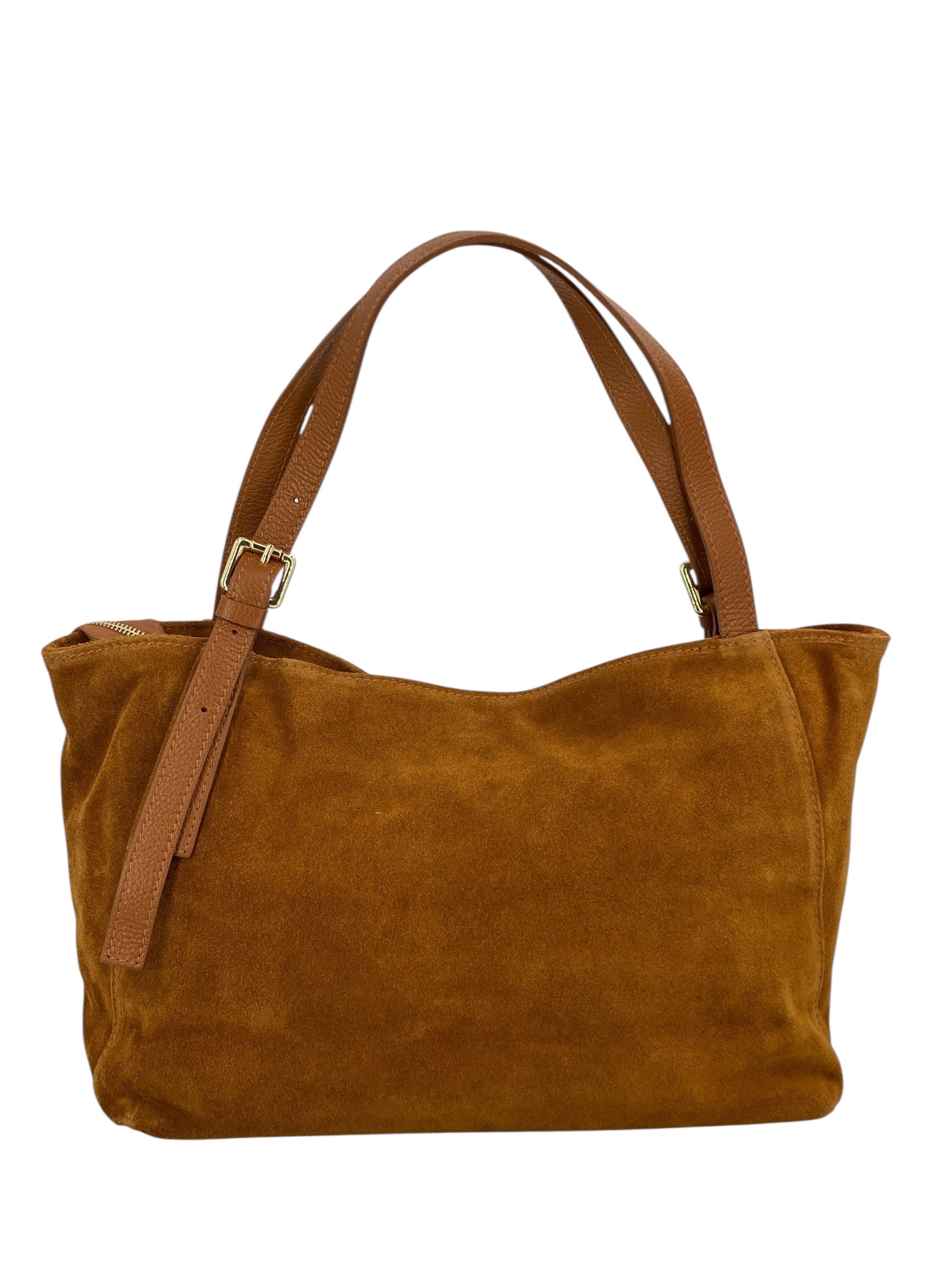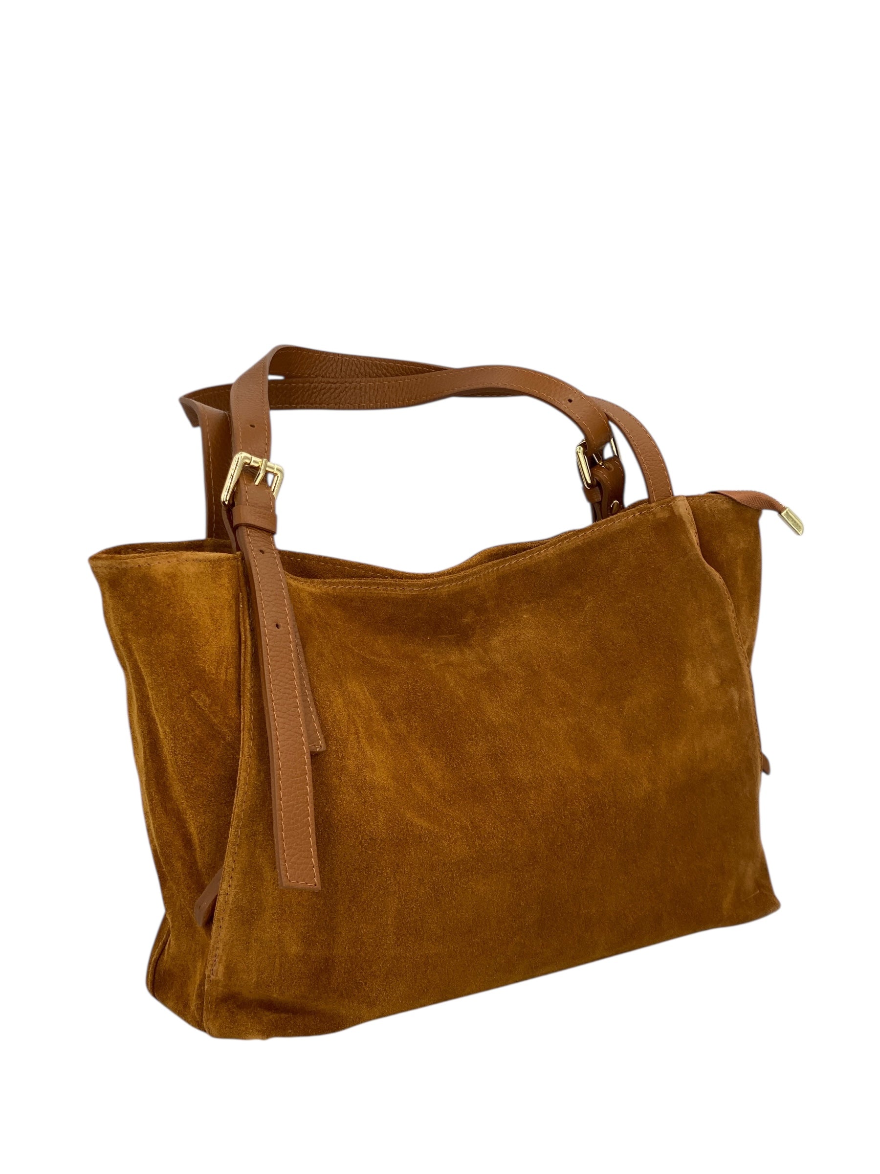 Camille – Borsa a mano e a spalla donna in pelle e camoscio italiano con manici regolabili e cuciture rinforzate