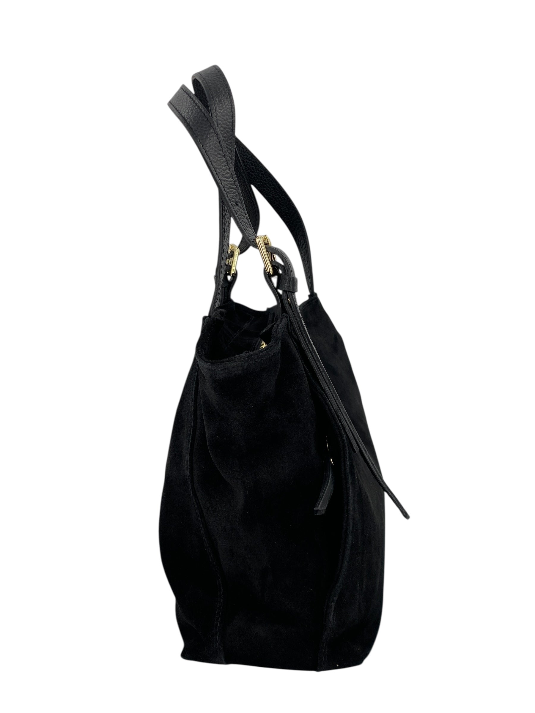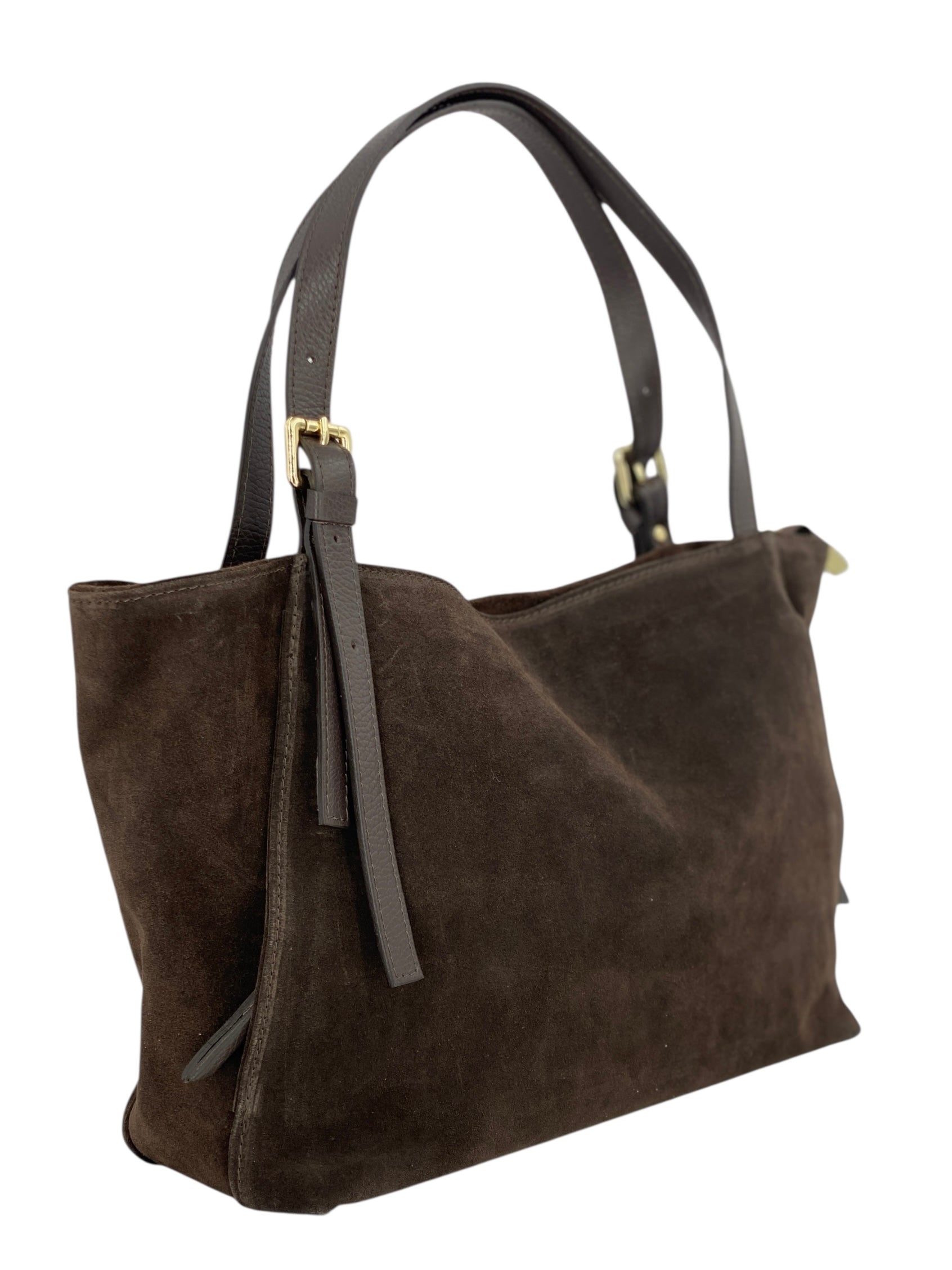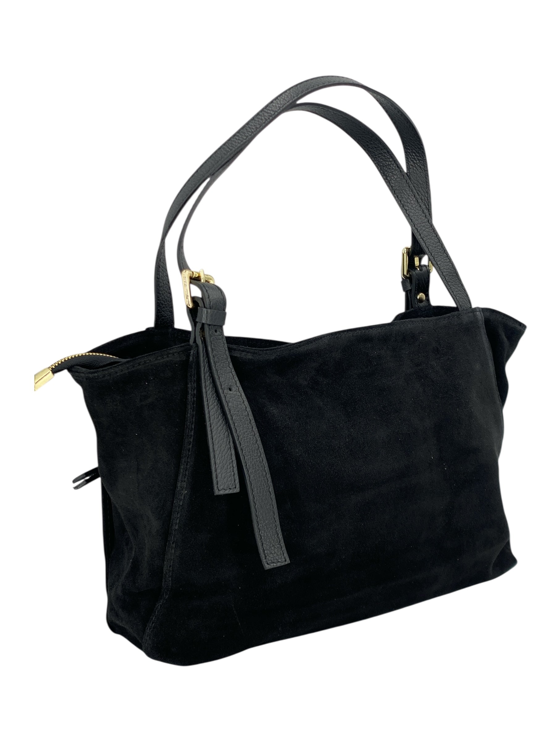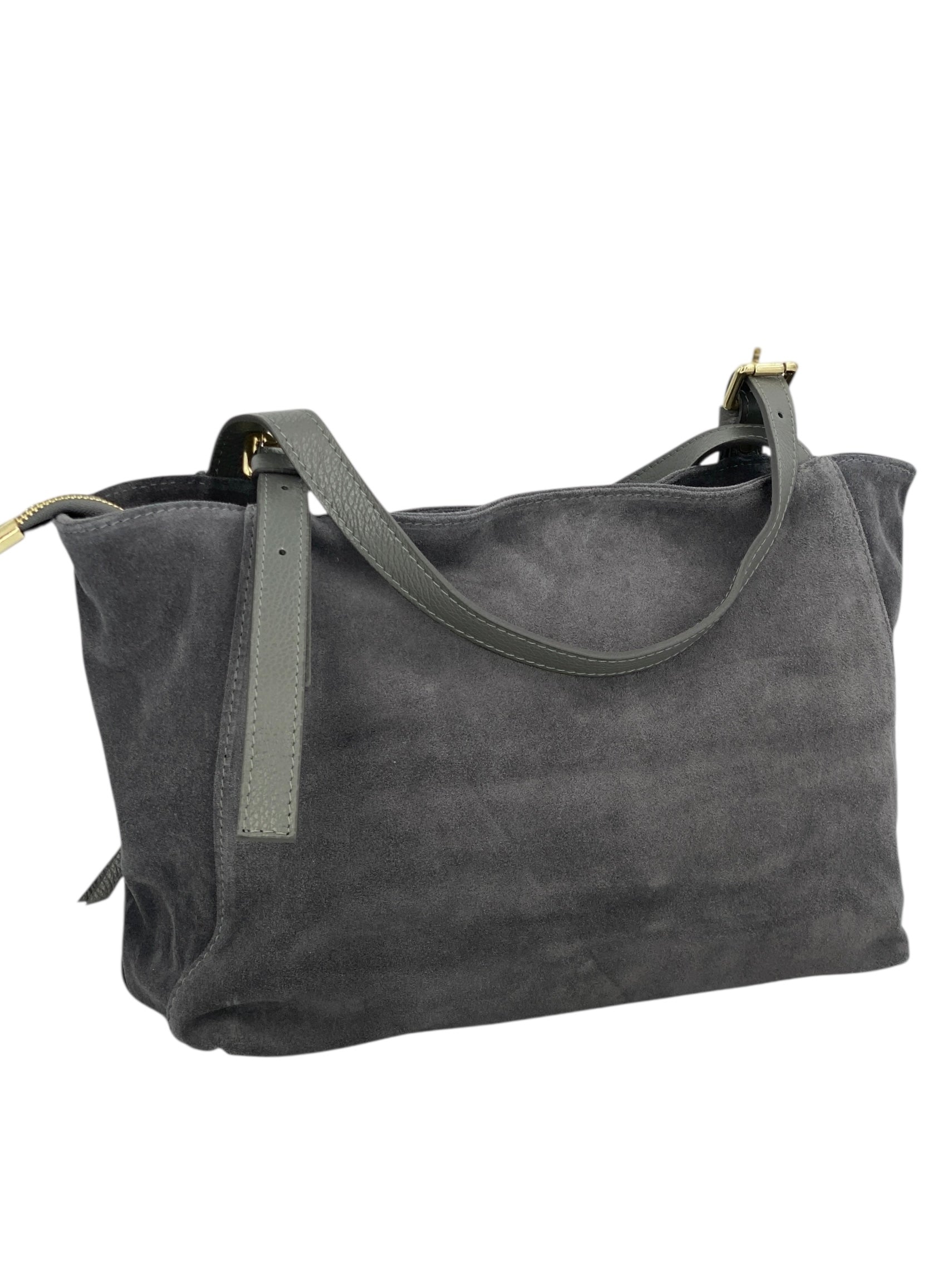 Camille – Borsa a mano e a spalla donna in pelle e camoscio italiano con manici regolabili e cuciture rinforzate