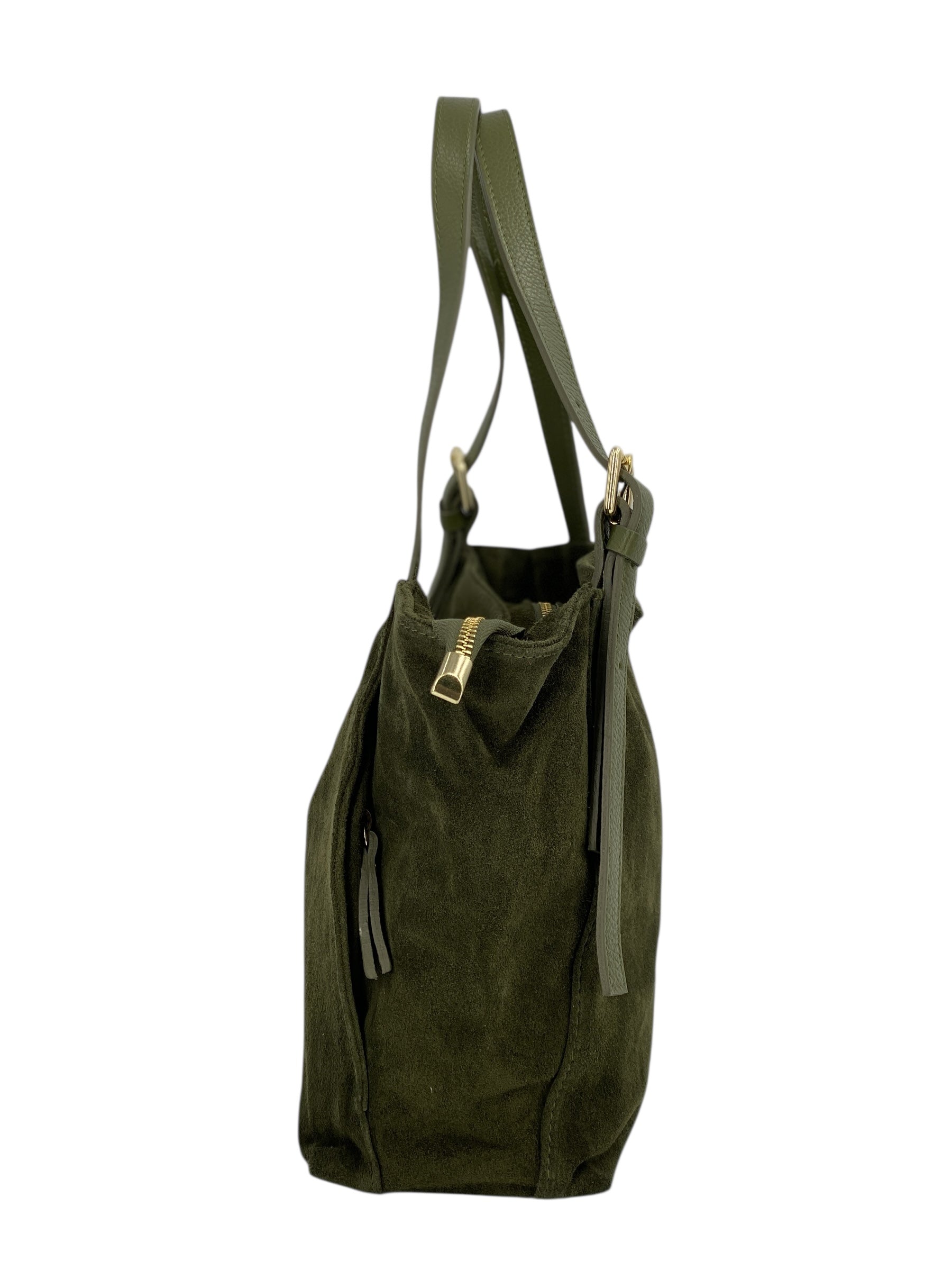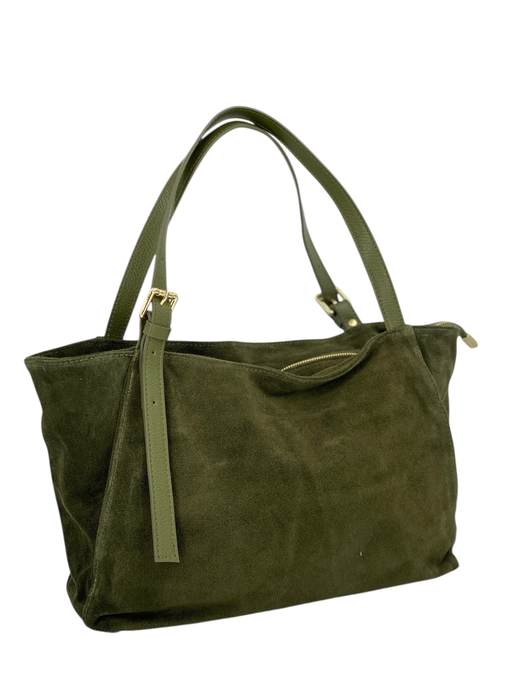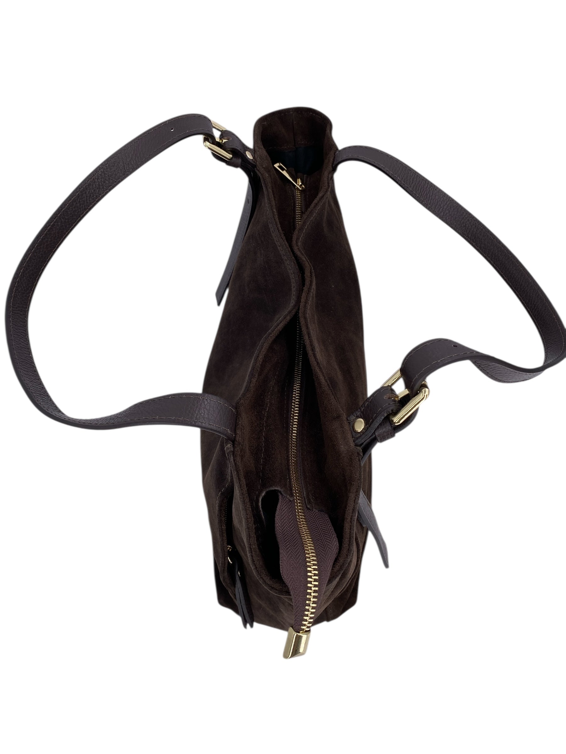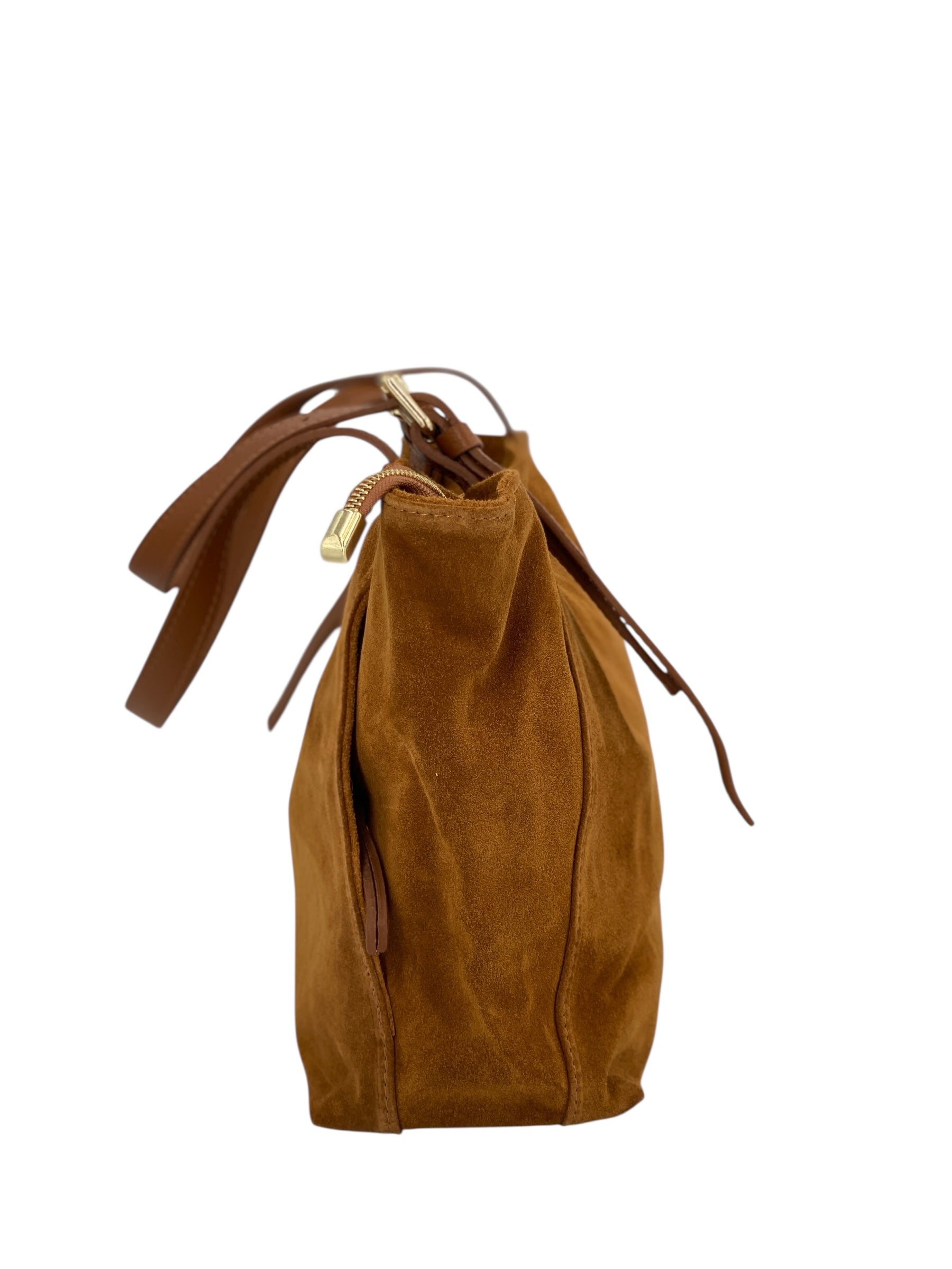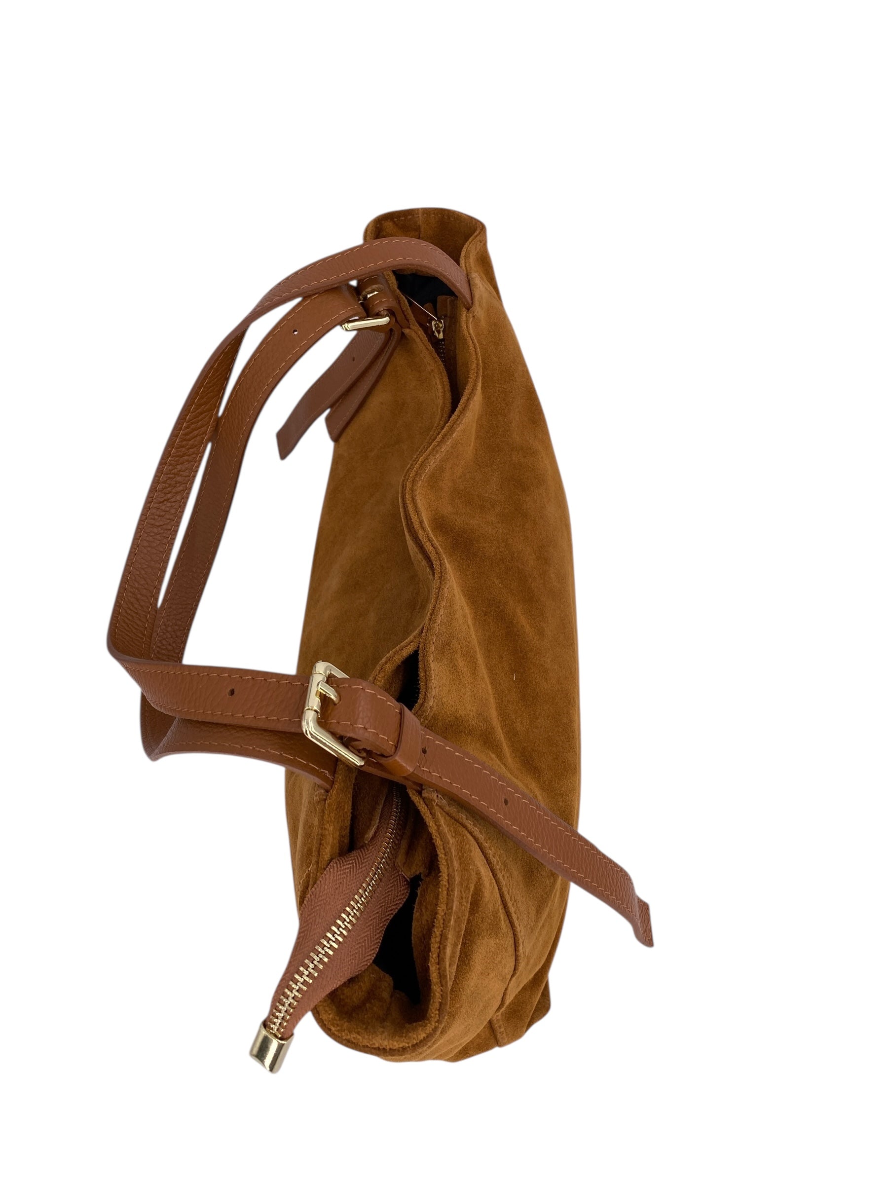 Camille – Borsa a mano e a spalla donna in pelle e camoscio italiano con manici regolabili e cuciture rinforzate