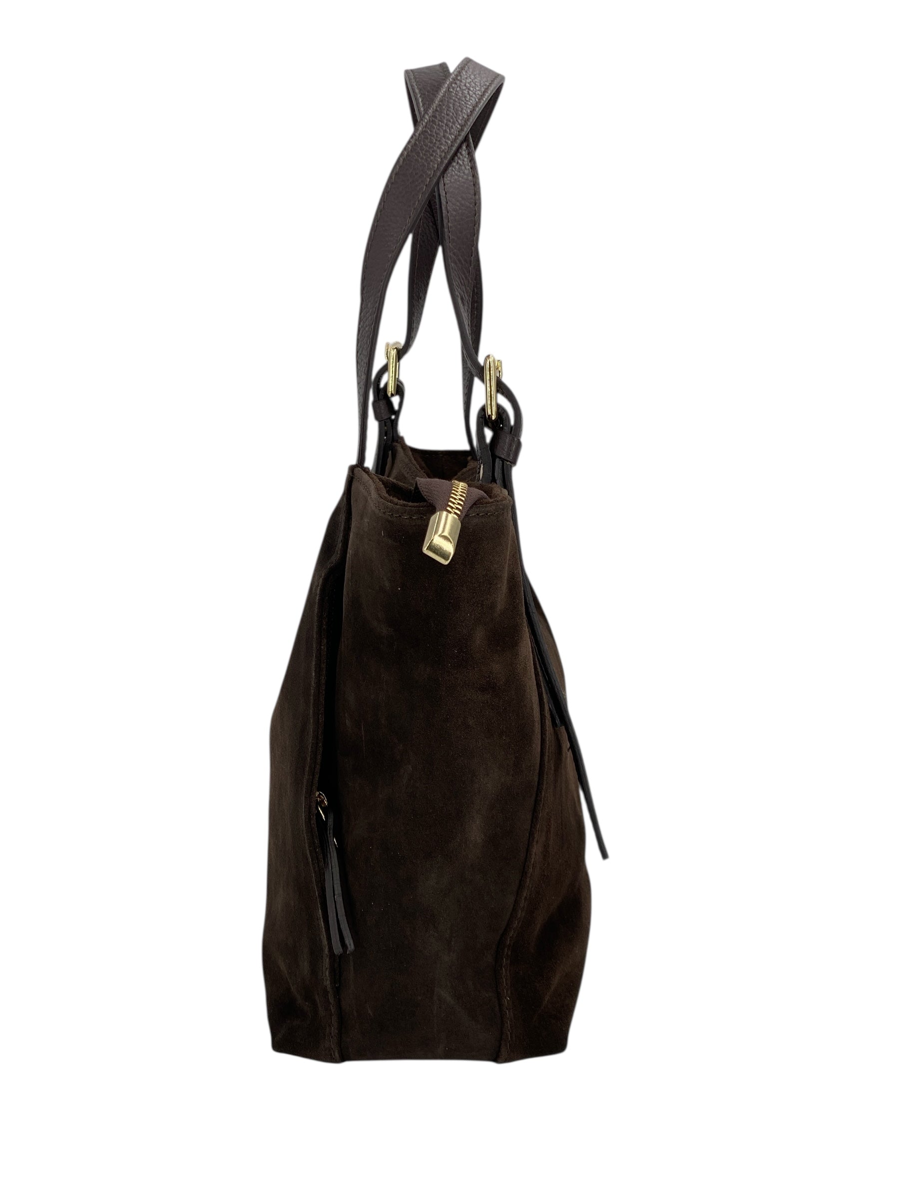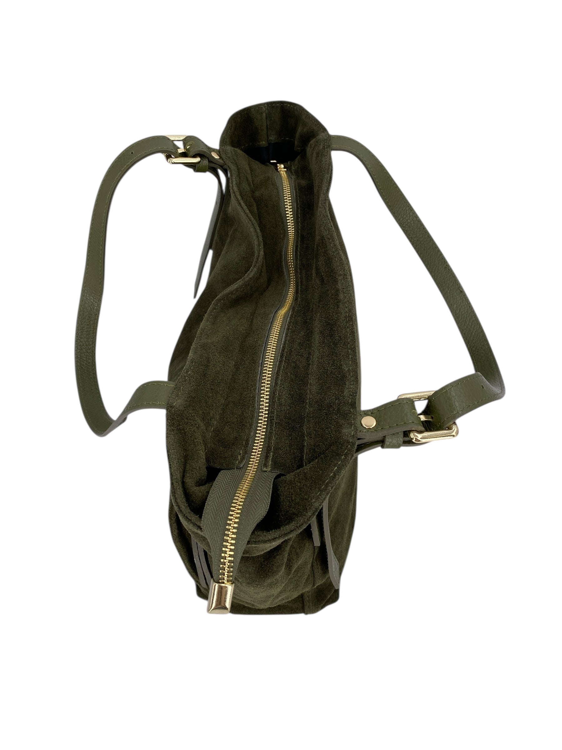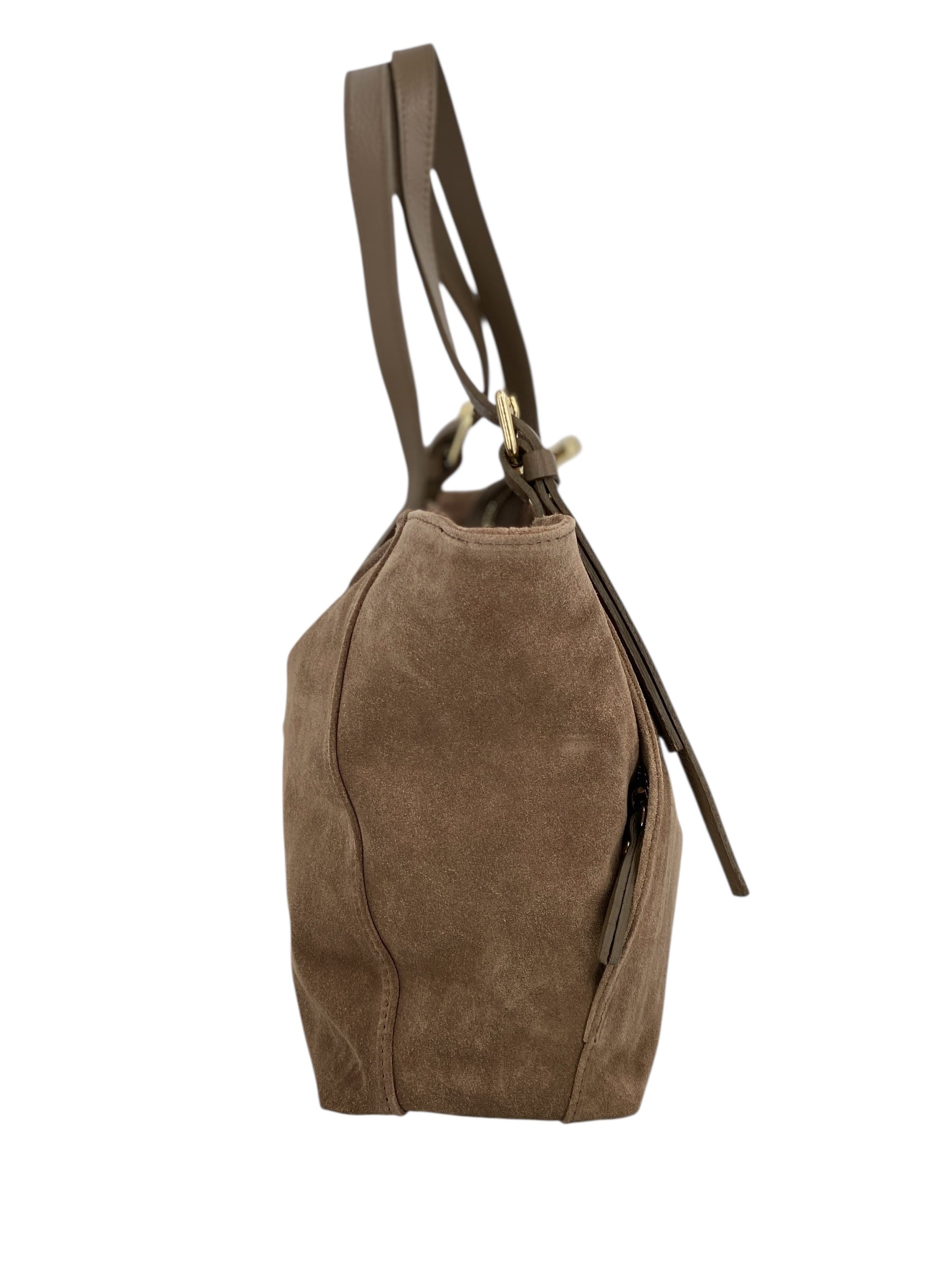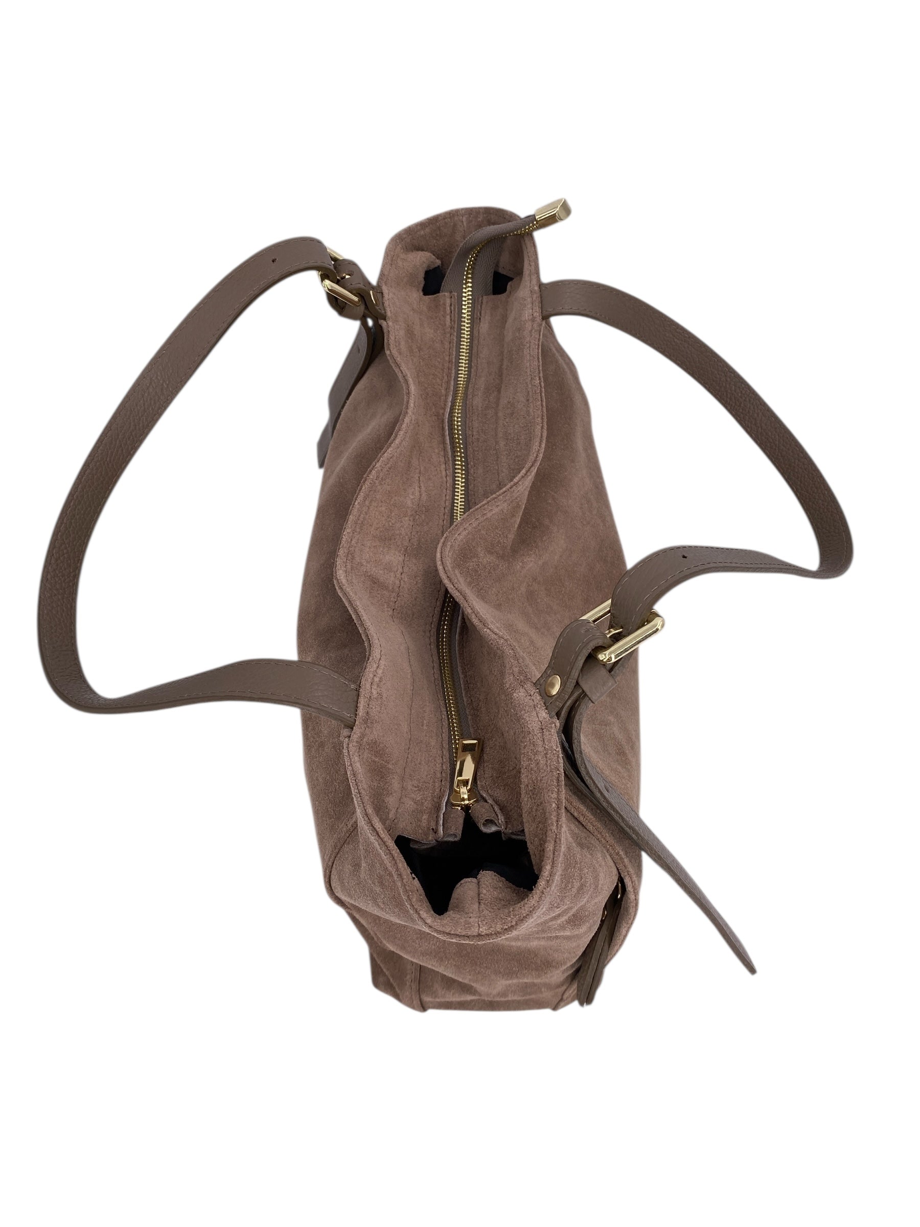 Camille – Borsa a mano e a spalla donna in pelle e camoscio italiano con manici regolabili e cuciture rinforzate