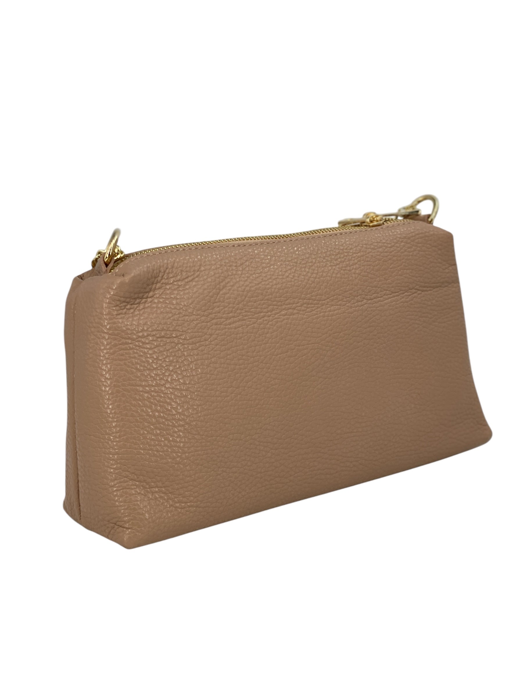 Realizzata in vera pelle di vitello italiana di altissima qualità, la borsa Giselle è l'accessorio perfetto per chi cerca uno stile raffinato e pratico allo stesso tempo. Compatta ma capiente, questa borsa unisce design minimale a dettagli sofisticati, come le finiture in metallo dorato e la texture morbida e naturale della pelle pieno fiore.
