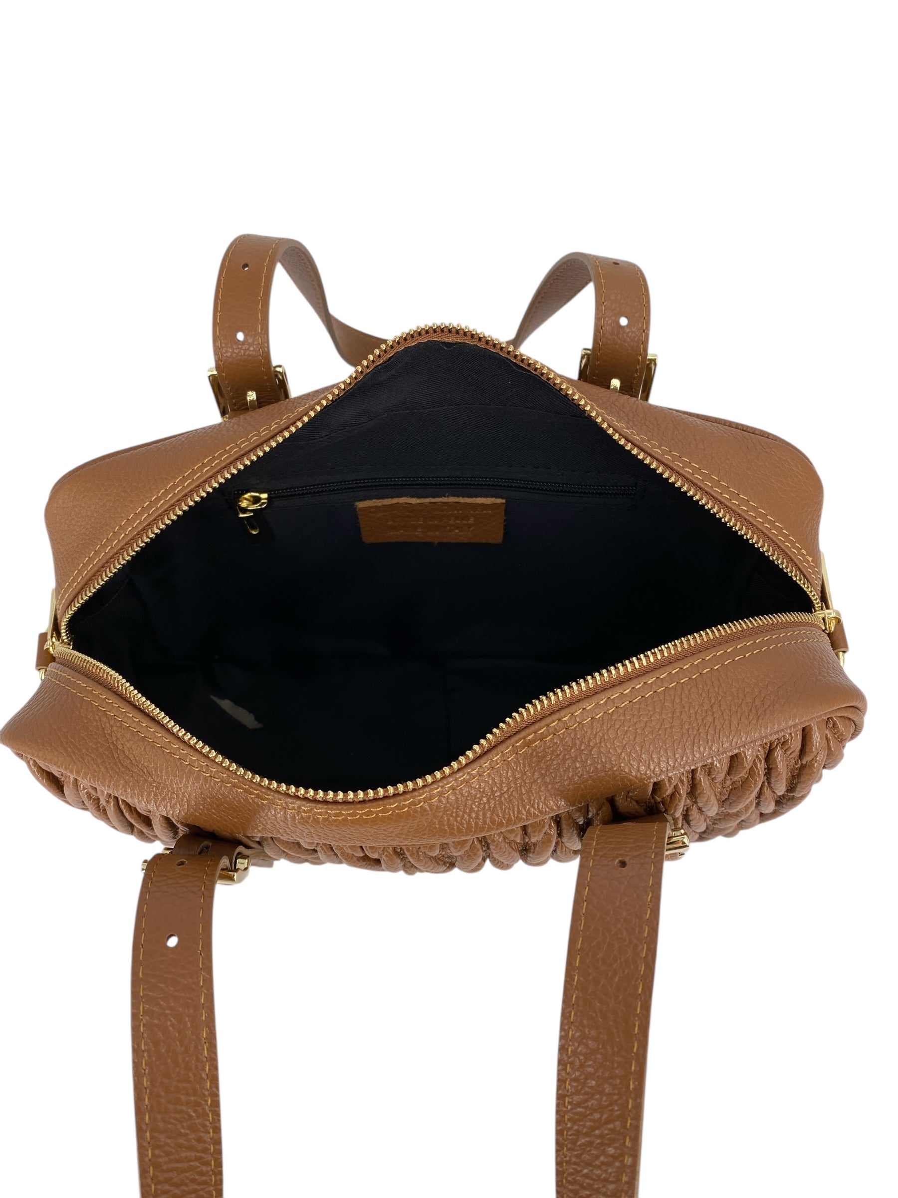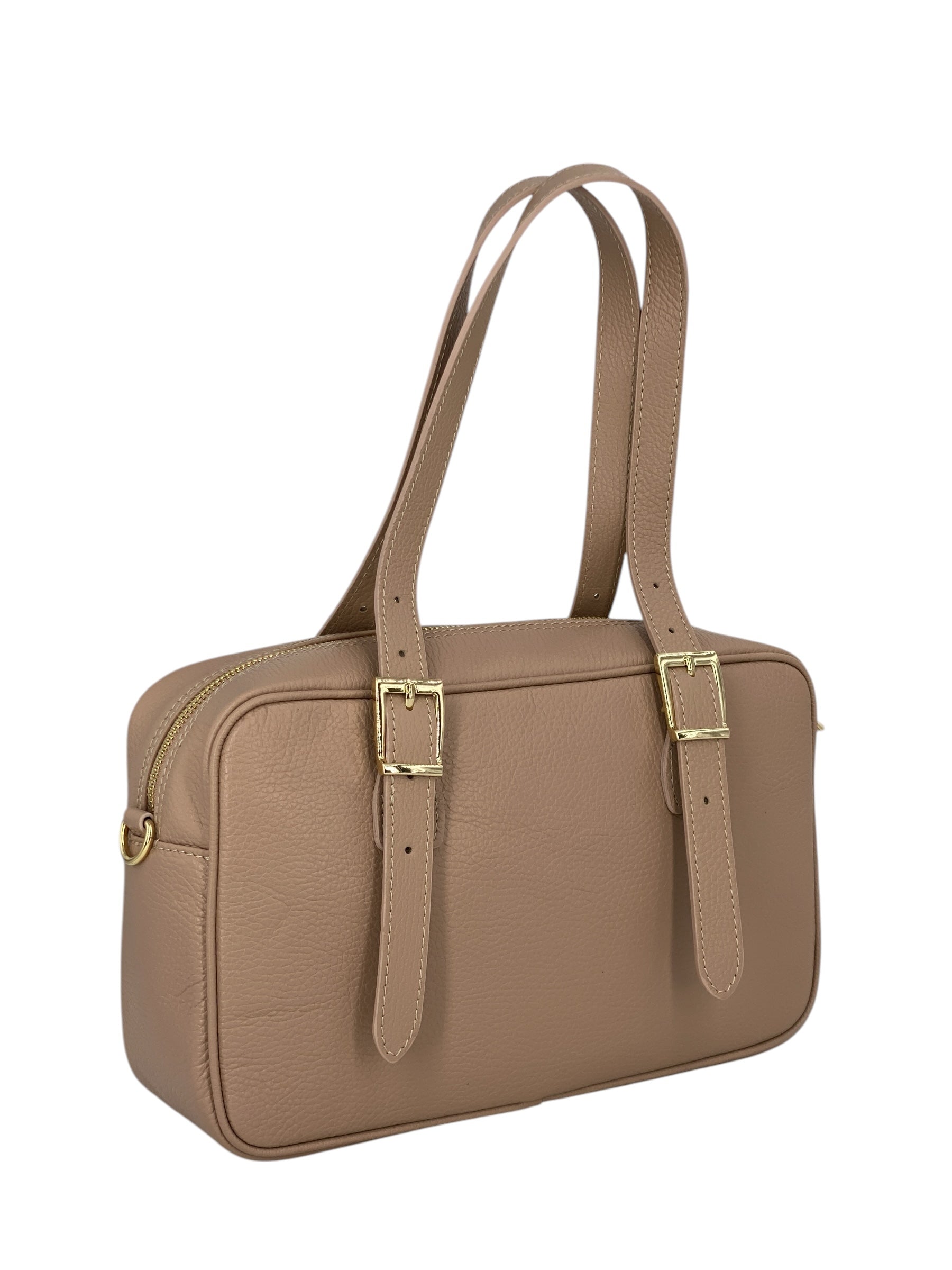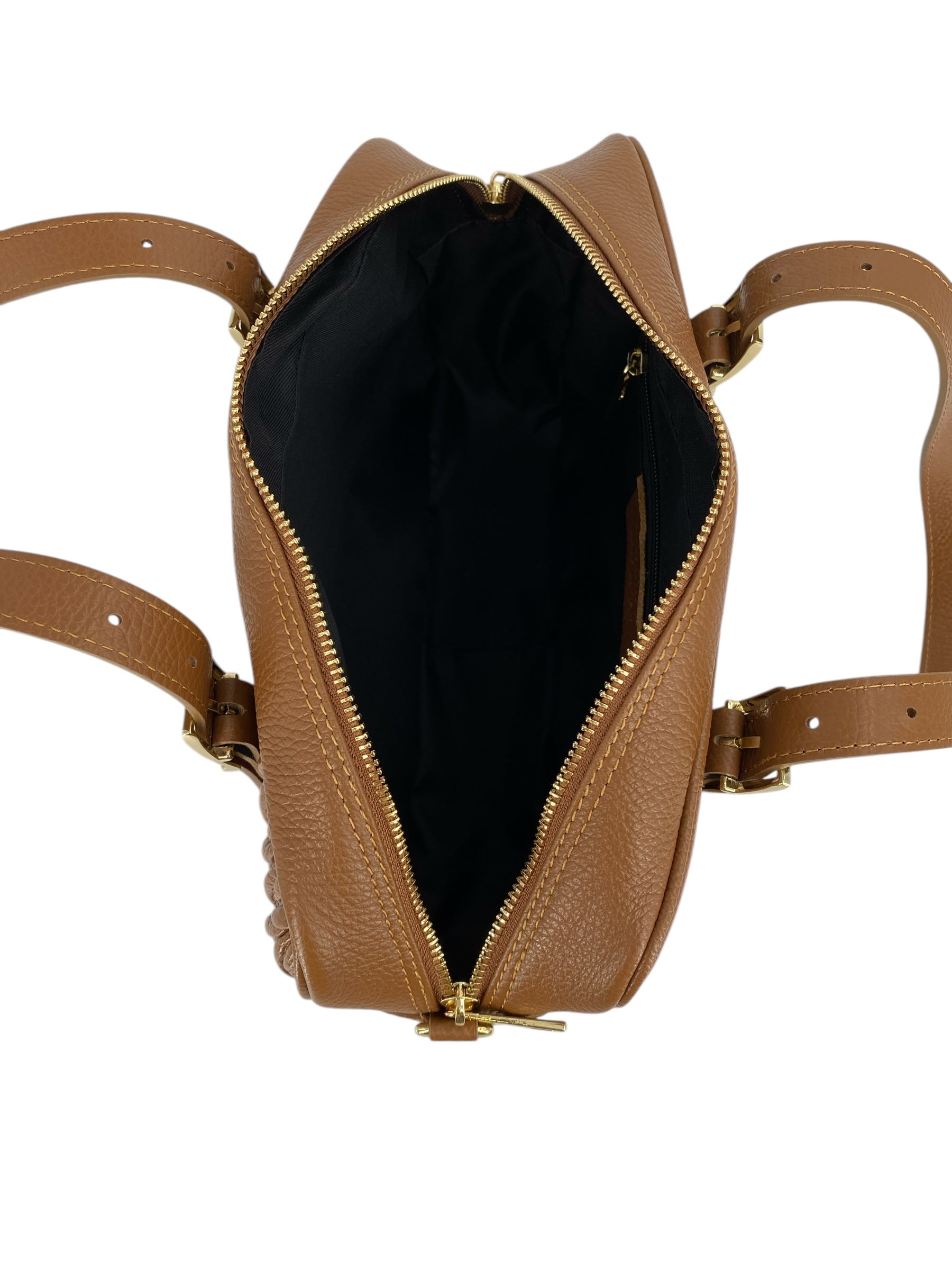 La borsa Juliane è realizzata in vera pelle di alta qualità, caratterizzata da una lavorazione artigianale che ne esalta la texture naturale e la resistenza.