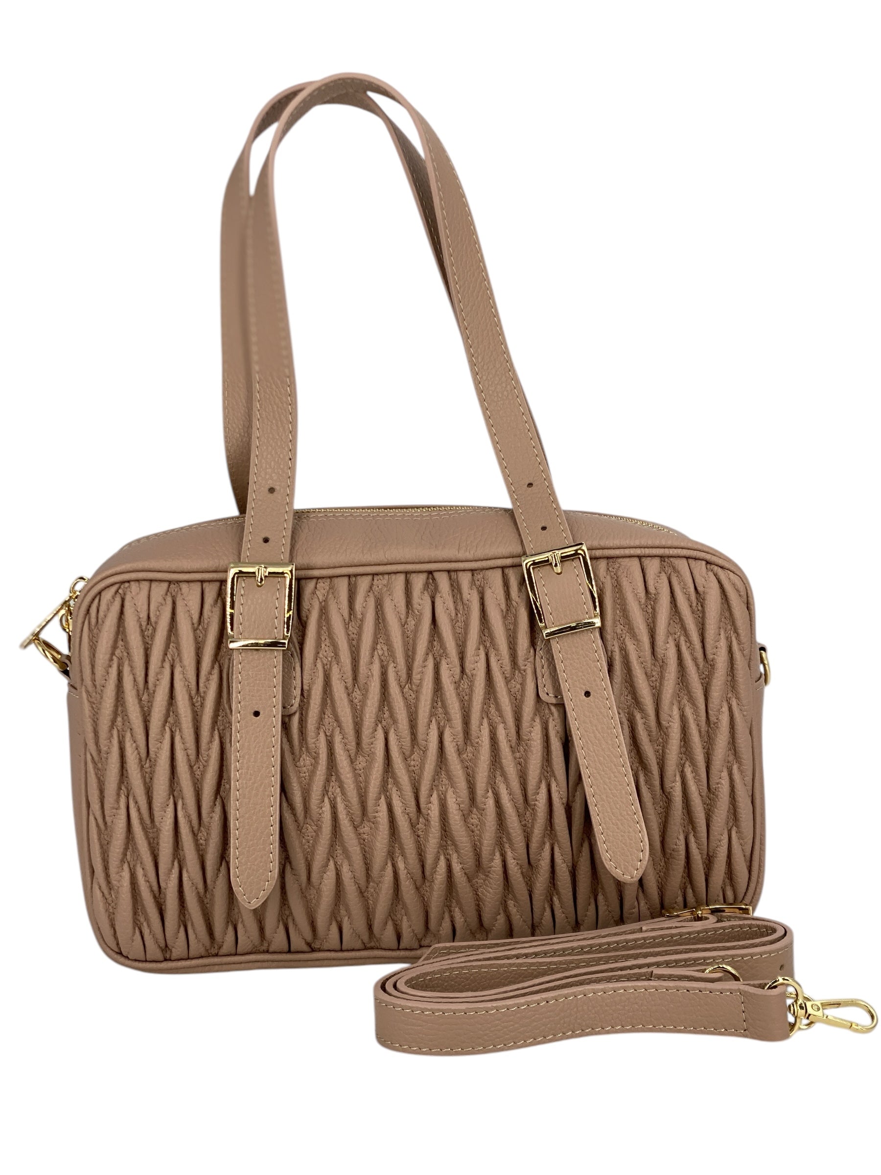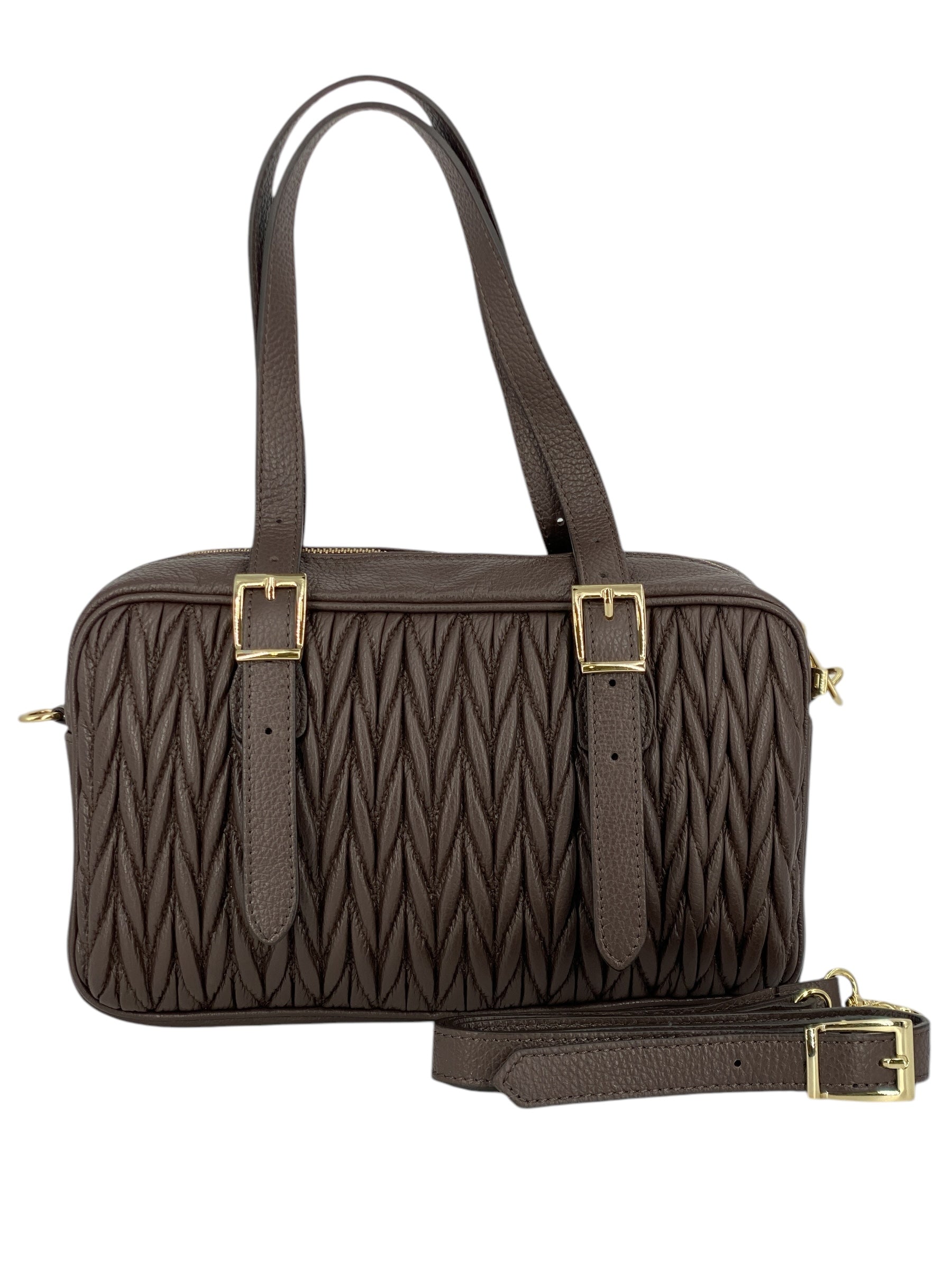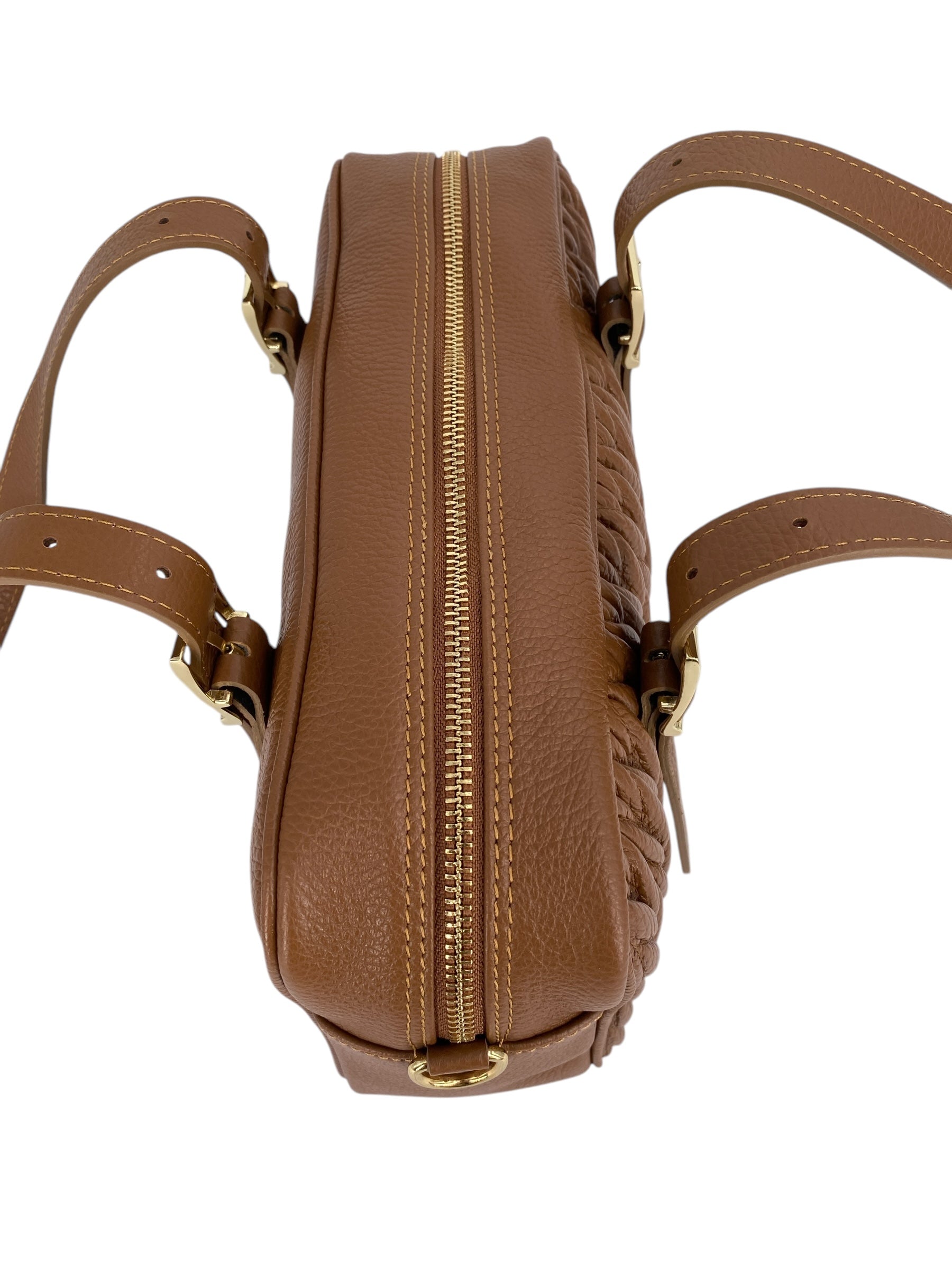 La borsa Juliane è realizzata in vera pelle di alta qualità, caratterizzata da una lavorazione artigianale che ne esalta la texture naturale e la resistenza.