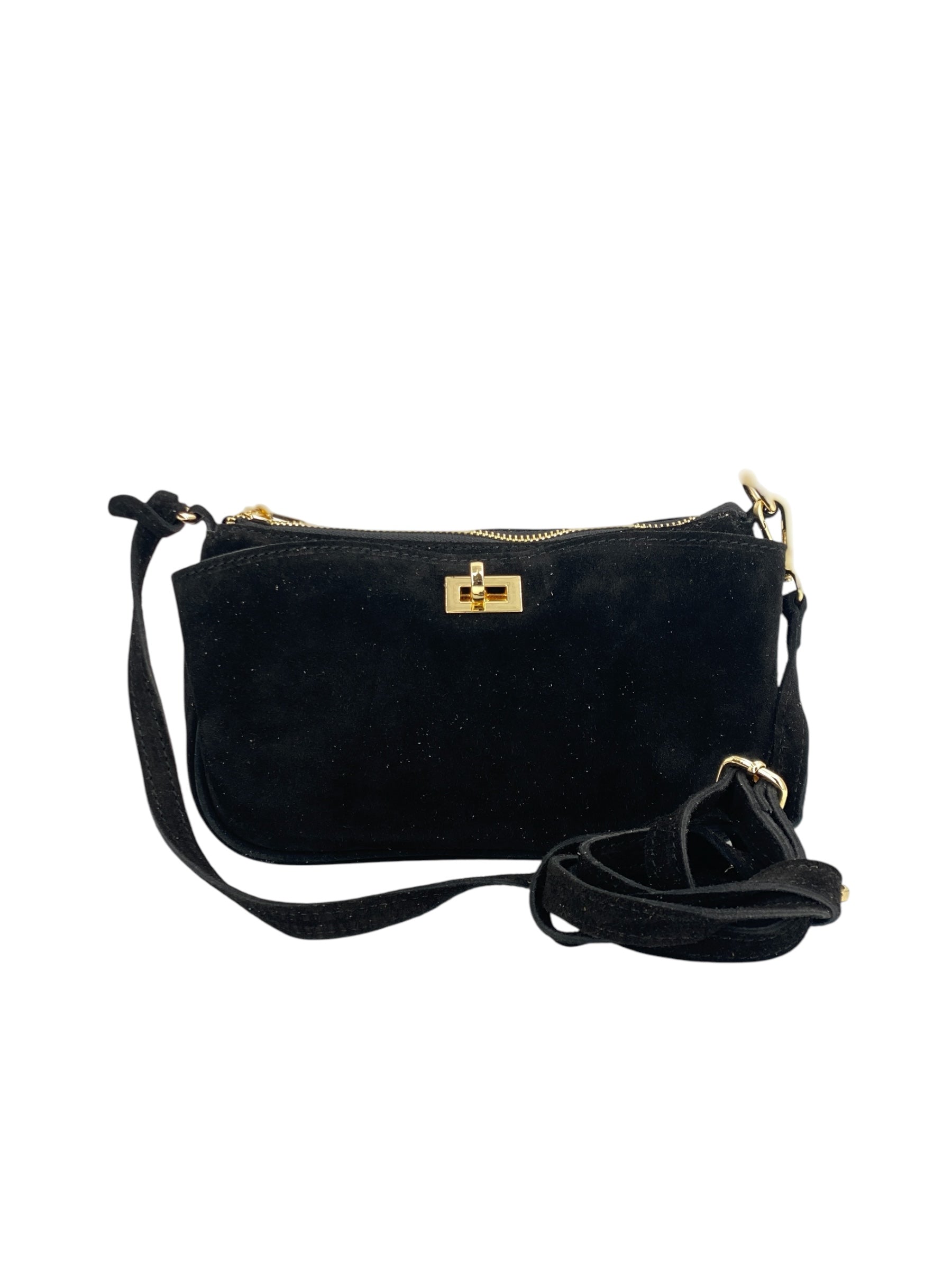 Dotata sia di chiusura con zipper che di patta con chiusura twist lock dorata (a girello), Justine custodisce i tuoi oggetti con stile e discrezione. All'interno, lo spazio è perfettamente studiato per contenere l’essenziale: smartphone, portafoglio, chiavi, rossetto.