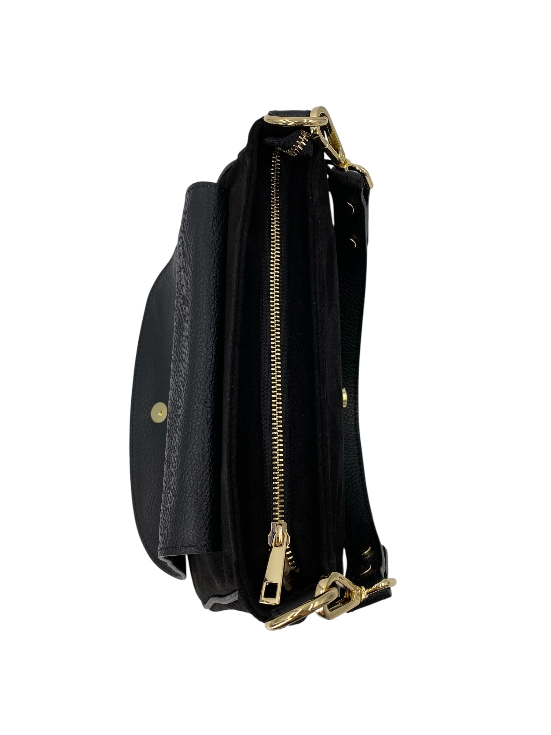 La borsa Lalie è un modello a tracolla elegante e funzionale, realizzato interamente in vera pelle di vitello italiana, nota per la sua morbidezza al tatto e la sua resistenza nel tempo. Il design sobrio ma sofisticato la rende una compagna ideale sia per l’uso quotidiano che per occasioni più formali.