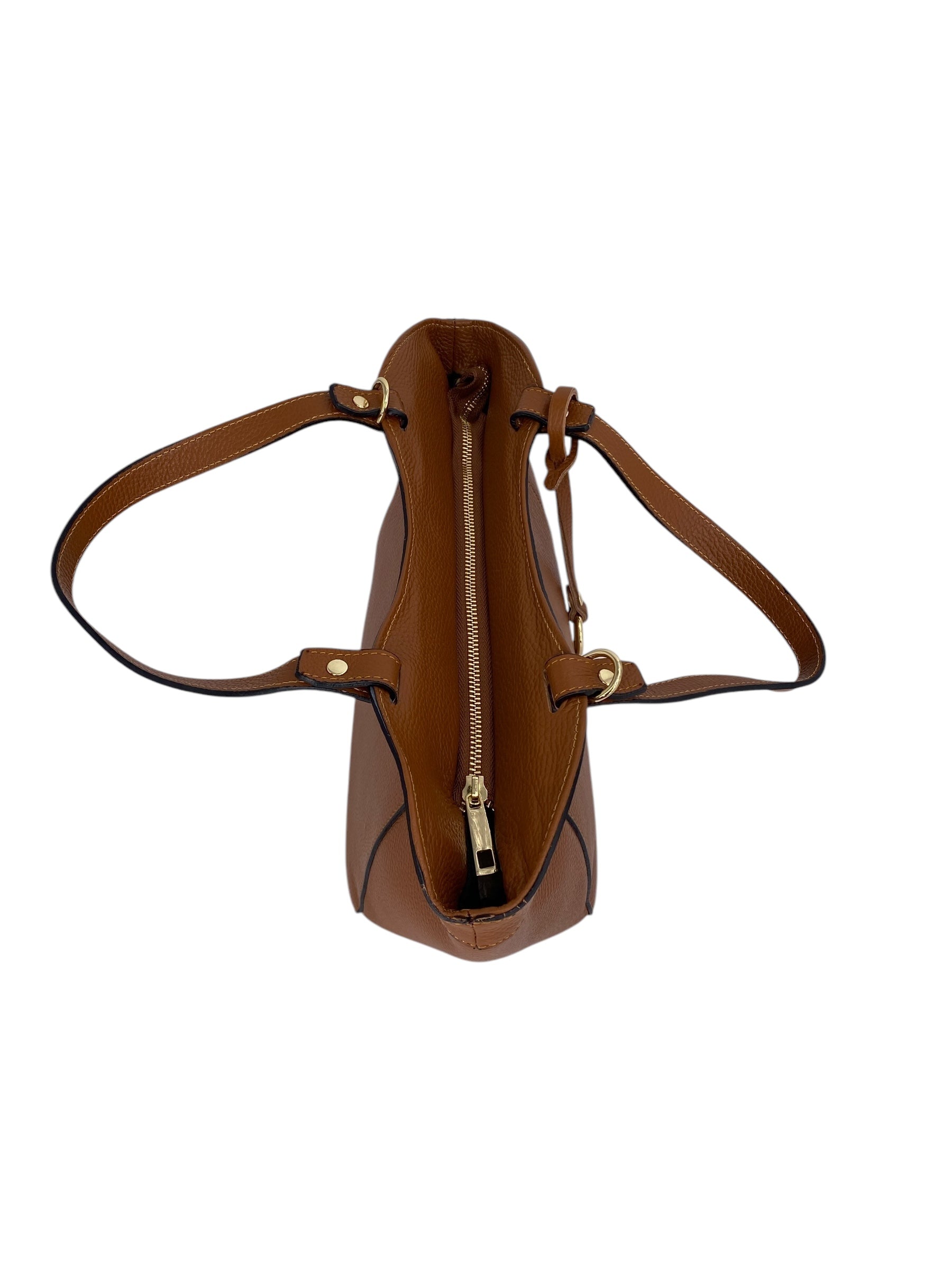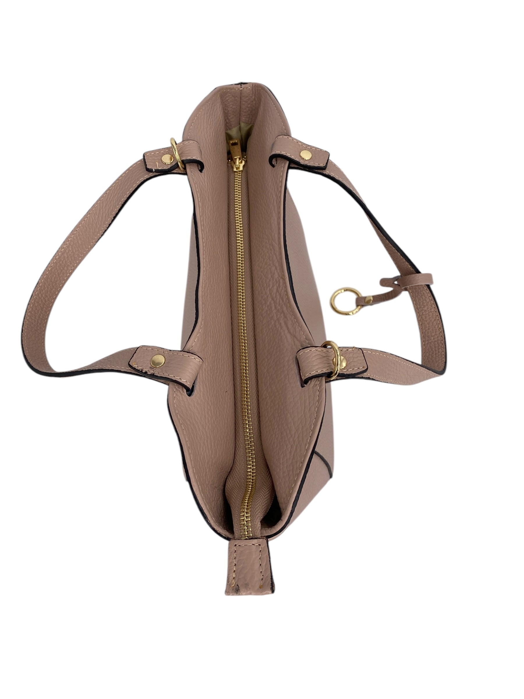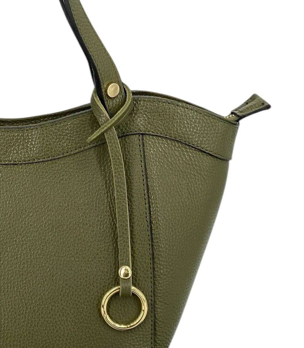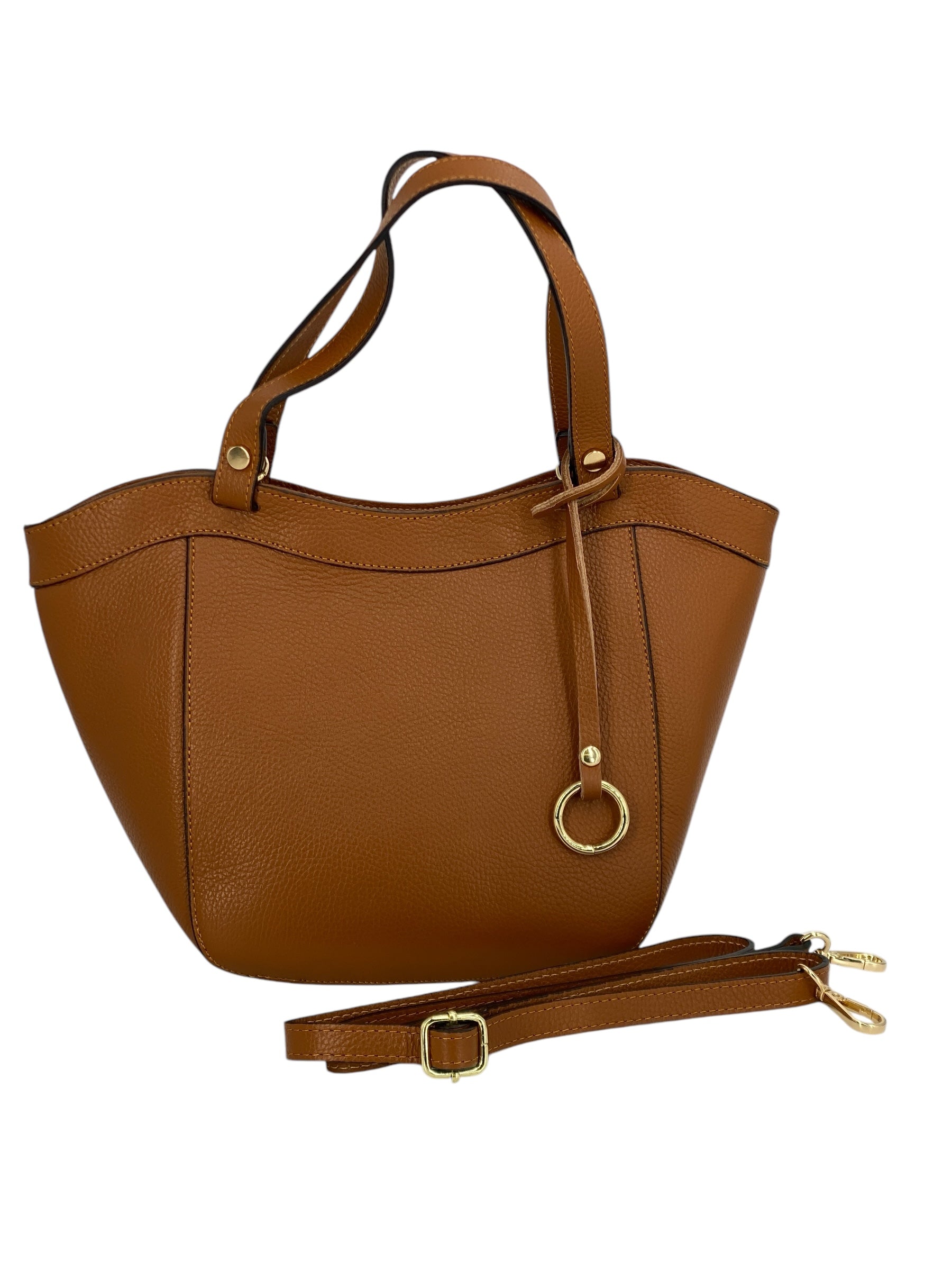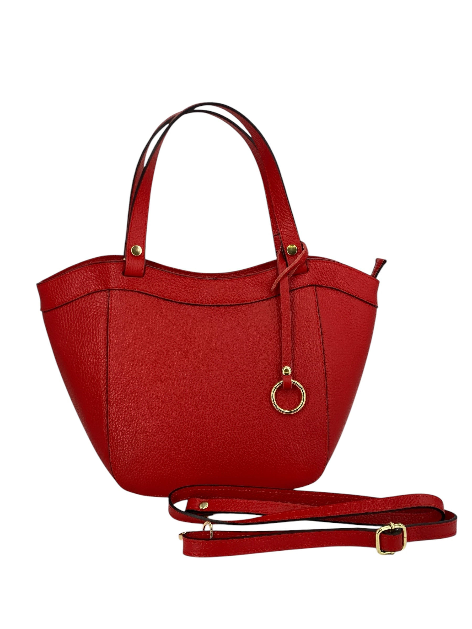 Dettagli di classe: l’anello in metallo dorato rende ogni borsa unica e riconoscibile.