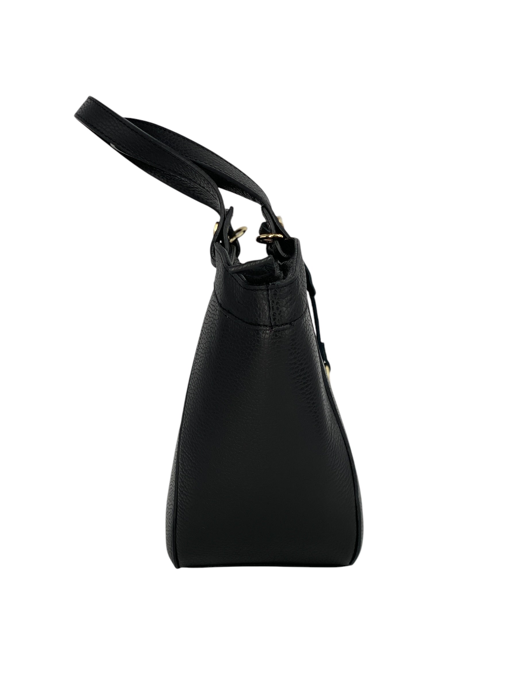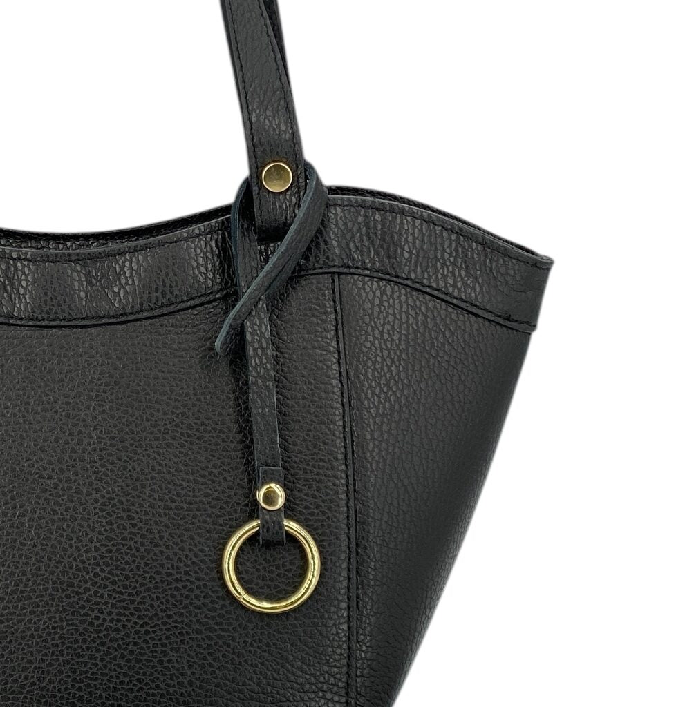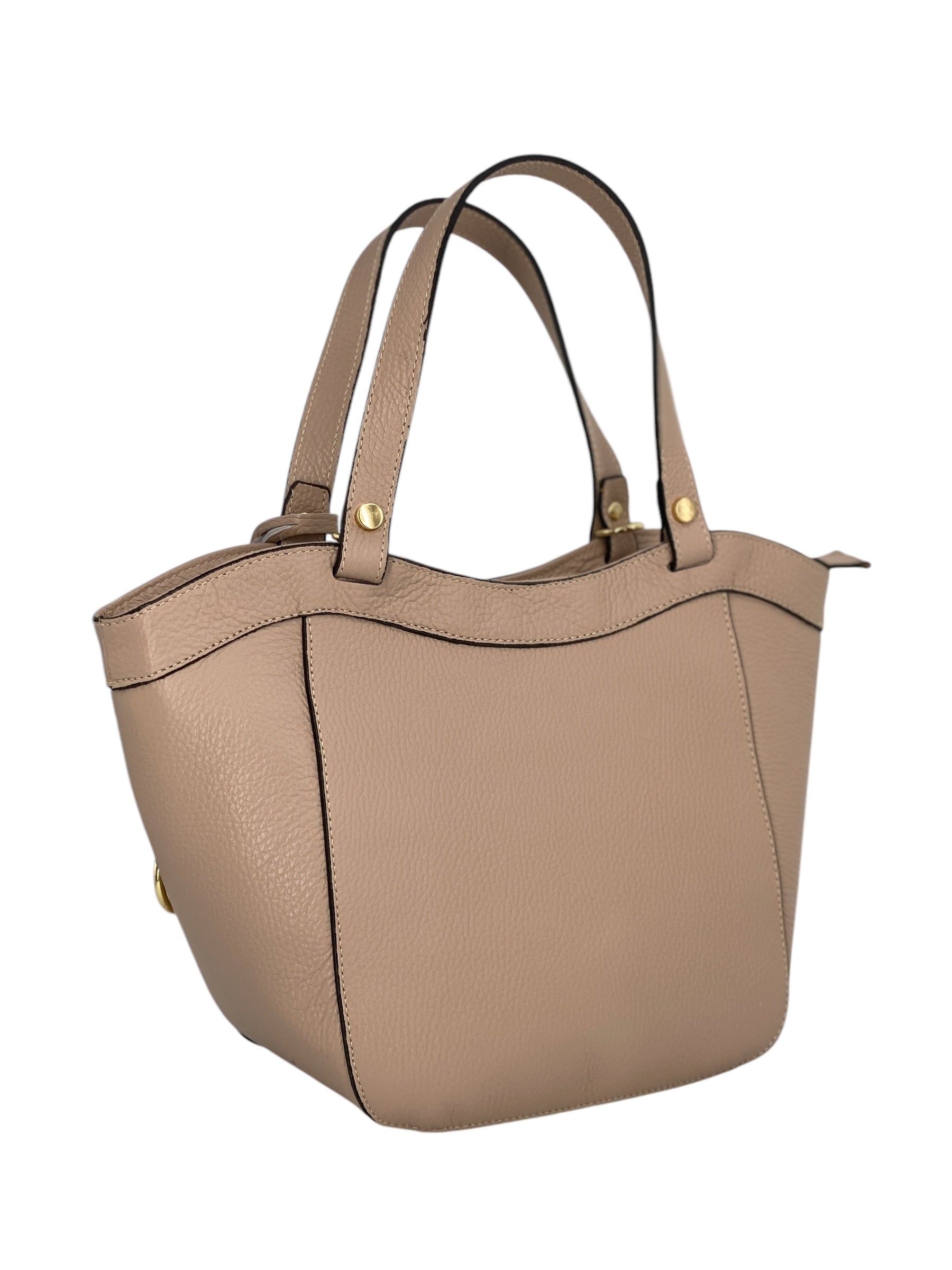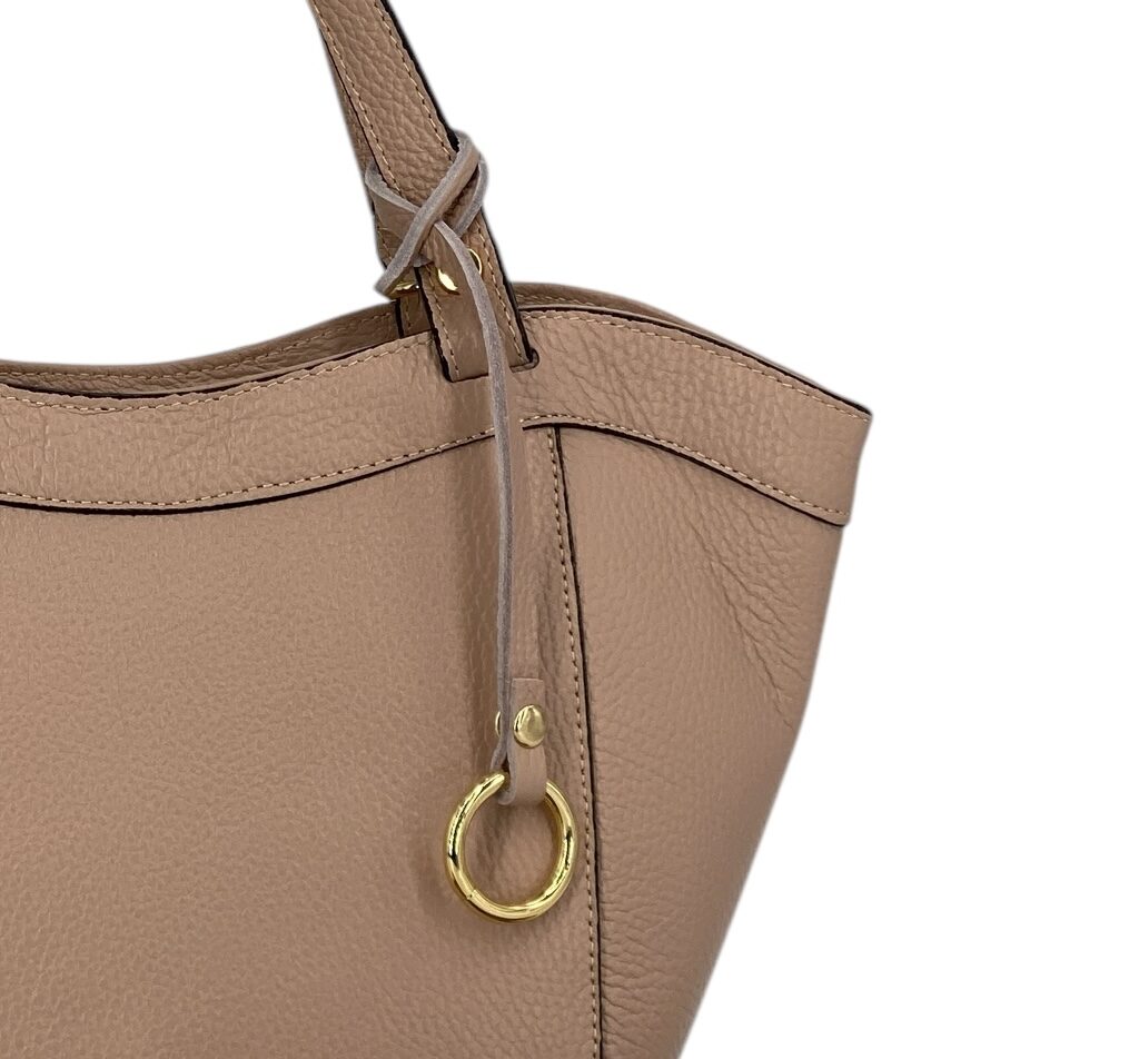 La borsa Laurine è realizzata in vera pelle di vitello martellata di alta qualità, una scelta che unisce resistenza e morbidezza al tatto per garantire comfort e durata nel tempo. Il suo design pulito ed elegante è arricchito da dettagli di pregio che ne sottolineano l’anima sofisticata. Protagonista è l’anello in metallo dorato applicato sul davanti, un elemento distintivo che dona luce e raffinatezza alla silhouette.
