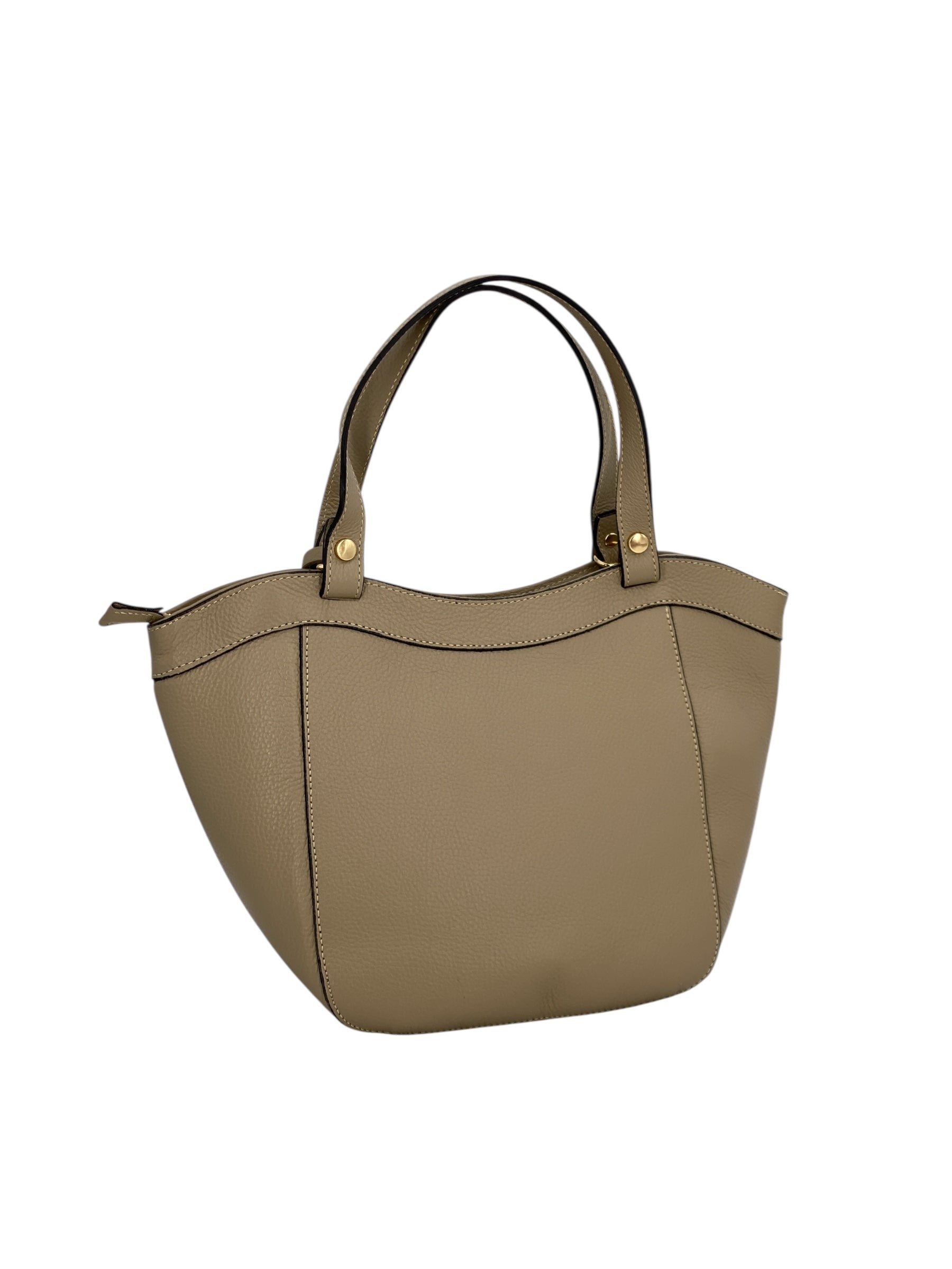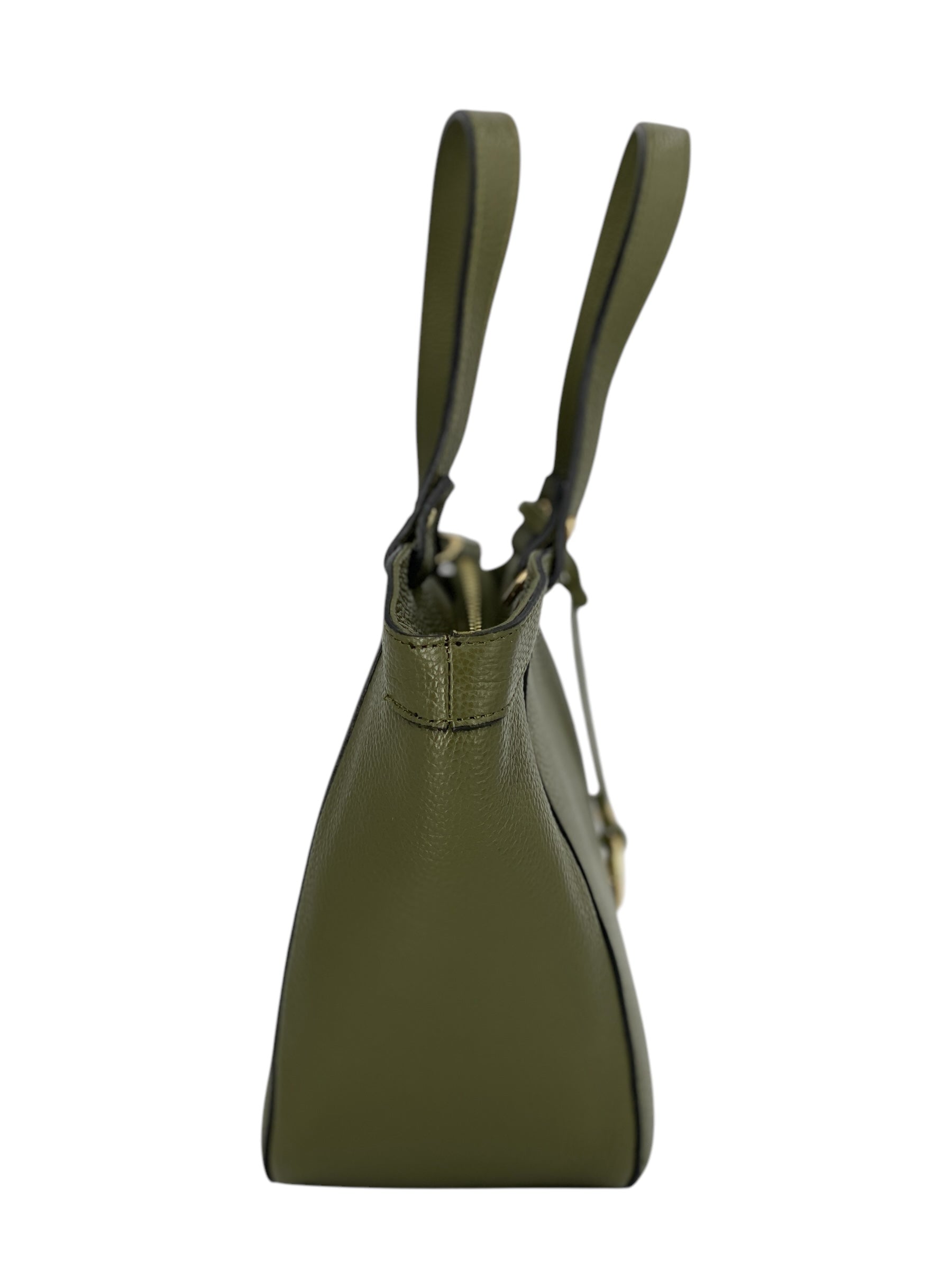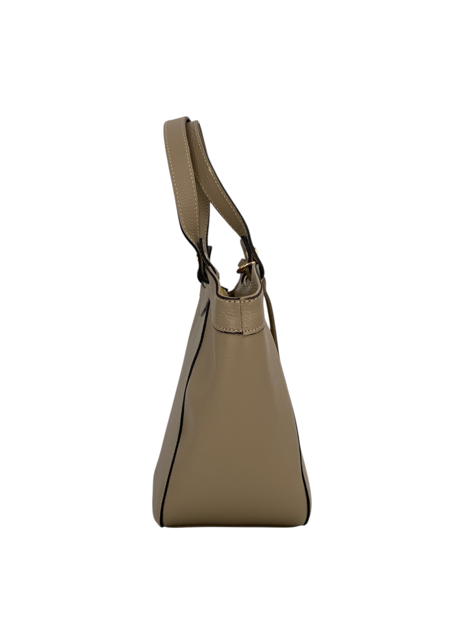 La borsa Laurine è realizzata in vera pelle di vitello martellata di alta qualità, una scelta che unisce resistenza e morbidezza al tatto per garantire comfort e durata nel tempo. Il suo design pulito ed elegante è arricchito da dettagli di pregio che ne sottolineano l’anima sofisticata. Protagonista è l’anello in metallo dorato applicato sul davanti, un elemento distintivo che dona luce e raffinatezza alla silhouette.