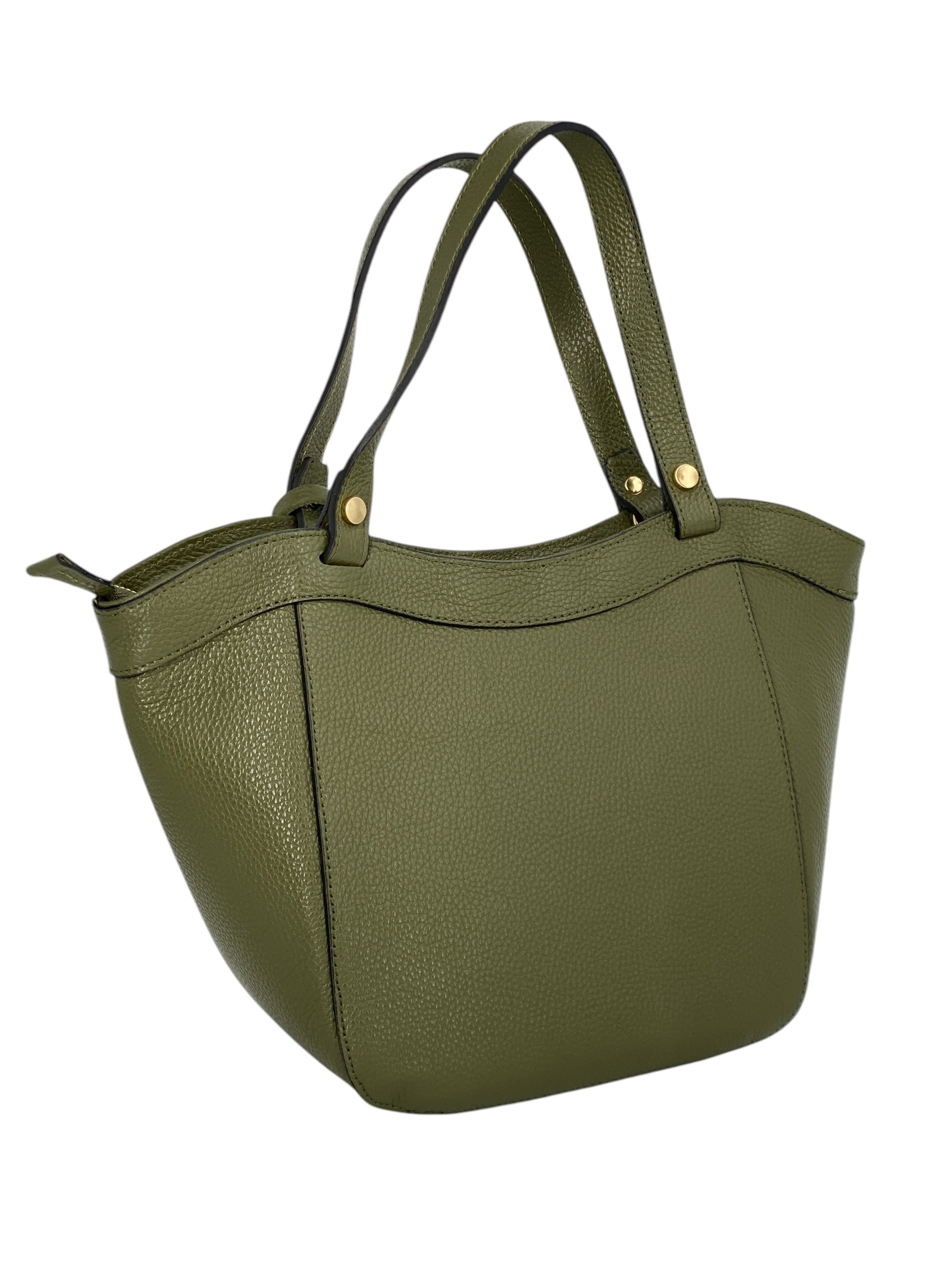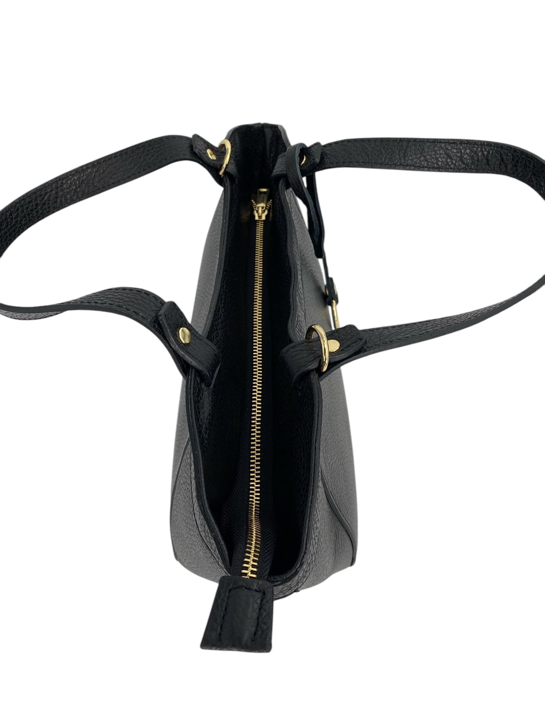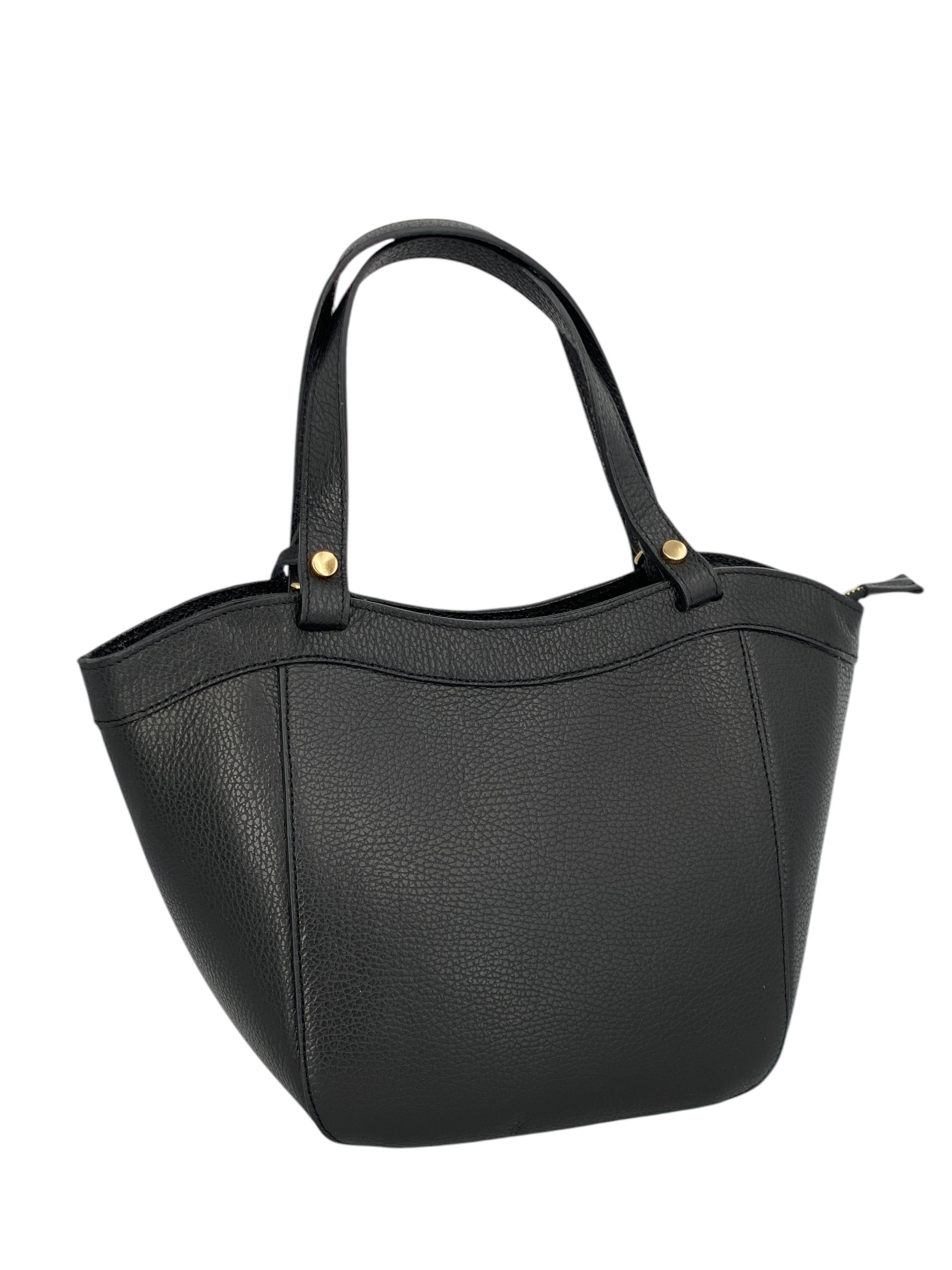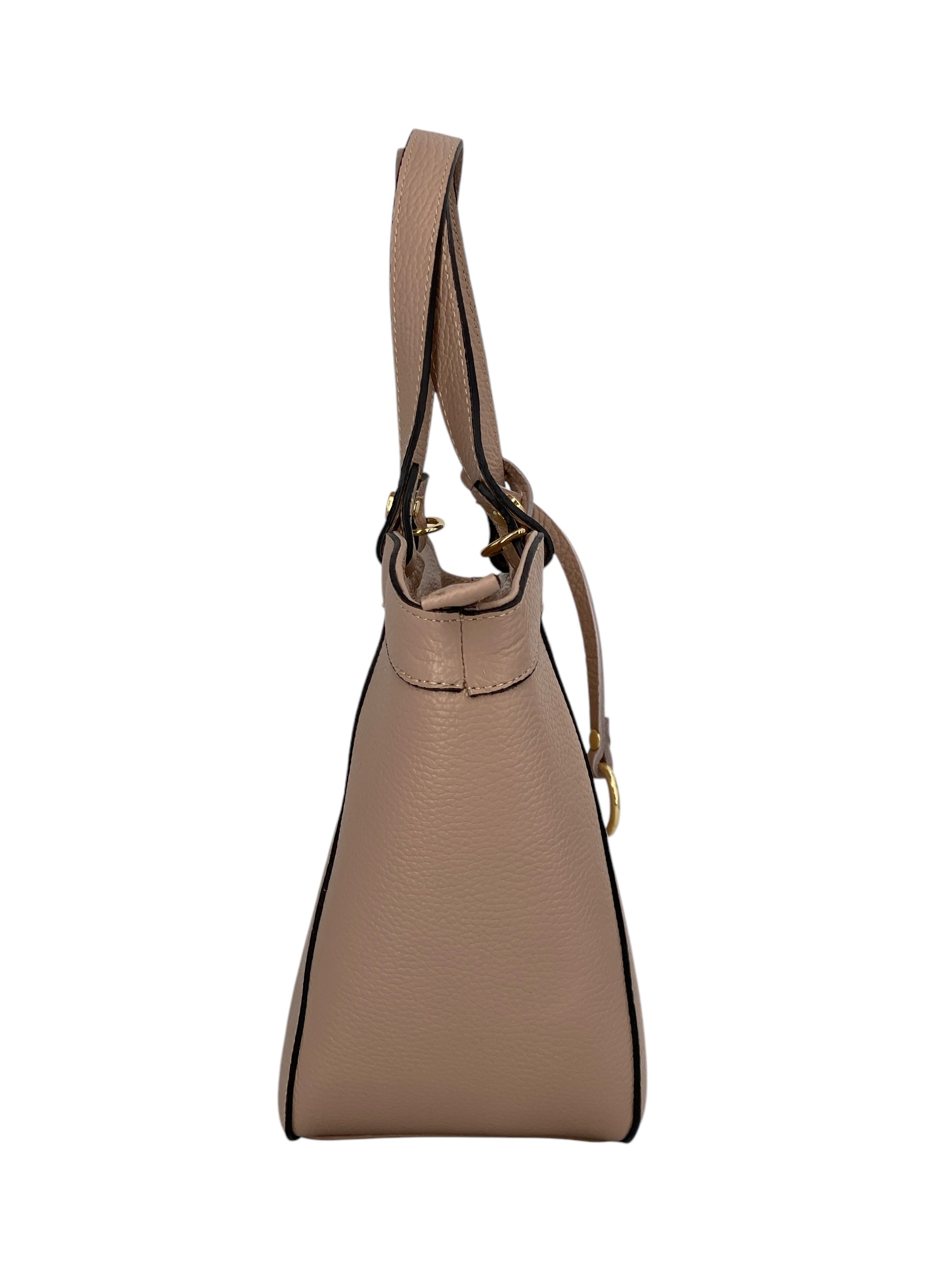 La borsa Laurine è realizzata in vera pelle di vitello martellata di alta qualità, una scelta che unisce resistenza e morbidezza al tatto per garantire comfort e durata nel tempo. Il suo design pulito ed elegante è arricchito da dettagli di pregio che ne sottolineano l’anima sofisticata. Protagonista è l’anello in metallo dorato applicato sul davanti, un elemento distintivo che dona luce e raffinatezza alla silhouette.