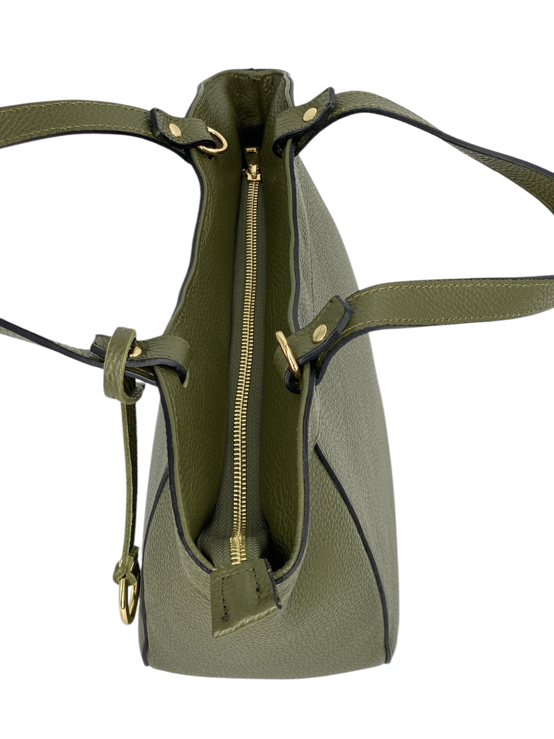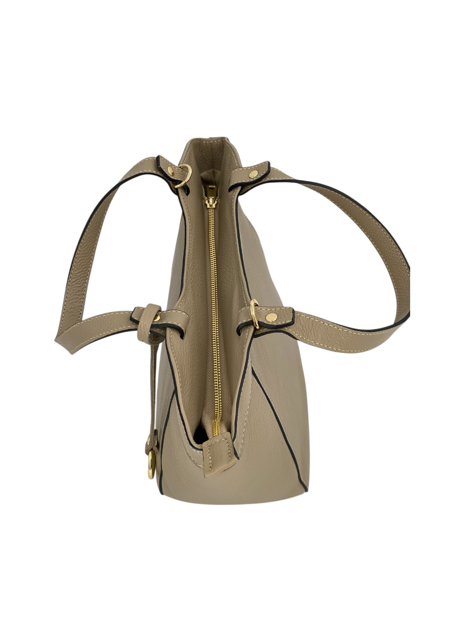 Chiusura superiore con zip per sicurezza e praticità.