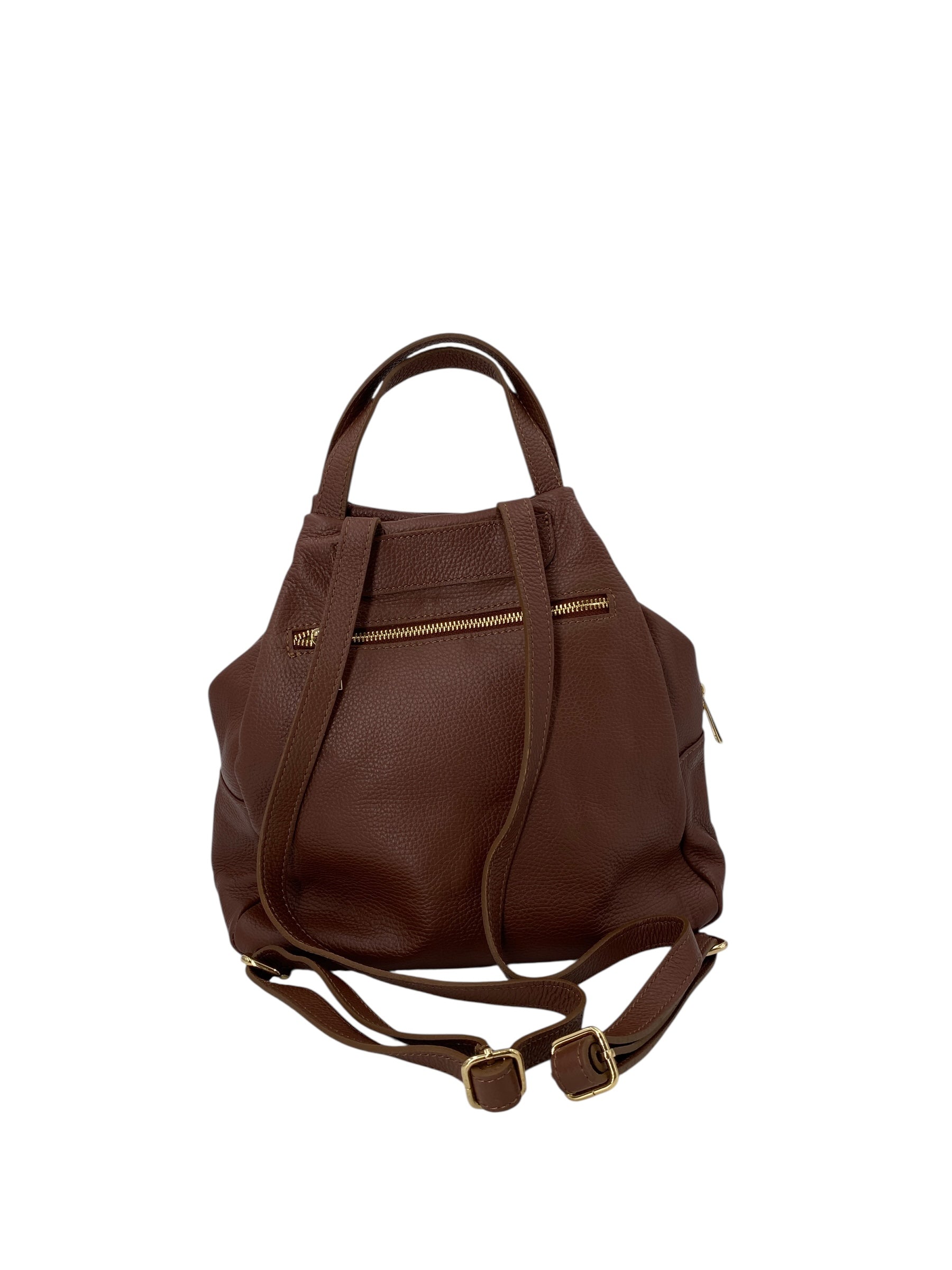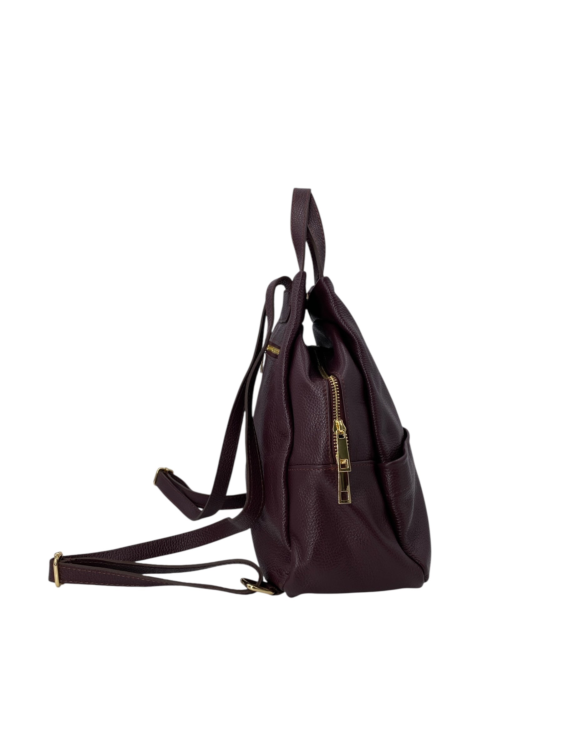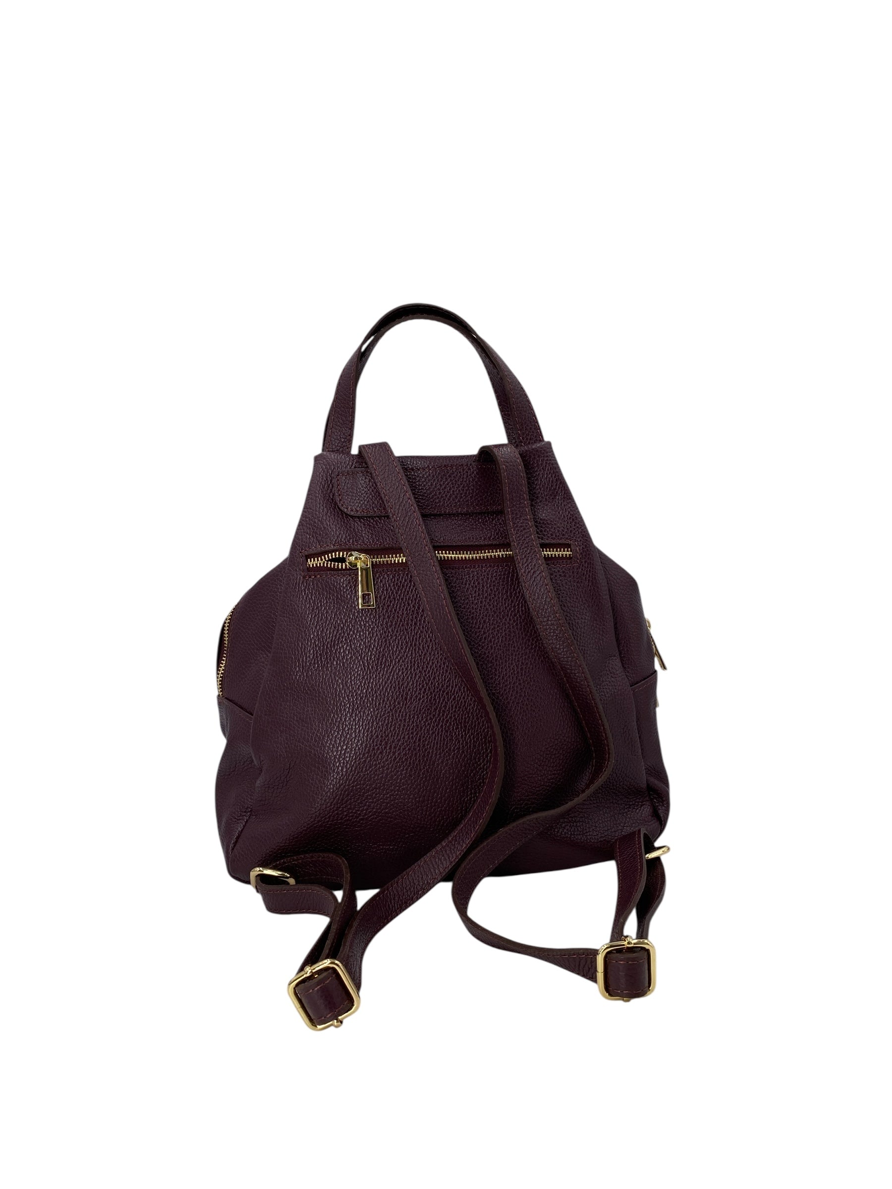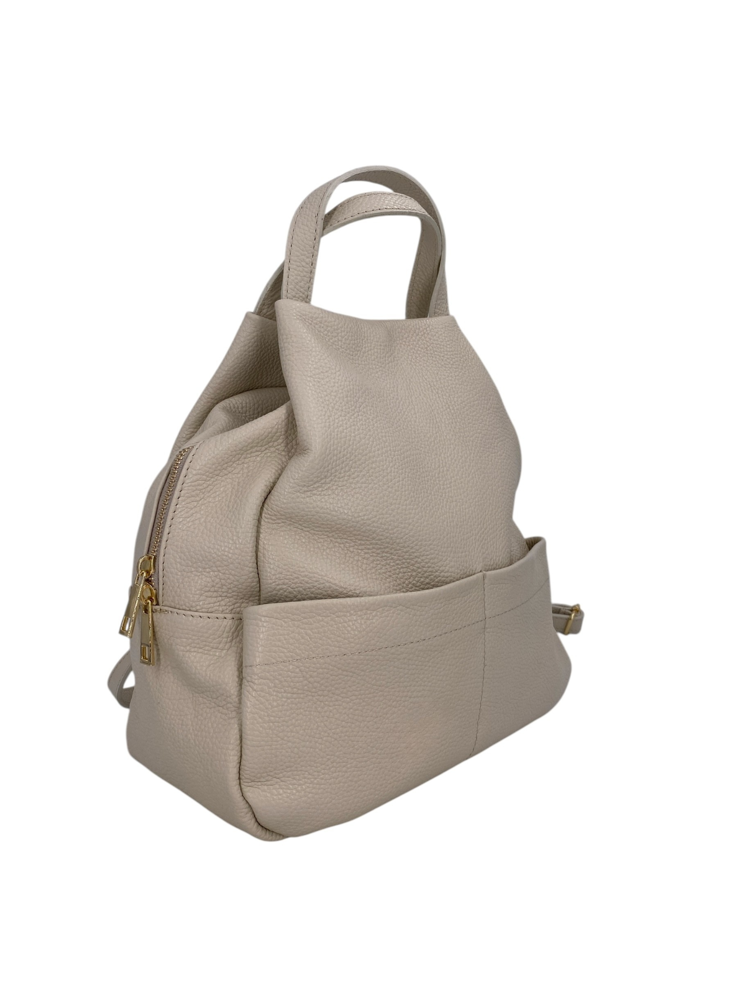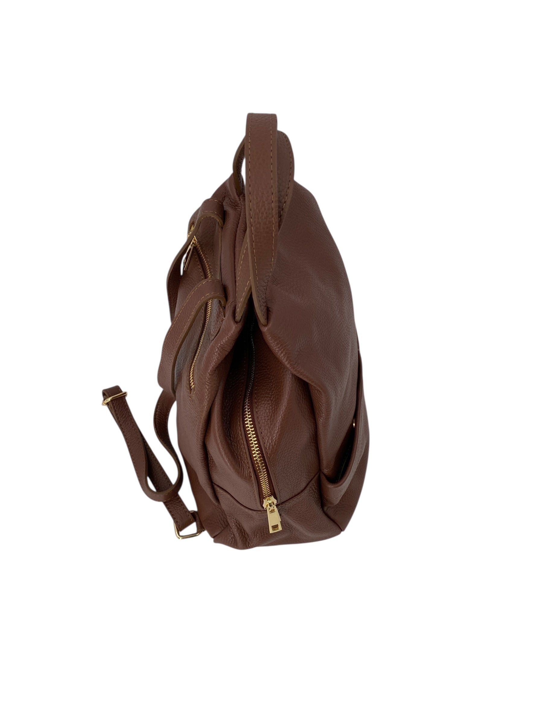 Margaux – Zaino donna in vera pelle italiana artigianale con doppia zip dorata e tasche multiple
