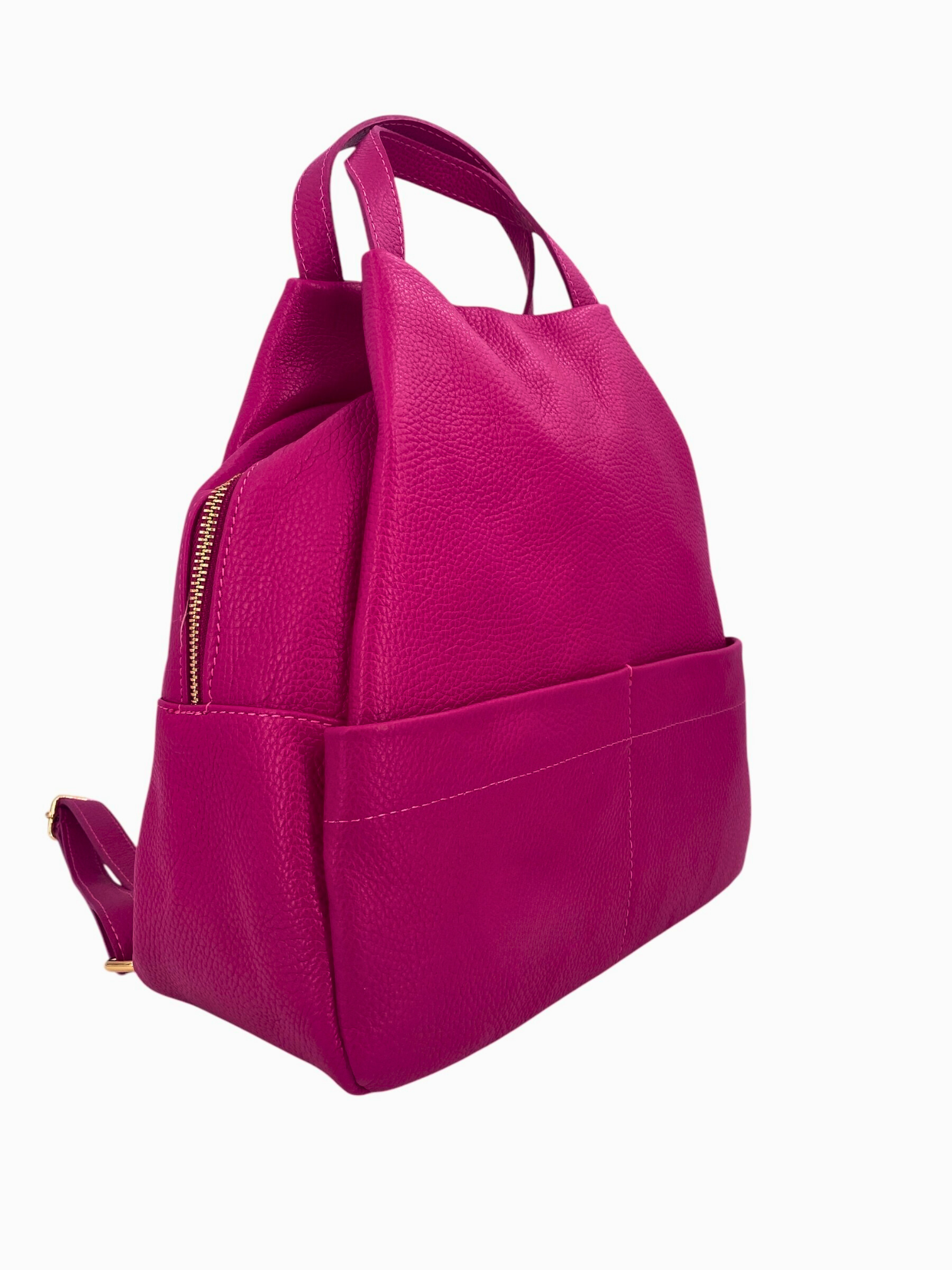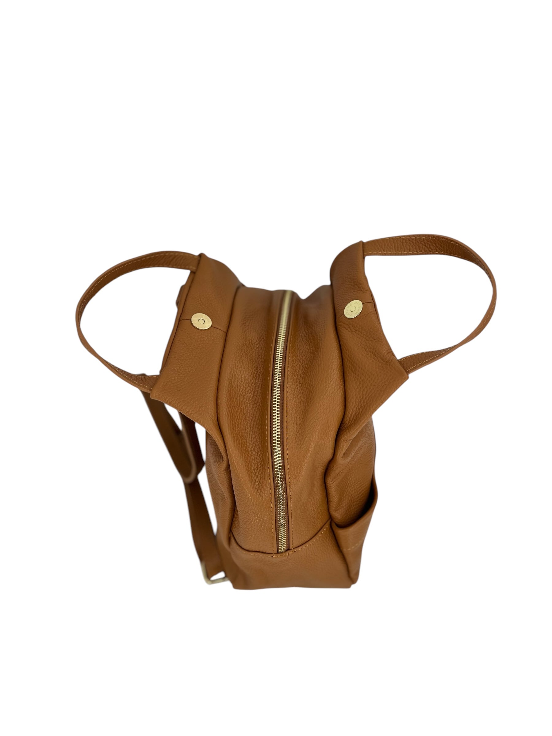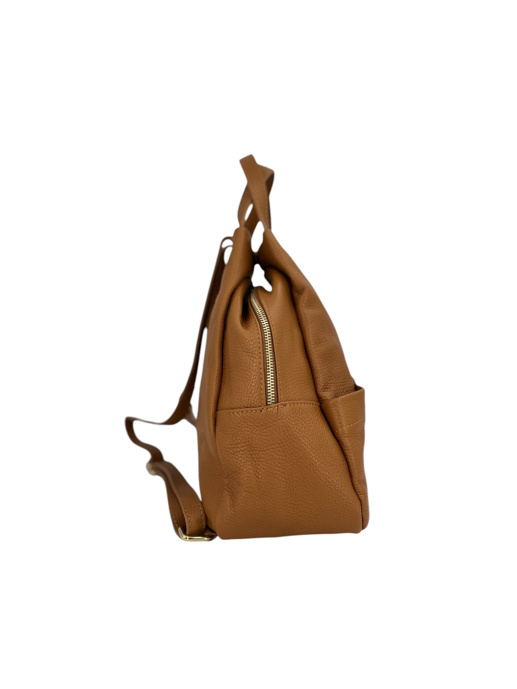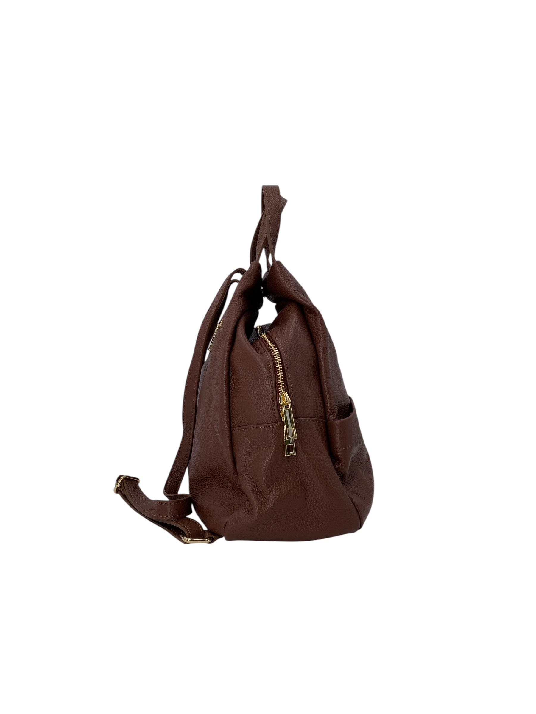 Margaux – Zaino donna in vera pelle italiana artigianale con doppia zip dorata e tasche multiple