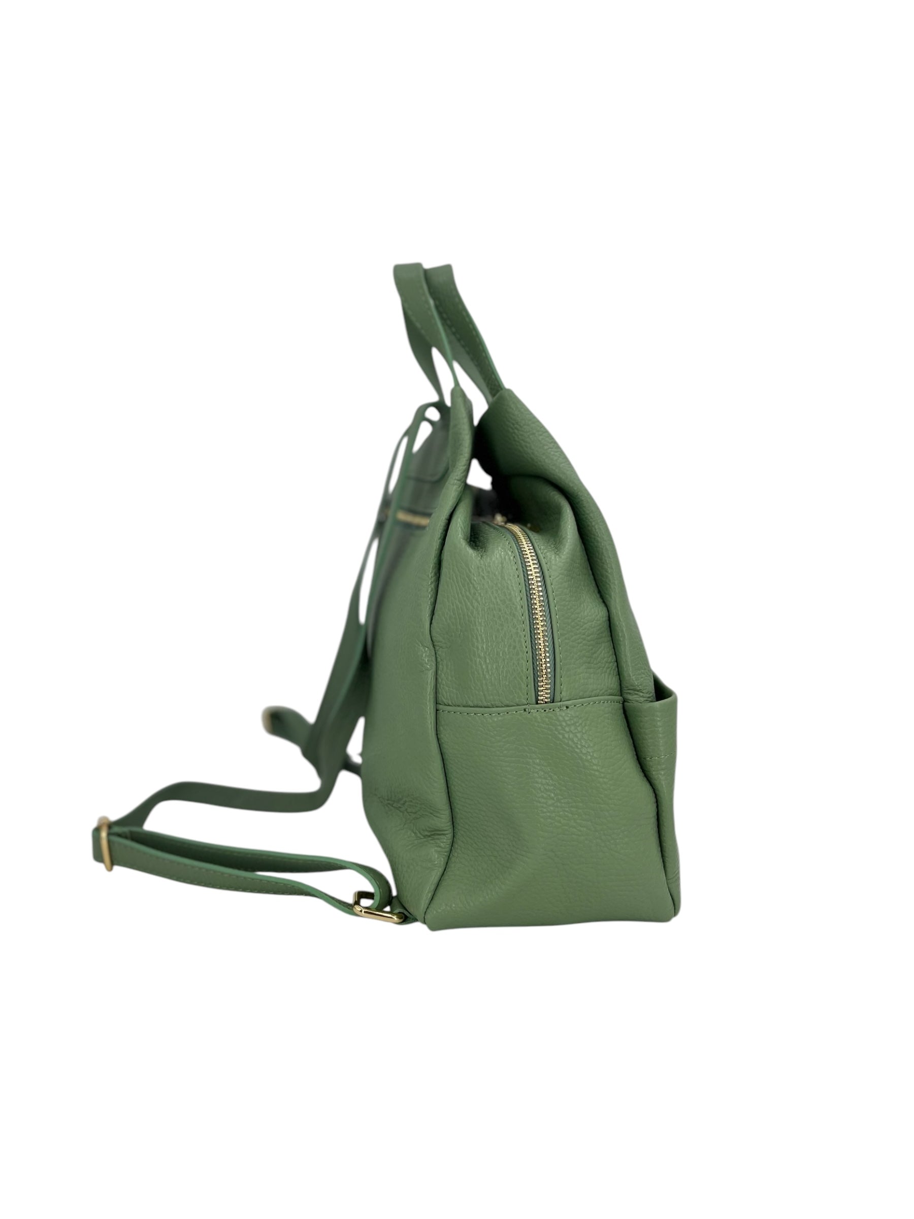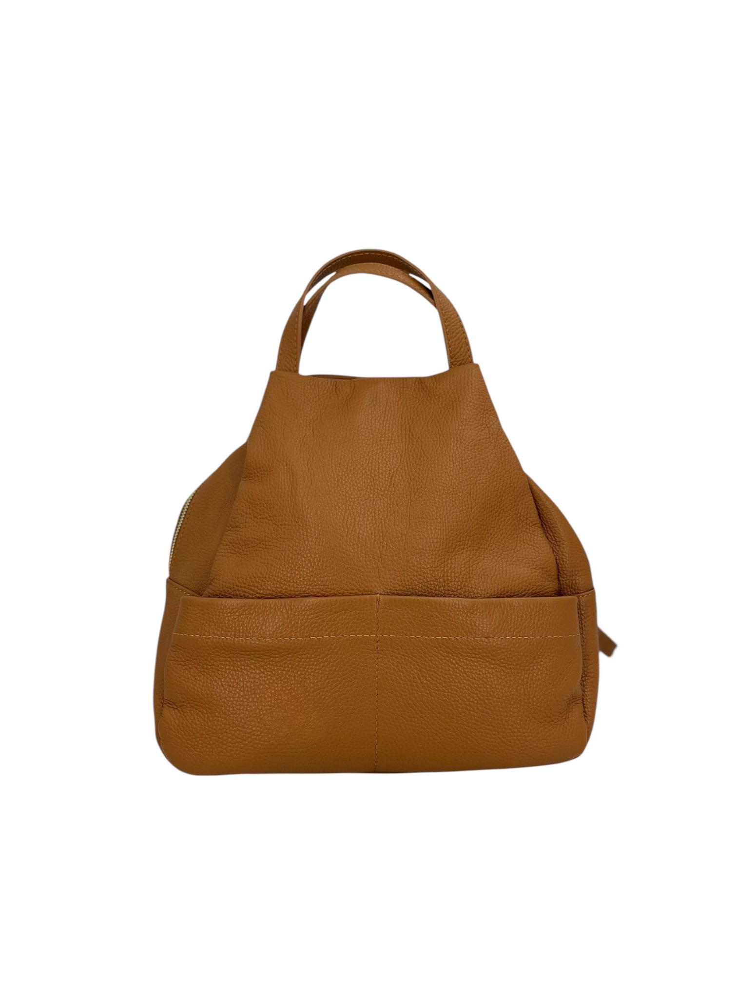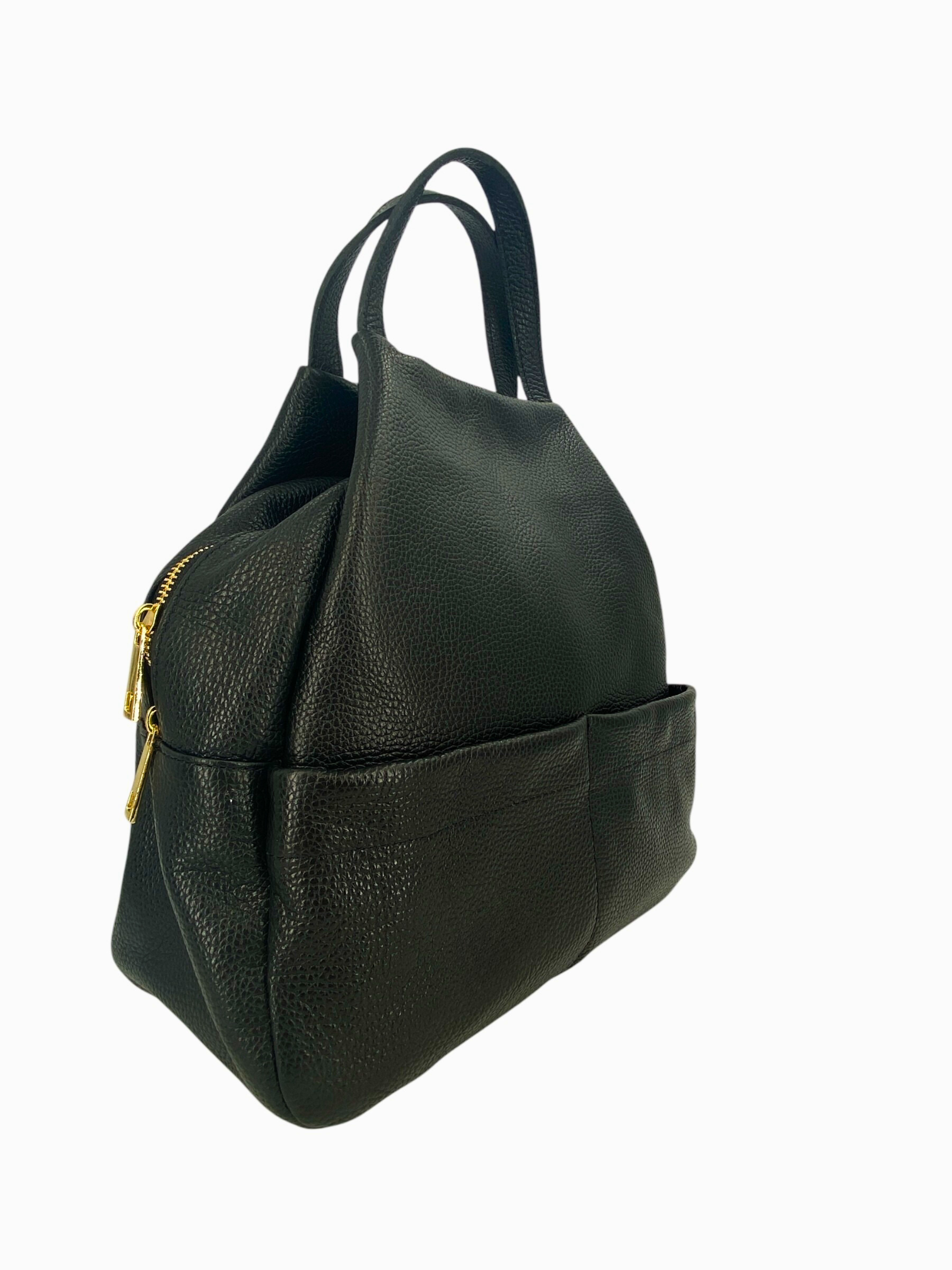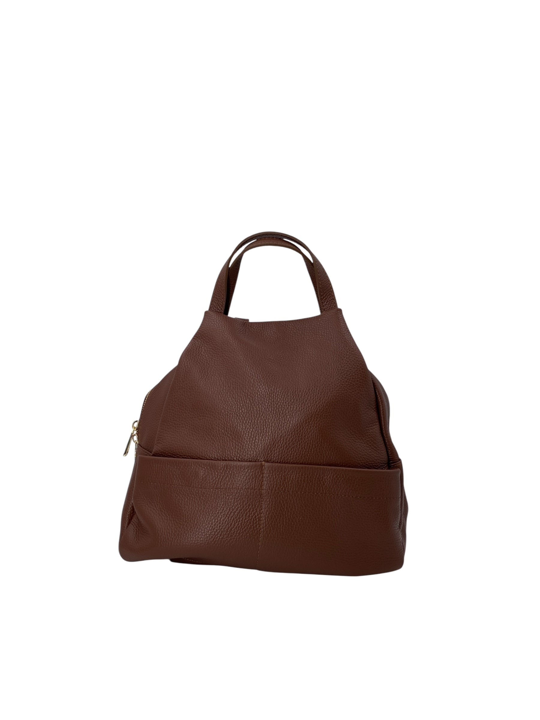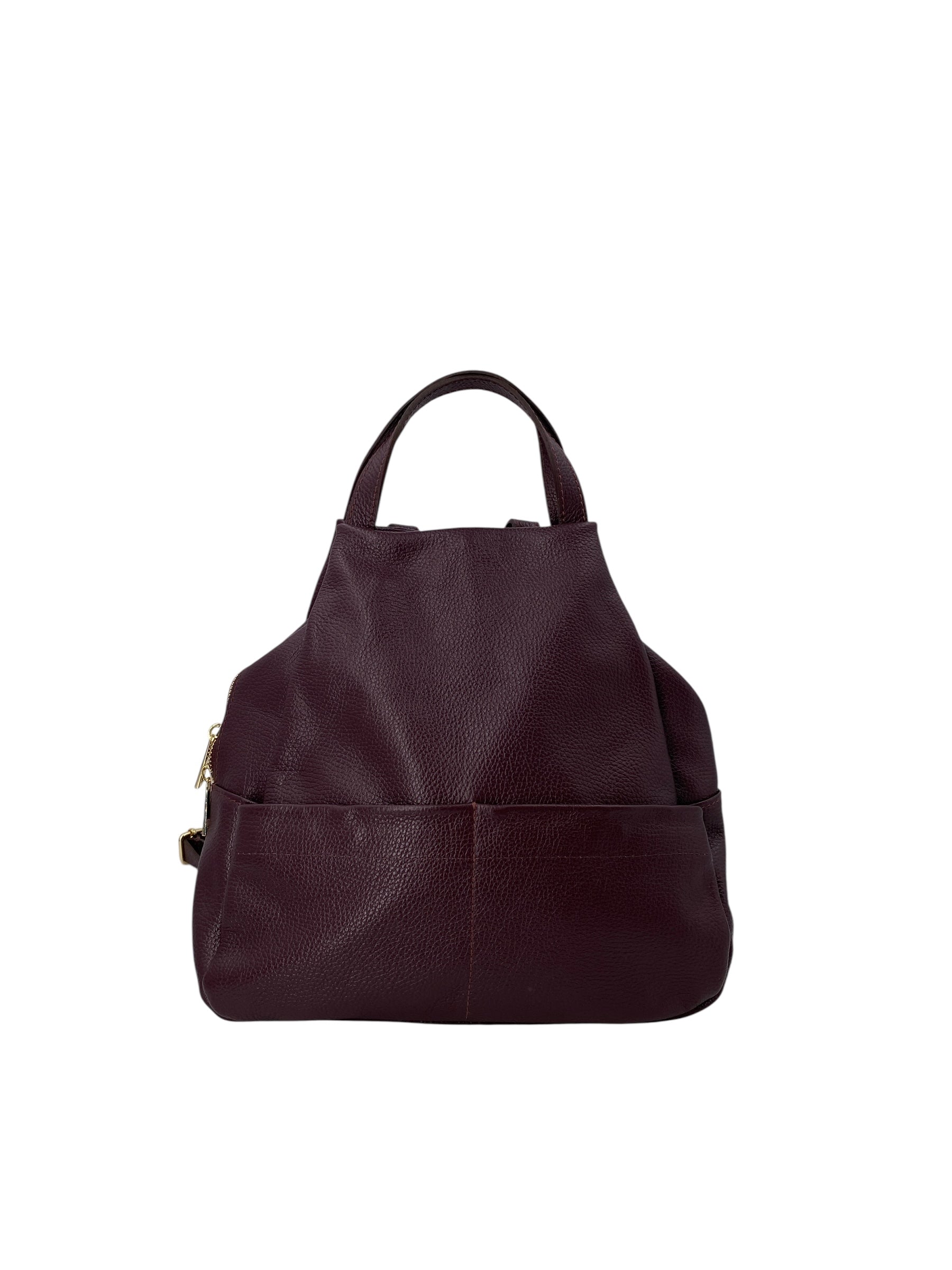 Margaux – Zaino donna in vera pelle italiana artigianale con doppia zip dorata e tasche multiple