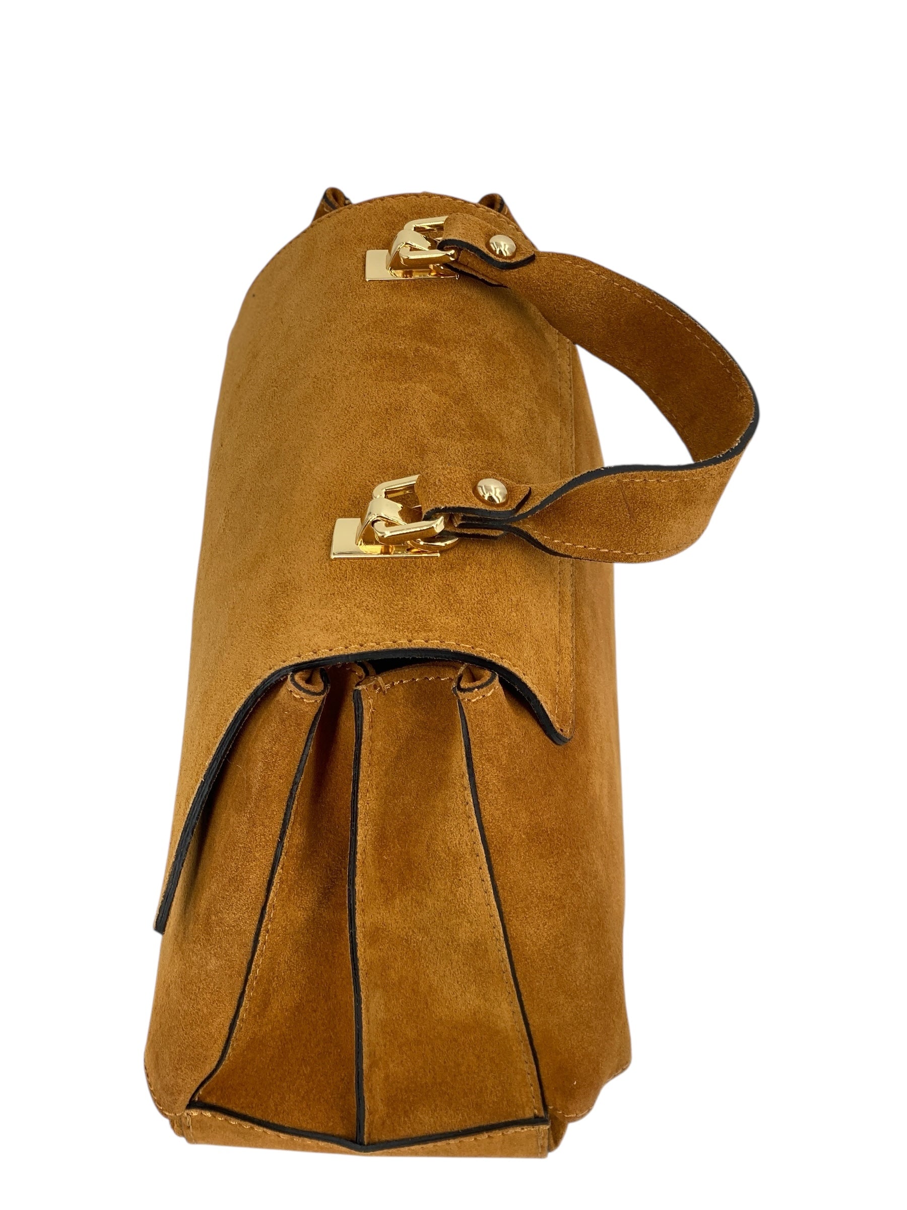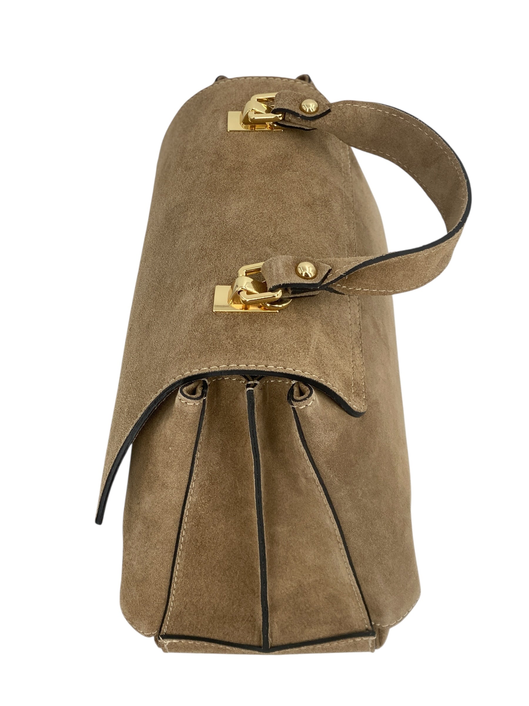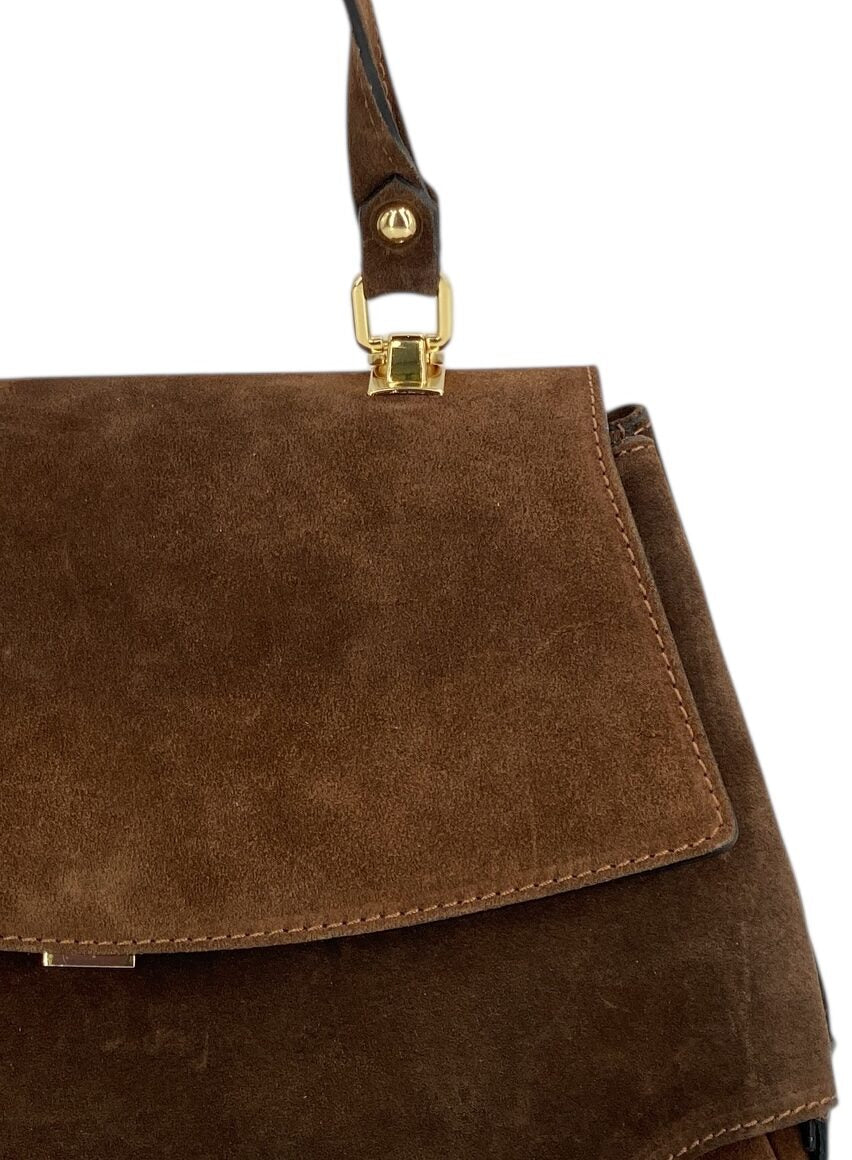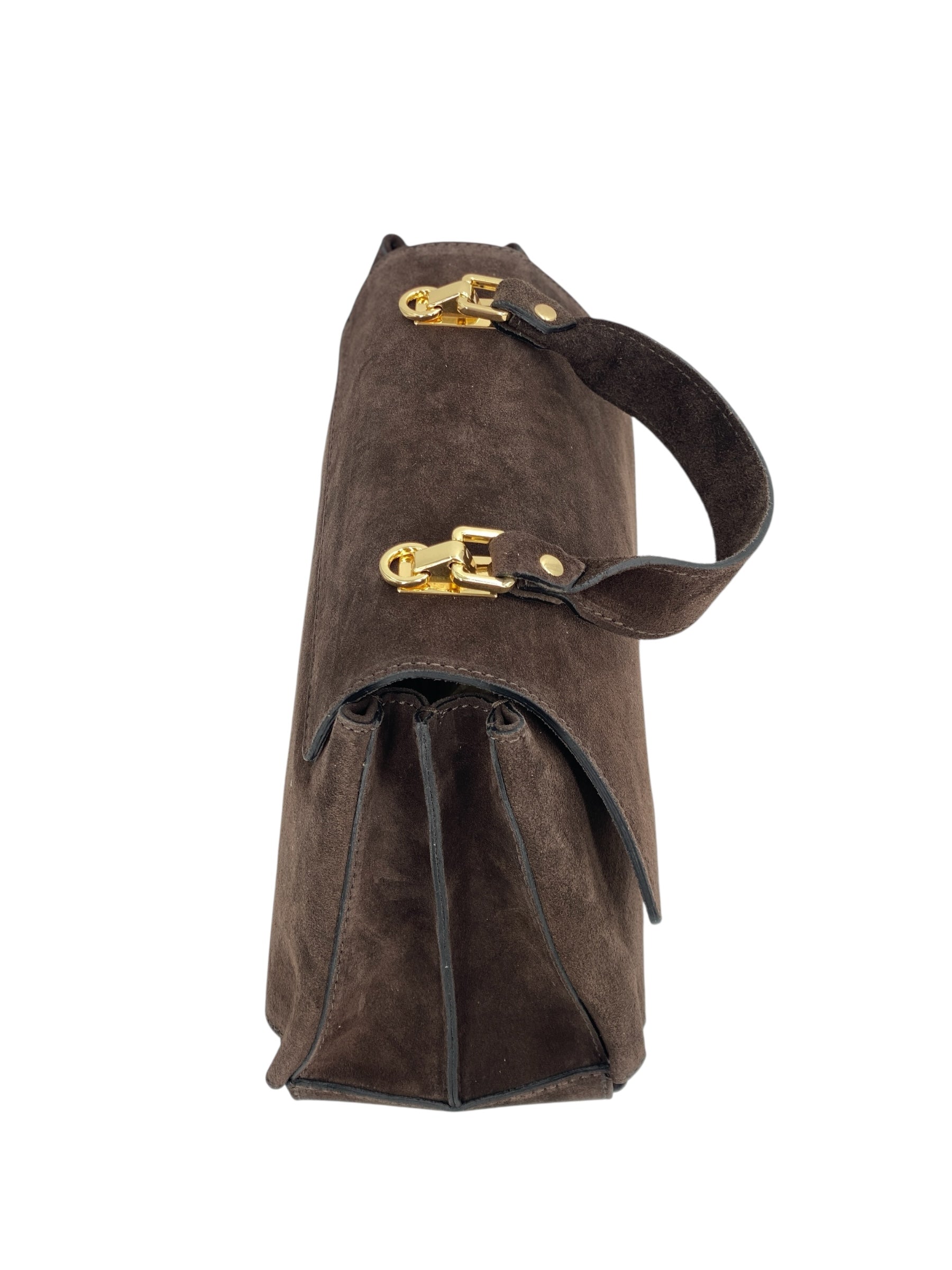 La borsa Marguerite è realizzata in vera pelle di alta qualità, proposta in varianti che esaltano carattere e stile: in camoscio testa di moro, raffinato e piacevole al tatto, oppure in pelle di vitello liscia, resistente e incredibilmente versatile. I dettagli in metallo dorato completano il design aggiungendo luminosità e un tocco di lusso senza tempo.