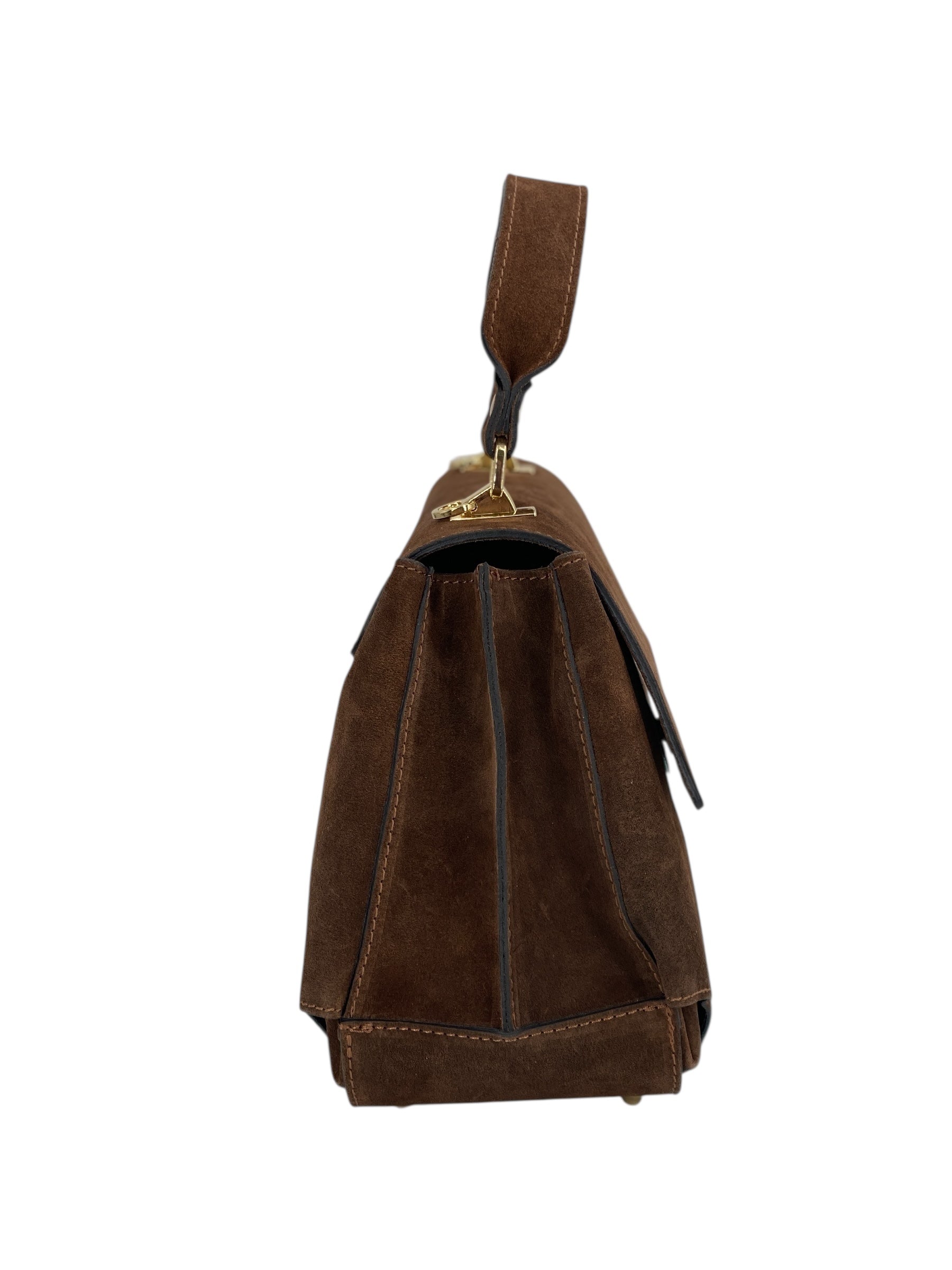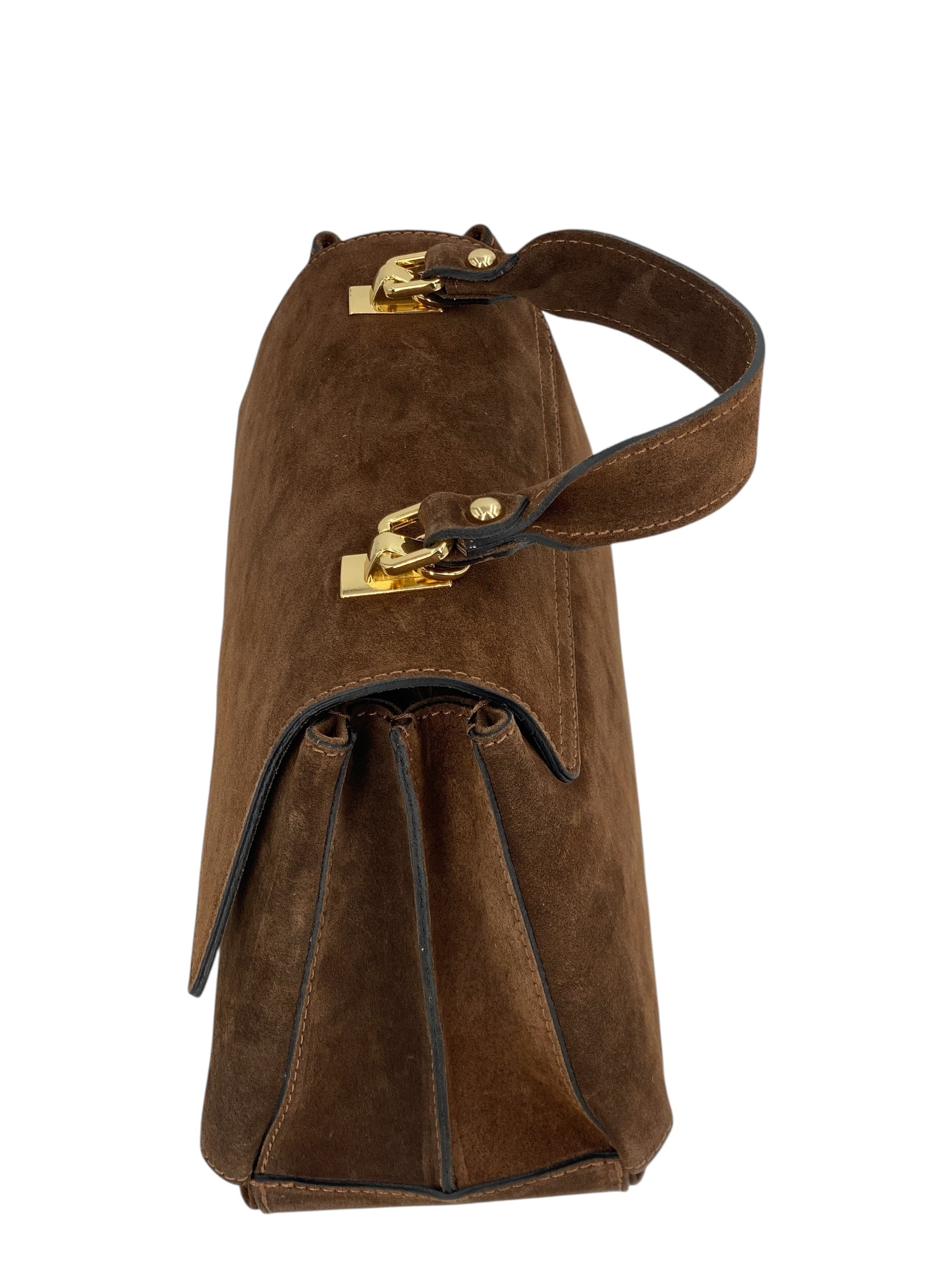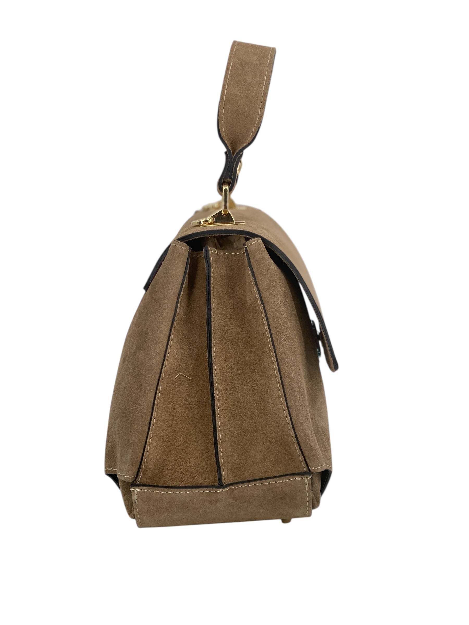 La borsa Marguerite è realizzata in vera pelle di alta qualità, proposta in varianti che esaltano carattere e stile: in camoscio testa di moro, raffinato e piacevole al tatto, oppure in pelle di vitello liscia, resistente e incredibilmente versatile. I dettagli in metallo dorato completano il design aggiungendo luminosità e un tocco di lusso senza tempo.