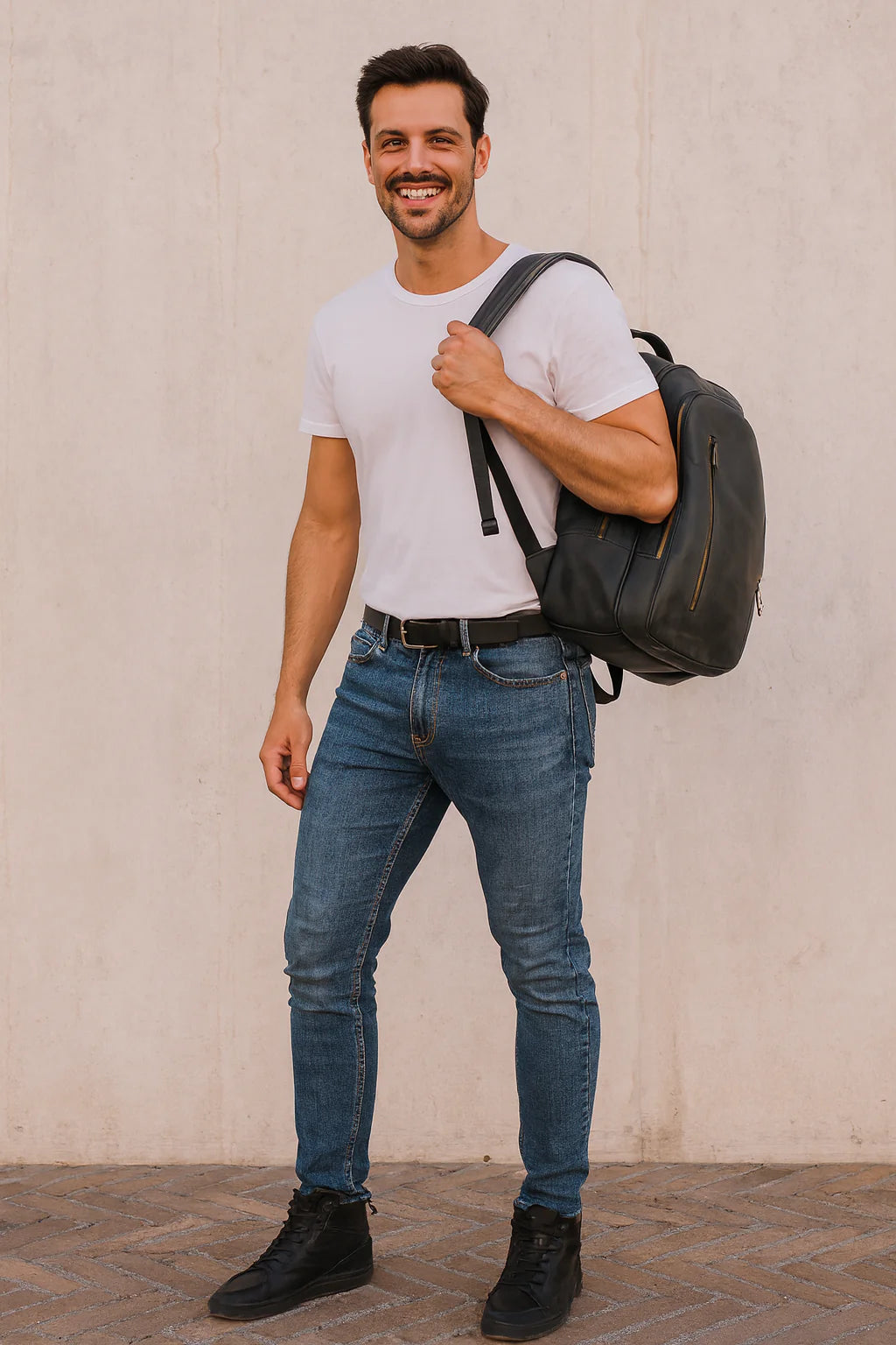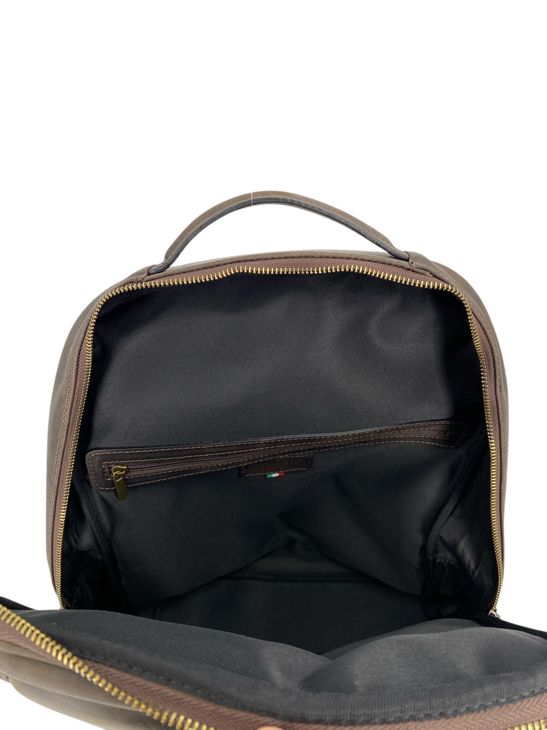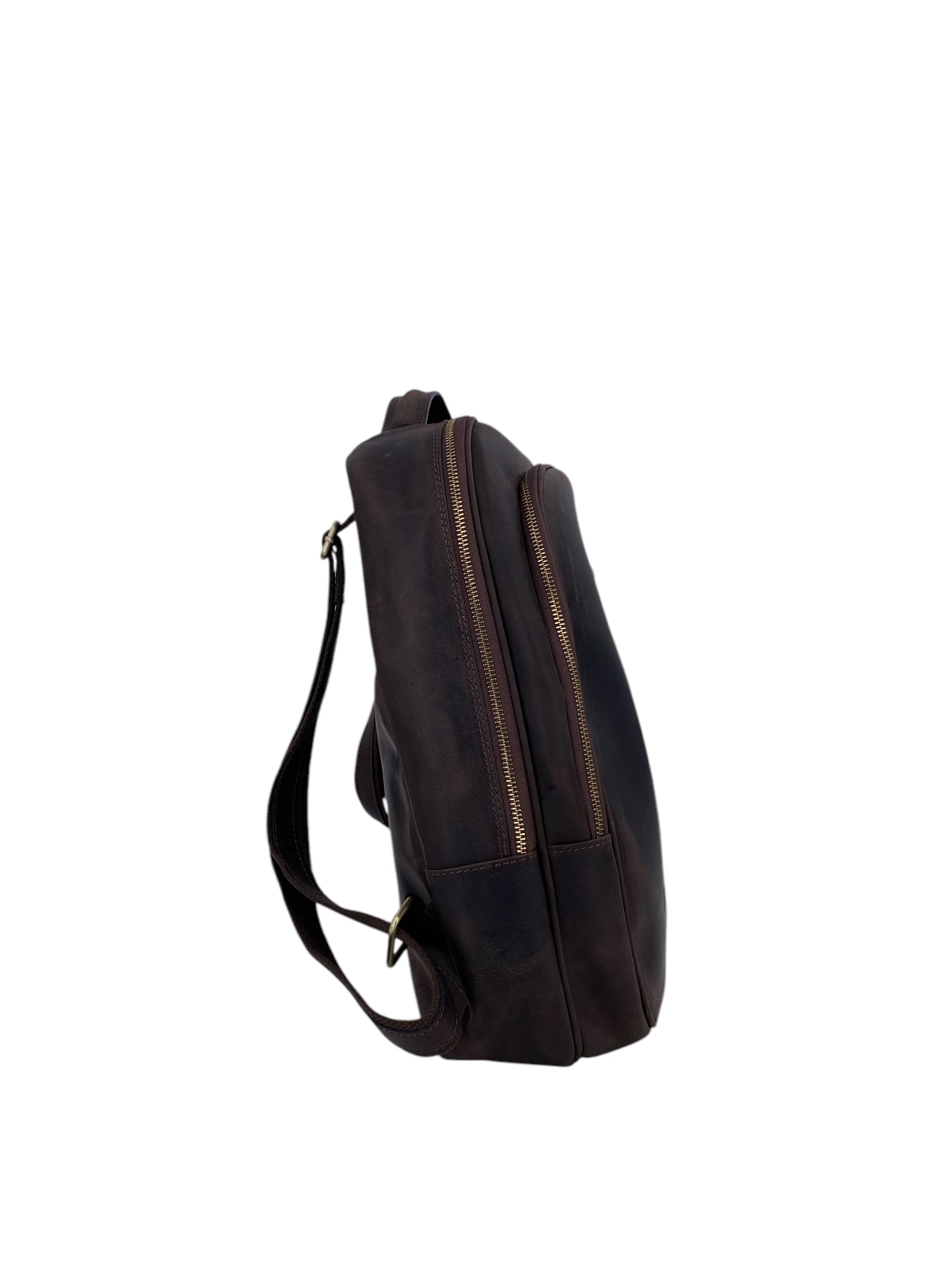 Il modello Pierre è l’emblema dell’eleganza funzionale. Realizzato artigianalmente in vero cuoio 100%, si distingue per il suo design pulito e lineare, impreziosito da finiture in metallo color ottone spazzolato. La texture naturale della pelle, leggermente vissuta, dona carattere e unicità a ogni pezzo, rendendo ogni zaino irripetibile.