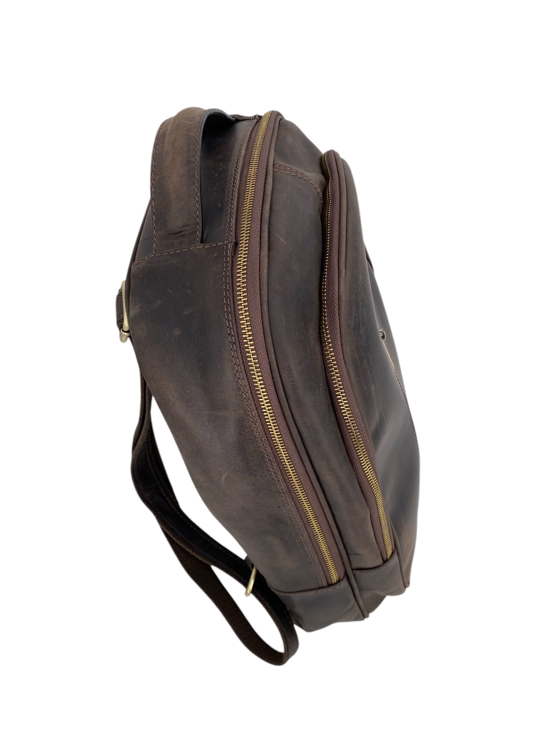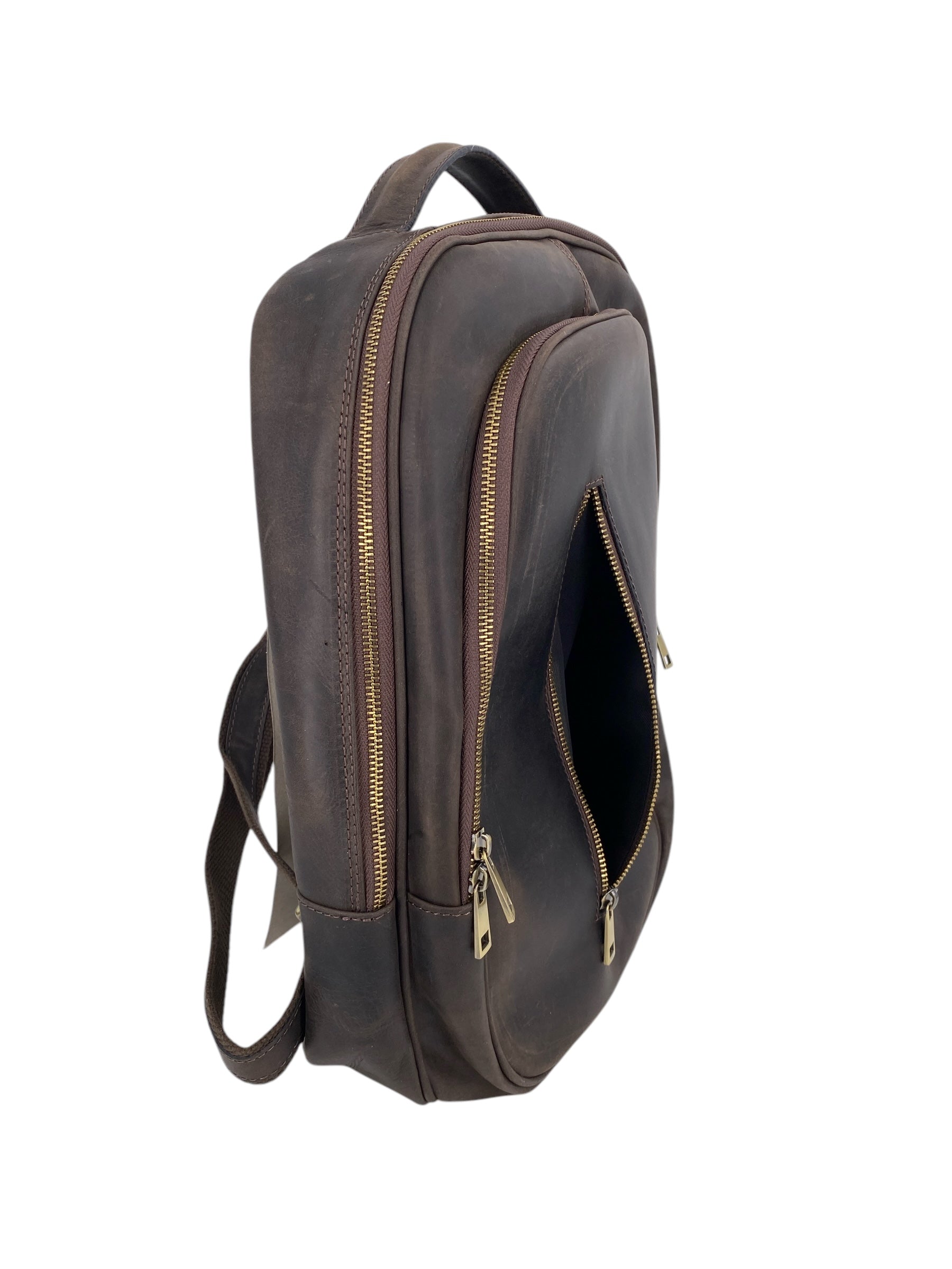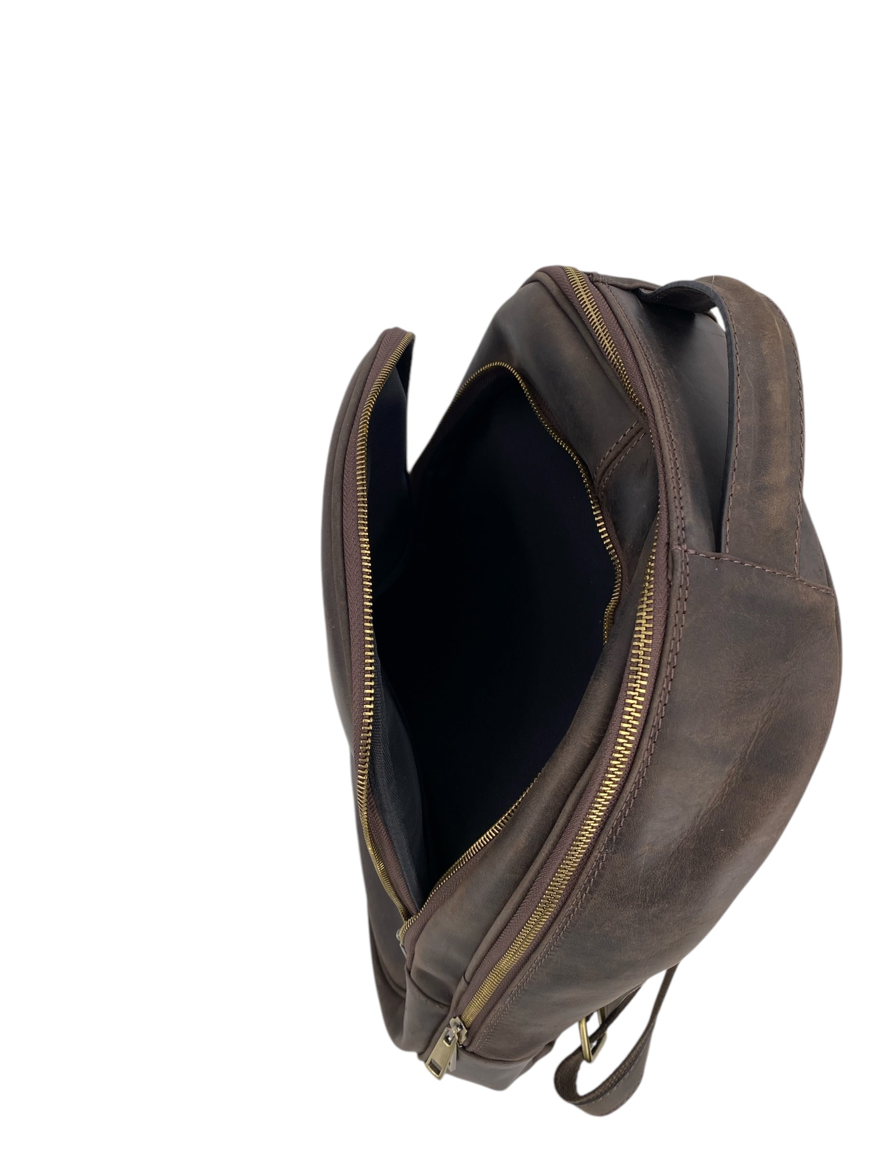 Il modello Pierre è l’emblema dell’eleganza funzionale. Realizzato artigianalmente in vero cuoio 100%, si distingue per il suo design pulito e lineare, impreziosito da finiture in metallo color ottone spazzolato. La texture naturale della pelle, leggermente vissuta, dona carattere e unicità a ogni pezzo, rendendo ogni zaino irripetibile.