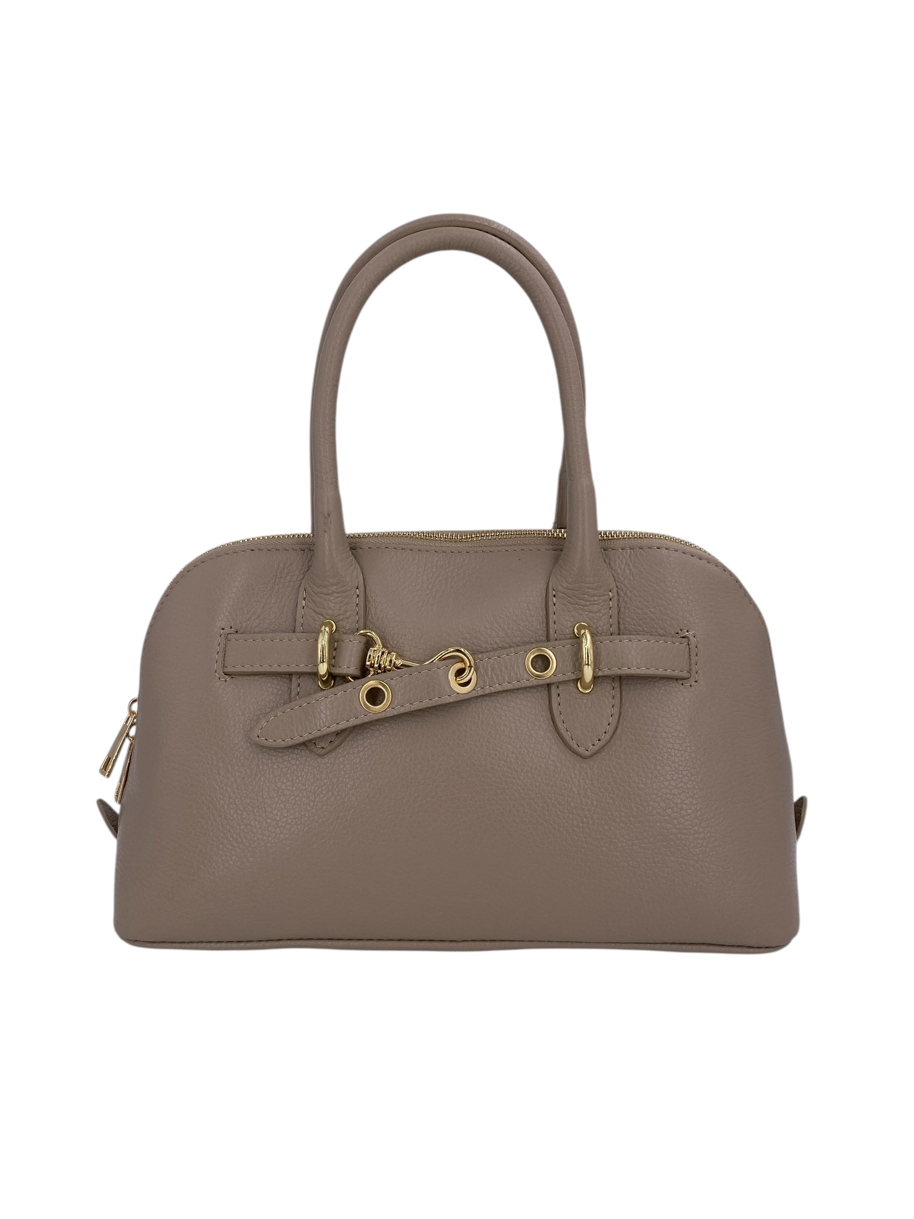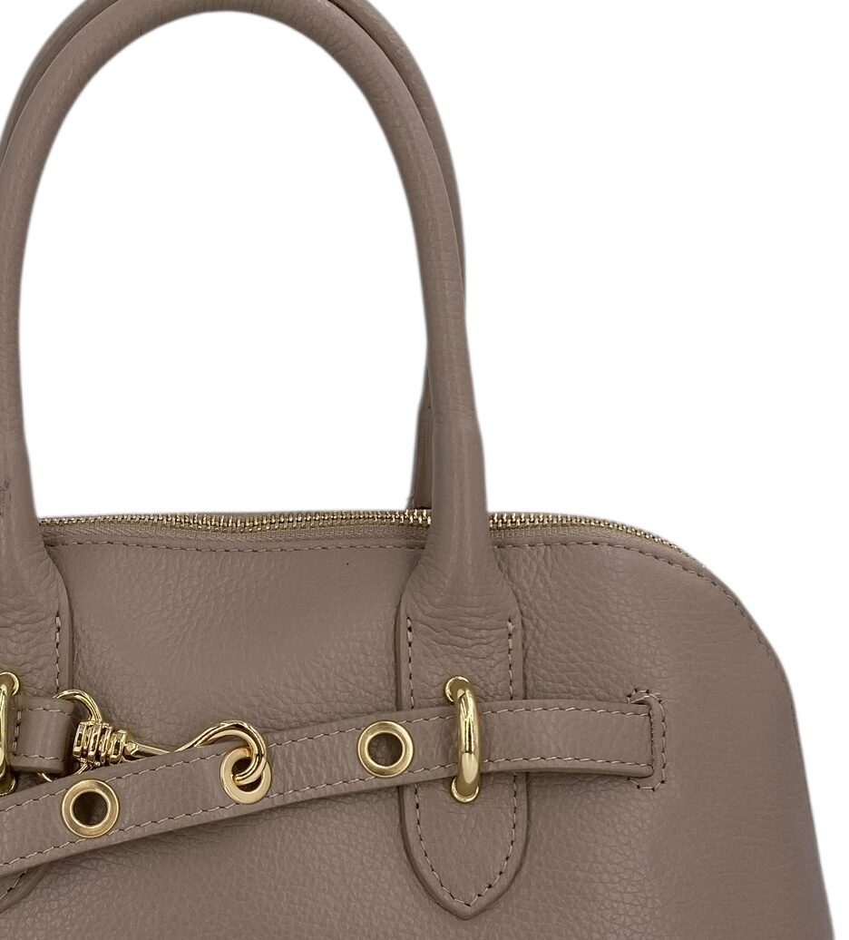 La borsa Sidonie è un modello compatto ma capiente, dal design elegante e raffinato. La sua silhouette morbida e leggermente arrotondata è pensata per accompagnare con discrezione e classe ogni look quotidiano. La chiusura superiore con zip garantisce sicurezza e praticità, mentre il dettaglio decorativo frontale con anelli dorati e cinturino aggiunge un tocco distintivo.