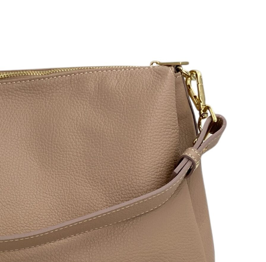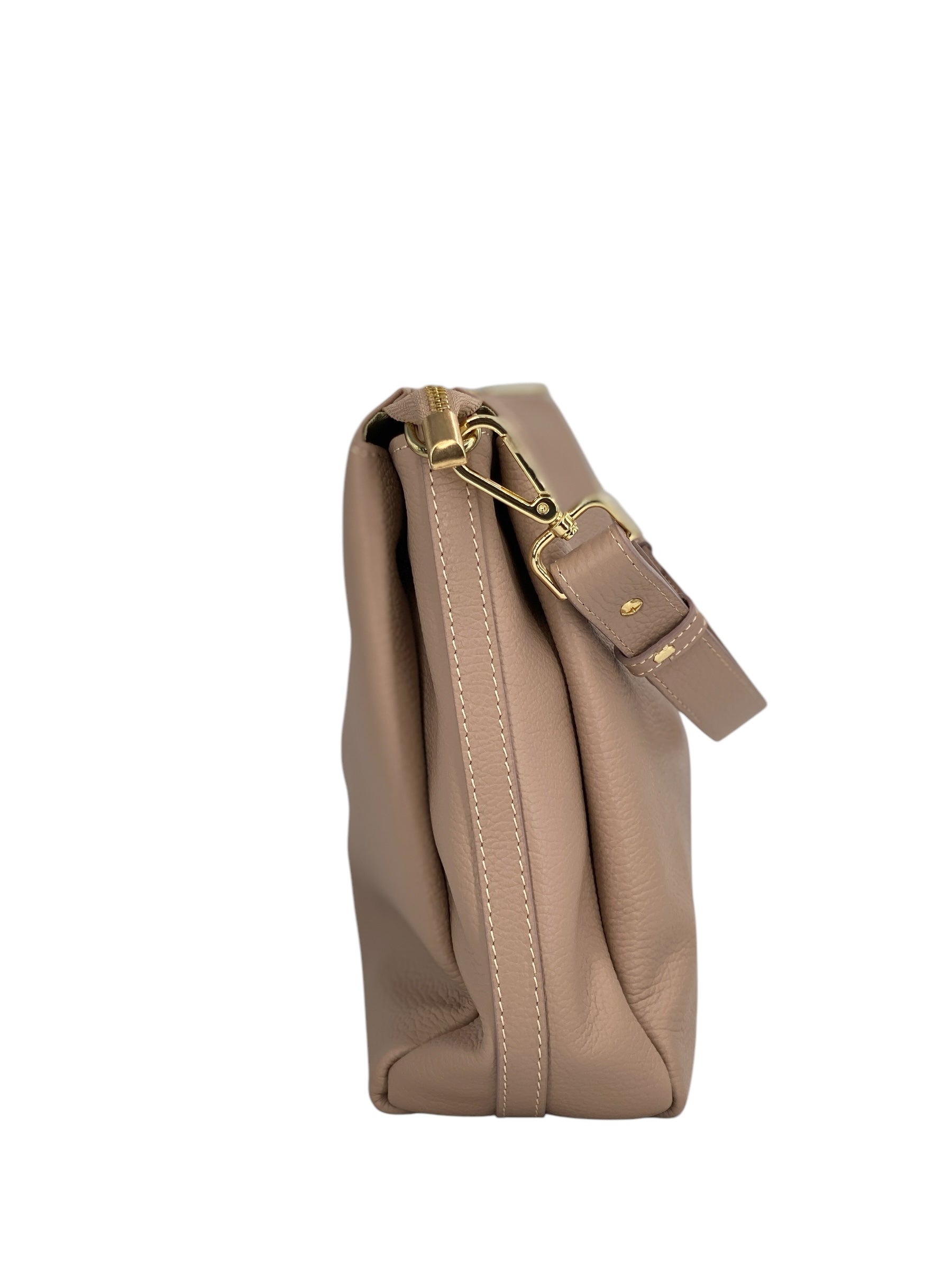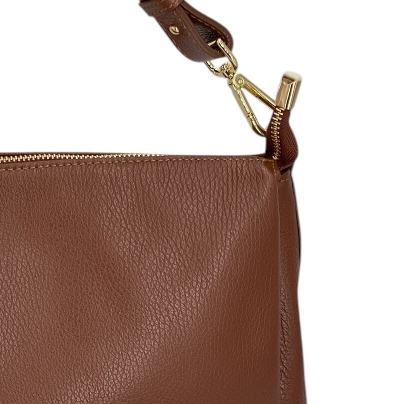 Realizzata in vera pelle italiana, del tutto artigianale come il resto dei nostri articoli, e rifinita con metalleria dorata brillante, Solange è l’espressione perfetta di artigianalità italiana e design moderno. La sua texture naturale e morbida al tatto la rende non solo bellissima, ma anche resistente all’uso quotidiano.